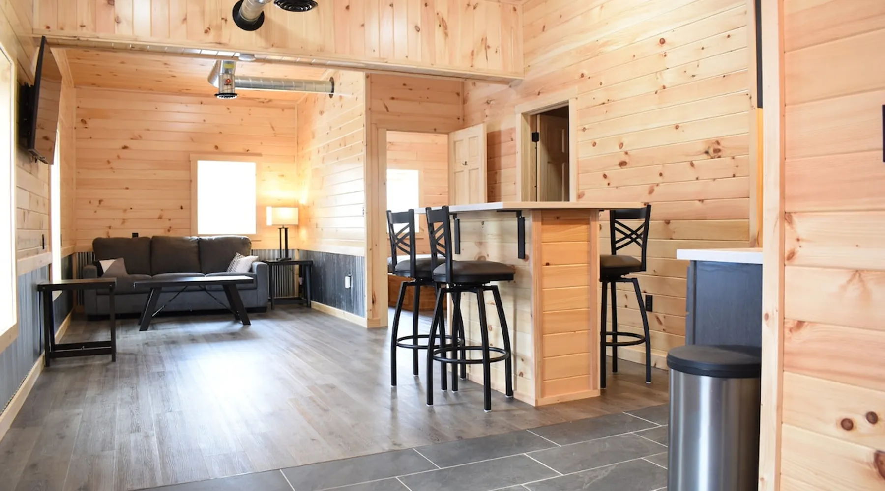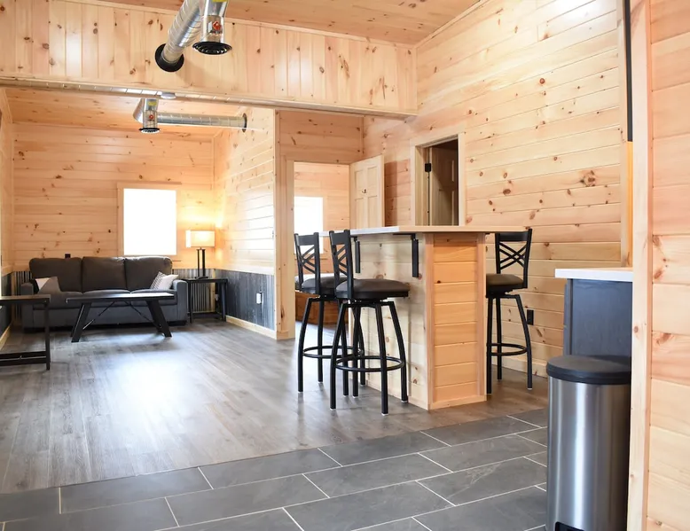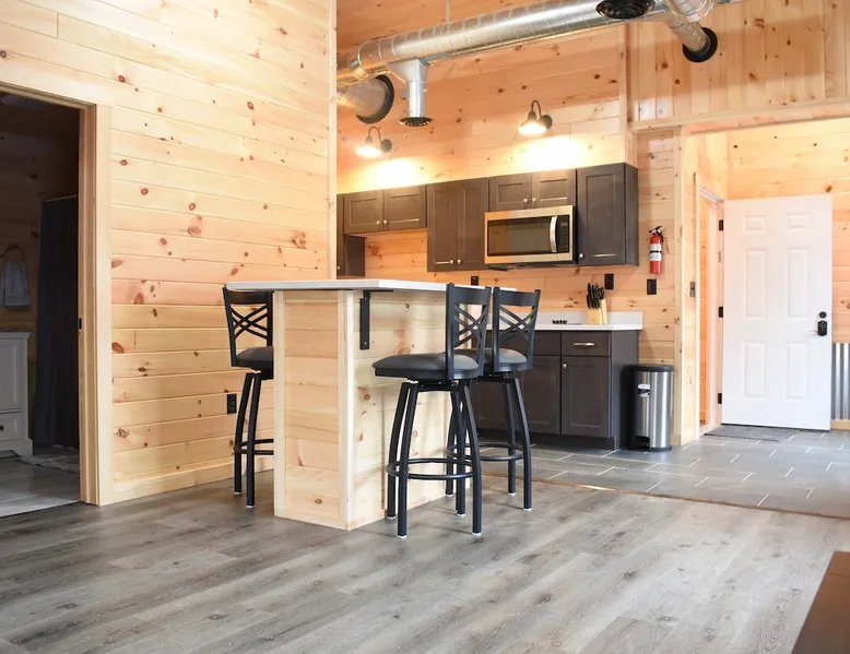Newly constructed single bedroom apartment overlooking the Salmon River. Kitchen includes 4 burner electric stovetop, microwave, air fryer, toaster, Keurig, refrigerator/freezer and dishwasher, utensils. Swing mount TV in the living room area as well as a TV in the bedroom. Island dining table with 4 chairs. Bedroom offers a queen bed and queen size sleeper sofa in living room. Fully furnished with dishes and linens. Will provide linen exchanges/cleaning during extended stays. The space The whole second floor has been completely remodeled starting with new subfloor, laminate floors in living space and tile in kitchen areas, spray foamed exterior walls and ceiling and finished with tongue and groove pine. All new electrical, plumbing, appliances, cabinets and furniture/fixtures. Other things to note I have offsite trailer parking available on RT13 for ATV/Snowmobile trailers, across the street from the shared trailhead. Contact me for more details.