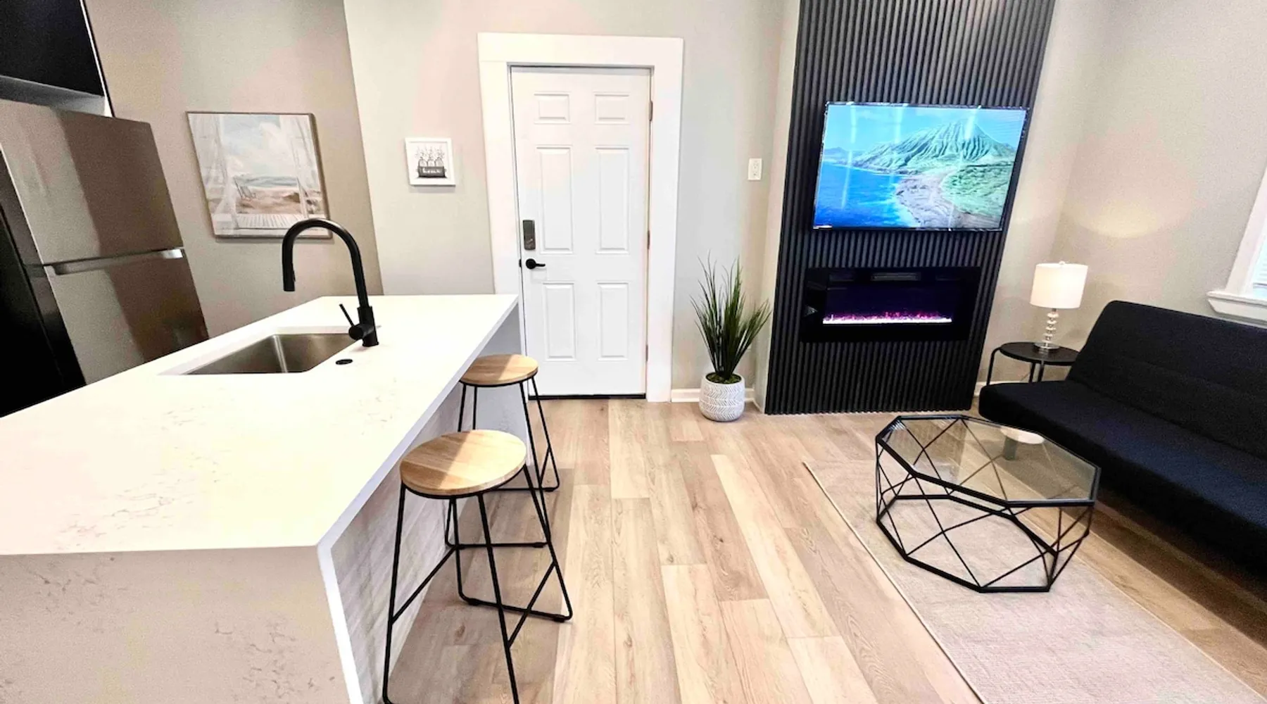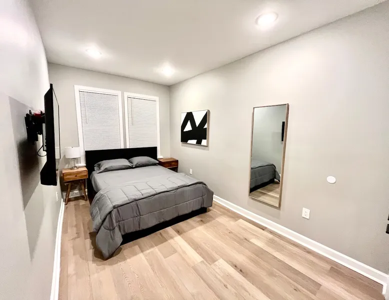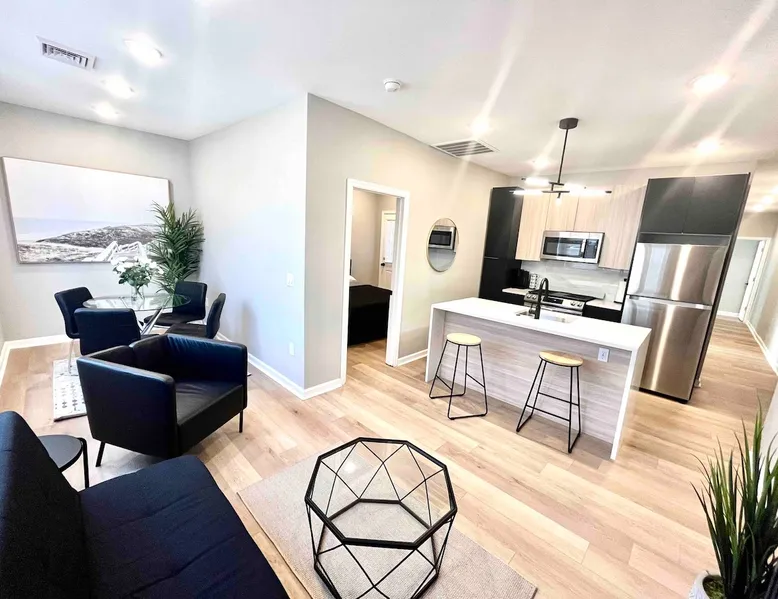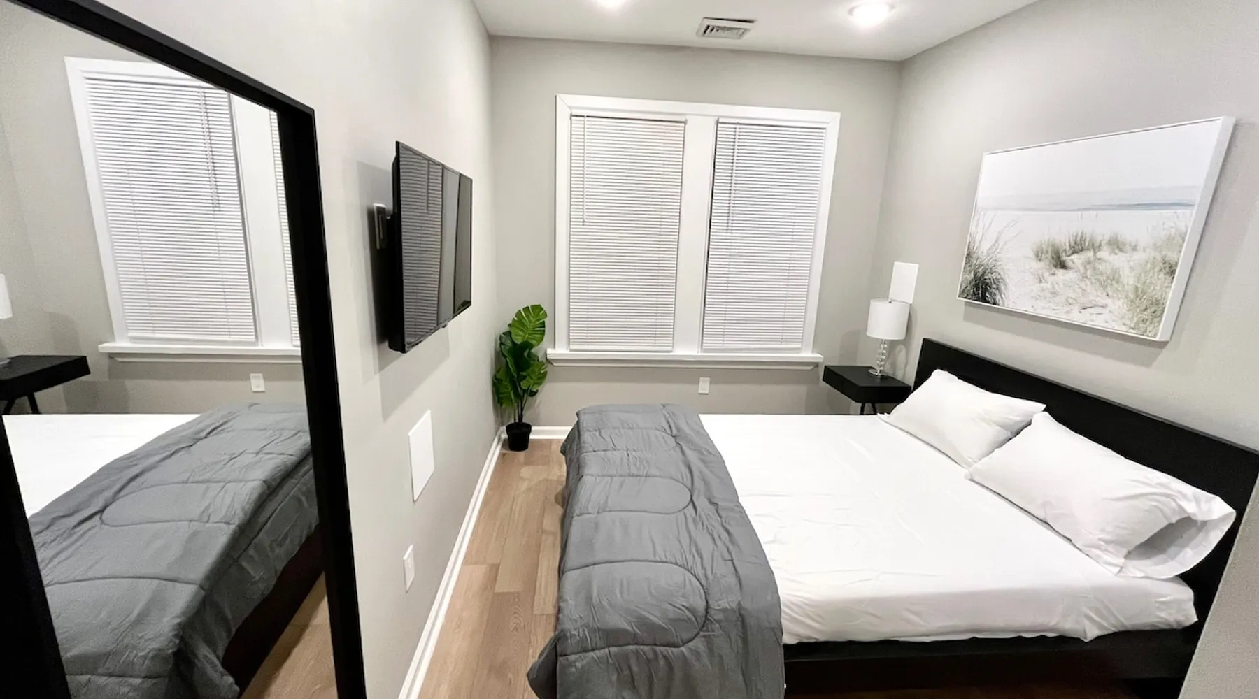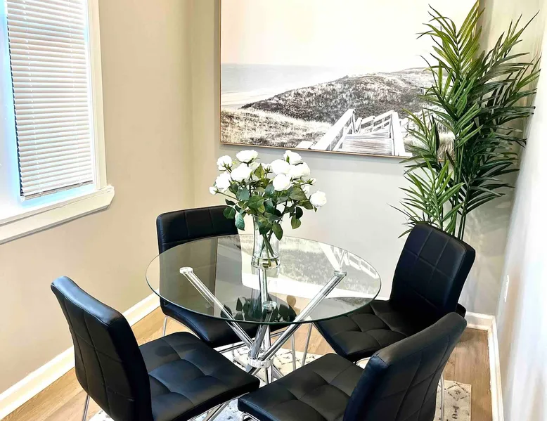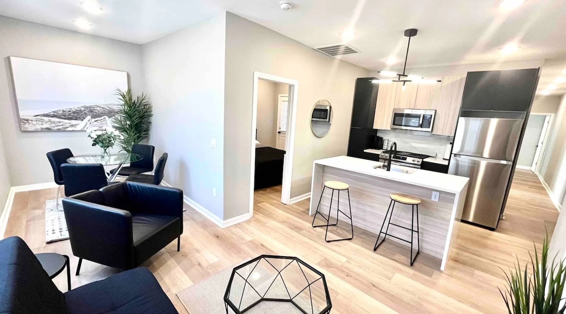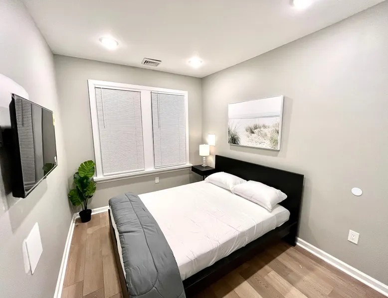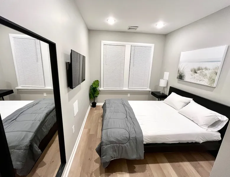 "Experience a perfect vacation at our stylish, newly renovated 3-bedroom retreat in Atlantic City. Each bedroom features a TV, and you'll enjoy a fully equipped kitchen with breakfast bar and Living room, along with two full bathrooms. Conveniently located just one block from the beach and boardwalk, and close to the casino and Stockton University, our property is situated in the nicest part of the city." Free garage parking.