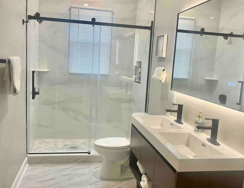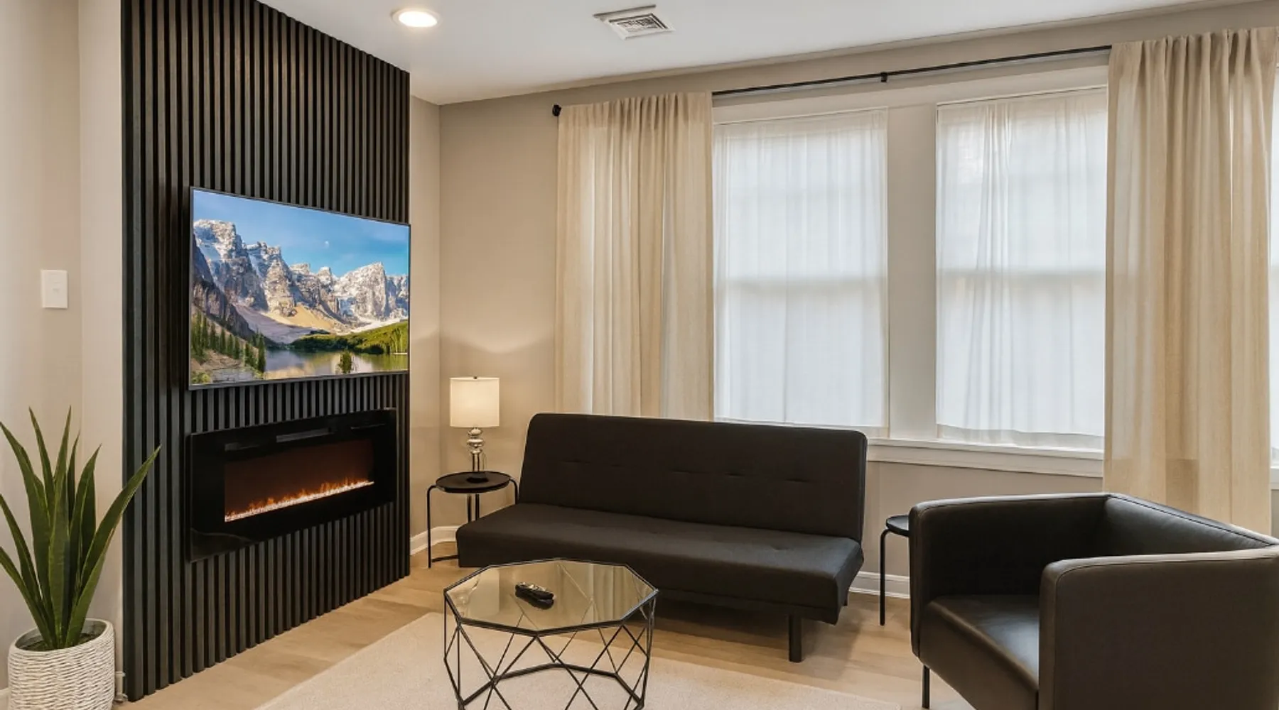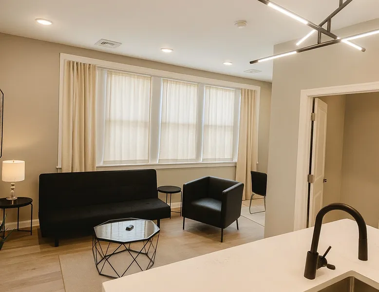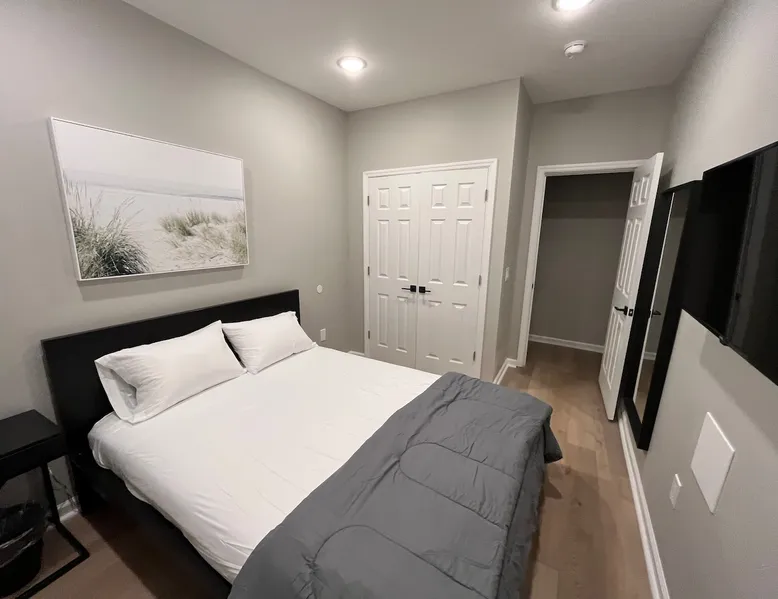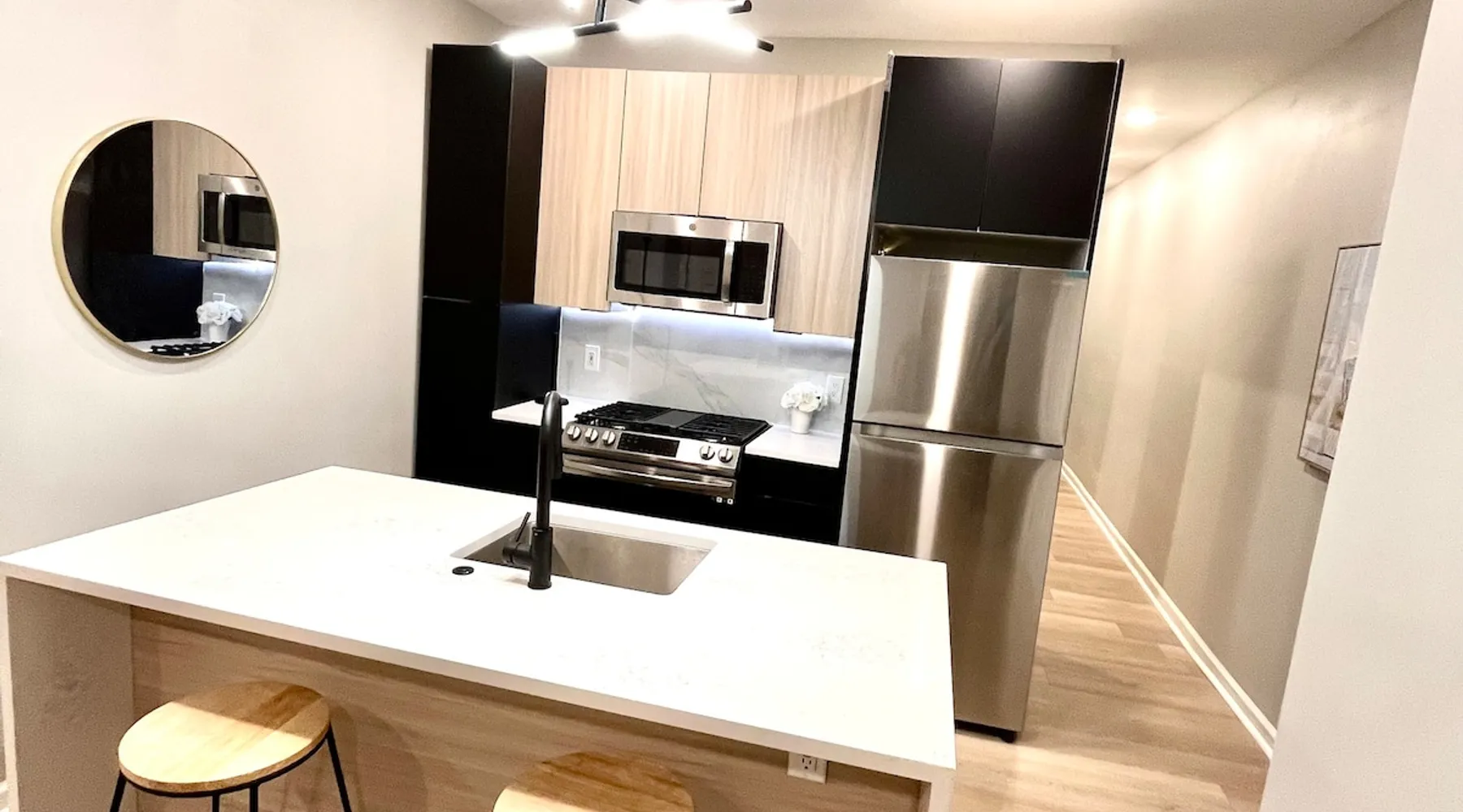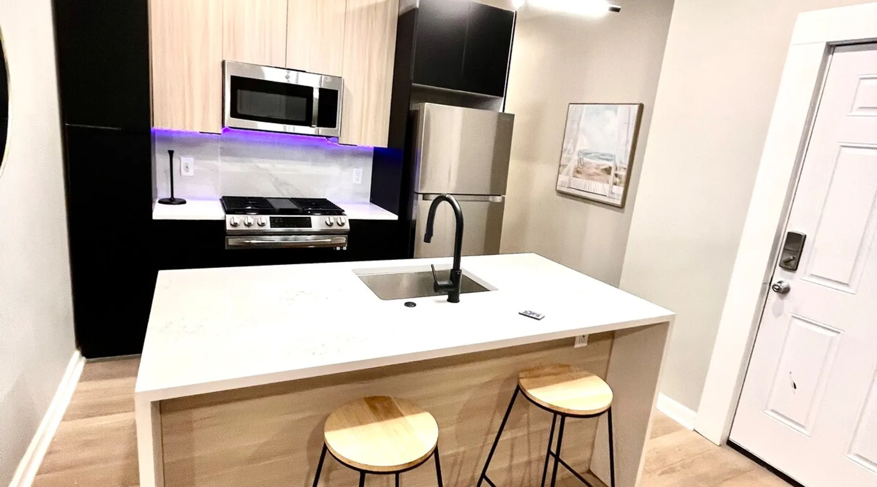 "Experience a perfect vacation at our stylish, newly renovated 3-bedroom retreat in Atlantic City. Each bedroom features a TV, and you'll enjoy a fully equipped kitchen with breakfast bar and Living room, along with two full bathrooms. Conveniently located just one block from the beach and boardwalk, and close to the casino and Stockton University, our property is situated in the nicest part of the city." Free garage parking.