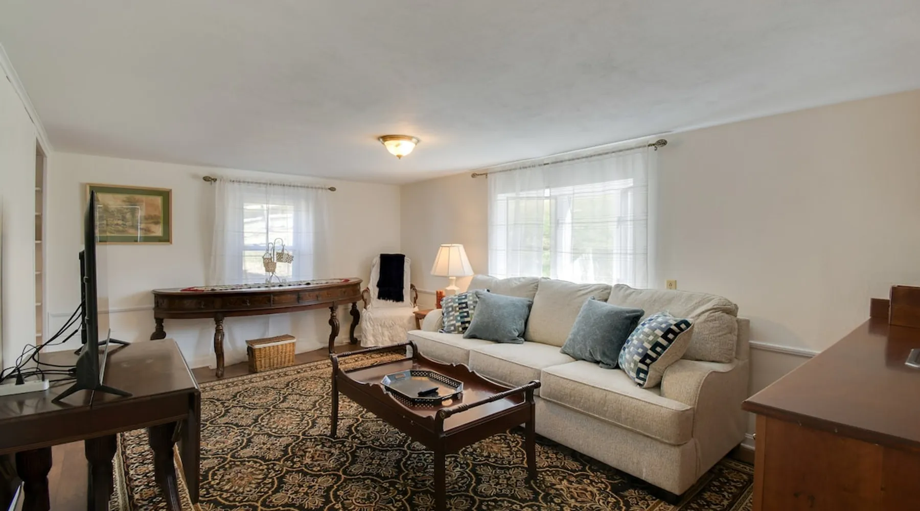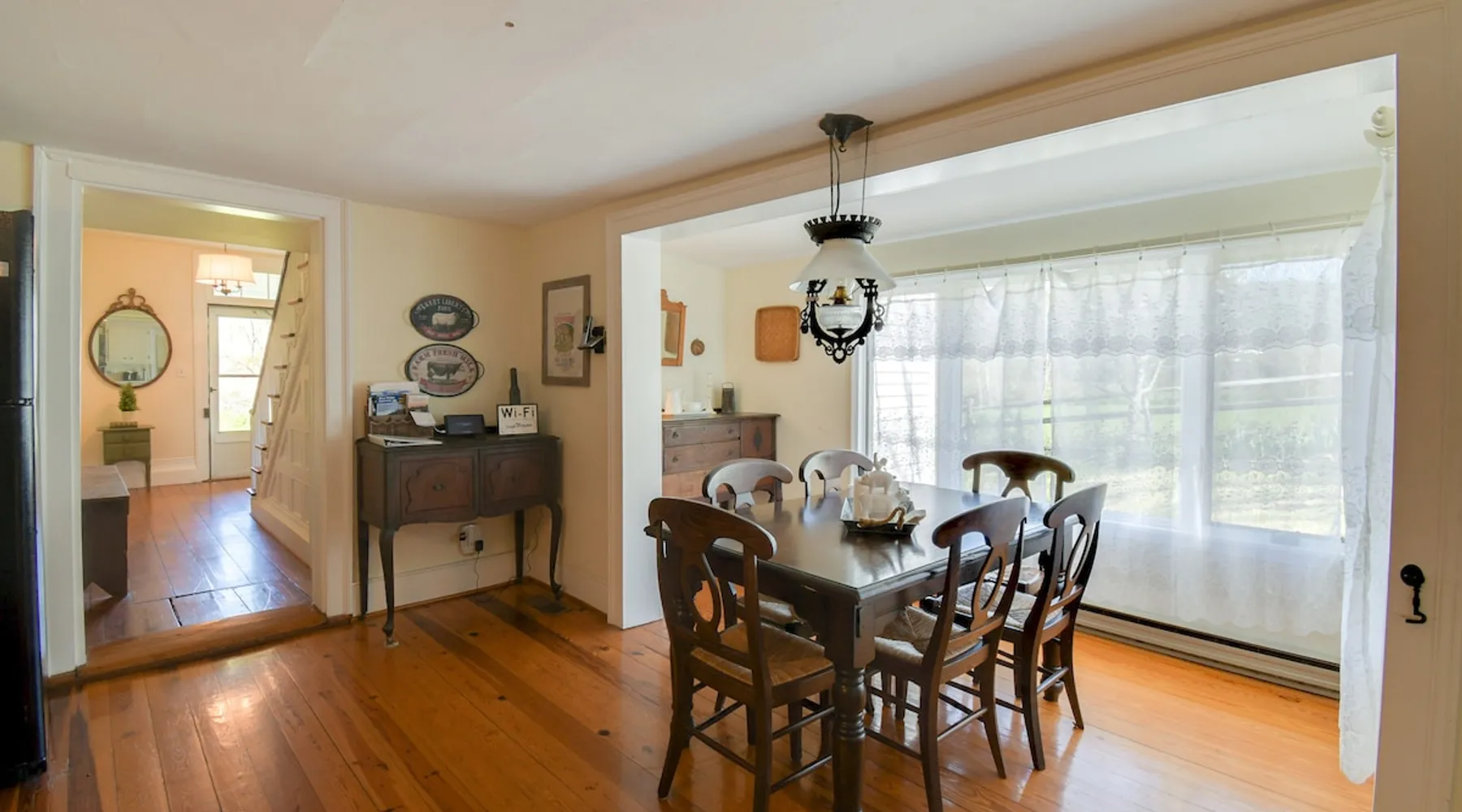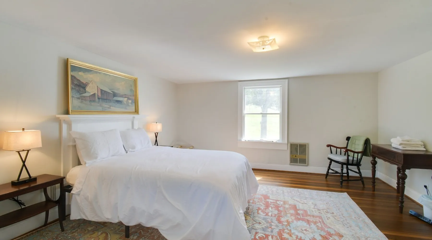 At-A-Glance ✔️ Farmhouse charm and décor ✔️ Peaceful ✔️ Firepit with stunning Jump Mountain views ✔️ Screened-in porch ✔️ Close to Lexington Nearby attractions: ✔️ Lexington and Staunton ✔️ Goshen Pass for nature lovers ✔️ Lake Merriweather for fishing enthusiasts ✔️ Jump Mountain for hiking ✔️ Jump Mountain Vineyard for wine lovers The space Step into a world of timeless charm at The Farm at Jump View, a beautiful 4-acre farmhouse built in 1870, nestled in the shadow of the majestic Jump Mountain. This historic property, surrounded on three sides by a sprawling 177-acre calf pasture, ensures a serene escape where it's just you, the gentle mooing of cows, and the tranquil beauty of nature. As you approach the property, the babbling waters of Walker's Creek greet you, and you cross a quaint bridge to access this private haven. As you step inside, the farmhouse-style décor seamlessly blends the old-world charm with modern comforts, telling tales of a bygone era while catering to contemporary needs. Located near the iconic Lexington, VA, in the heart of Rockbridge Baths, the house boasts 4 cozy bedrooms, 3 baths, and 2 spacious living areas, perfect for families and groups. The fully-equipped kitchen, with its rustic aesthetics, is a haven for those who love to whip up culinary delights. For those seeking active family fun, the property offers onsite tennis, basketball, and shuffleboard, ensuring hours of entertainment and bonding. But the true essence of this farmhouse is its outdoor spaces. Spend your mornings sipping coffee on the serene screened-in porch, watching the cows graze and listening to the birds chirp. As the day unfolds, explore nearby attractions like Goshen Pass or try your hand at fishing in Lake Merriweather. By evening, gather around the firepit, which offers unparalleled views of Jump Mountain, and let the provided firewood crackle as you share stories under the starlit sky. Every corner of this property, from its farmhouse décor to the vast pastures, promises a rejuvenating experience, taking you back in time while offering all the luxuries of today. Book your stay and immerse yourself in the tranquil beauty of The Farm at Jump View. Guest access You will have use of the entire property including the tennis court. A smart lock will provide self check-in unique to you and limited to the duration of your stay. Other things to note - Limit 3 pets per stay. $50 pet fee per pet up to 7 nights. No pets on the beds or furniture. - EV Level 2 Charger available for guest usage. There aren’t many in the area yet so if you are visiting Lexington or Staunton and are brining your electric car this is a great feature 🔒 Please note: For the comfort and safety of all guests, no third-party services (e.g., massage therapists, chefs, beauty technicians, fitness trainers, etc.) are permitted on-site during your stay. Thank you for respecting this policy.