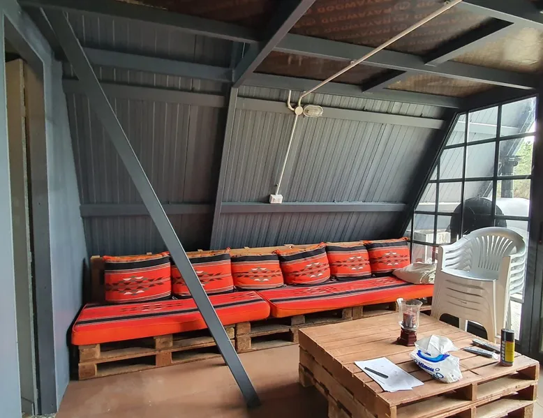 Cozy Cabin disconnected from Real Life , that will Spark your inner Peace. Our Cabin can also accomodate Up to 100 Guests Outdoors Perfect for Events, Birthdays, Bachelors, Proposals and many Others ... The Cabin has a spectacular Seaview and lies in the middle of the mountains and is totally Private !!! The Cabin can Accomodate Up to 5 Sleeping Guests