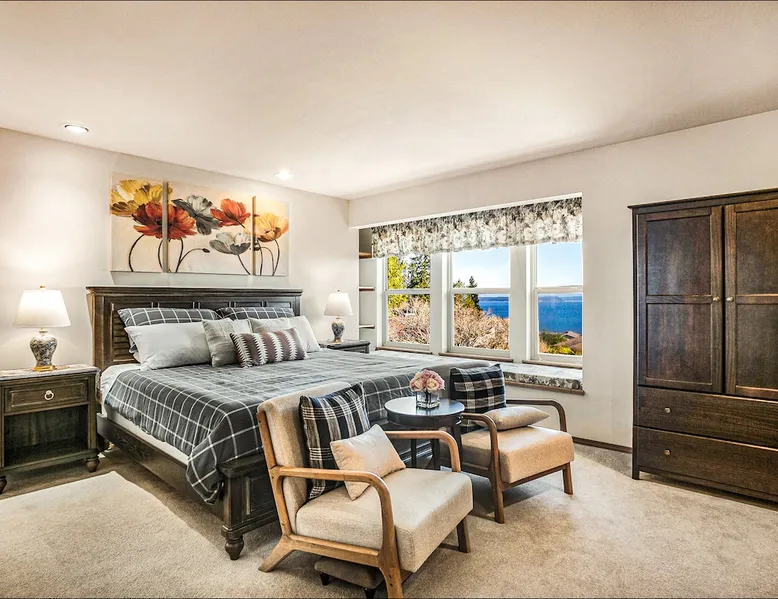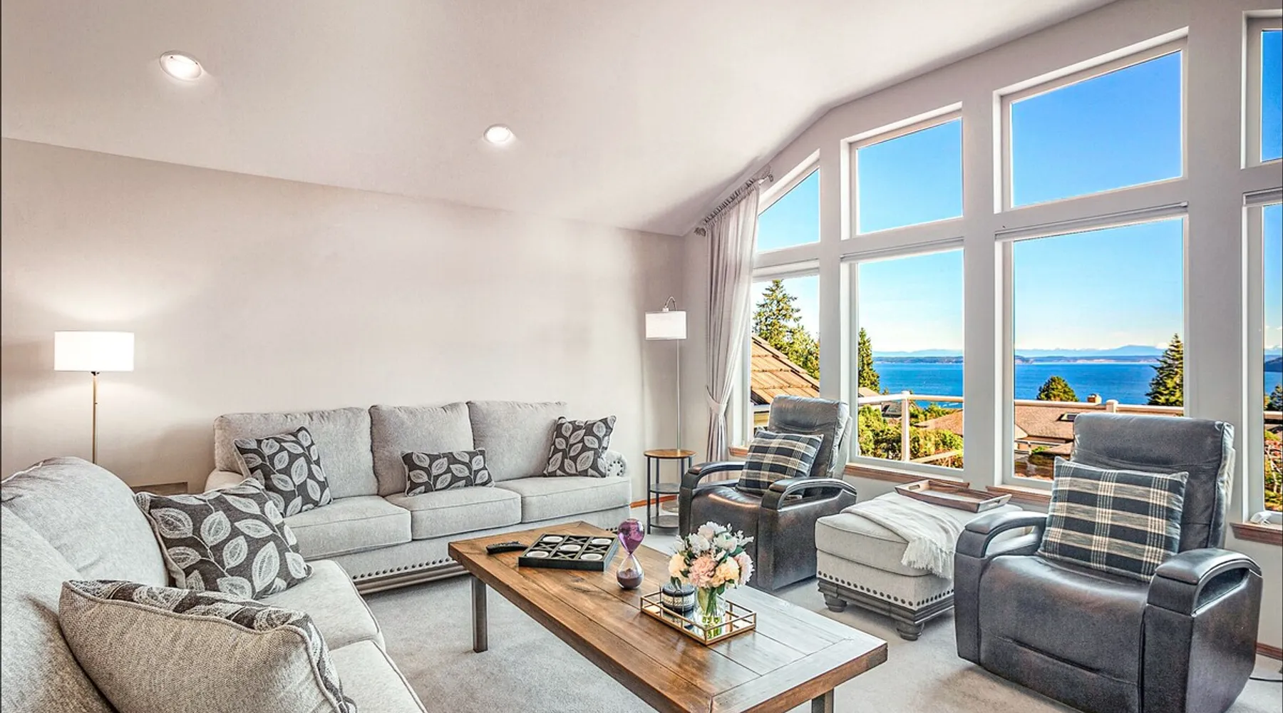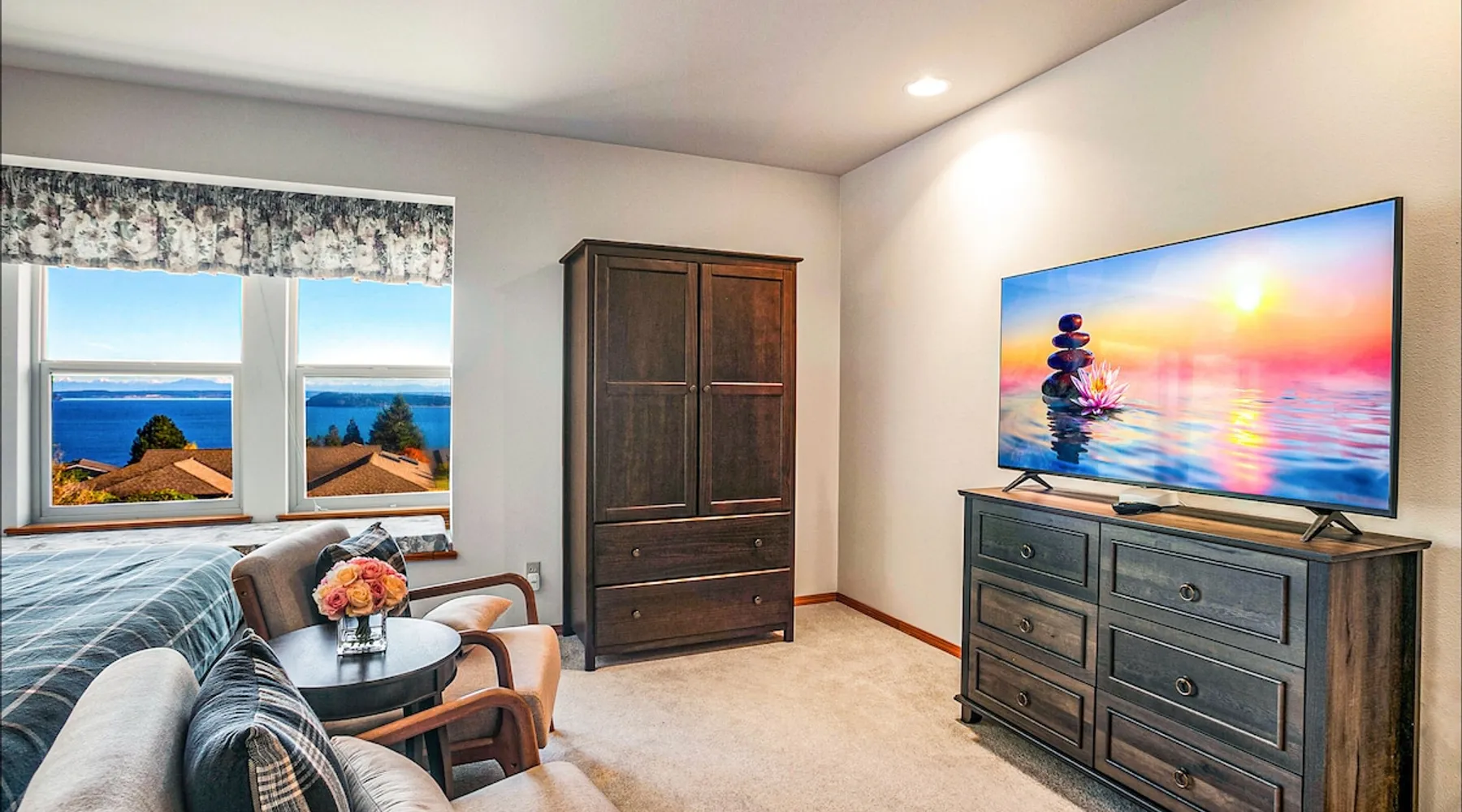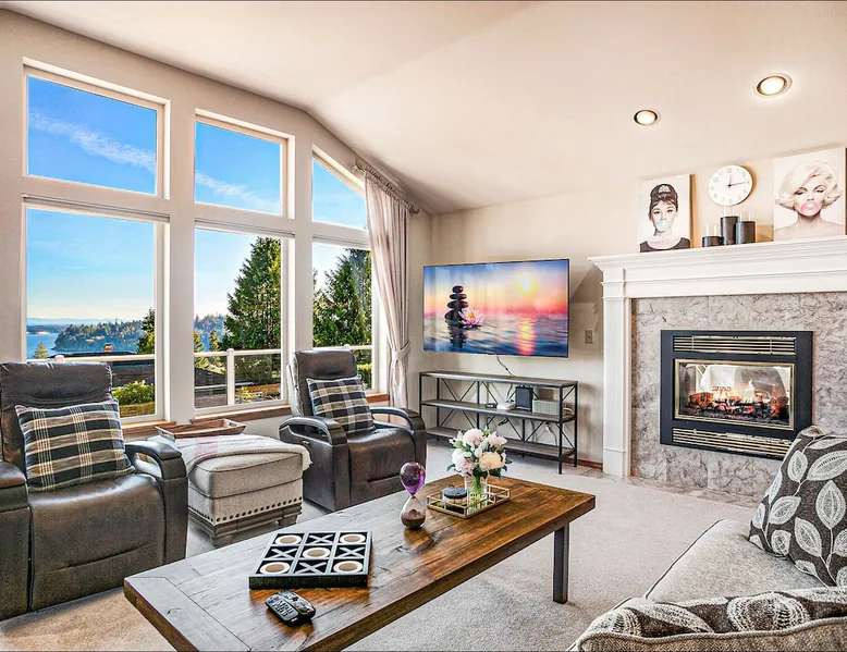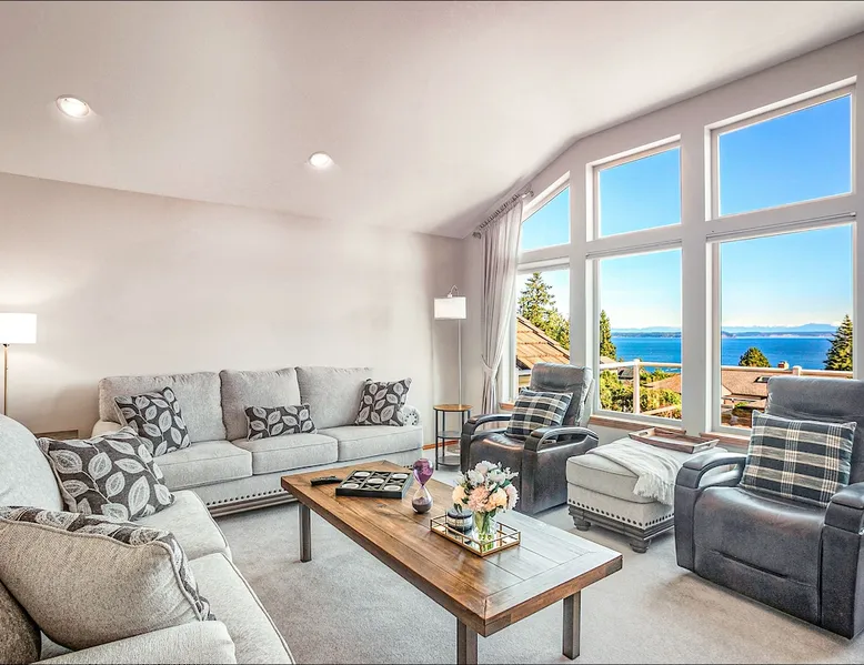 Named for W.P. Sayward, this house is not far from the original logging mill that he helped found that put Port Ludlow on the map in the 1850s. It's a gracious home on a quiet and friendly cul-de-sac, waiting for you to settle in for a long stay with family. The space ABOUT SAYWARD HOUSE Near the shore of Puget Sound, with spell-binding water views from the expansive windows of the living room, family room, main bedroom and from the second story deck, you'll revel in the generous spaces and gracious amenities of this beautiful home. The common rooms - living, family, dining and kitchen - are all on the second floor, accessed by both stairway and elevator, making it a breeze to get upstairs. The living room and family room are served by the two-way gas fireplace, providing cozy warmth to both rooms, which also feature plush sofas, couches and recliners. The formal dining room, adjacent to the kitchen, is perfect for family meals. The kitchen's breakfast bar will be a favorite spot - where kids will love eating their cereal and adults will enjoy being able to chat with your party's chef while dinner's being prepared. Of course, the kitchen has a full complement of appliances, including a gourmet coffee machine for morning lattes or espressos, and plenty of dinnerware, pots and pans. A second story deck has seating for outdoor dining, plus a gas barbeque, so plan on many meals by your group's grill master. While you are here, enjoy the spectacular sun rises and the landscaped front and back yards. REVIEWS "It’s cozy, has a well stocked kitchen and plenty of space to spread out. We enjoyed our coffee on the deck and used the office space for remote working. The beds and furniture in the living room were all comfy. Would definitely come back again!" - Nichole MORE ABOUT SAYWARD HOUSE With three bedrooms - two featuring king-sized beds and one with two twins - you can indulge in some seriously restful sleep. The main bedroom, on the second floor, features an ensuite bathroom, with jetted tub, perfect for soaking away the day, and separate shower. The other two bedrooms can be found on the first floor, along with the second bath with a tub/shower combo. There's also a powder room on the second floor. Towels and linens for all baths and beds are provided. The house also features several accommodations for the handicapped, including the elevator and grab bars in the bathrooms. ABOUT PORT LUDLOW The charming town of Port Ludlow is just minutes from the Sayward House and features fine dining, beautiful Victorian-styled homes and buildings that are a feast for your eyes. Plus, you'll find plenty of unique shops to explore. Port Ludlow is close to the Olympic National Park and a day trip to the park would be worth the memories. Port Ludlow is home to one of the most scenic golf courses in the country. With wildflowers, water views, the greenery of the trees, as well as mountain views, it will be an exciting game of golf regardless of your score. With a different type of view, there are trails all around the Port Ludlow area, including ones heading to the Ludlow Falls, a beautiful area with interpretive trails, embodying the spirit of the Pacific Northwest. Fort Flagler is about 20 minutes away on Marrowstone Island. Once one of three forts protecting the Puget Sound, today it has a museum and camping grounds, and is a great location for Washington seaside activities such as kite flying, crabbing, and clam digging. It also has hiking and boating access. THE PORT LUDLOW VACATION RENTALS PROMISE Port Ludlow Vacation Rentals is the only full-stack vacation rental management company in the area. We vow to make booking with us simple and exciting. We know that booking a rental property home for your vacation can be unfamiliar territory for some, while others know their way around it. Because we know this, we ensure that each of our properties is up to high-quality standards. We do our absolute best to provide support to our guests when booking. We are available to assist you every day of the year if you have any questions or concerns before, during or after your visit to our home. We have onsite property management available 24/7 for anything concerning that may arise. 30 DAY RENTAL Due to Home Owner Association regulations, this home can only be rented for 30 days or more. Sayward is a perfect home for enjoying this wonderful area with your family, or working remotely in a pristine and quiet community. If you have questions about booking, please telephone us at any time. MANAGED: Property requires good behavior and adherence to instructions, house rules, terms, conditions, onsite instructions, and may require online registration, accidental damage protection, and electronic signature before final booking confirmation, or you may cancel before proceeding at that time. Instruction including access will be sent by email. Phones open 9am to 7pm every day. Unless otherwise arranged, check-in is between 5 and 7pm and check-out is before 11am. If dogs are allowed, they must be approved in advance, with a quantity, weight limit, and a per-dog, per-day fee. Due to government and owner requirements, occupancy may never exceed the number of registered guests, dogs and vehicles. Drop-in guests are not allowed. For security, there may be outwardly facing security cameras, capable of constant recording, and interior decibel meters to monitor noise. Bookings over 30 days or longer are with Prospera VIP.