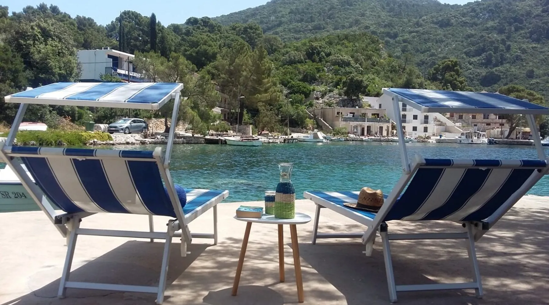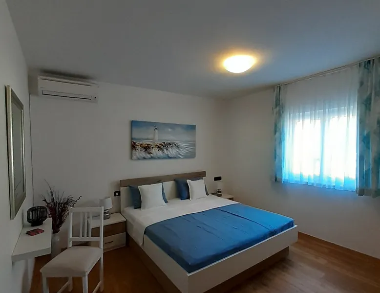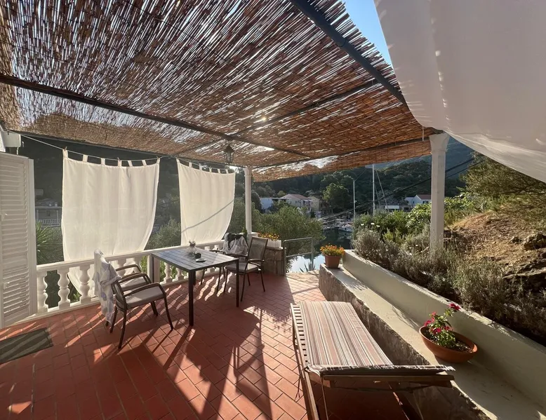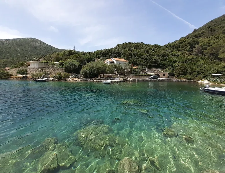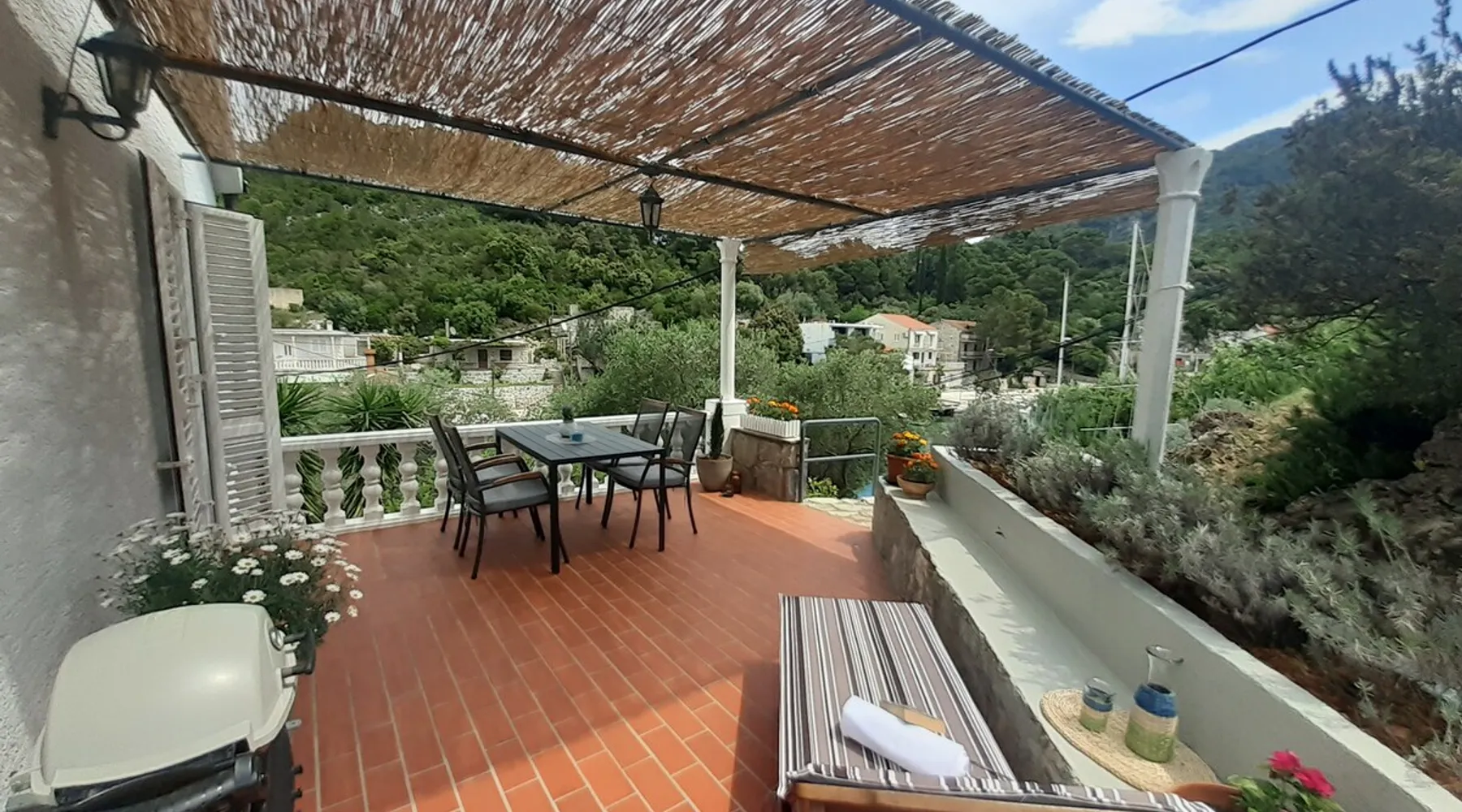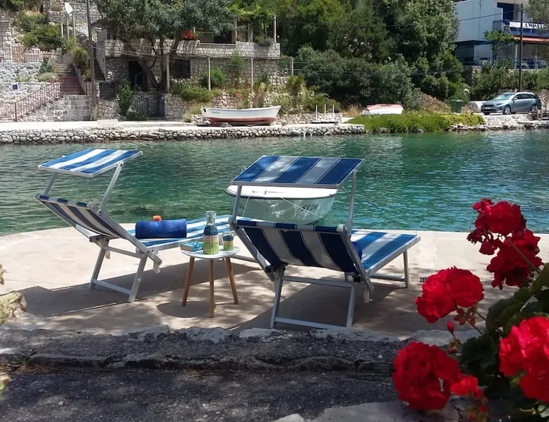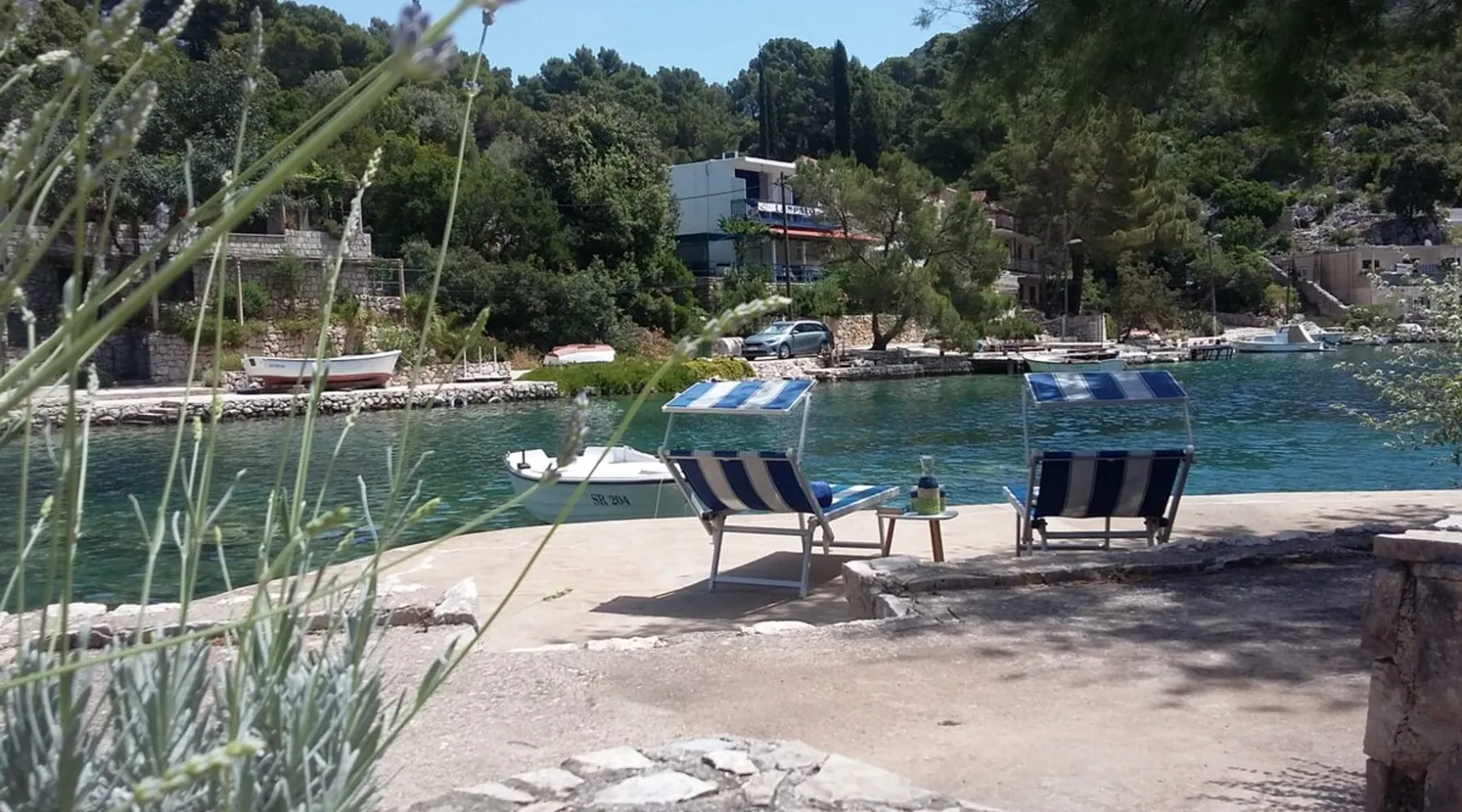 This spacious, comfortable 1st-floor apartment (55 sqm) has 2 bedrooms, 1 living/dining room with satellite TV, 1 kitchen, 1 large bathroom with 2 sinks, toilet, shower, washing machine, and a large terrace with a gas grill. It is located in Okuklje Fishing Cove on Mljet. They have their own private access to the sea, which they share with the guests of Apartment Bianca. A car park is right outside the door. Enjoy the peace and pure nature with us. We look forward to seeing you. The space The comfortable Nadine apartment, 55 square meters, is divided into 3.5 rooms and is located on the entire first floor. The apartment is located on the first floor of the house and offers all the amenities for a relaxing holiday. All windows are darkenable, have mosquito screens, and are soundproofed with two layers. The rooms are equipped with air conditioning, and the fully equipped kitchen includes a ceramic hob, microwave, dishwasher, dishes, kettle, coffee machine with filter, toaster, sandwich maker, and a basic selection of spices, vinegar, and oil. The gas grill on their terrace leaves nothing to be desired. The two bedrooms are equipped with king-size beds. In the living room, you will find a dining area, comfortable lounge chairs, and a satellite TV with sports channels, free Wifi in all rooms. The large bathroom has 2 sinks, a shower and a toilet, as well as a washing machine and a hair dryer. We provide towels and bed linen, as well as shampoo and shower gel. At your own sea access, which you share with guests Guest access You have your one Entrance to the apartment which is on the 1st floor. Also the terrace and the direct entrance to the sea is exclusive for you and the guests from Apartment Bianca. Other things to note Please let us know your approximate arrival time. Please note that we need a valid passport or identity card to register with the tourist office. There is a large car park right in front of the bay; if you don't want to drive into the bay, you can park there and walk the 200 meters to the apartment.