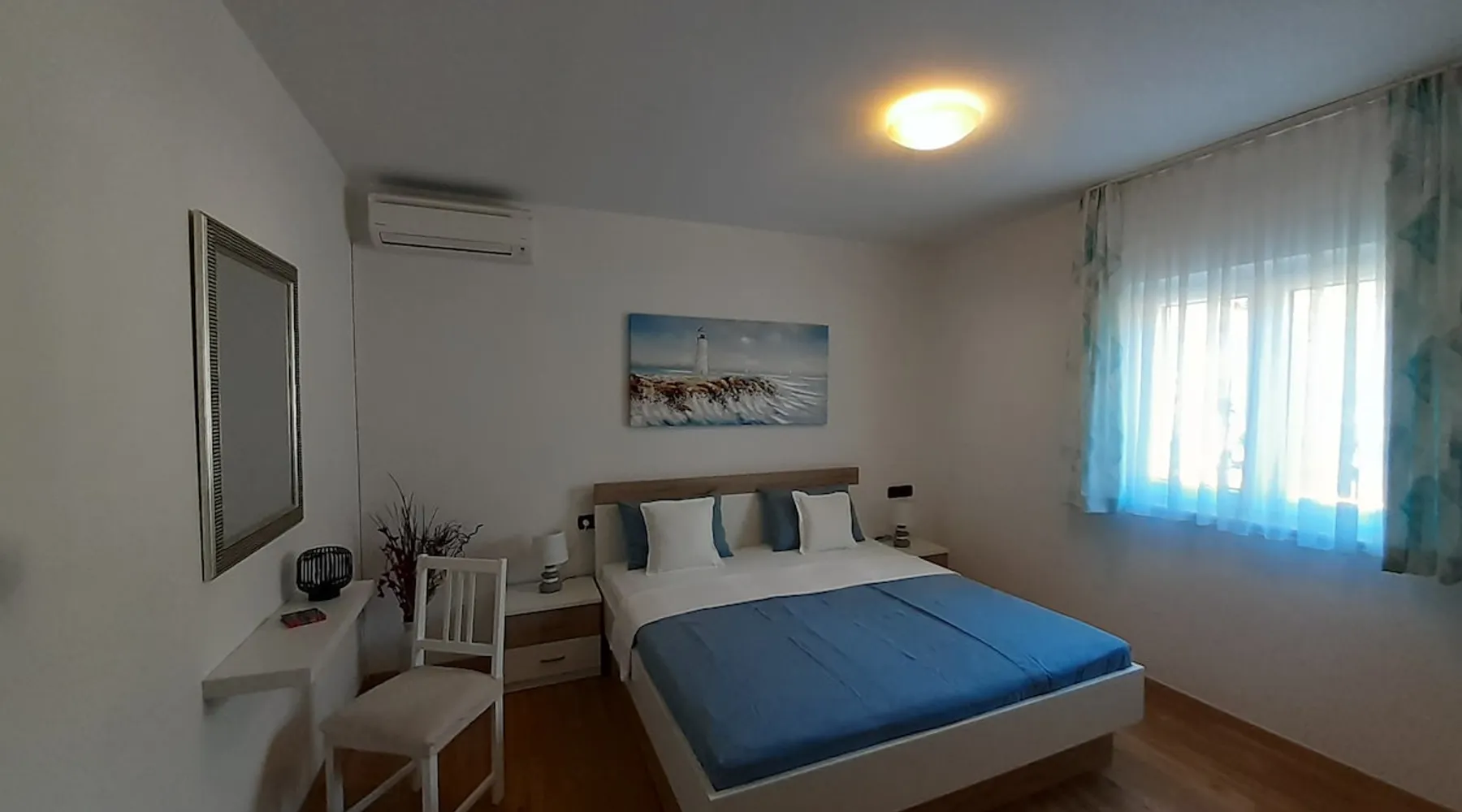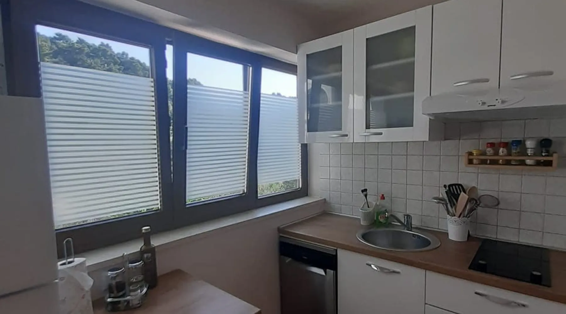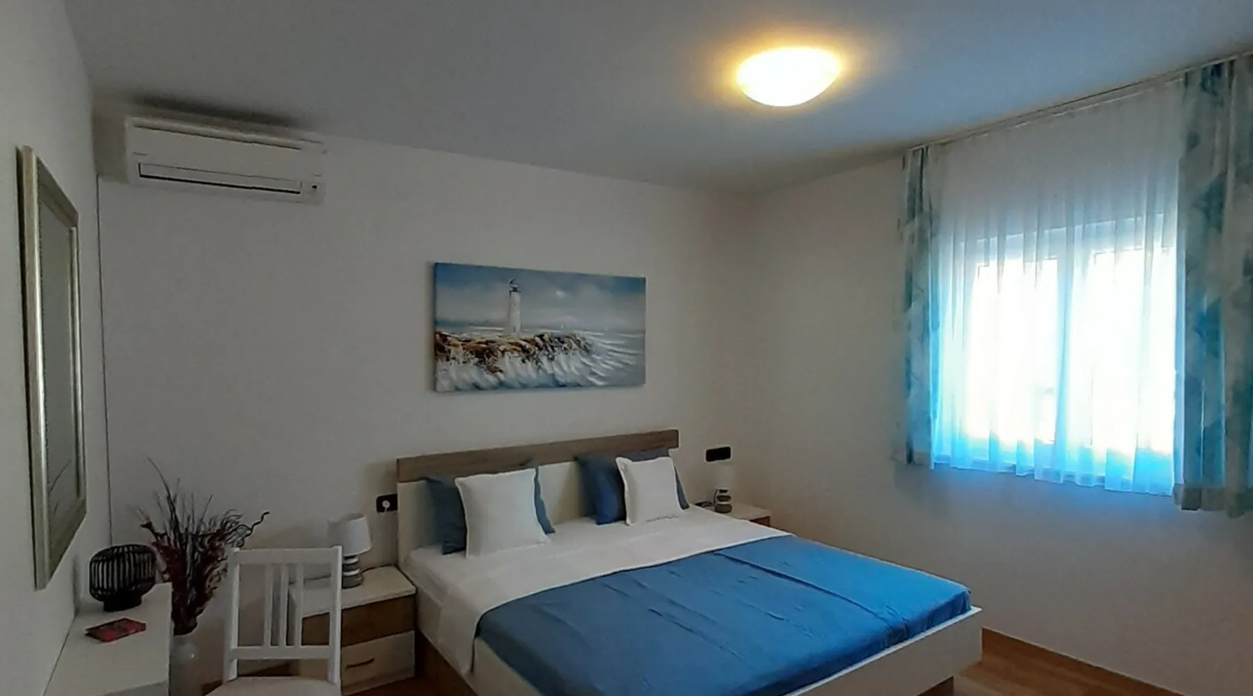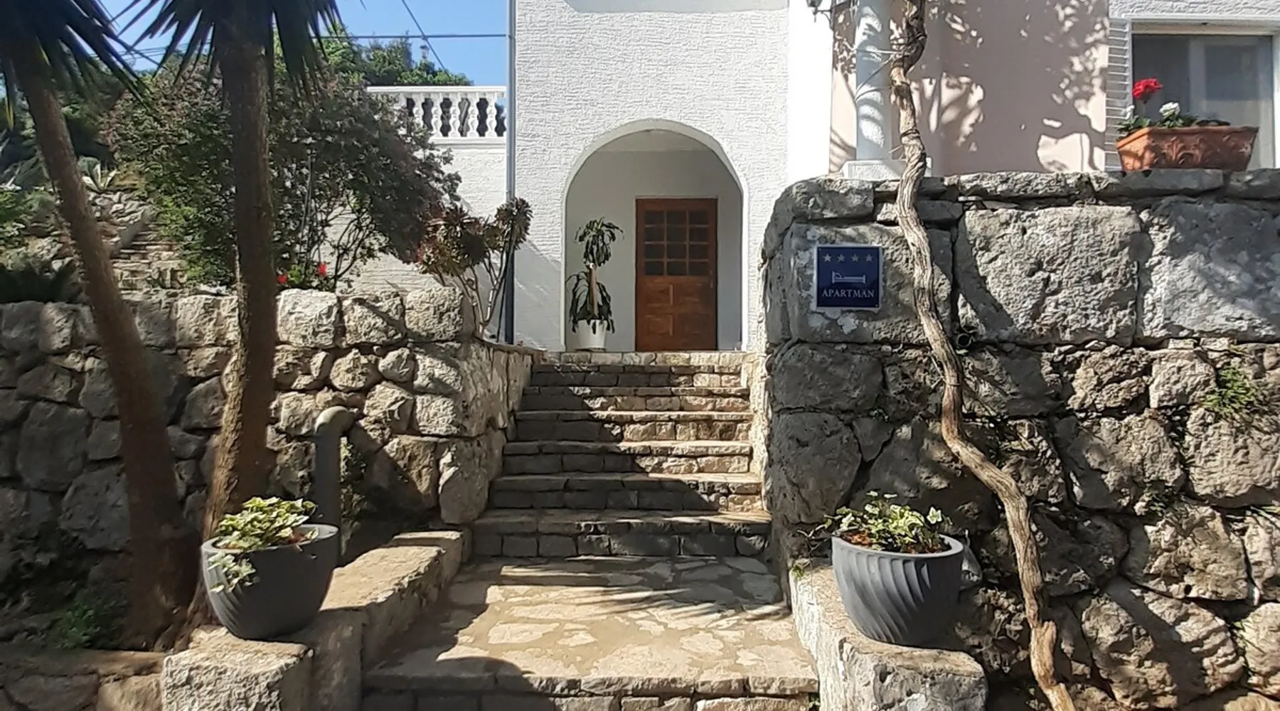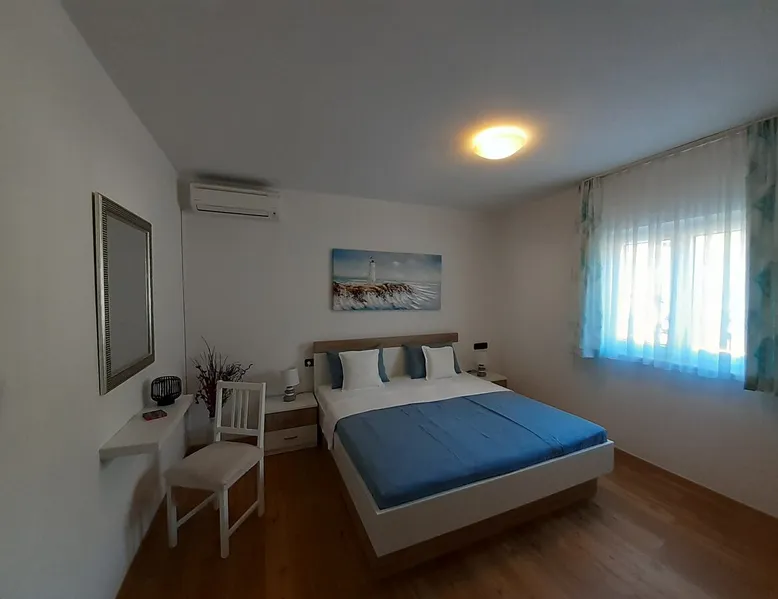 This spacious, comfortable 1st-floor apartment (55 sqm) has 2 bedrooms, 1 living/dining room with satellite TV, 1 kitchen, 1 large bathroom with 2 sinks, toilet, shower, washing machine, and a large terrace with a gas grill. It is located in Okuklje Fishing Cove on Mljet. They have their own private access to the sea, which they share with the guests of Apartment Bianca. A car park is right outside the door. Enjoy the peace and pure nature with us. We look forward to seeing you. The space The comfortable Nadine apartment, 55 square meters, is divided into 3.5 rooms and is located on the entire first floor. The apartment is located on the first floor of the house and offers all the amenities for a relaxing holiday. All windows are darkenable, have mosquito screens, and are soundproofed with two layers. The rooms are equipped with air conditioning, and the fully equipped kitchen includes a ceramic hob, microwave, dishwasher, dishes, kettle, coffee machine with filter, toaster, sandwich maker, and a basic selection of spices, vinegar, and oil. The gas grill on their terrace leaves nothing to be desired. The two bedrooms are equipped with king-size beds. In the living room, you will find a dining area, comfortable lounge chairs, and a satellite TV with sports channels, free Wifi in all rooms. The large bathroom has 2 sinks, a shower and a toilet, as well as a washing machine and a hair dryer. We provide towels and bed linen, as well as shampoo and shower gel. At your own sea access, which you share with guests Guest access You have your one Entrance to the apartment which is on the 1st floor. Also the terrace and the direct entrance to the sea is exclusive for you and the guests from Apartment Bianca. Other things to note Please let us know your approximate arrival time. Please note that we need a valid passport or identity card to register with the tourist office. There is a large car park right in front of the bay; if you don't want to drive into the bay, you can park there and walk the 200 meters to the apartment.