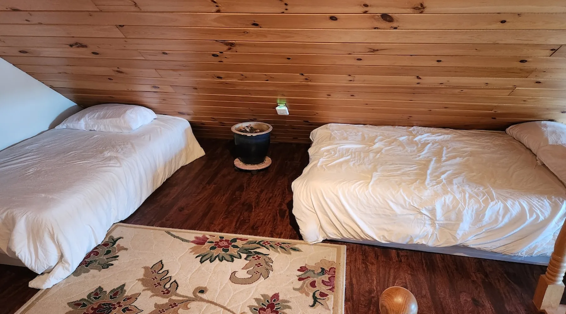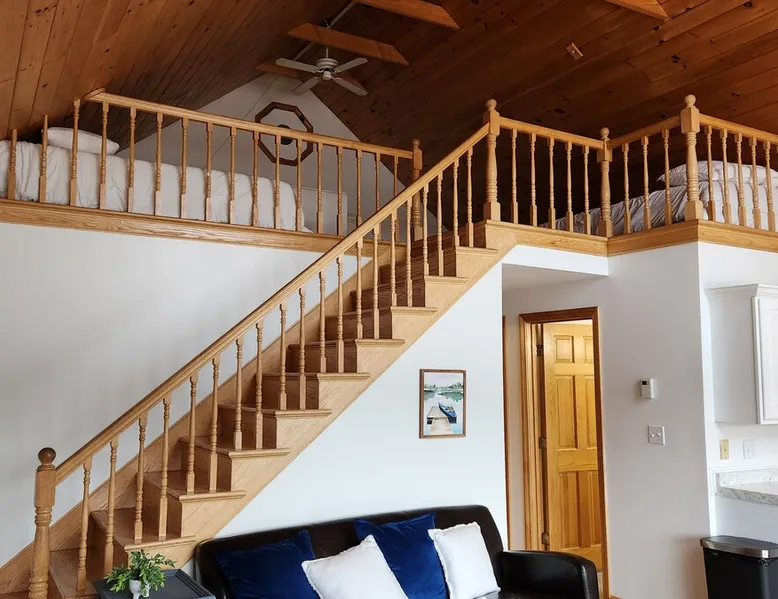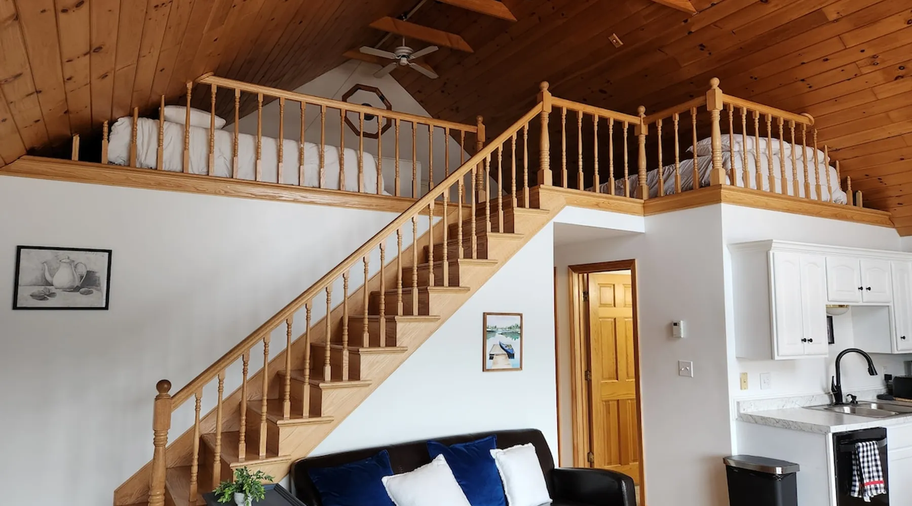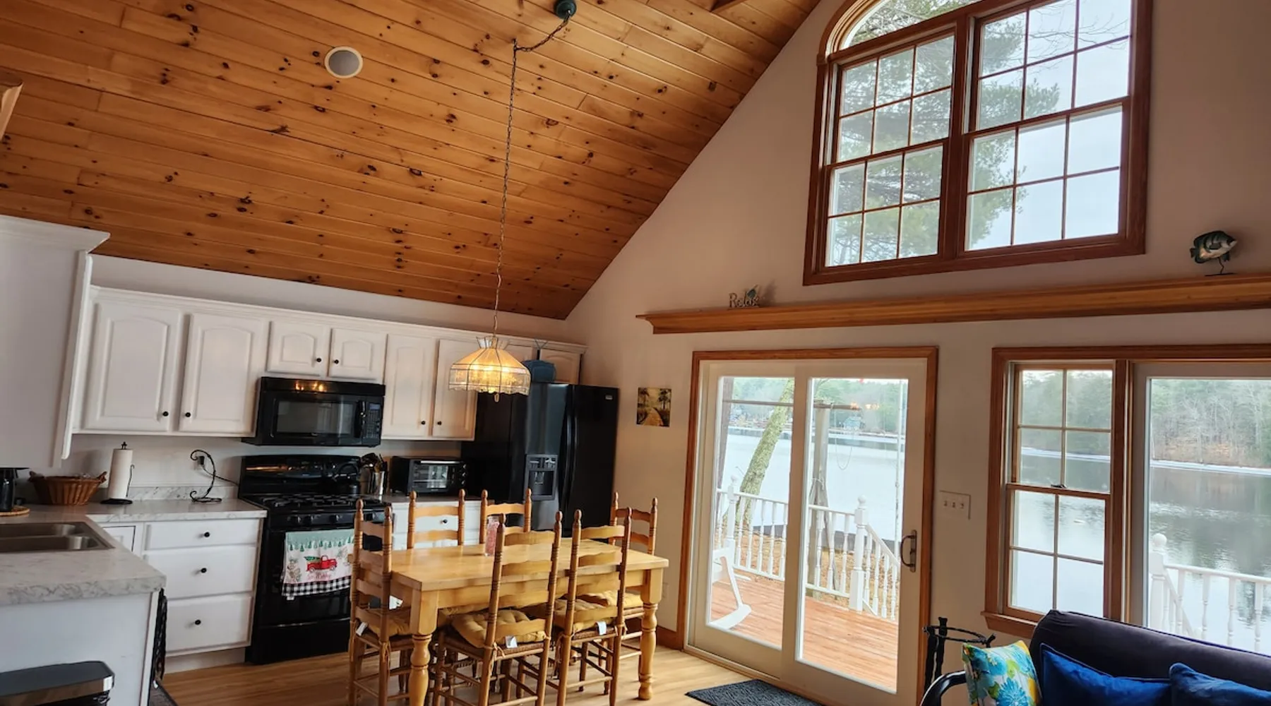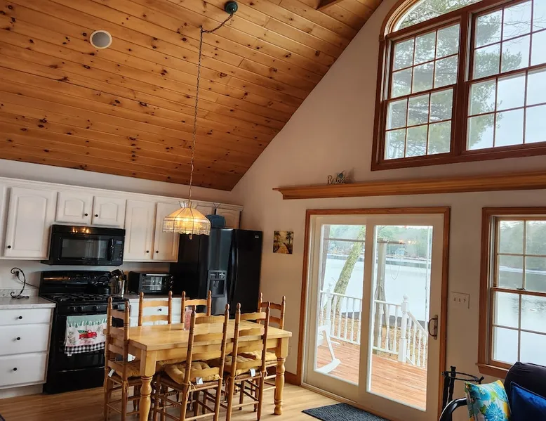 Recently updated, vacation oasis-like setting. Perfect to relax, recharge, and commune with nature. Enjoy stunning views of the lake. There is a coffee maker (BYOC), fridge, sink, full size oven and microwave. Cooking and eating utensils. 2 Bedrooms with separate loft sleeping area. Large backyard with horseshoes and a one-on-one basketball court
