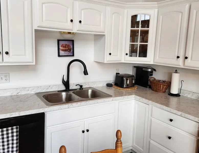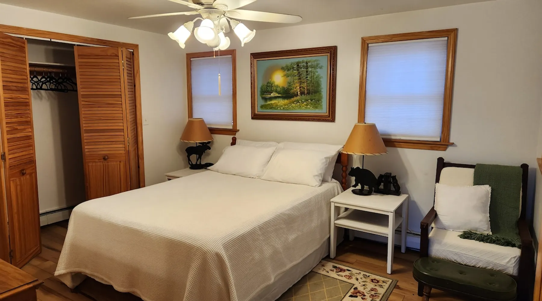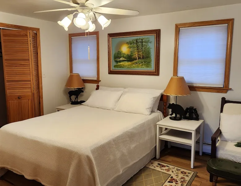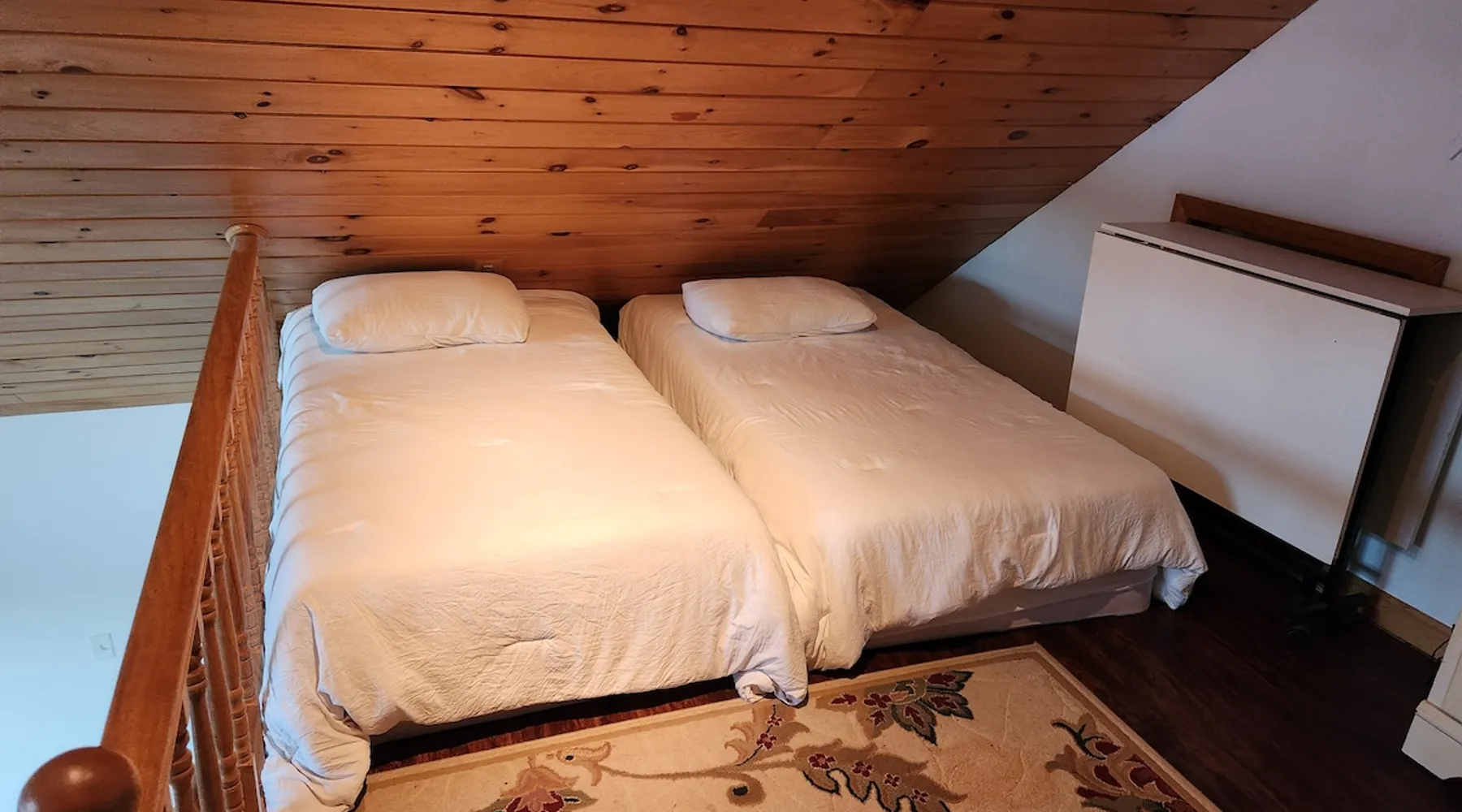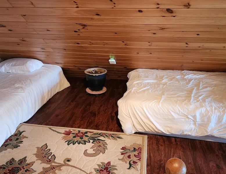 Recently updated, vacation oasis-like setting. Perfect to relax, recharge, and commune with nature. Enjoy stunning views of the lake. There is a coffee maker (BYOC), fridge, sink, full size oven and microwave. Cooking and eating utensils. 2 Bedrooms with separate loft sleeping area. Large backyard with horseshoes and a one-on-one basketball court