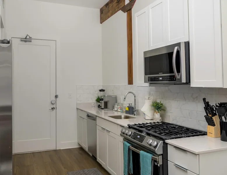 Welcome to our brand new studio at Macaroni Lofts located in the heart of downtown, minutes away from Kirklin Clinic, Children's of Alabama and UAB Medical, making it the perfect location for medical professionals, family members, and anyone visiting Birmingham. Our thoughtfully designed studios offer all the comforts you need. The unit comes with a Queen bed, full kitchen with stainless steel appliances, and full-size washer and dryer for your convenience. Enjoy your stay in Birmingham with us. Other things to note Street parking (free and metered) available. Garage parking is not included. Thank you !!