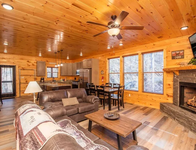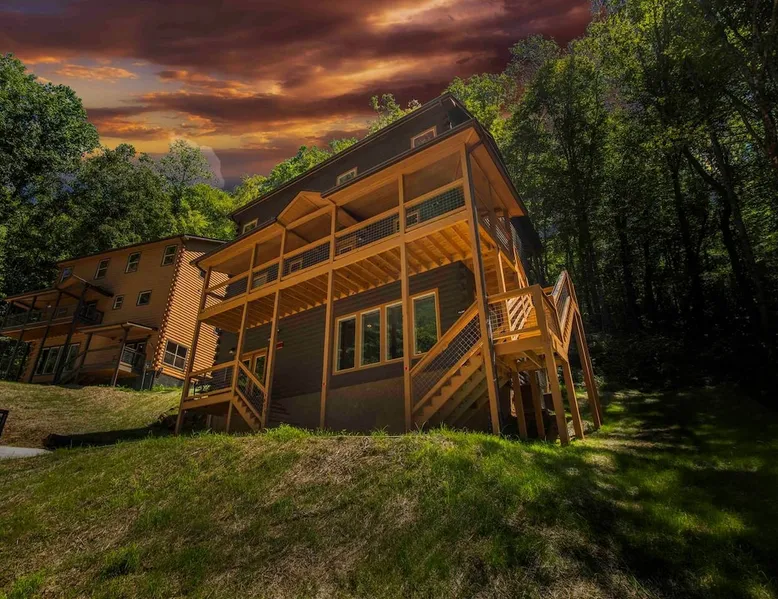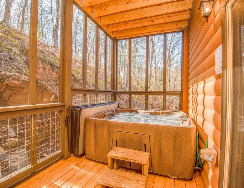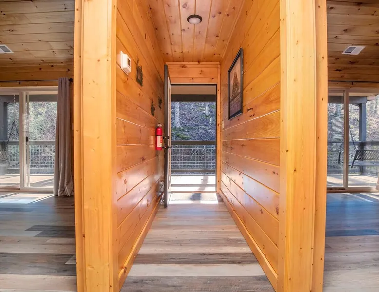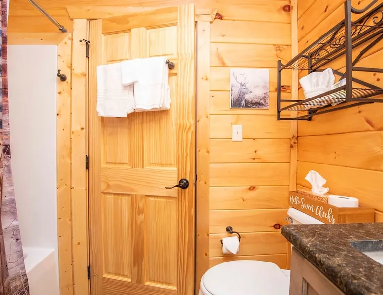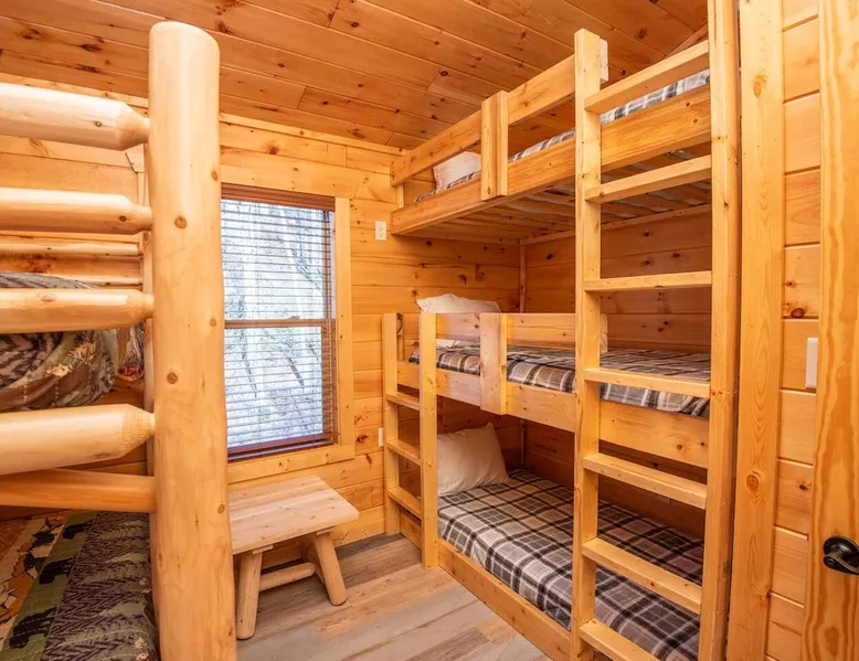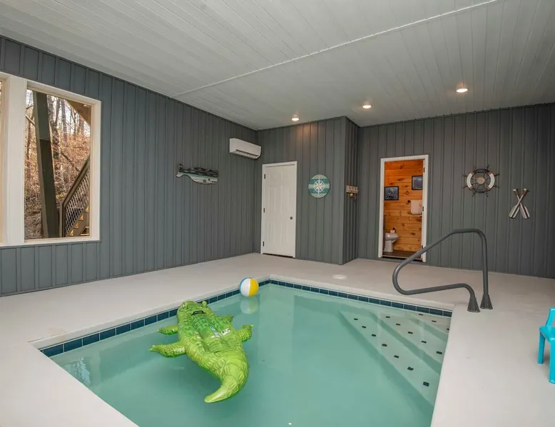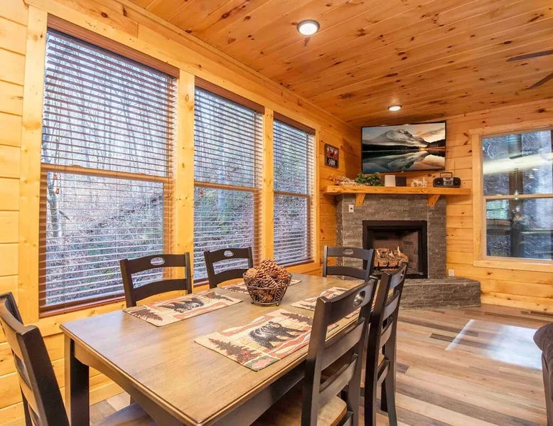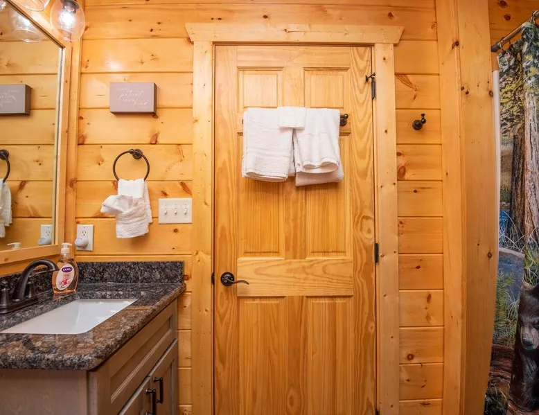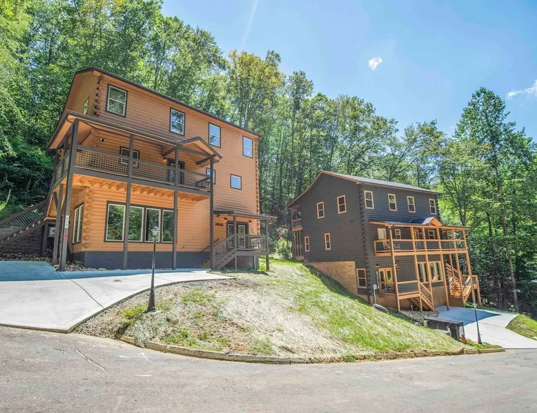 This is advertising TWO 5BR/6BA pool cabins that are next to each other. Twin Peeks LEFTY & Twin Peeks RIGHTY Use the map feature to find these all together. Each cabin sleeps 15 (Maximum of 16 humans and 1 dog under 20 lb. allowed per cabin), The space These are actually TWO 5 BEDROOM, 6 BATHROOM cabins built in 2023, standing next to each other. Each cabin has a private heated pool, awesome game room, and theater. EACH OF TWO CABINS ARE 5BR/6BA built in 2023, Includes a theater bedroom + PRIVATE heated indoor pool + Game room, sleeps 15 (Maximum of 16 humans and 4 pre-approved dogs allowed per cabin), secluded in the woods incredible peace and privacy views with two private back decks (ONE SCREENED-IN) facing woods and ridge tops. It has a large heated swimming pool, in the ground level of this building for private access. It has a full eat-in-kitchen that seats 14, laundry, huge game room/arcade that can’t be beat, WiFi, hot tub, a gas fireplace in the great room (Oct-Mar), charcoal grill outside, and a gas stove for gourmet cooking. Twin Peeks-Lefty & Righty are newly constructed beautiful 5 bedroom (each with a 43″ UHD Roku TV & ensuite bathroom) log cabin that’s in a secluded, wooded neighborhood close to everything. It’s secluded from the noise and traffic in probably the most convenient and accessible neighborhood in the area, yet a very short drive away from everything you could ever want to do in this area. It is on city water, sewer and gas, so no well water/septic/heat issues here! The 2 decks give everyone plenty of space to enjoy the serenity of this private wooded and mountainous setting, complete with 3 double swings and 6 rocking chairs for your relaxation. In fact EVERY ROOM in this magnificent cabin has a wooded view! Every TV in this cabin is a 4K Ultra HD (2160p) HDR Roku/Smart TV (75″ Theater, 55″ Family room and game room, 43″ bedrooms)! This is advertising TWO 5BR/6BA pool cabins that are next to each other. Each has a full eat-in-kitchen that seats 14, laundry, huge game room/arcade that can’t be beat, WiFi, hot tub, a gas fireplace in the great room (Oct-Mar), charcoal grill outside, and a gas stove for gourmet cooking. Twin Peeks-Lefty is a newly constructed beautiful 5 bedroom (each with a 43″ UHD Roku TV & ensuite bathroom) log cabin that’s in a secluded, wooded neighborhood close to everything. It’s secluded from the noise and traffic in probably the most convenient and accessible neighborhood in the area, yet a very short drive away from everything you could ever want to do in this area. It is on city water, sewer and gas, so no well water/septic/heat issues here! The 2 decks give everyone plenty of space to enjoy the serenity of this private wooded and mountainous setting, complete with 3 double swings and 6 rocking chairs for your relaxation. In fact EVERY ROOM in this magnificent cabin has a wooded view! Every TV in this cabin is a 4K Ultra HD (2160p) HDR Roku/Smart TV (75″ Theater, 55″ Family room and game room, 43″ bedrooms)! The first floor has the incredible attached and insulated heated pool room (with a private heated indoor pool, sitting area, and a full bathroom)! While the kids are having their own fun in the pool room, the guys can be enjoying the game-room/man-cave in complete peace and quiet in the room next door. Next to the pool is a huge game room (with a half bathroom) with all championship quality games of 8′ slate billiards table, 8′ air hockey table, shuffleboard table, foosball, 107 game race driving game*, and a 4-player 17,000 game multi-arcade system or tons of family fun and laughs together. So that’s over 17,000 total games available to entertain you! *This game list includes all your favorites such as Pac-man, Tetris, Galaga, Galaxy, Centipede, Pinball, Frogger, Donkey Kong, and many sports & adventure games as well … all on a big screen! * Righty only. The third floor has a 12 seat theater (with a full bathroom and sofa-bed) complete with a theater-like Surround sound system, and Blu-ray DVD player. There are two ensuite bedrooms with king beds, and one ensuite bedroom with triple twin bunks, and queen bunks. These 4 bedrooms share 2 Jack-n-Jill bathrooms. The deck is accessible from the common hallway and both king bedrooms. Each cabin has: Bedding top floor: Ensuite 1- 1 King / Ensuite 2- 1 King / Ensuite 3- 1 Queen/Queen bunk bed, 1 Twin/Twin/Twin triple bunk bed / Ensuite 4 (Theater)- 1 Queen sofa sleeper Bedding middle floor: Ensuite 5- 1 King. Jack 'n Jill bathroom shared between BR1/3 and BR 2/4. Outside, there’s a charcoal grill and parking for 4 cars. There is only and one other cabin about 100′ away within sight. This lends to a very serene wooded setting. It’s just you and Mother Nature here … yet you are close to everything! We are on a city water and sewer system, so no worries there. This cabin is located just a few miles off the main parkway of Sevierville, within short driving distance to many shows and restaurants, and only minutes from Dollywood, Gatlinburg, and all the fun that Pigeon Forge and The Smokies have to offer. While this location provides privacy and seclusion, it also has the benefit of providing multiple short driving routes to all area attractions, which is helpful to avoid high traffic areas. This property has everything you could want for your relaxation and entertainment, so you really might not ever want to leave. Twin Peeks cabins sit in one of the nicest neighborhoods (Saddleback Ridge) in the area due to its safe, peaceful surroundings, and proximity to all this area has to offer. This neighborhood has an outdoor pool with a majestic mountain view available for your seasonal use as well. Guests may also enjoy the Pigeon Forge community center outdoor pool with slide and spray feature, indoor heated pool, walking track, aerobics, racquetball, volleyball and basketball courts, bowling, childcare, etc., all for a low daily fee**. Fishermen may want