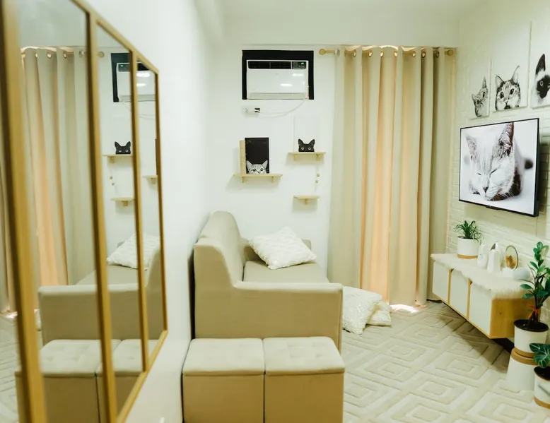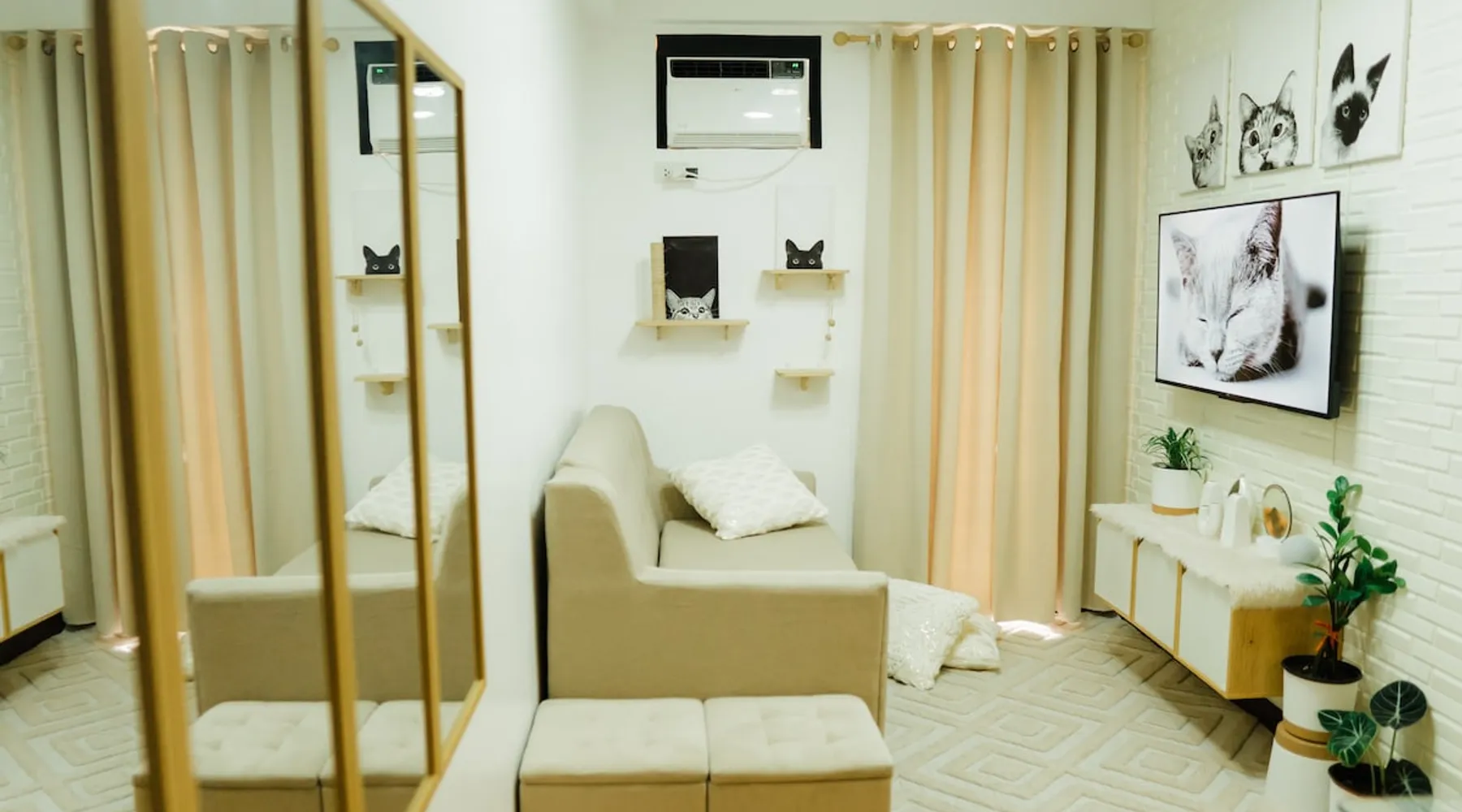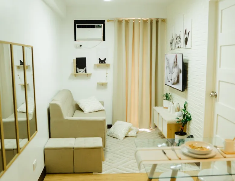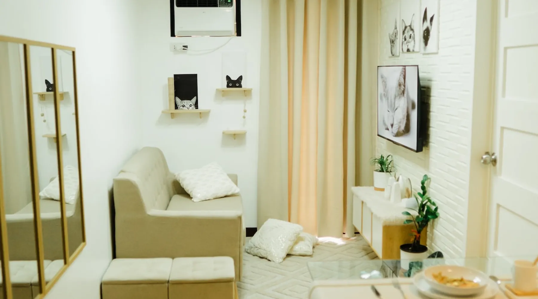We are open for parents and fur parents! Highlights: SMART functionality powered by Amazon Alexa Fully air-conditioned unit (living room and bedroom wifi voice-controlled) Smart lock Double door no frost fridge Cooking wares Dinnerware set Basic condiments provided Handheld steam iron Hair blower Hot shower Bidet 8in Full double memory foam bed Full double pull-out bed 43" Smart tv 50mbps Wifi Netflix, HBO, Disney and Premium Spotify Hygiene kit provided Pool access for 5pax "Pay" parking Other things to note For bookings with the Monthly rate (bookings above 28 days) Utility bills are NOT included (water and electricity) Although very minimal as appliances are inverters and efficient.