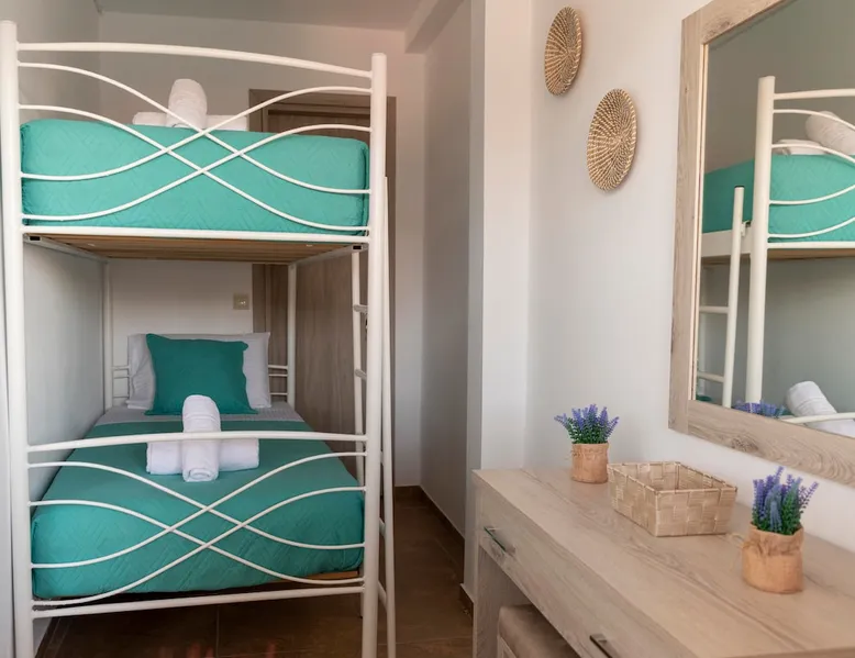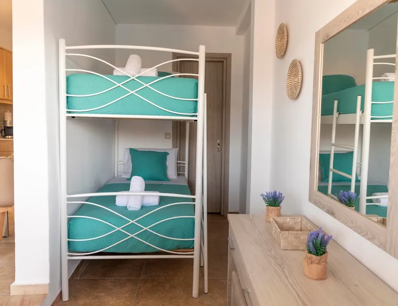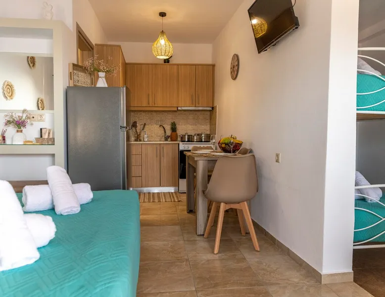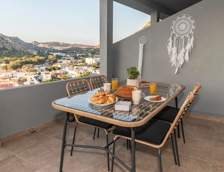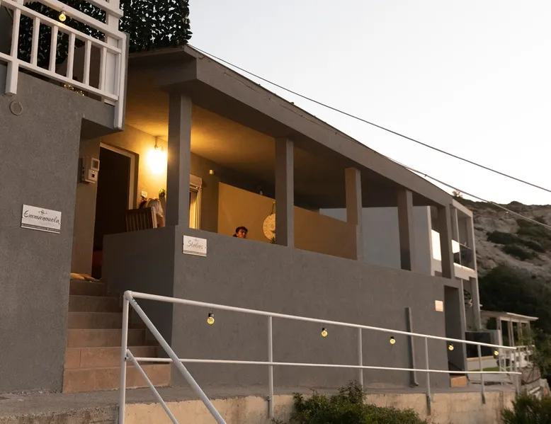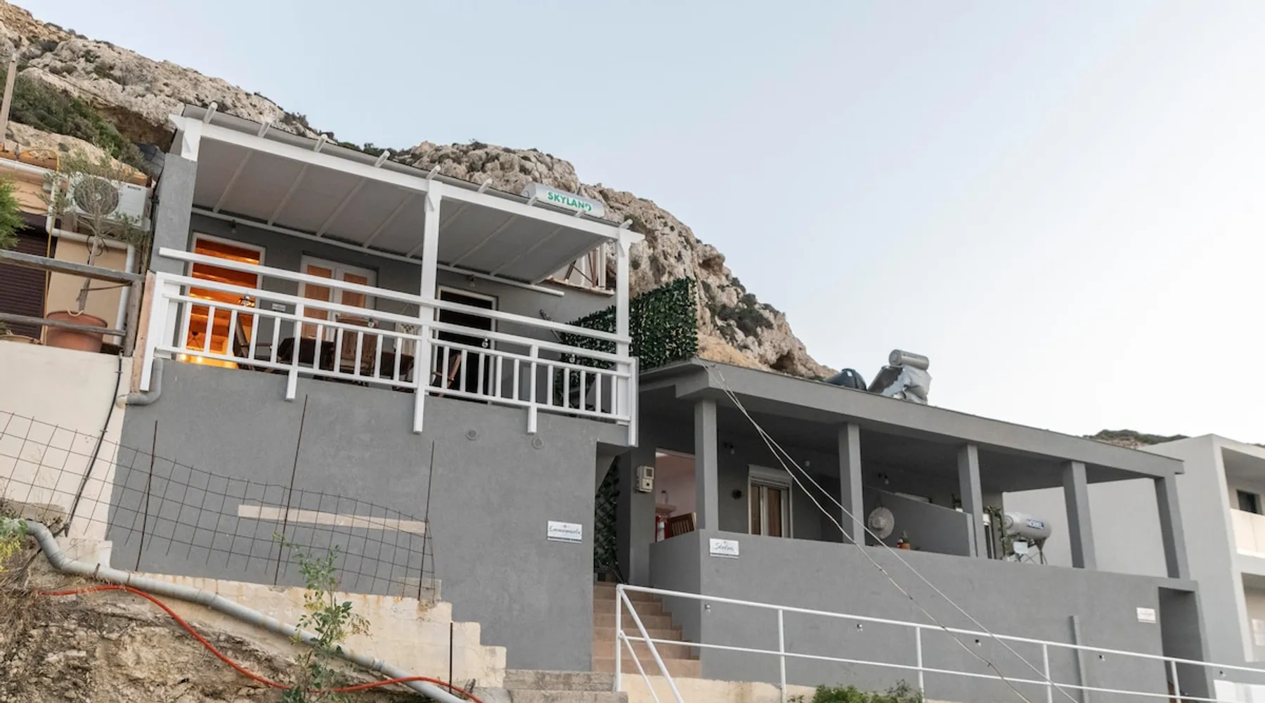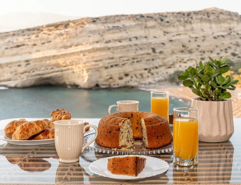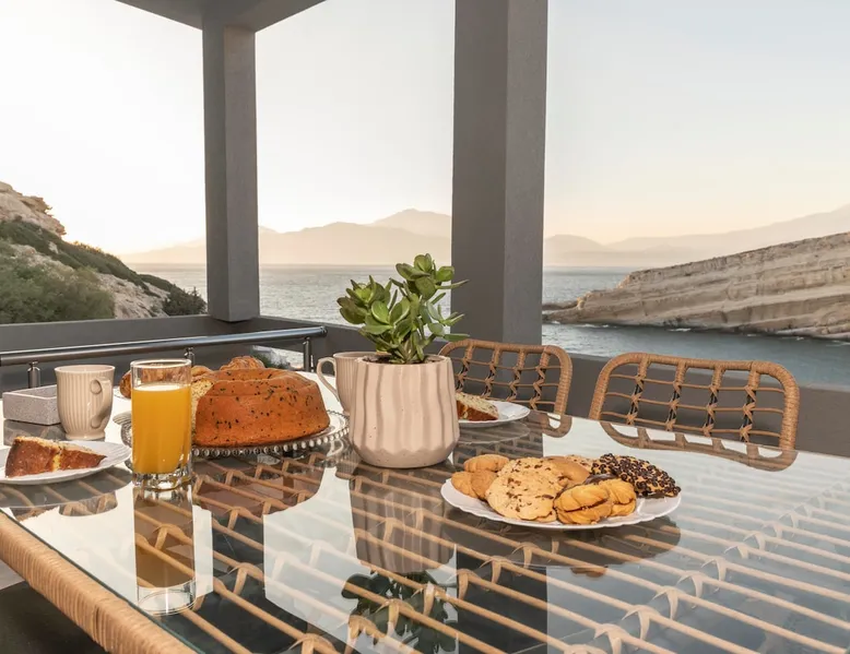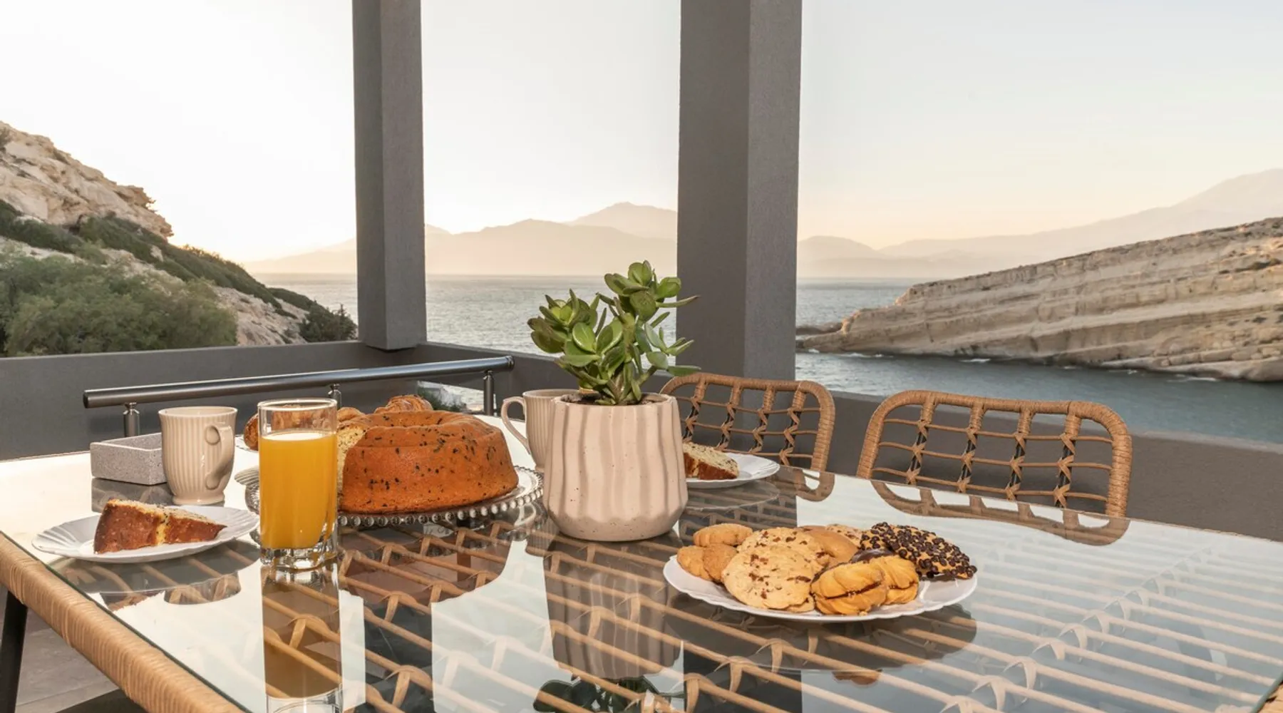 Charming apartment with amazing sea view on the hill of Matala. It is newly renovated and it has a breath taking open view to the Matala beach and the caves. It has a joined bedroom and kitchen area, a second smaller bedroom and it offers space for 4 guests. The big balcony with the open sea view directly in front of the Matala beach, invites you for breakfast, relaxing afternoons, family dinners and wonderful evenings with sunsets and a light breeze... The space Perfect for families, couples and friends who want to enjoy the Matala spirit and its unique atmosphere. Georgia Apartment can accommodate 4 people in a warm and welcoming atmosphere. The bedroom and kitchen area have an open formation and a lot of light and the breathtaking view of the Matala beach and the caves. The modern furniture, the open space and the amazing view make you feel comfortable from the first moment. The balcony invites you to eat, but also offers enough space for a game night or just an impressive sunset. There is one bedroom with 1 double bed and a second bedroom with a bunk bed. The kitchen is fully equipped. Every room has AC. The bathroom has a cabin with shower and is very modern. Georgia Apartment is the ideal place for an unforgettable stay in Matala. It is the perfect place with breathtaking view. It offers you serenity and yet it is very close to the taverns, cafes and the night life. Registration Details 00002124877