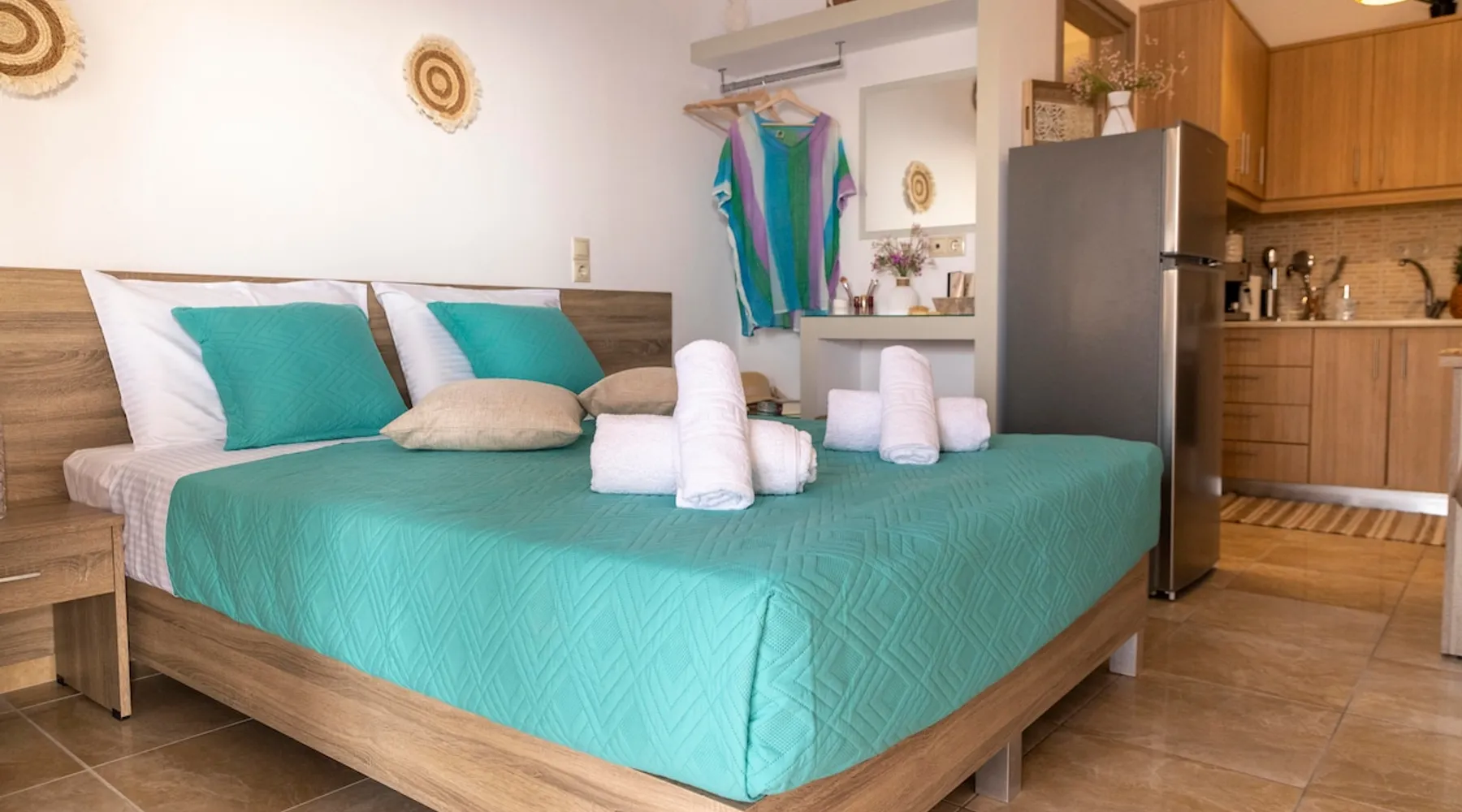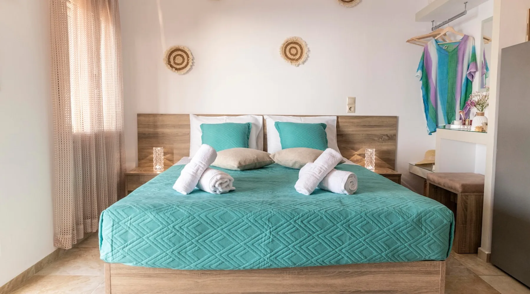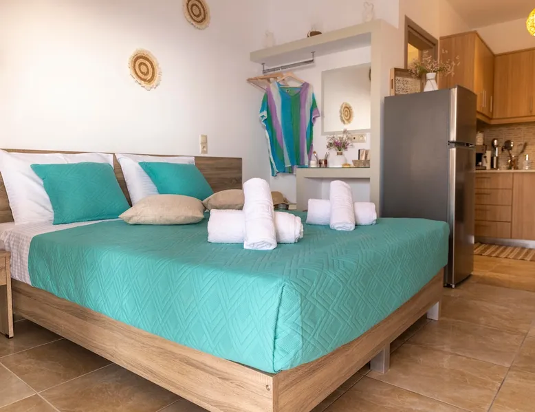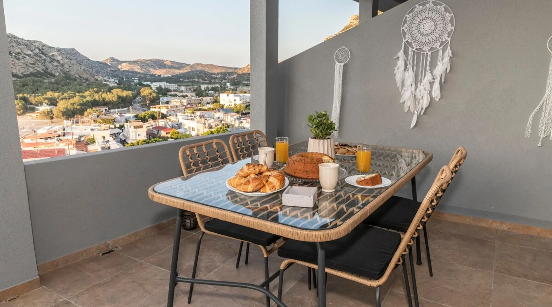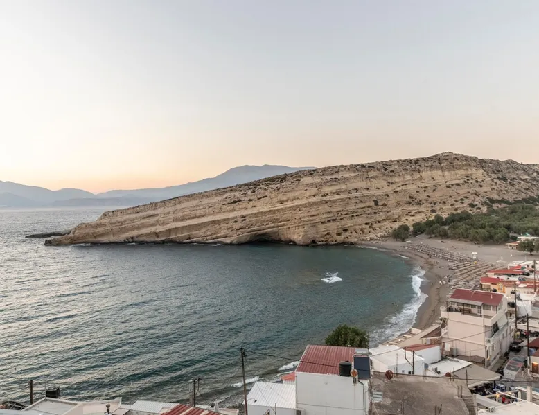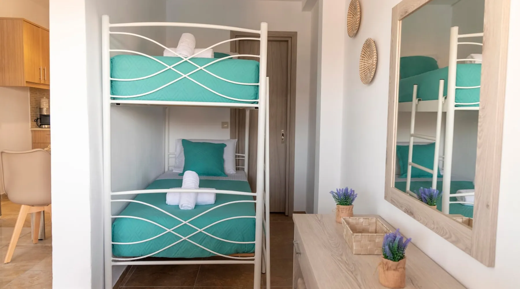 Charming apartment with amazing sea view on the hill of Matala. It is newly renovated and it has a breath taking open view to the Matala beach and the caves. It has a joined bedroom and kitchen area, a second smaller bedroom and it offers space for 4 guests. The big balcony with the open sea view directly in front of the Matala beach, invites you for breakfast, relaxing afternoons, family dinners and wonderful evenings with sunsets and a light breeze... The space Perfect for families, couples and friends who want to enjoy the Matala spirit and its unique atmosphere. Georgia Apartment can accommodate 4 people in a warm and welcoming atmosphere. The bedroom and kitchen area have an open formation and a lot of light and the breathtaking view of the Matala beach and the caves. The modern furniture, the open space and the amazing view make you feel comfortable from the first moment. The balcony invites you to eat, but also offers enough space for a game night or just an impressive sunset. There is one bedroom with 1 double bed and a second bedroom with a bunk bed. The kitchen is fully equipped. Every room has AC. The bathroom has a cabin with shower and is very modern. Georgia Apartment is the ideal place for an unforgettable stay in Matala. It is the perfect place with breathtaking view. It offers you serenity and yet it is very close to the taverns, cafes and the night life. Registration Details 00002124877