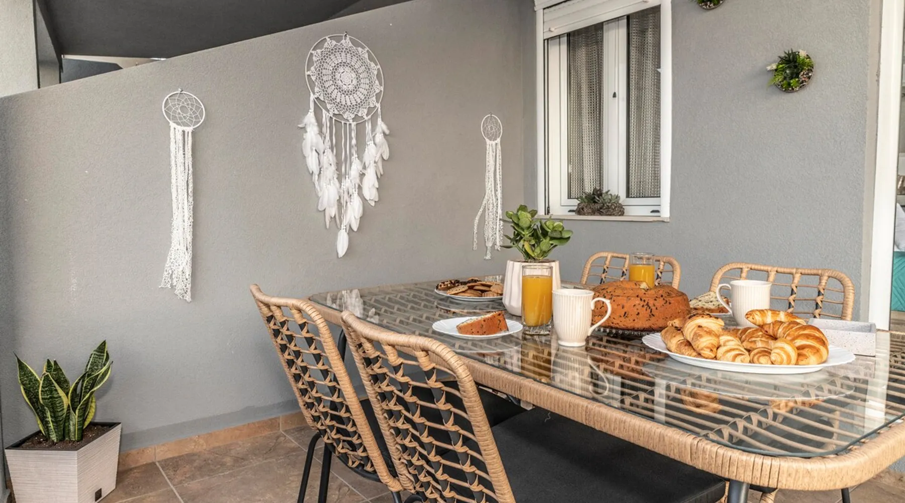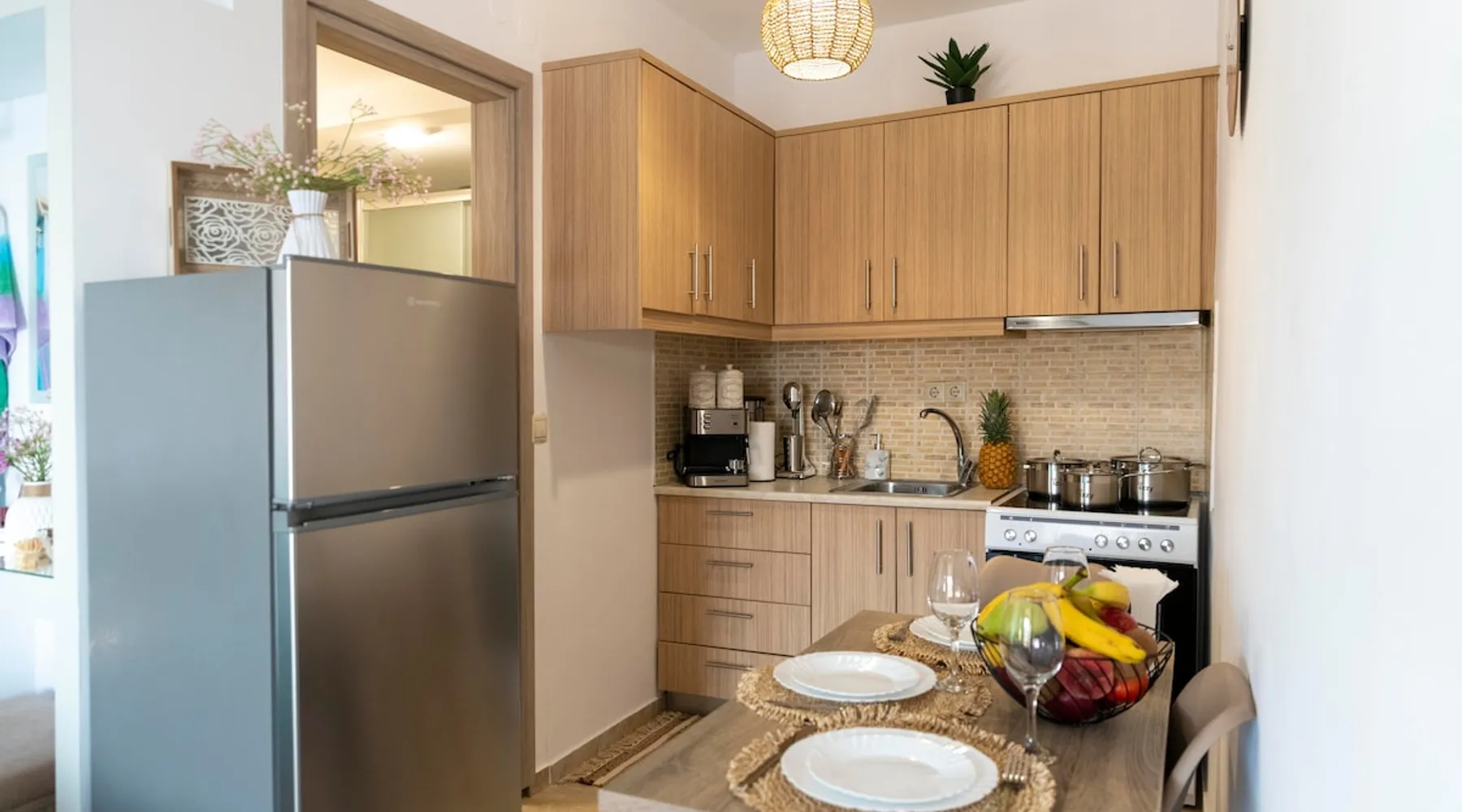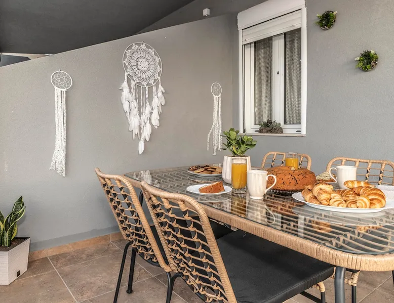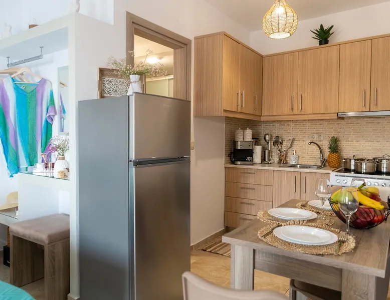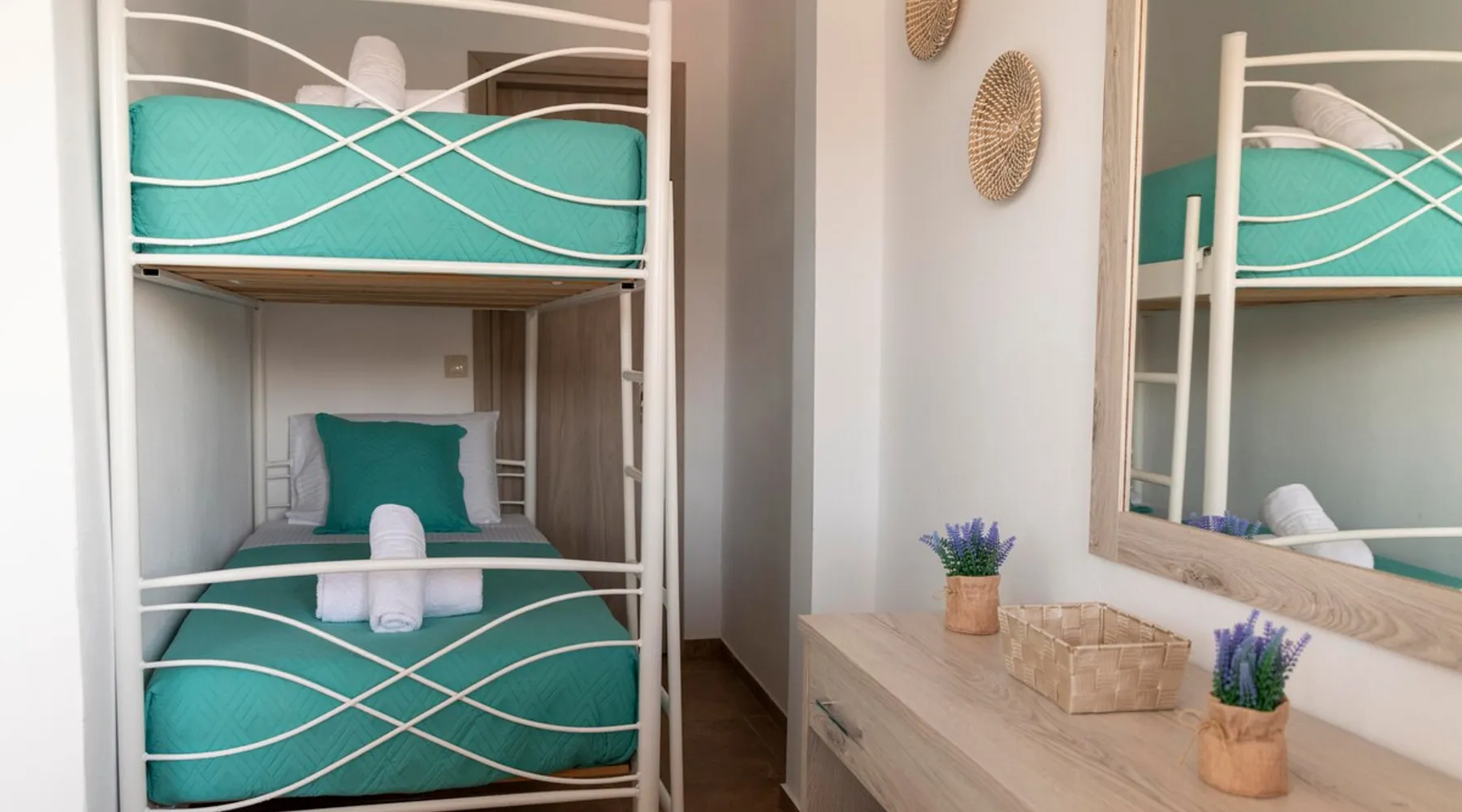 Charming apartment with amazing sea view on the hill of Matala. It is newly renovated and it has a breath taking open view to the Matala beach and the caves. It has a joined bedroom and kitchen area, a second smaller bedroom and it offers space for 4 guests. The big balcony with the open sea view directly in front of the Matala beach, invites you for breakfast, relaxing afternoons, family dinners and wonderful evenings with sunsets and a light breeze... The space Perfect for families, couples and friends who want to enjoy the Matala spirit and its unique atmosphere. Georgia Apartment can accommodate 4 people in a warm and welcoming atmosphere. The bedroom and kitchen area have an open formation and a lot of light and the breathtaking view of the Matala beach and the caves. The modern furniture, the open space and the amazing view make you feel comfortable from the first moment. The balcony invites you to eat, but also offers enough space for a game night or just an impressive sunset. There is one bedroom with 1 double bed and a second bedroom with a bunk bed. The kitchen is fully equipped. Every room has AC. The bathroom has a cabin with shower and is very modern. Georgia Apartment is the ideal place for an unforgettable stay in Matala. It is the perfect place with breathtaking view. It offers you serenity and yet it is very close to the taverns, cafes and the night life. Registration Details 00002124877