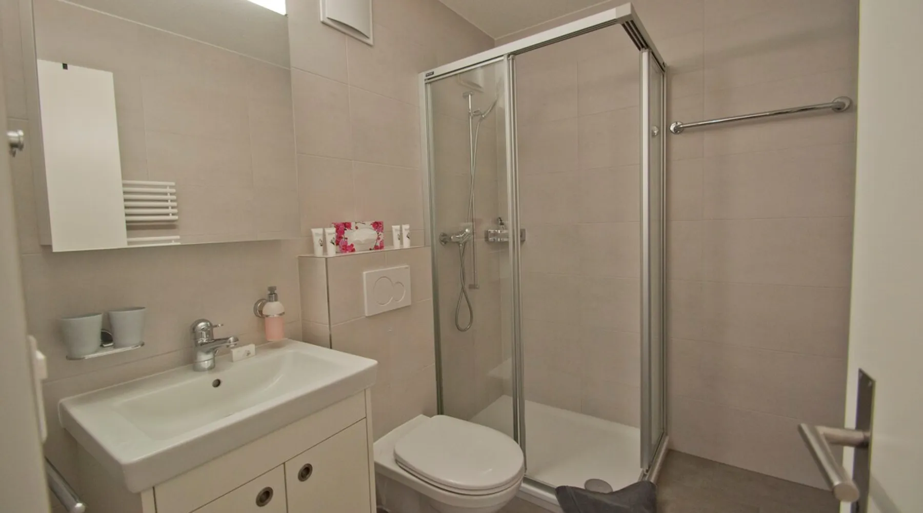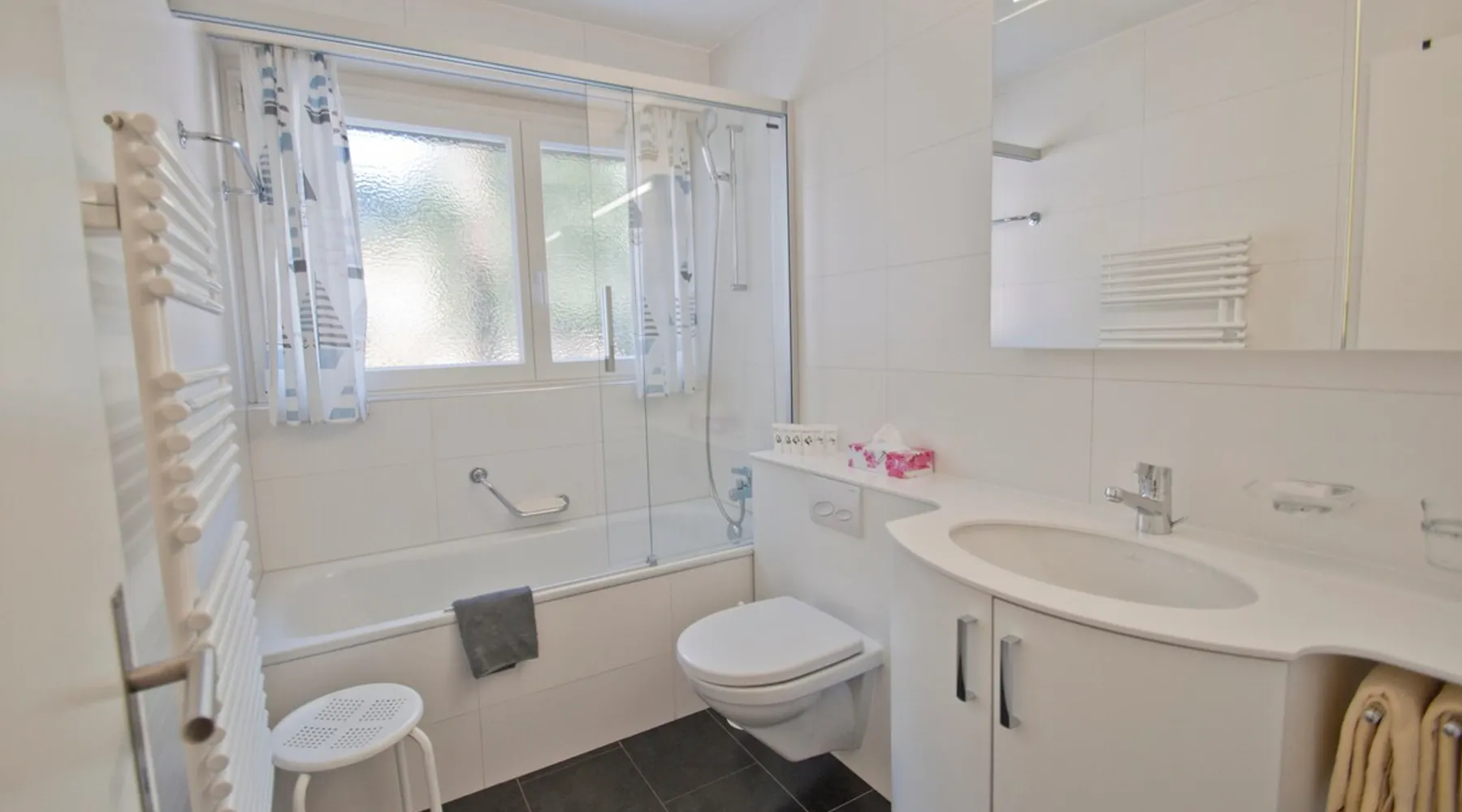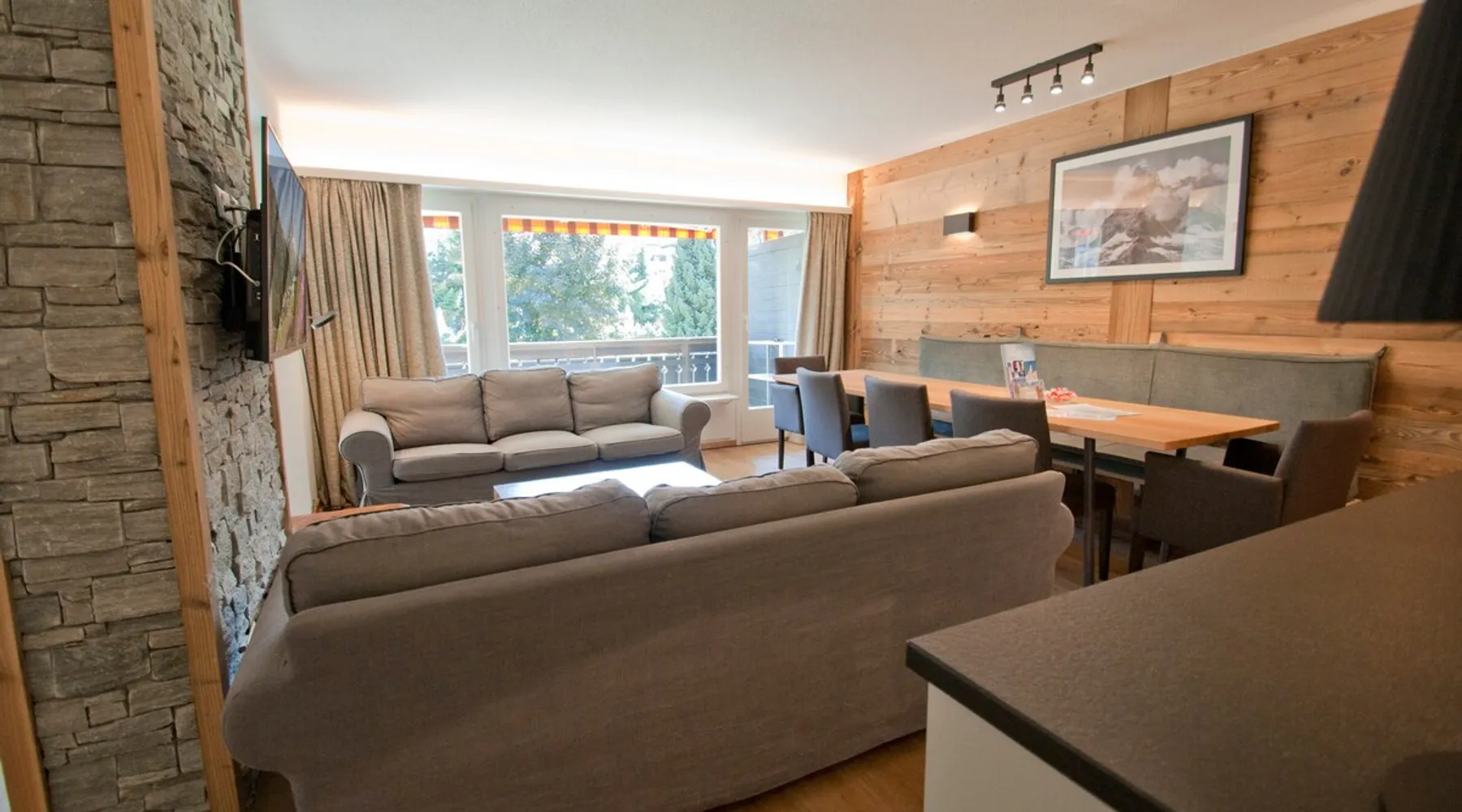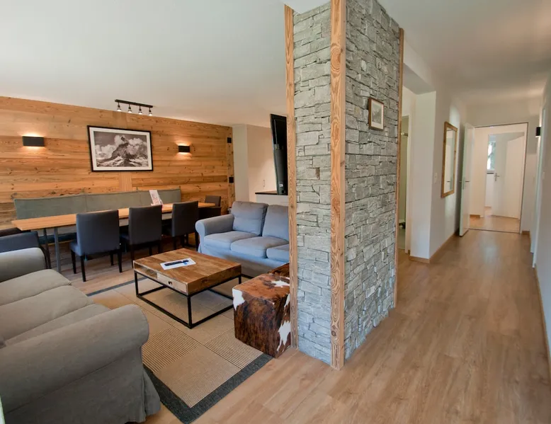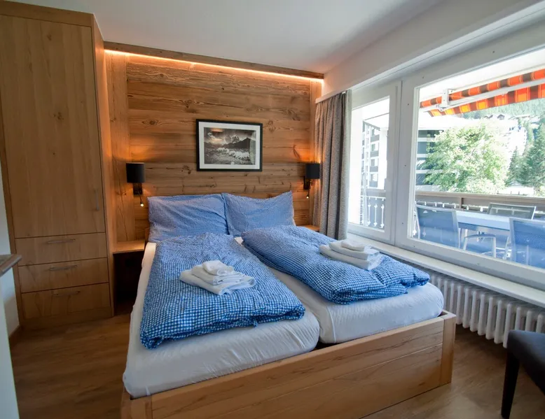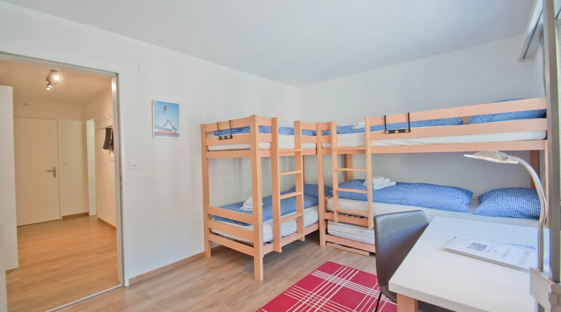 Haus Matten is located only minutes of walking away from the Sunnegga valley station, the centre of Zermatt and the shops. Apartment Breithorn is located on the first floor and has amazing views of the Matterhorn and surrounding mountains. A fantastic location for both summer and winter experiences in the mountains. The apartment is very suitable for families, and the Obere Matten playgrounds are only 5 minutes of walking away. The space This cosy yet modern furnished apartment has an open living room- and dining area, a fully equipped kitchen (dishwasher, Nespresso machine, cheese fondue-set, water kettle), and a spacious southfacing balcony with Matterhorn views. Apartment Breithorn comprises one double bedroom (180 x 200 CM), one bedroom with two bunkbeds (90 x 200 CM) and another double bedroom (180 x 200 CM). The apartment has three seperate bathrooms, with two bathrooms comprising a WC / shower each and one bathroom comprising a WC / shower/bath combination. Free WIFI, TV and a furnished balcony with Matterhorn and other mountain views. Additional amenities include: kitchen utilities provided, flat-screen TV, cot on request, elevator and shared ski room in the building. The nearest valley stations (Sunnegga and Gornergrat Railway) and the centre of Zermatt are a short 3-minute walk away from Haus Matten. There is a bus stop on your door step, which conveniently brings you to the Matterhorn Glacier Paradise valley station within 7 minutes. Guest access The guests have full private use of the apartment. Contactless check-in / check-out is available. Other things to note • Check-in from 16:00 (4:00 PM), luggage drop off is possible on request. • The rates on this website include the final cleaning, bed linen, towels, free Wi-Fi, taxi on arrival and departure, and the local tourist taxes. • Please inform us prior to your arrival if you require a baby bed and / or high chair (available for a surcharge). A baby bed is available for children up to 3 years old, and a highchair for children up to 2 years old. • Pets are not allowed. • The maximum allowed occupants is not to be exceeded unless agreed in writing prior to your arrival in Zermatt.