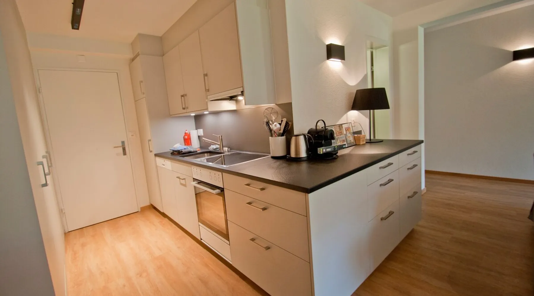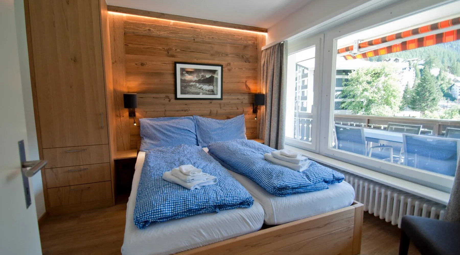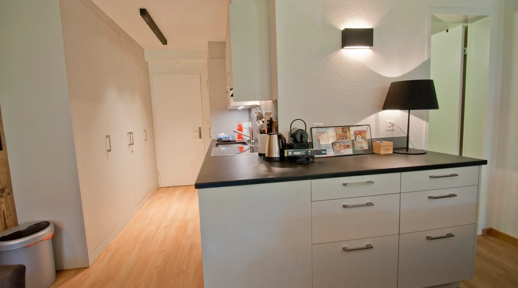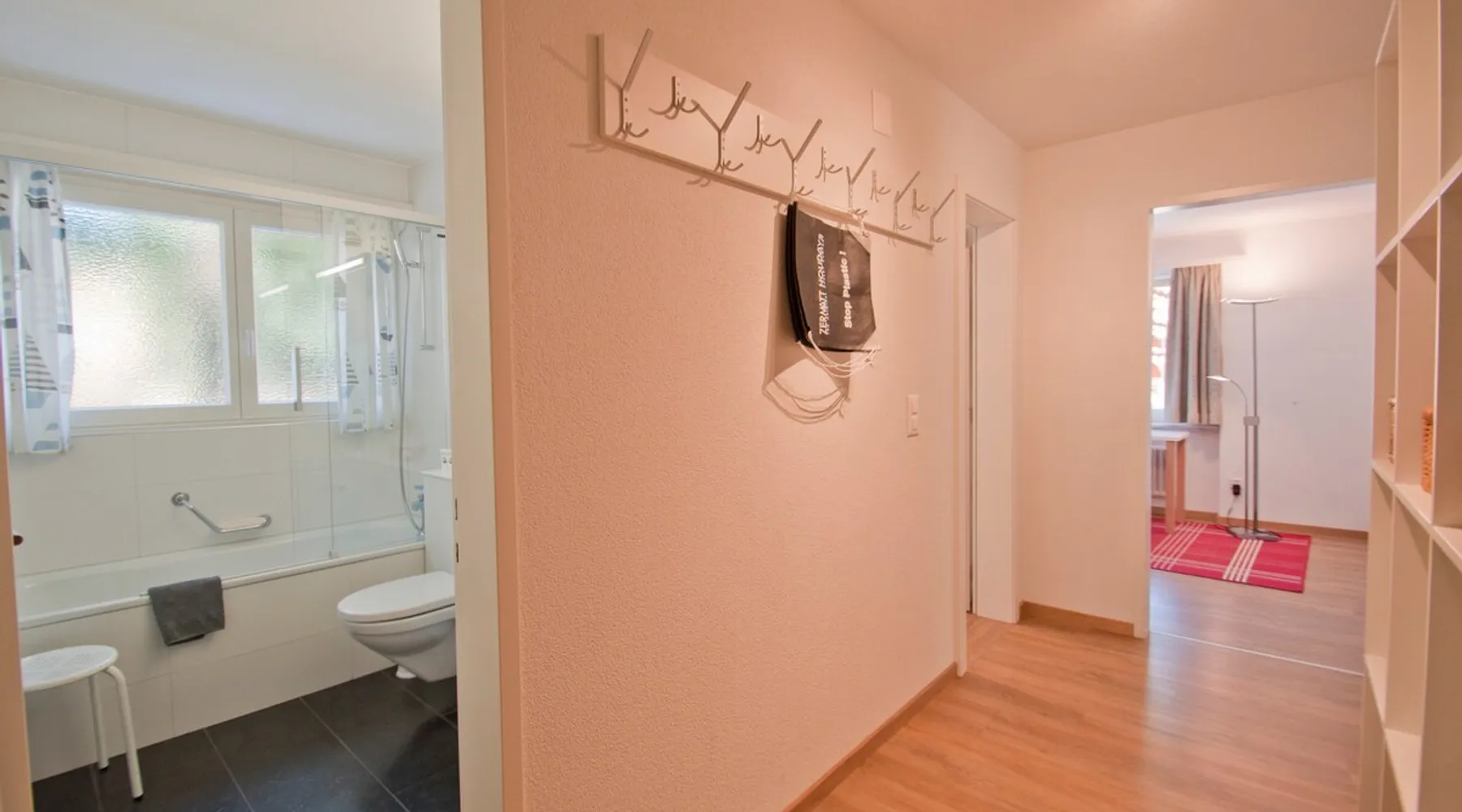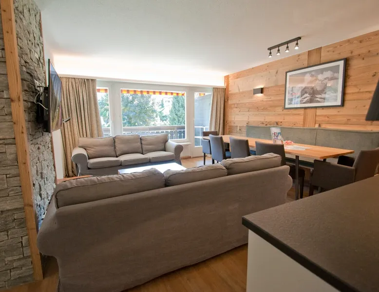 Haus Matten is located only minutes of walking away from the Sunnegga valley station, the centre of Zermatt and the shops. Apartment Breithorn is located on the first floor and has amazing views of the Matterhorn and surrounding mountains. A fantastic location for both summer and winter experiences in the mountains. The apartment is very suitable for families, and the Obere Matten playgrounds are only 5 minutes of walking away. The space This cosy yet modern furnished apartment has an open living room- and dining area, a fully equipped kitchen (dishwasher, Nespresso machine, cheese fondue-set, water kettle), and a spacious southfacing balcony with Matterhorn views. Apartment Breithorn comprises one double bedroom (180 x 200 CM), one bedroom with two bunkbeds (90 x 200 CM) and another double bedroom (180 x 200 CM). The apartment has three seperate bathrooms, with two bathrooms comprising a WC / shower each and one bathroom comprising a WC / shower/bath combination. Free WIFI, TV and a furnished balcony with Matterhorn and other mountain views. Additional amenities include: kitchen utilities provided, flat-screen TV, cot on request, elevator and shared ski room in the building. The nearest valley stations (Sunnegga and Gornergrat Railway) and the centre of Zermatt are a short 3-minute walk away from Haus Matten. There is a bus stop on your door step, which conveniently brings you to the Matterhorn Glacier Paradise valley station within 7 minutes. Guest access The guests have full private use of the apartment. Contactless check-in / check-out is available. Other things to note • Check-in from 16:00 (4:00 PM), luggage drop off is possible on request. • The rates on this website include the final cleaning, bed linen, towels, free Wi-Fi, taxi on arrival and departure, and the local tourist taxes. • Please inform us prior to your arrival if you require a baby bed and / or high chair (available for a surcharge). A baby bed is available for children up to 3 years old, and a highchair for children up to 2 years old. • Pets are not allowed. • The maximum allowed occupants is not to be exceeded unless agreed in writing prior to your arrival in Zermatt.