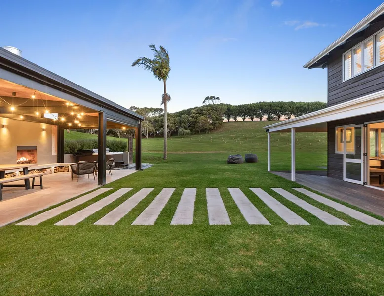 On Waiheke’s western edge, The Ranch stands in a sheltered grove shouldered by native bush, offering complete peace and privacy for up to 12 people. The space Escape the hustle and slow the pace in complete privacy. Secluded and tranquil, The Ranch is set in a sheltered olive grove on Waiheke’s western edge. Unwind on sun-drenched courtyards and balconies, where westward views to the Gulf remind you that on Waiheke, the ocean is always close by and the sunsets are always phenomenal. Explore pathways through surrounding bush that plays home to our native birds; tui, pīwakawaka and kererū. With oversized dining tables inside and out, this a home designed for long evenings with good company. A covered outdoor living area provides a natural gathering point for sundowners, relaxed barbeques, fireside wines and hot tubs under the stars. Inside, every detail invites comfort and connection, including a cosy Studio stove woodburner, vintage rugs, and works by New Zealand artists Pat Henly and David Hessel – while a separate games room gives everyone space to play. Farmhouse: Bedroom 1 | Superking bed Bedroom 2 | Superking bed Bedroom 3 | Superking bed Bedroom 4 | Queen bed Cottage: Bedroom 1 | Superking bed Bedroom 2 | Superking bed