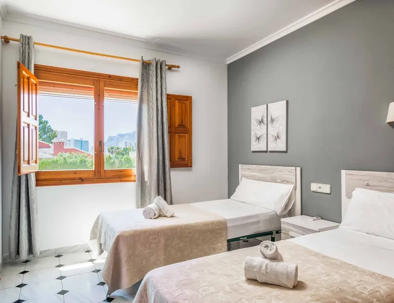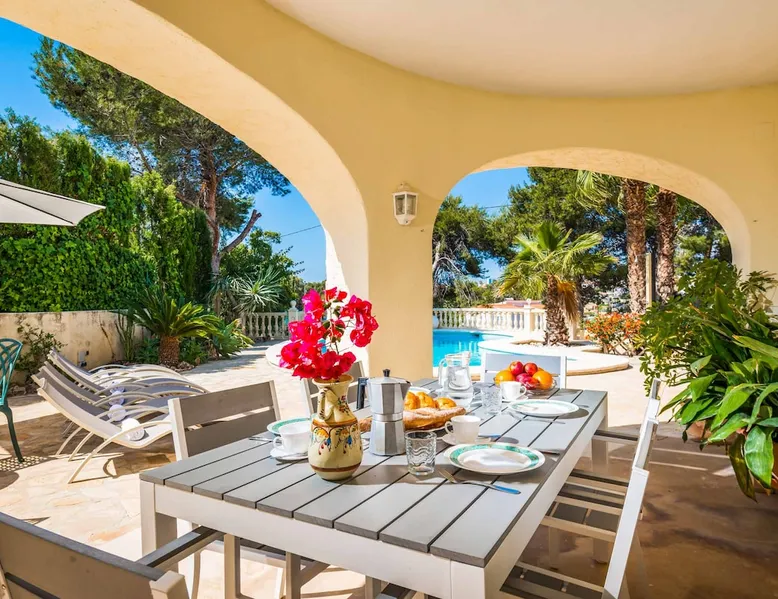 Villa Devis is a charming three bedroom detached villa located in an upmarket residential area called Costeres, close to Calpe’s sandy beaches and bars. It takes around twenty minutes on foot to reach the centre but there are also local restaurants and a large supermarket within five minutes’ walk of the property. The villa is located all on the first floor level which is accessed by 18 steps, the opened planned modern lounge offers dining facilities and separate kitchen. The space One double with a shower ensuite and two twin bedrooms share a bathroom, the lounge and bedrooms have air-conditioning included and WiFi is available throughout the villa. Outside you have your own private swimming pool set around a mature garden so there is plenty of welcoming natural shaded areas, ideal for retreating during the hottest parts of the day. Easy access to the resort for those not wishing to drive whilst on holiday, Calpe is a fun seaside resort for all the family with sandy beaches, plenty of restaurants & bars and water sports alike. Villa entrance is on the first floor This is a developing resort and a new villa is being built nearby Villa Devis. You may experience some noise disturbance, and the work is visible from some areas of the villa grounds. The hours of work are anticipated to be between 08:00 and 18:00, Monday to Friday. Our local team will continue to monitor the work regularly and we will contact any customers where we feel their stay at the villa will be affected significantly. Registration Details Valencia - Regional registration number AT-434063-A