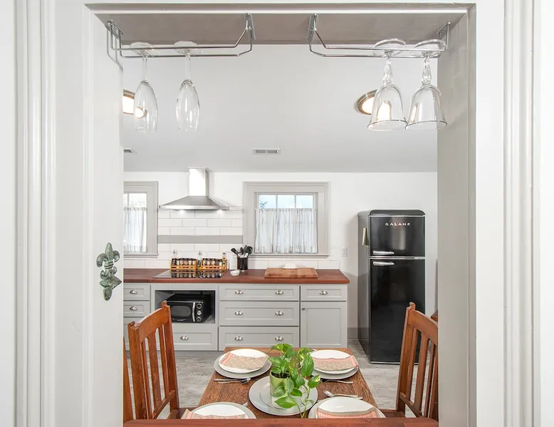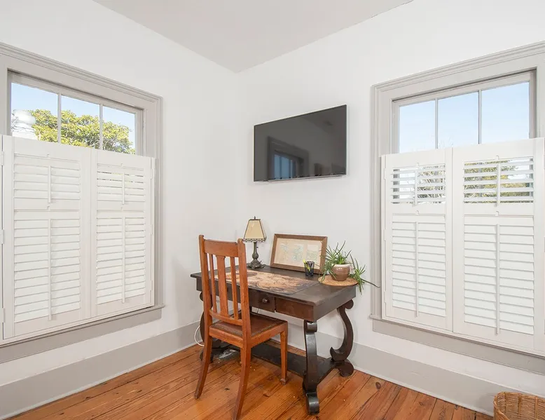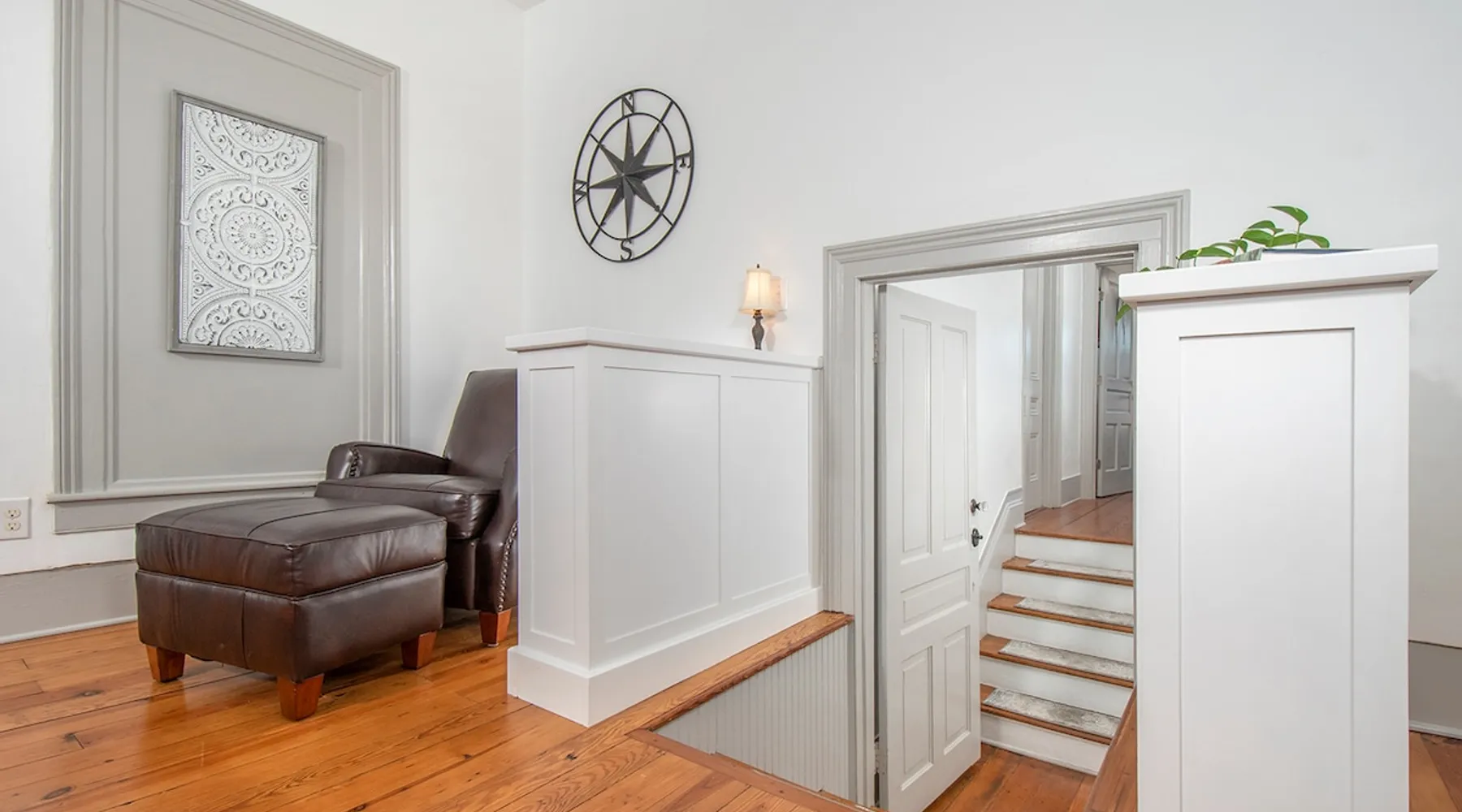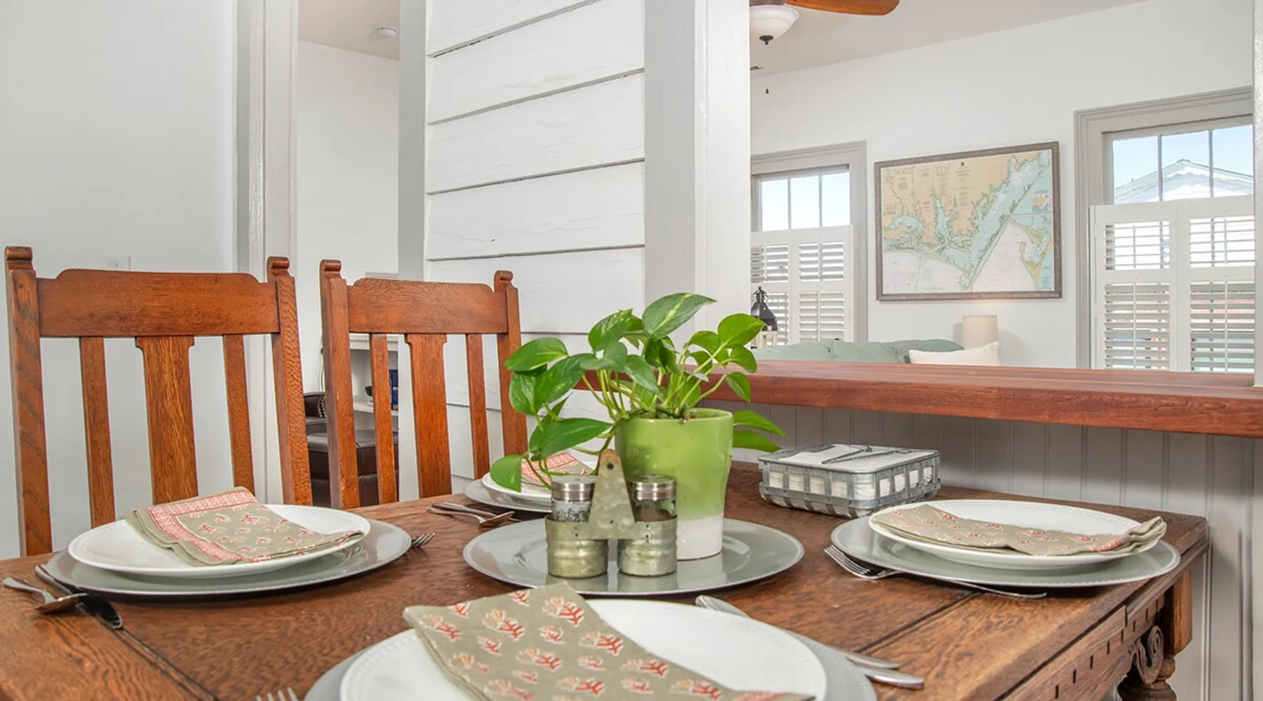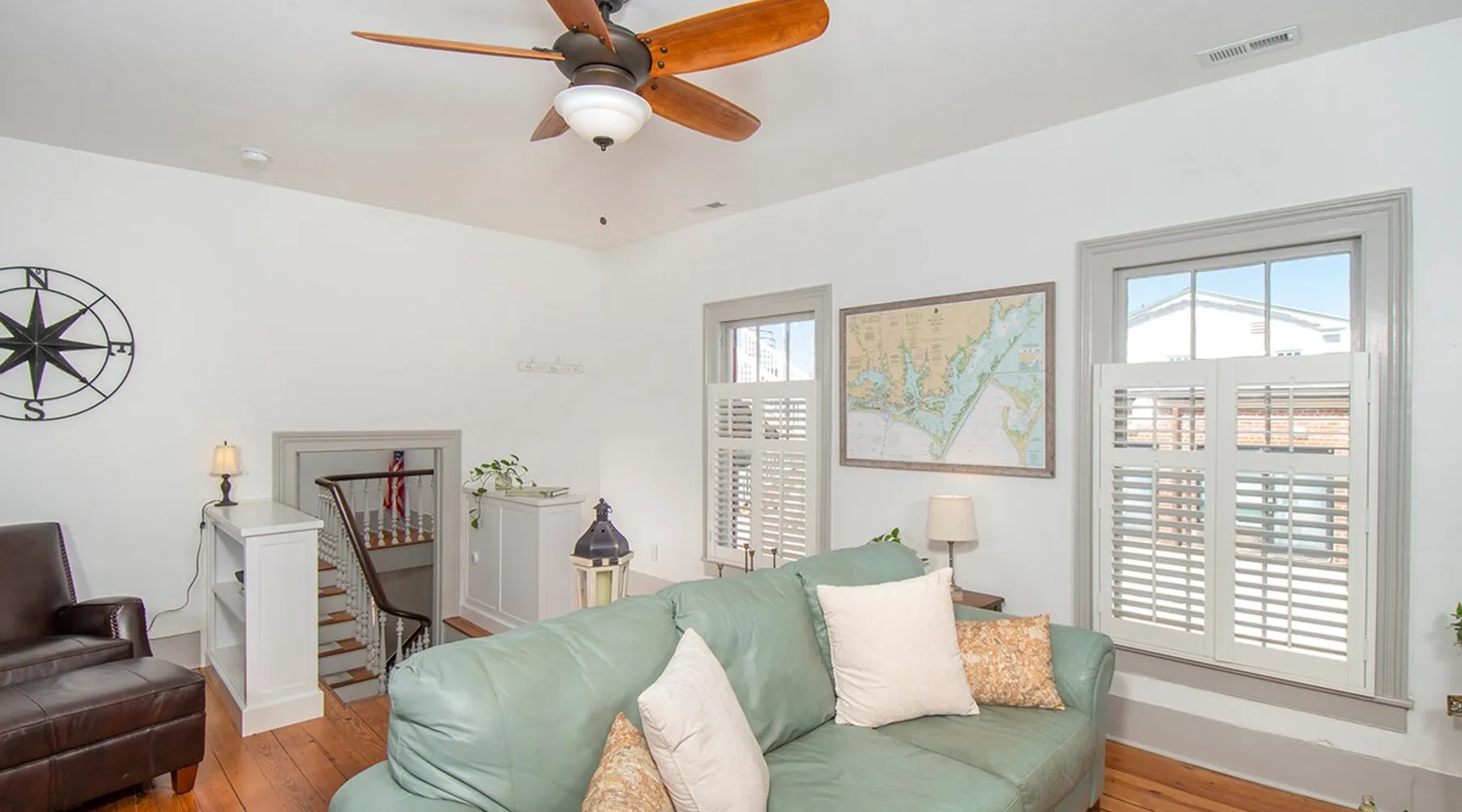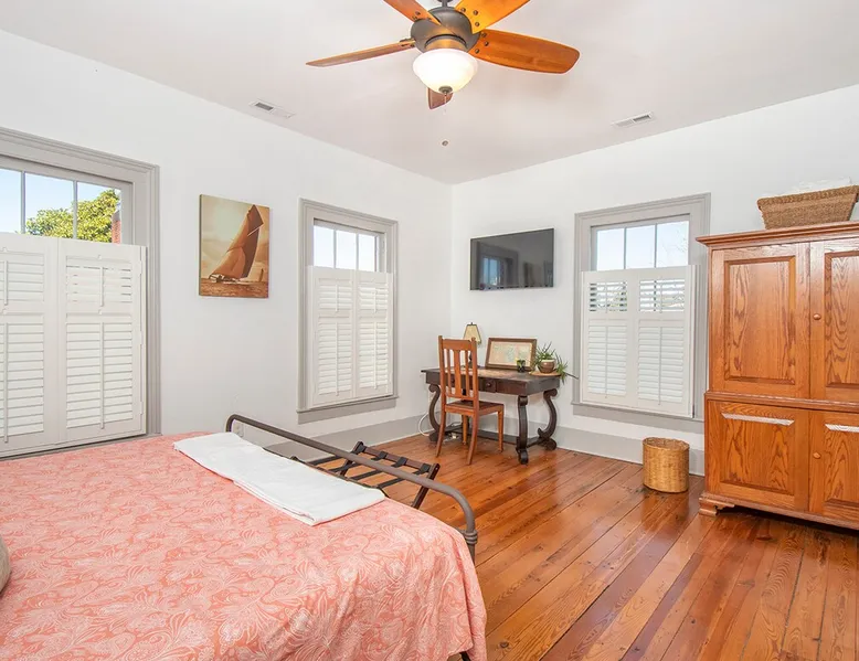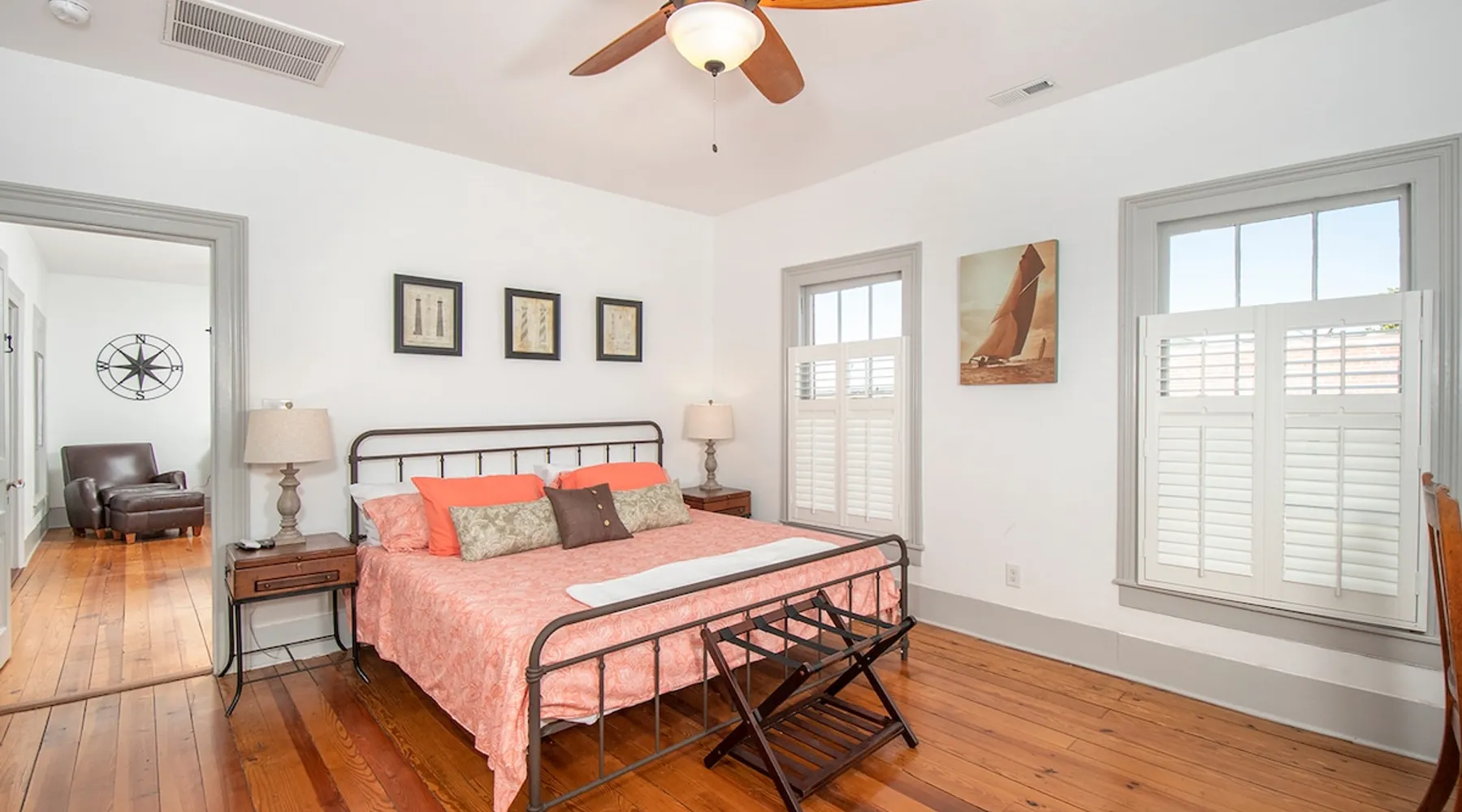 Welcome to Nymphe de Mer (Sea Nymph). One of 2 spacious suites in the recently restored Angels Share Inn: A boutique hotel located in the National Register Beaufort Historic District on Front Street, across the street from Beaufort Docks and waterfront, where yachts from all over the world come and go. Steps to Restaurants, Bars, and shops. Book a ferry at Beaufort Docks to local island beaches and Cape Lookout Lighthouse. Enjoy coffee in a rocker on the front porch and watch the world go by. The space Each suite is completely separate; with private entrance, kitchen, living room, dining space, king bedroom, and bathroom with large walk-in shower. 760+ square foot suite NO CLEANING FEES A large fully equipped kitchen with dishwasher, induction range cooktop, microwave and toaster oven. A Coffee Maker, Compatible with K-Cup Pods or Combo, Single Serve & Full Pot. Spacious private living room area with book cases and games. Separate bedroom with King size bed, desk and armoire. Private en-suite bath with large walk-in rain shower Free off street parking for one vehicle. Each suite is completely separate; with private entrance, kitchen, living room, dining space, king bedroom, and bathroom with large walk-in shower. Spacious 600+ square foot suite Private fully equipped kitchenette and living room both with Front Street Water View Separate bedroom with King size bed. En-suite bath with large walk-in rain shower Free off street parking for one vehicle. Beaufort Spirit Doubloons are included. The Doubloons can be used at any of the businesses on site which include the Angel's Share Cafe, Beaufort Spirits Company inside and out back at Tapping the Admiral Bar. Enjoy a coffee or drink on our deck, the front porch or in your room.