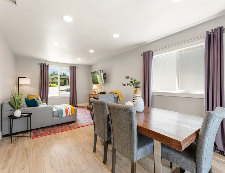Unwind with the whole family after exploring the North Olympic Peninsula in this bright and cheerful cottage. A peaceful retreat from the hustle and bustle of city life, yet just minutes from all the local attractions! The space This bright and cheerful updated cottage is perfect for family and friend gatherings. With plenty of space to spread out and a large fenced backyard for BBQs and stargazing around the fire pit, it's an ideal retreat for families and friend groups. Best suited for 6 guests, but an air mattress can be set up in the living room for up to 8 guests. Dog Friendly for well behaved pups, with pre-approval and fee. Up to 2 dogs allowed, but no cats, please. Guest access Entire property is for guest use. Your personal code to enter the home will be sent the morning of arrival. Other things to note Please remove your shoes. No pets without pre-approval & please be sure to clean up after them. Please do not smoke or do drugs within the home. No events, or parties are allowed on the property. Quiet hours are from 10:00pm-8:00am. Please keep a close eye on children. Registration details 09372
