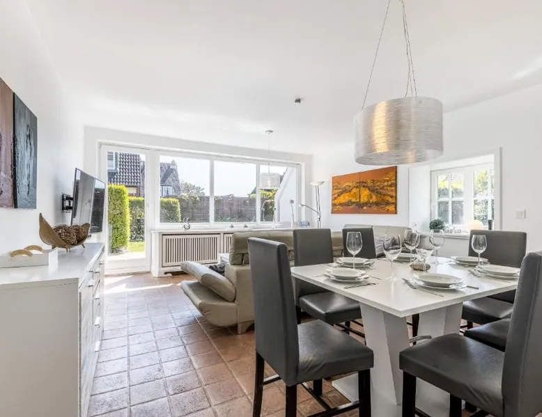 Spacious Accommodations: Haus Victoria in Westerland offers a spacious holiday home with three bedrooms and two bathrooms. The property features tiled floors and a private entrance, ensuring comfort and privacy. Outdoor Spaces: Guests can enjoy a garden and terrace with outdoor seating areas. The terrace provides a perfect spot for relaxation, while the garden offers a peaceful retreat. Modern Amenities: The holiday home includes free WiFi, a fully equipped kitchen with a coffee machine, dishwasher, and microwave. Additional amenities include a washing machine, fireplace, and TV. Nearby Attractions: Westerland Beach is a 10-minute walk away, while Sylt Aquarium lies 1969 feet nearby. Other attractions include Waterpark Sylter Welle and Sylt Golf Club, each within 9.9 mi. The fireplace is the standout feature of this holiday home. Boasting a private entrance, this spacious holiday home also features 3 bedrooms, a seating area and 2 bathrooms with a shower and a hairdryer. Guests can make meals in the kitchen that features a stovetop, a refrigerator, a dishwasher and kitchenware. Featuring a terrace, this holiday home also features a washing machine, a coffee machine and a TV. The unit has 3 beds.