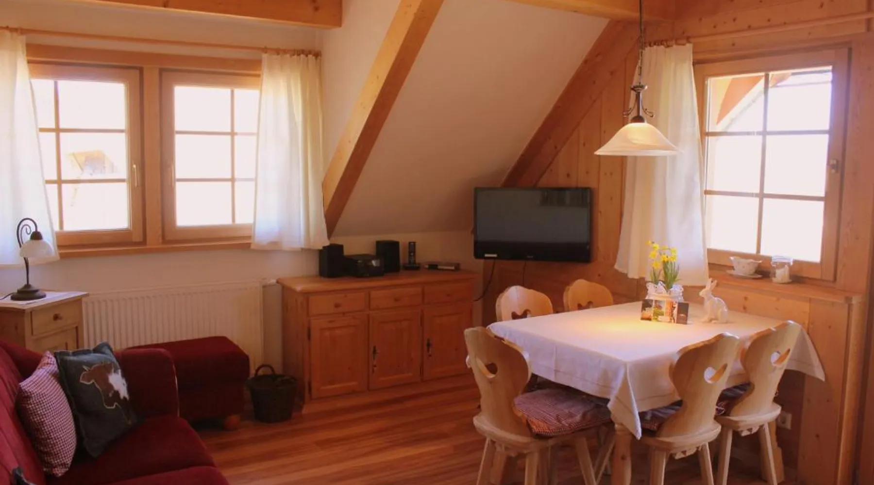 Comfortable Living Space: Urbanshof Herr Tobias Fehrenbach in Hinterzarten offers a spacious apartment with a private bathroom, kitchen, and terrace. Guests enjoy garden and mountain views, a balcony, and a patio. Relaxing Facilities: The property features a sauna, garden, and free WiFi. Additional amenities include an outdoor seating area, children's playground, barbecue facilities, and ski storage. Free on-site private parking is available. Local Attractions: Located 19 mi from Freiburg Cathedral and 3.7 mi from Adlerschanze, the apartment provides easy access to Freiburg's Exhibition and Conference Center (21 mi) and Schlossberg (19 mi). Activities such as golfing, skiing, hiking, and cycling are nearby. The fireplace is a top feature of this apartment. Boasting a private entrance, this spacious apartment also comes with 2 separate bedrooms and 1 bathroom with a bath and a shower. Guests will find a stovetop, a refrigerator, a dishwasher and kitchenware in the fully equipped kitchen. The apartment also includes a barbecue. Featuring a terrace with garden views, this apartment also features a coffee machine and a TV with satellite channels. The unit has 2 beds.