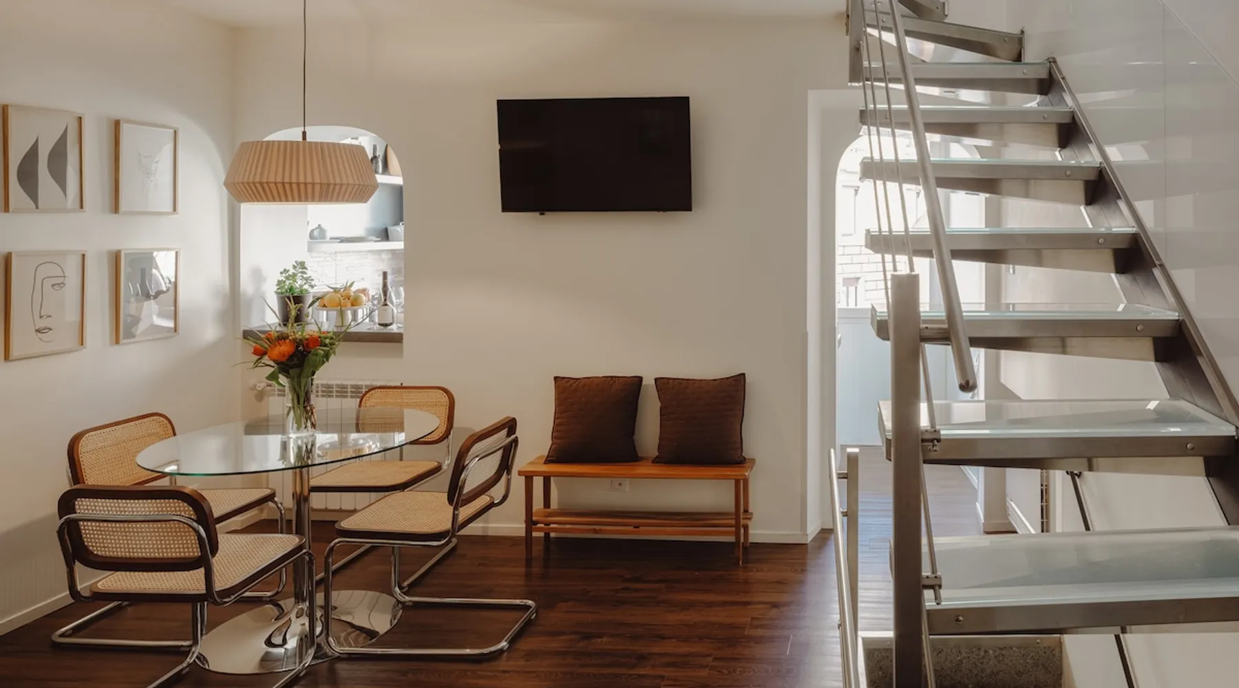 Few steps from the Vatican and Piazza Navona, this dream suite will ensure you a five-star stay! This apartment can accommodate four guests comfortably. It consists of two large double bedrooms, a fully furnished kitchen with dishwasher, kettle and toaster, a bright and airy living-room, as well as two large bathrooms with showers. Luxury Suite Giulia has been designed so as to offer a refined and very comfortable stay! The space This is a breathtaking 90 squared meters apartment, nestled in the very heart of Rome! A beautiful flight of stairs opens on the lighty living room on which faces a fully furbished kitchen; cooking will never be this fun again, and the large windows and the amount of light coming through will have you thinking you're outdoors! A few steps away from the living room a large bedroom with a king size bed and a practical walk in closet; next to the bedroom a beautiful bathroom with a regular standing shower. As you walk up the beautiful stairs a second large bedroom, with a king size bed and an en suite bathroom. Steps away from the Vatican, Piazza Navona, the Pantheon and the Colosseum, this apartment will have you living Rome at its best! Guest access Full Access. Registration Details IT058091B4UAGRJ7XH