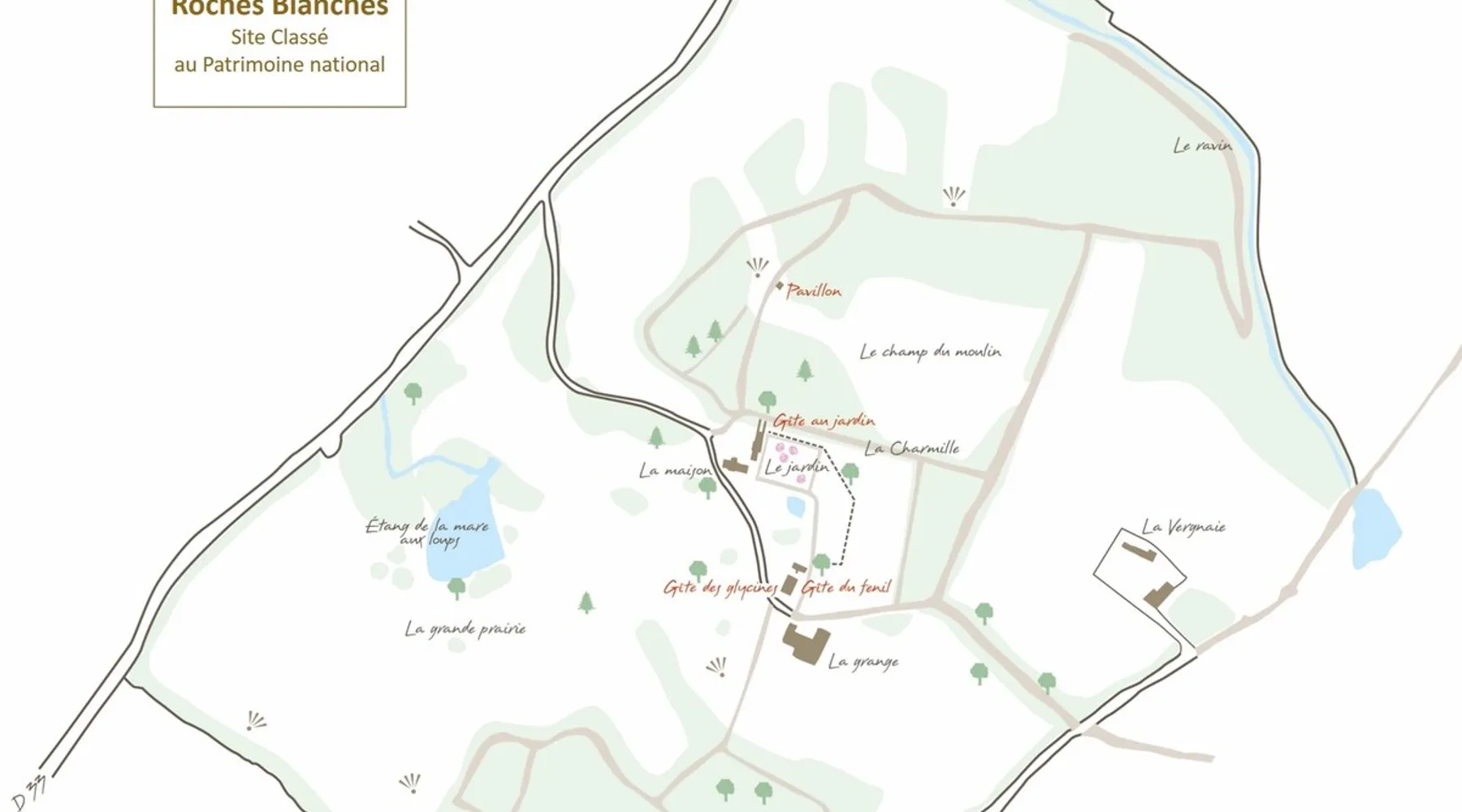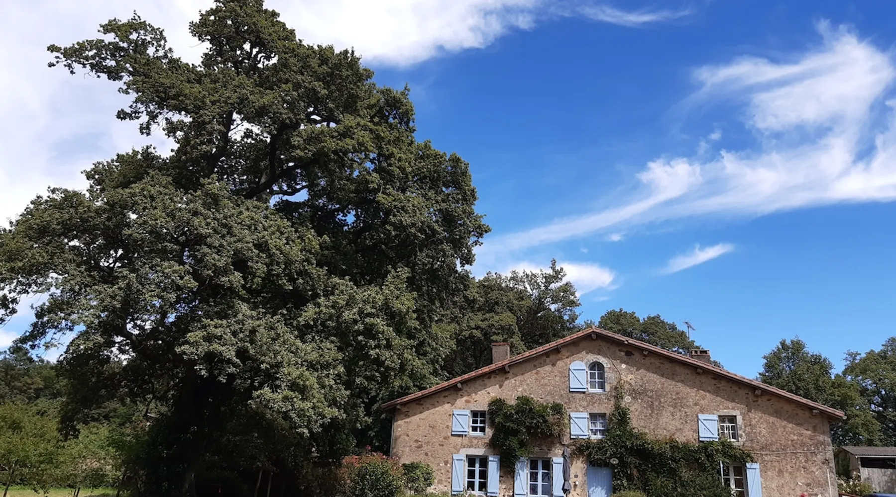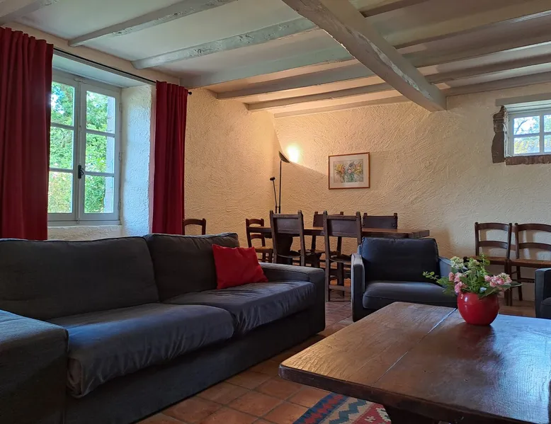 The Parc des Roches Blanches is a CLASS SITE which covers nearly 60 hectares. All around unfolds a hilly landscape made up of woods and meadows. This site has gone through more than 170 years of history. The clients of the cottages have access to the entire property to find the place where they can feel good: Fall asleep under an oak tree, walk in the undergrowth, fish by the pond, go out by bike, dine with friends Terrace. The space Installed in a former miller's house away from the main building, the Glycines gîte can comfortably accommodate 8 people without any opposite. -> On the ground floor: a large living room, an independent kitchen, a toilet and a bathroom. -> On the first floor: a double bedroom and a large family room. A bathroom with toilet is accessible by the landing which leads to the bedrooms. -> The second floor: a bedroom with two single beds. Guest access I live on the estate with my husband and we are there to welcome travelers. Other things to note We are 25 minutes from Puy du Fou, 45 minutes from the Poitevin marsh. But there are also very beautiful things to discover in the Roches Blanches park or nearby (Horse riding, Parc de Maulévrier, Chateau de St Mesmin, ...)