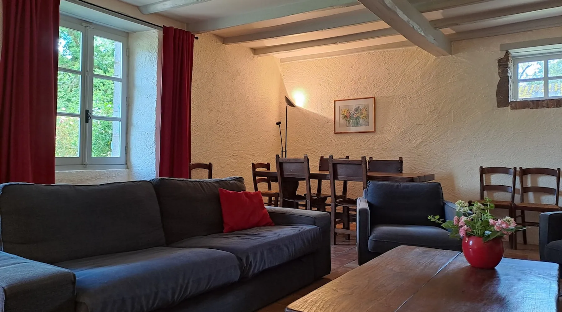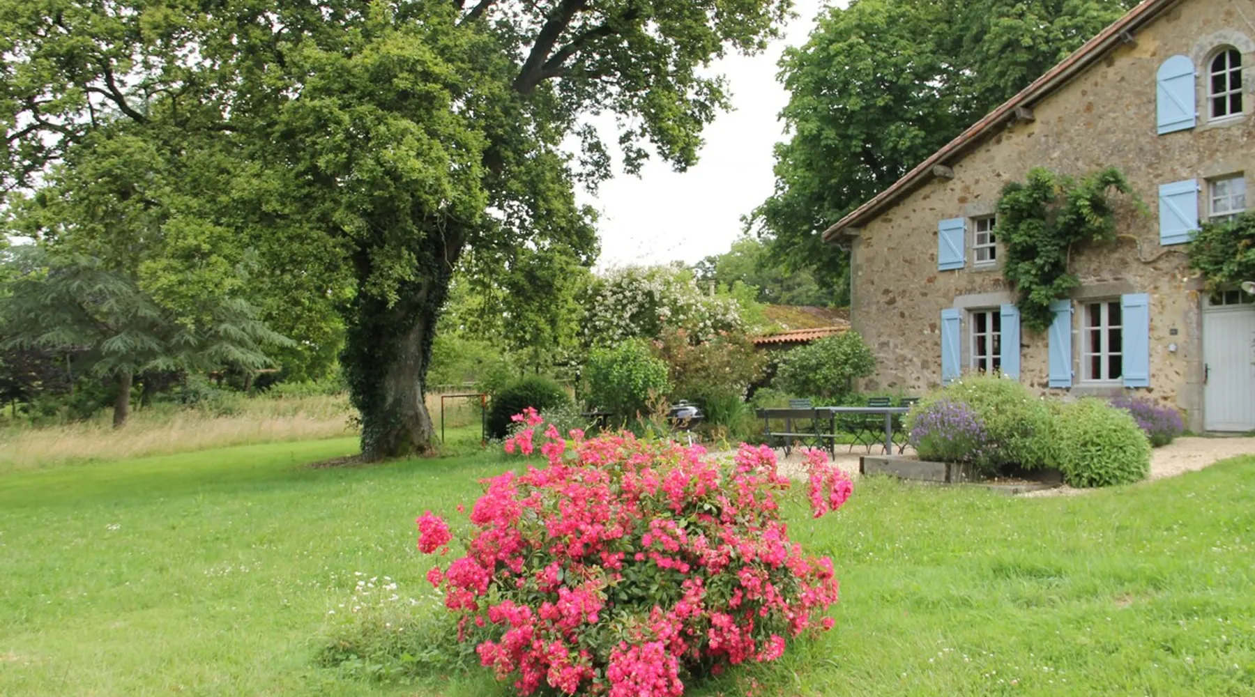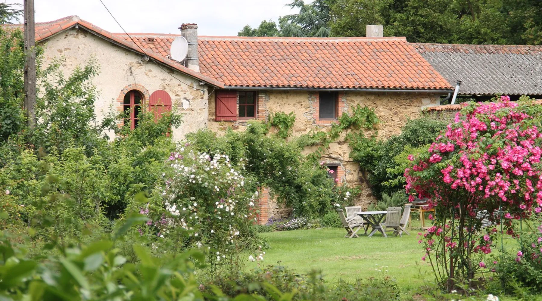 The Parc des Roches Blanches is a CLASS SITE which covers nearly 60 hectares. All around unfolds a hilly landscape made up of woods and meadows. This site has gone through more than 170 years of history. The clients of the cottages have access to the entire property to find the place where they can feel good: Fall asleep under an oak tree, walk in the undergrowth, fish by the pond, go out by bike, dine with friends Terrace. The space Installed in a former miller's house away from the main building, the Glycines gîte can comfortably accommodate 8 people without any opposite. -> On the ground floor: a large living room, an independent kitchen, a toilet and a bathroom. -> On the first floor: a double bedroom and a large family room. A bathroom with toilet is accessible by the landing which leads to the bedrooms. -> The second floor: a bedroom with two single beds. Guest access I live on the estate with my husband and we are there to welcome travelers. Other things to note We are 25 minutes from Puy du Fou, 45 minutes from the Poitevin marsh. But there are also very beautiful things to discover in the Roches Blanches park or nearby (Horse riding, Parc de Maulévrier, Chateau de St Mesmin, ...)