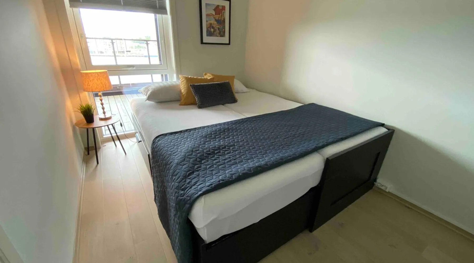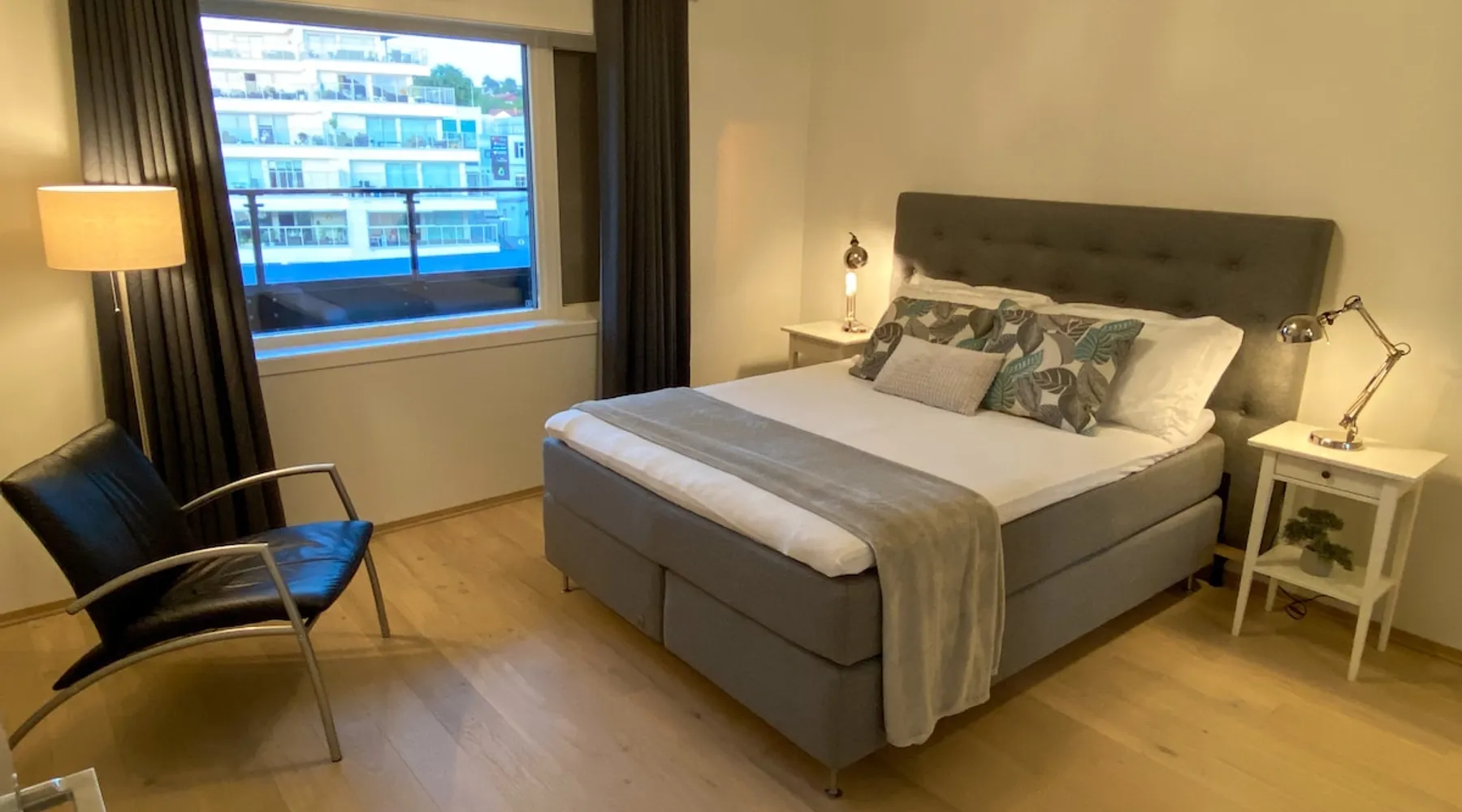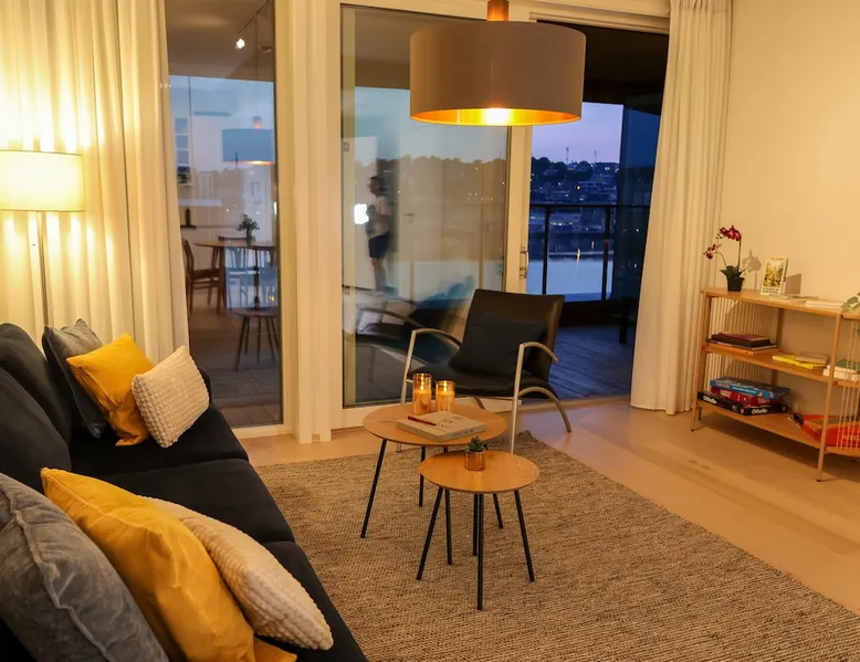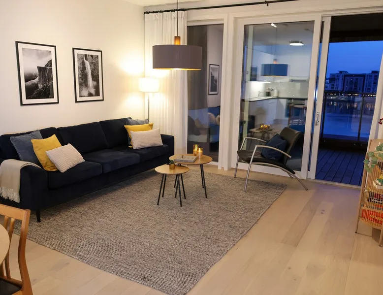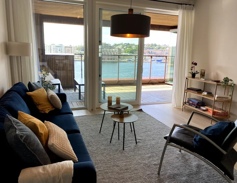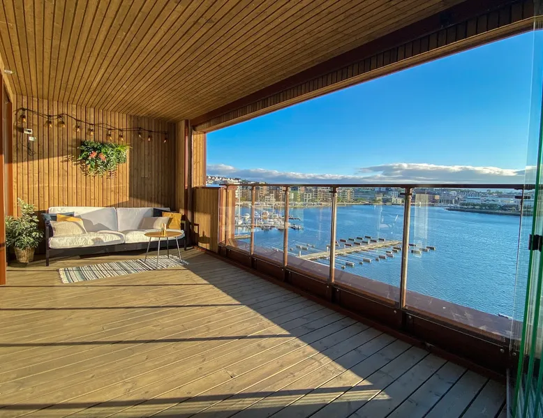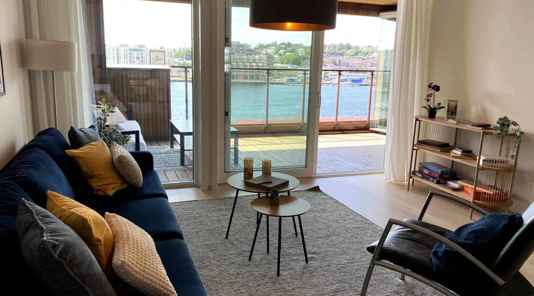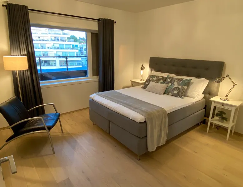 Hang out with your hat and enjoy the evening sun! Brand new charming 86m2 apartment with 2 bedrooms just off Sandnes Sentrum. A unique location with amazing sun conditions until late at night. From the generous private balcony on the 5th floor, you can enjoy the lovely views of the city centre and the Gandsfjord. It is a 10 minute stroll along the promenade into the center of Sandnes with its associated shops, center and good selection in restaurants and cultural life. Alternatively 10m to nearest bus stop. The space The apartment was new in June 2023, and has 2 bedrooms, a bathroom, a storage room and a living room with an open kitchen solution. And the very best thing is the generous glazed balcony. The glass may be opened and closed at your own desire. We have free parking for you and by elevator you will get up to the 5th floor. Especially good Handicap parking space. The one bedroom is 14m2 and the other is 8m2. The bathroom has toilet and shower and a combined washer/dried drum. The kitchen has all necessary amenities. Refrigerator with built-in freezer. Integrated dishwasher, stove and stove and microwave. Both living room and balcony are comfortably furnished with sofa and table and chairs. You should feel comfortable and comfortable staying at our place. Guest access You will have the entire apartment by your own during your entire stay. Other things to note We have a small 15-foot boat with 40 horsepower lying on the jetty right by the apartment. From here you can easily reach great fishing areas. You can even drive the boat all the way into Lysefjorden if desired, where you can see the pulpit from below. If you have a boat license, we can rent this out to you separately. Ask for information if this is applicable.