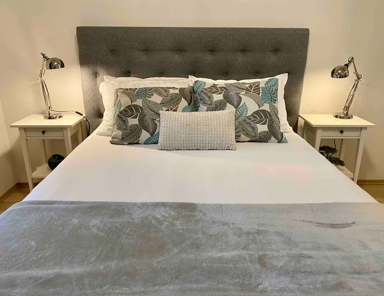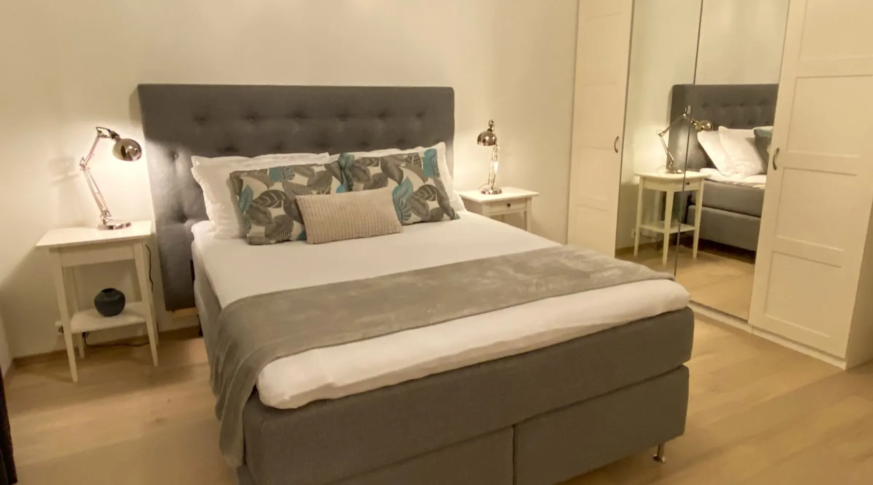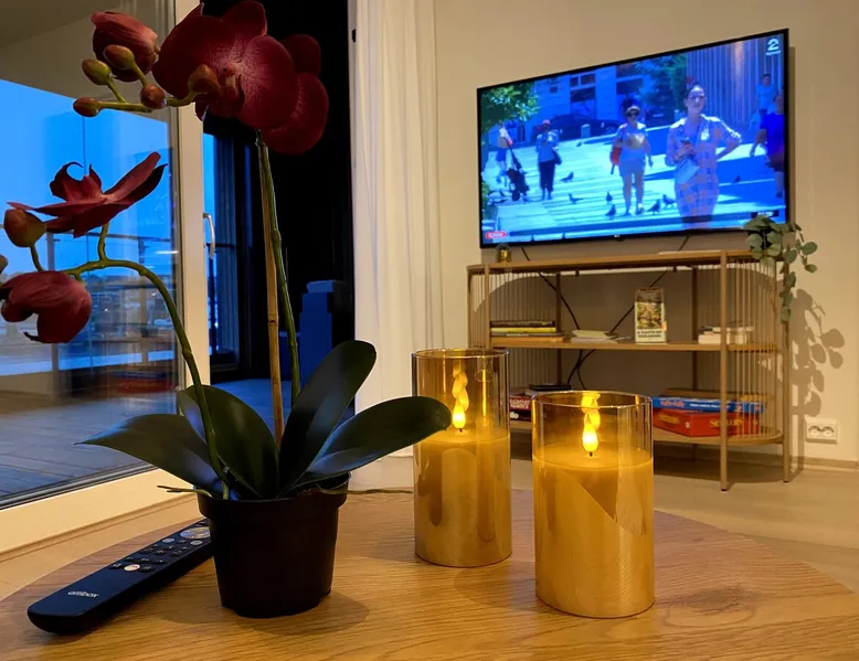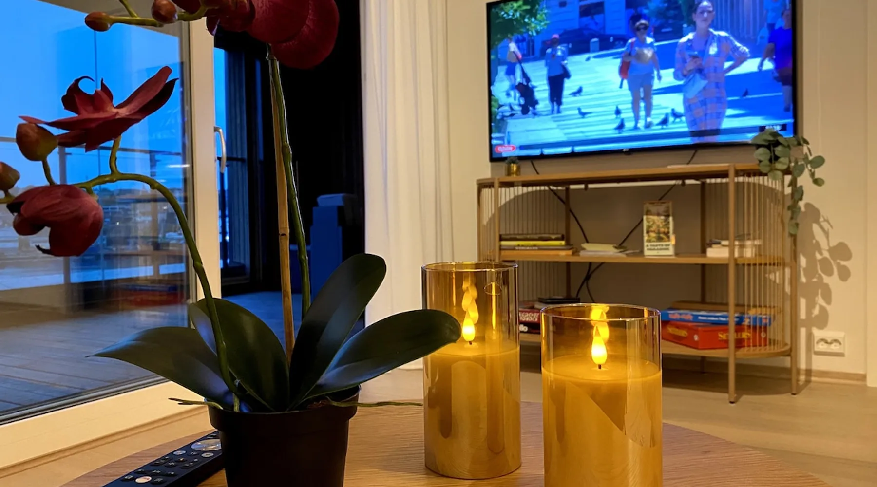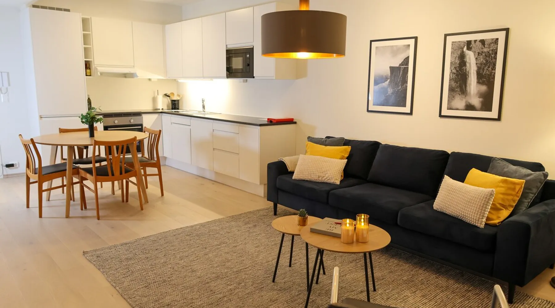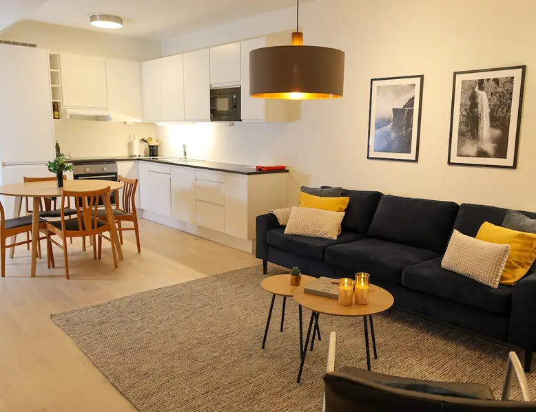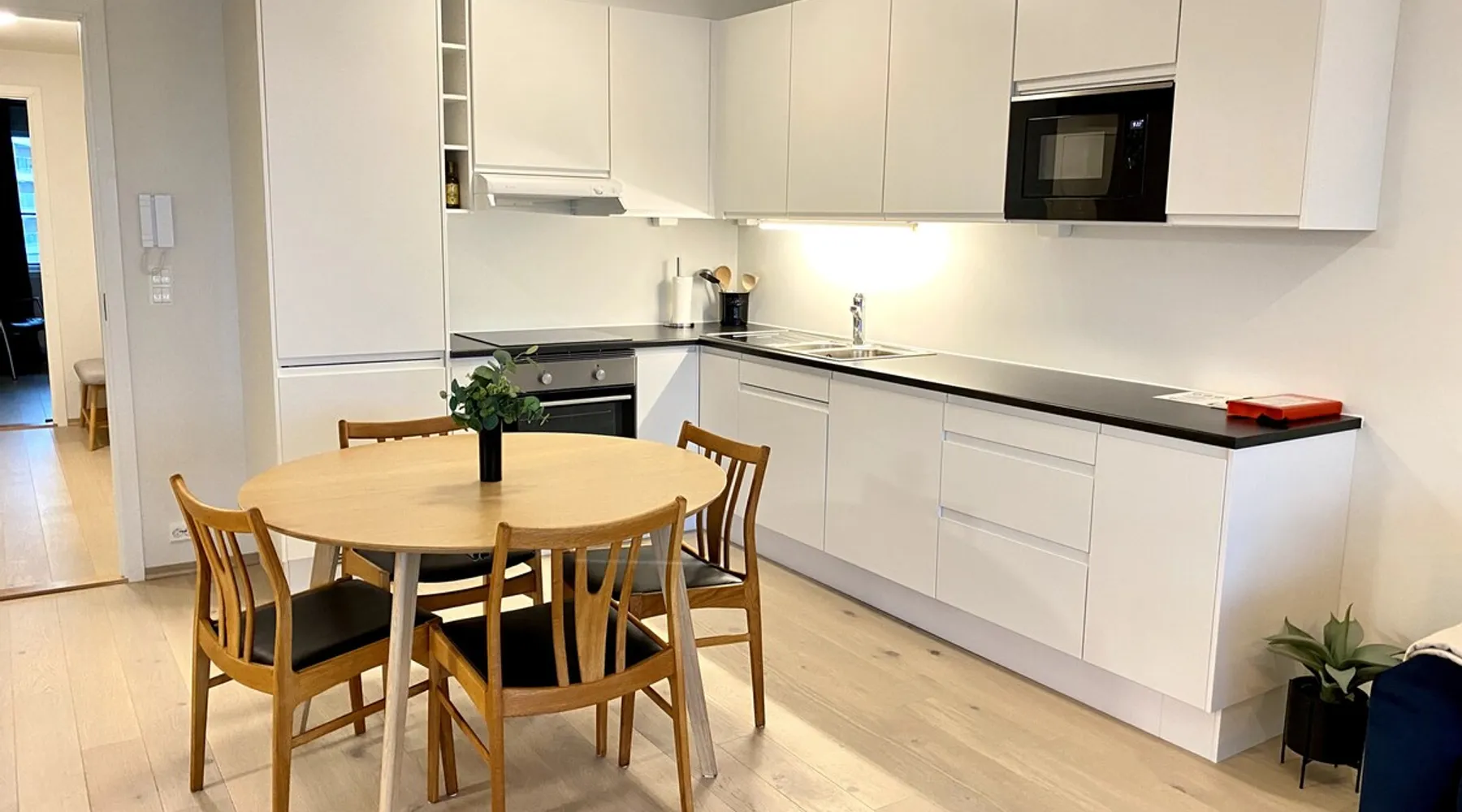 Hang out with your hat and enjoy the evening sun! Brand new charming 86m2 apartment with 2 bedrooms just off Sandnes Sentrum. A unique location with amazing sun conditions until late at night. From the generous private balcony on the 5th floor, you can enjoy the lovely views of the city centre and the Gandsfjord. It is a 10 minute stroll along the promenade into the center of Sandnes with its associated shops, center and good selection in restaurants and cultural life. Alternatively 10m to nearest bus stop. The space The apartment was new in June 2023, and has 2 bedrooms, a bathroom, a storage room and a living room with an open kitchen solution. And the very best thing is the generous glazed balcony. The glass may be opened and closed at your own desire. We have free parking for you and by elevator you will get up to the 5th floor. Especially good Handicap parking space. The one bedroom is 14m2 and the other is 8m2. The bathroom has toilet and shower and a combined washer/dried drum. The kitchen has all necessary amenities. Refrigerator with built-in freezer. Integrated dishwasher, stove and stove and microwave. Both living room and balcony are comfortably furnished with sofa and table and chairs. You should feel comfortable and comfortable staying at our place. Guest access You will have the entire apartment by your own during your entire stay. Other things to note We have a small 15-foot boat with 40 horsepower lying on the jetty right by the apartment. From here you can easily reach great fishing areas. You can even drive the boat all the way into Lysefjorden if desired, where you can see the pulpit from below. If you have a boat license, we can rent this out to you separately. Ask for information if this is applicable.
