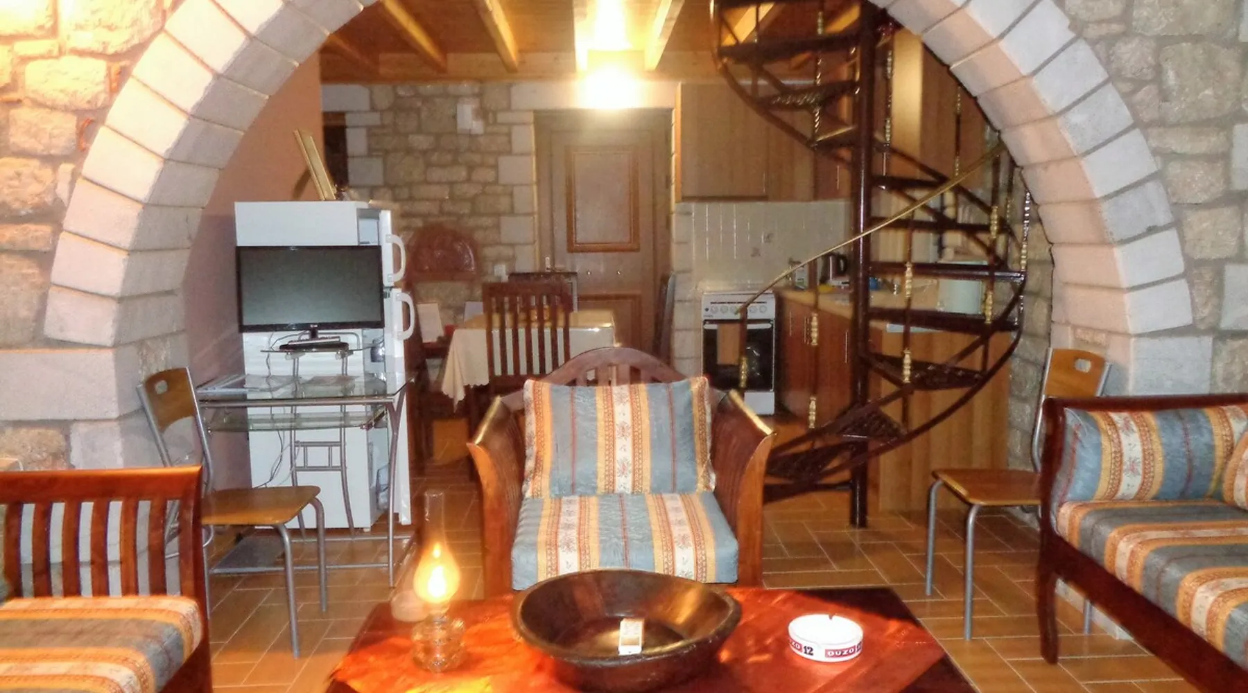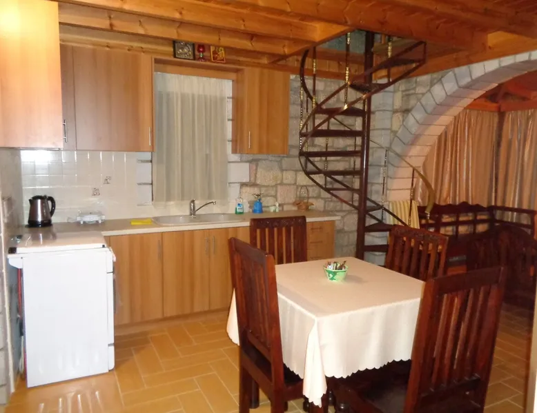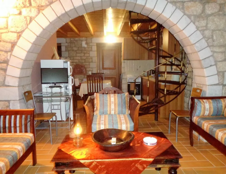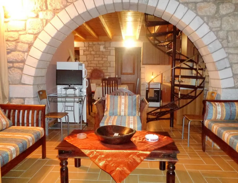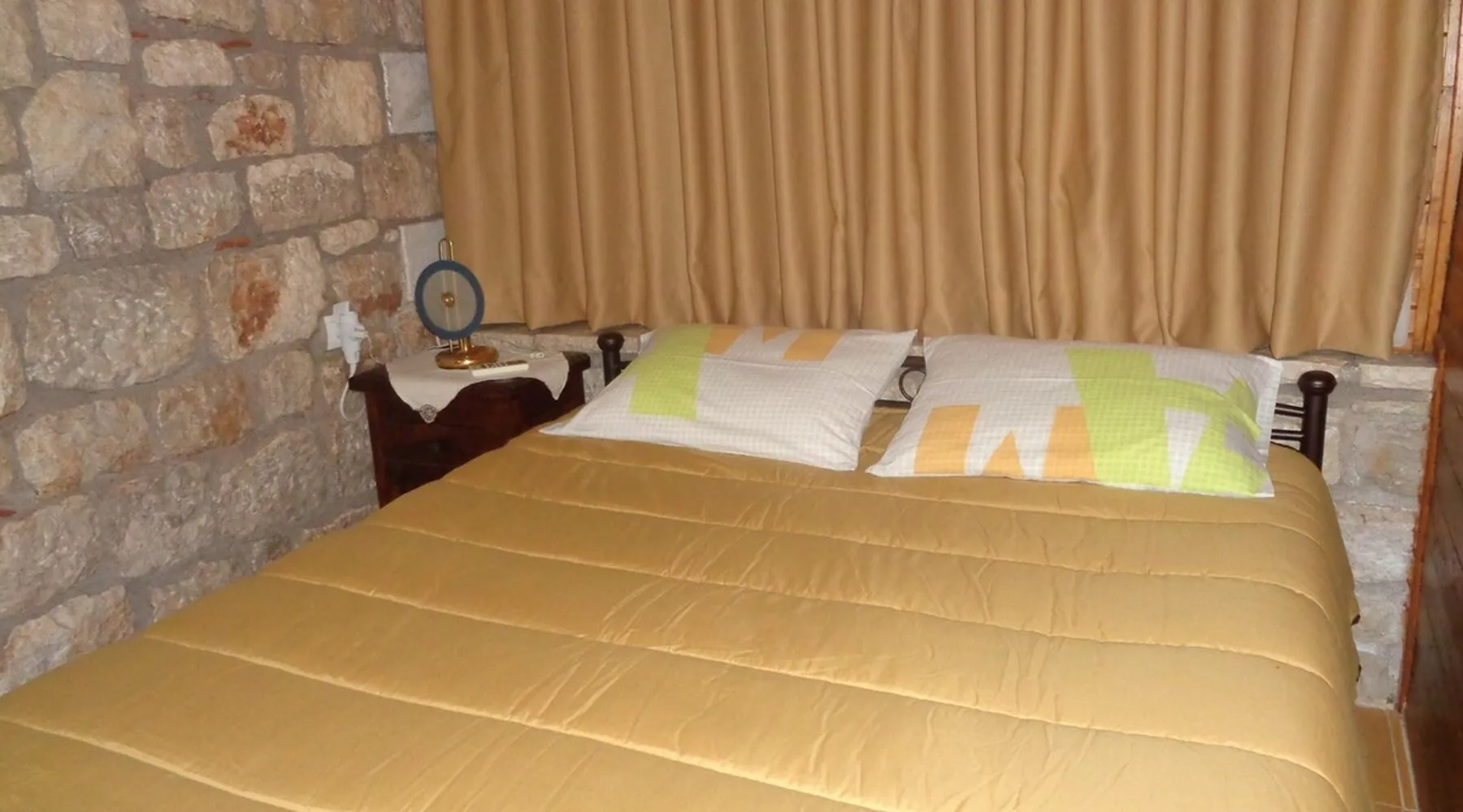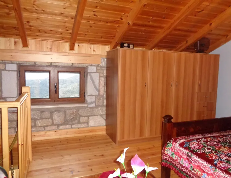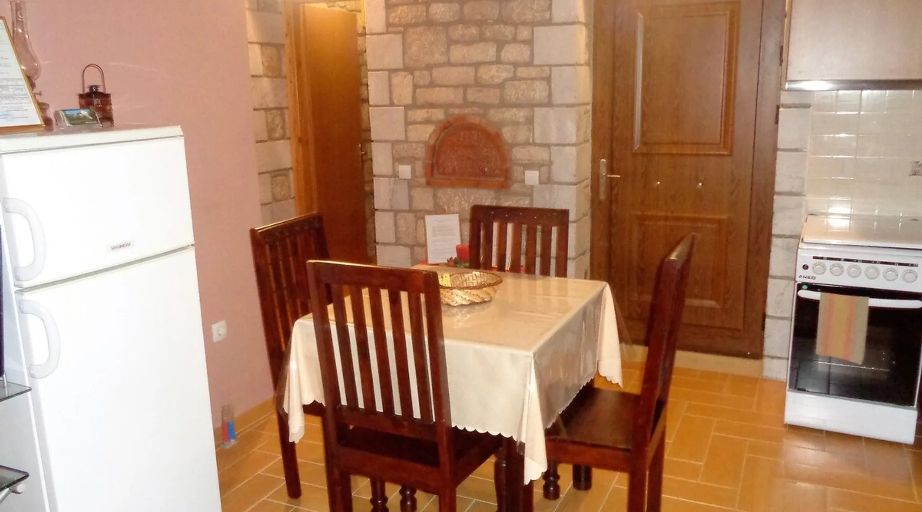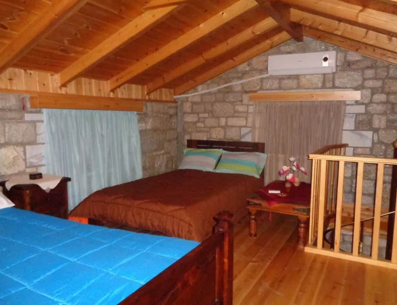 With care, passion and respect for the environment, at the foothills of Taygetos, just a few kilometers from the beautiful capital of Messinia, Kalamata and overlooking the magnificent Messinian Gulf, a modernly equipped, yet built and decorated with absolutely traditional way, the Menina Farm accommodation. The Farm consists of three traditional stone and spacious houses fully equipped. From the first moment of your arrival you’ll feel like home away from your home! The space Spaciousthree-room apartment of 75 square meters, capacity up to 5 adults, built on the first floor of the accommodation and consists of a comfortable living room with traditional furniture and TV, kitchenFully equipped with kitchenware and utensils, a bedroom with a traditional semi-double wooden bed and a wardrobe and a bathroom with a bathtub on the 1st level. On the 2nd level there is a large attic of 25 square meters furnished with a traditional wooden double and a semi-double bed. It is entirely a combination of modern and traditional style. It has 2 terraces overlooking Taygetos, the sea and the city of Kalamata respectively. Other Policies Pets: Pets are allowed. Includes extra charge 10€/night . Parking: Private parking is possible on site (reservation is not needed). Children and extra beds All children are welcome. There is no capacity for extra beds in a room. There is a possibility for a baby cot Facilities Facilities included in the room rate: Air conditioning Fan Fireplace Room - one available for connection Iron Living room Sofa bed Tiled / marble floor Washing machine Bathtub toilet LCD / Plasma / flat screen TV Radio Dinning room Kitchen Kitchens Refrigerator Balcony view of the sea GARDEN view View of a point of interest Boiler bath towels Toaster Cleaning products linen Closet Barbecue The whole unit on the ground floor Autonomic Outdoor furniture Clothes rack Dishwasher Ironing board Private entrance Sound insulation Registration Details 00002187811