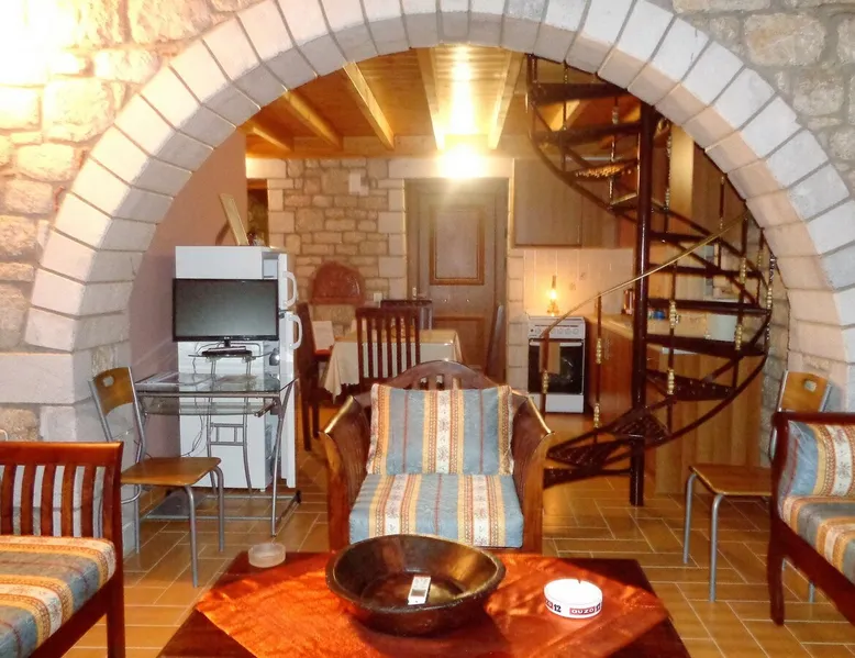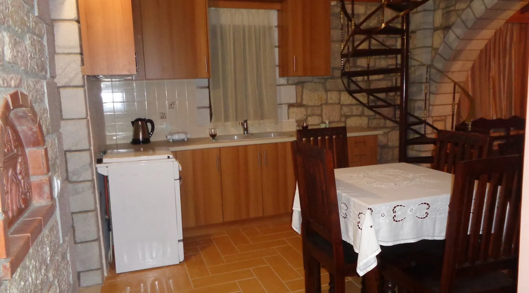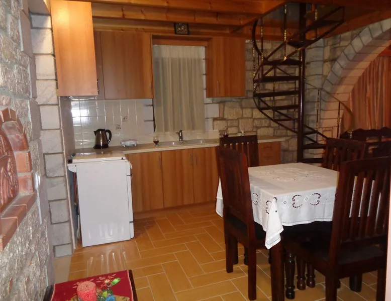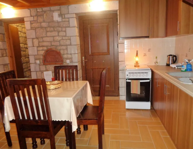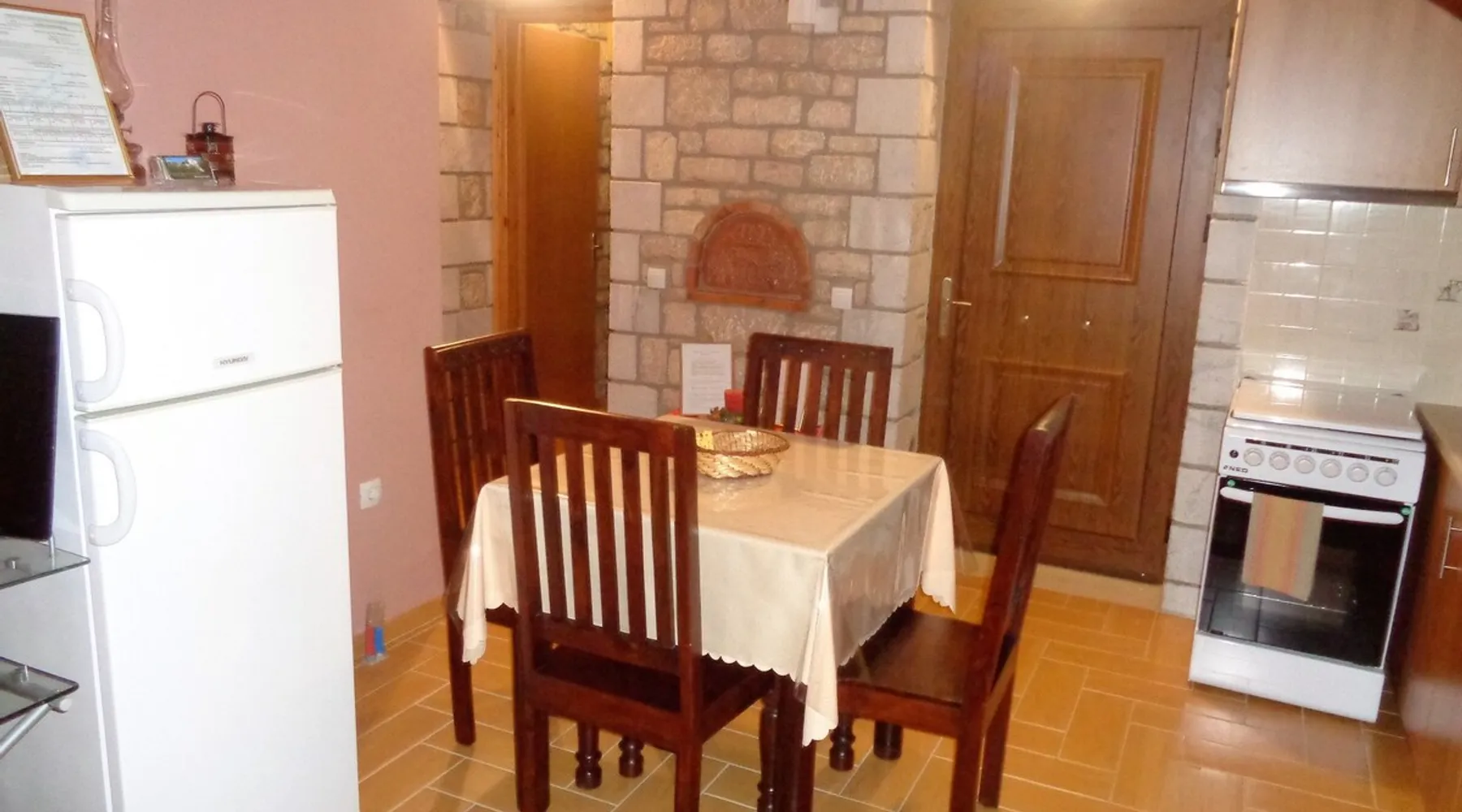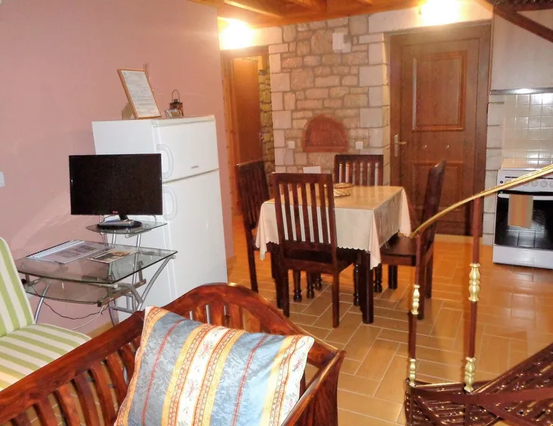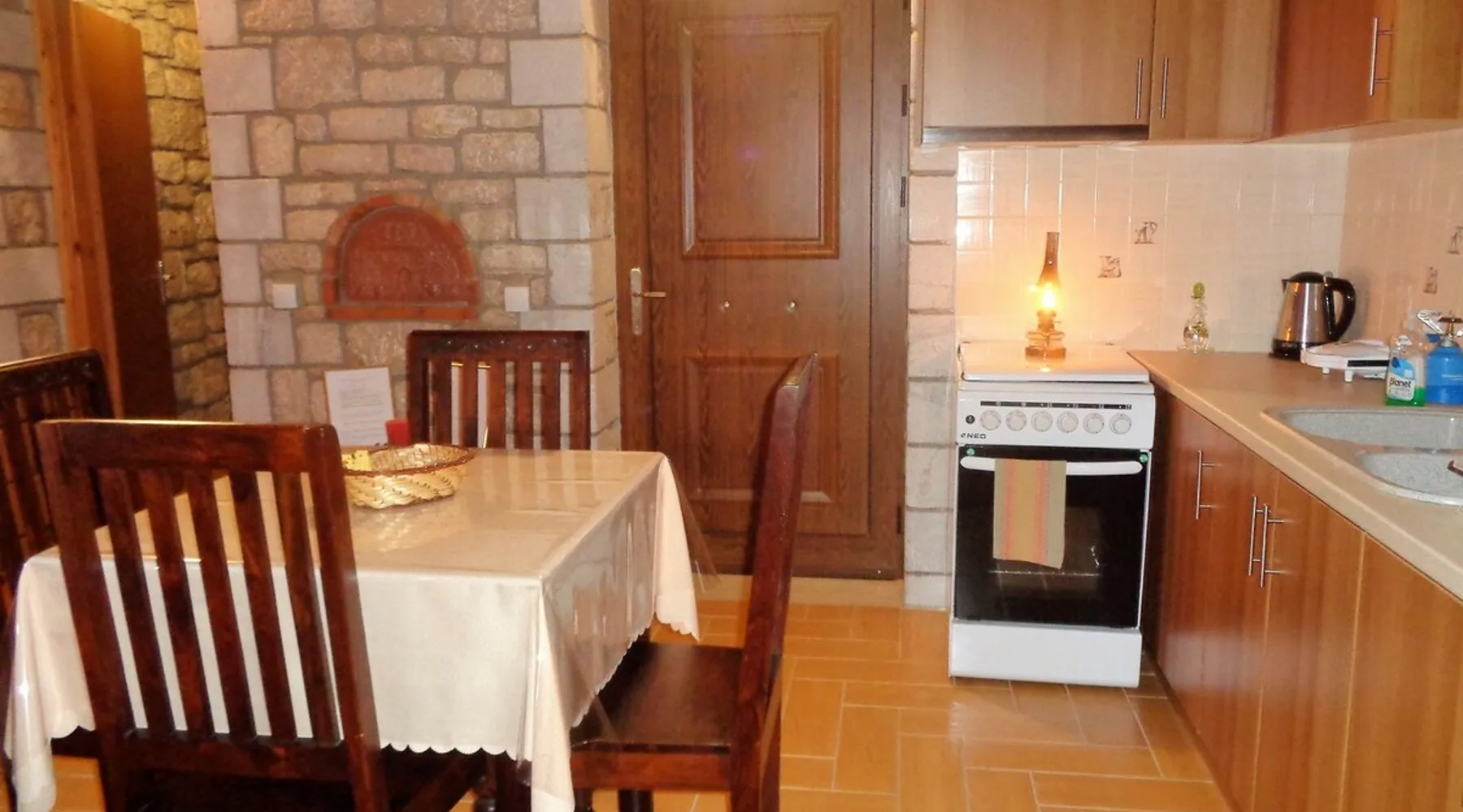 With care, passion and respect for the environment, at the foothills of Taygetos, just a few kilometers from the beautiful capital of Messinia, Kalamata and overlooking the magnificent Messinian Gulf, a modernly equipped, yet built and decorated with absolutely traditional way, the Menina Farm accommodation. The Farm consists of three traditional stone and spacious houses fully equipped. From the first moment of your arrival you’ll feel like home away from your home! The space Spaciousthree-room apartment of 75 square meters, capacity up to 5 adults, built on the first floor of the accommodation and consists of a comfortable living room with traditional furniture and TV, kitchenFully equipped with kitchenware and utensils, a bedroom with a traditional semi-double wooden bed and a wardrobe and a bathroom with a bathtub on the 1st level. On the 2nd level there is a large attic of 25 square meters furnished with a traditional wooden double and a semi-double bed. It is entirely a combination of modern and traditional style. It has 2 terraces overlooking Taygetos, the sea and the city of Kalamata respectively. Other Policies Pets: Pets are allowed. Includes extra charge 10€/night . Parking: Private parking is possible on site (reservation is not needed). Children and extra beds All children are welcome. There is no capacity for extra beds in a room. There is a possibility for a baby cot Facilities Facilities included in the room rate: Air conditioning Fan Fireplace Room - one available for connection Iron Living room Sofa bed Tiled / marble floor Washing machine Bathtub toilet LCD / Plasma / flat screen TV Radio Dinning room Kitchen Kitchens Refrigerator Balcony view of the sea GARDEN view View of a point of interest Boiler bath towels Toaster Cleaning products linen Closet Barbecue The whole unit on the ground floor Autonomic Outdoor furniture Clothes rack Dishwasher Ironing board Private entrance Sound insulation Registration Details 00002187811