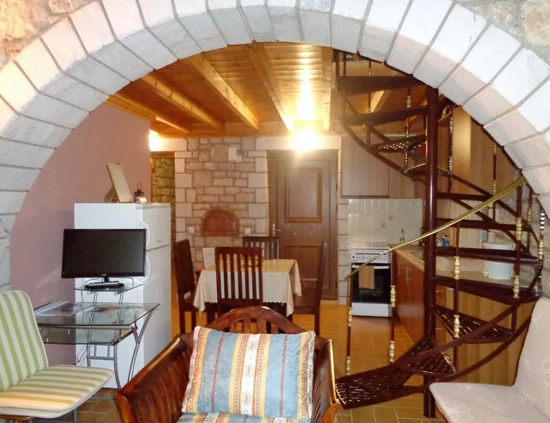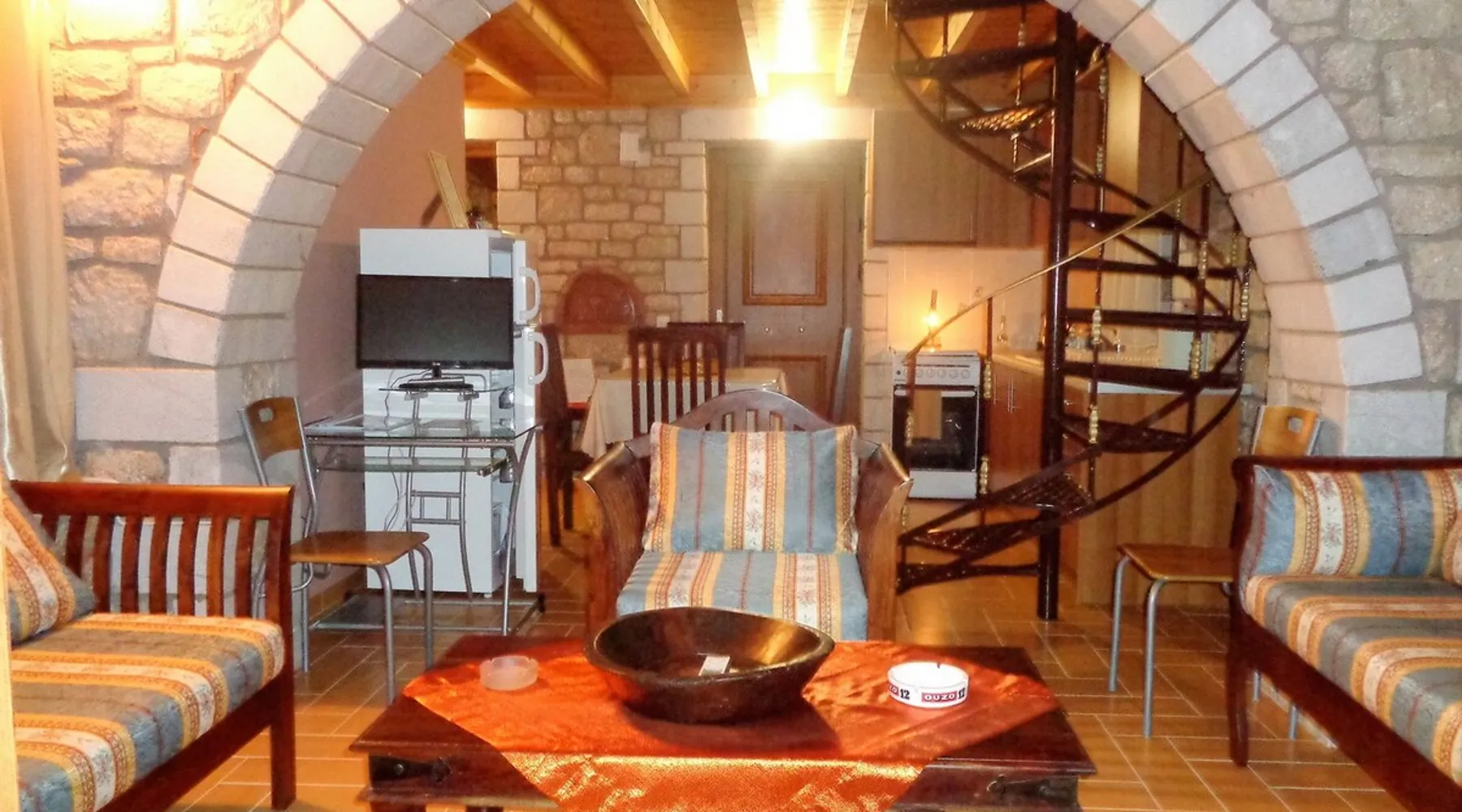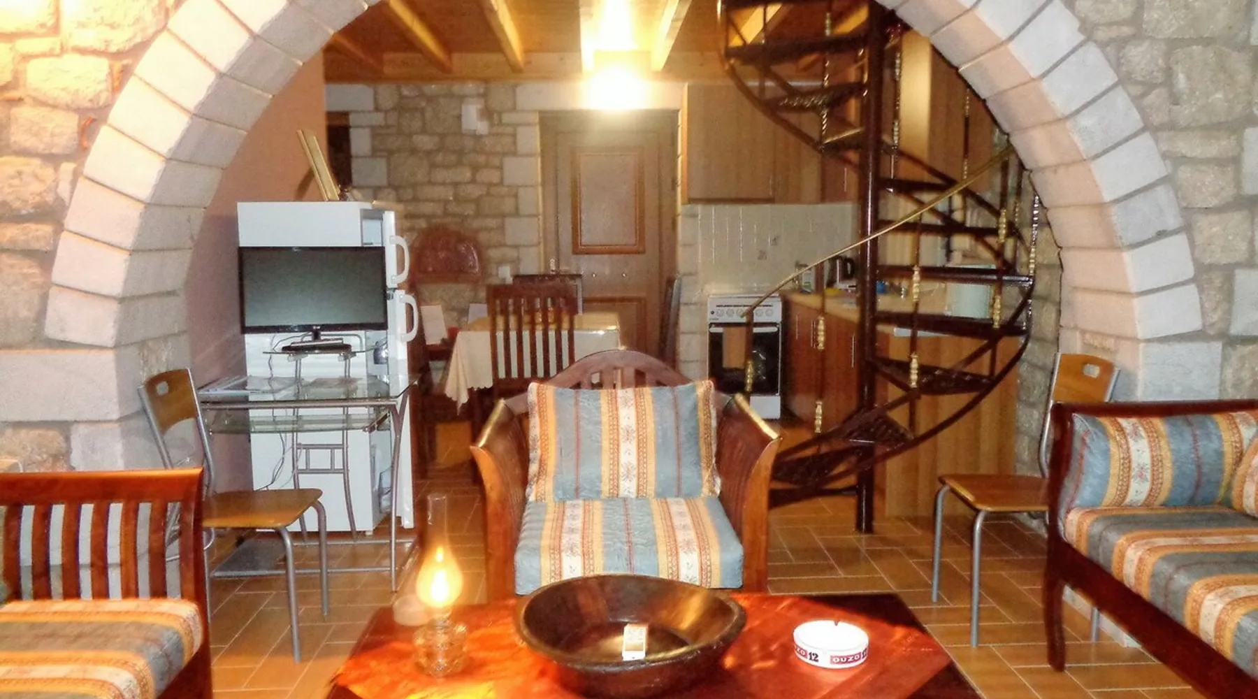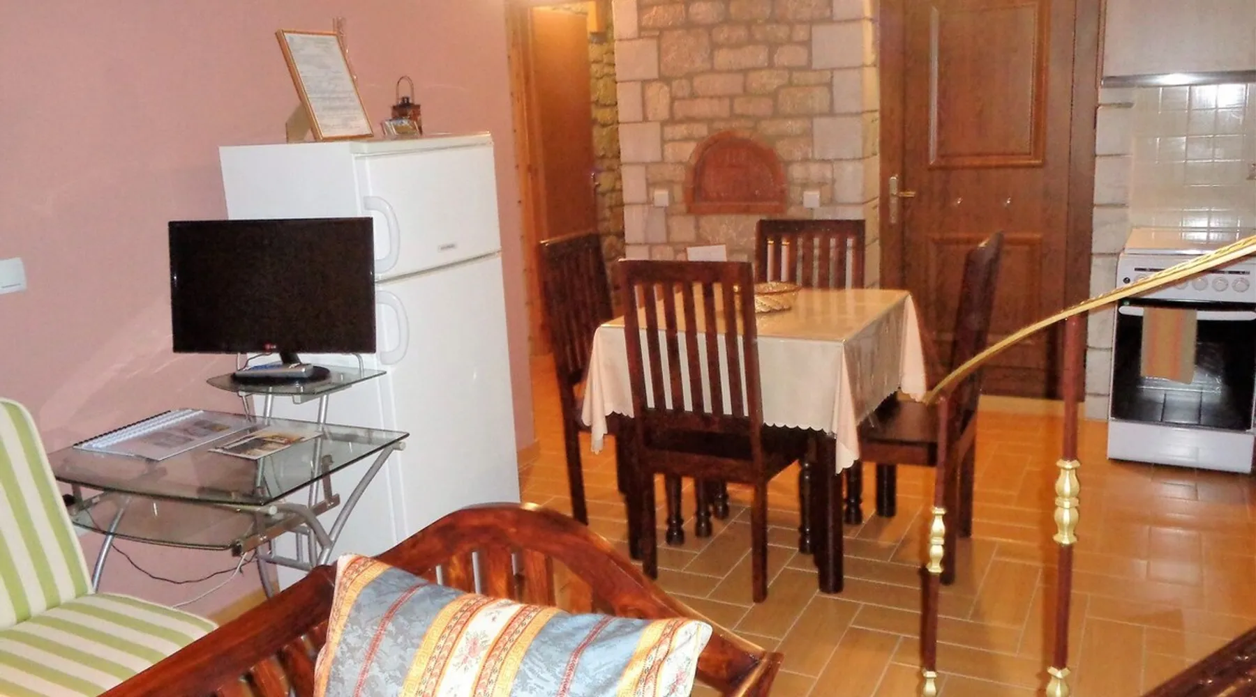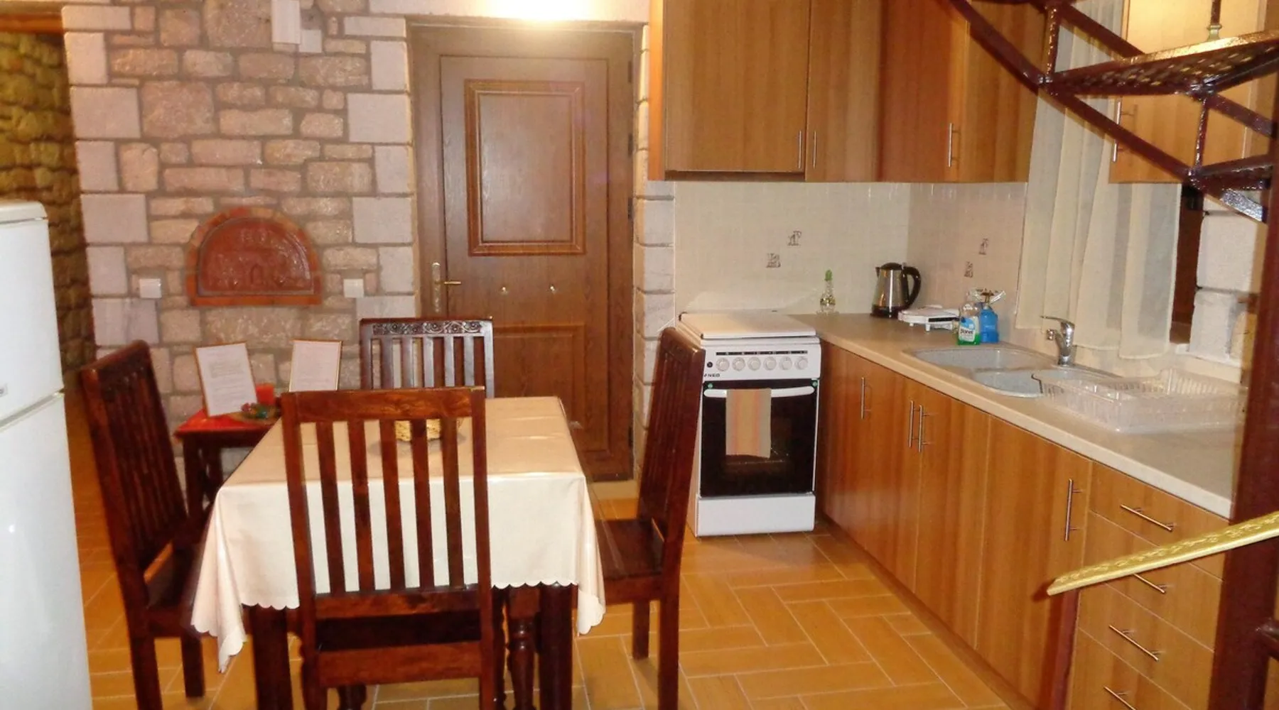 With care, passion and respect for the environment, at the foothills of Taygetos, just a few kilometers from the beautiful capital of Messinia, Kalamata and overlooking the magnificent Messinian Gulf, a modernly equipped, yet built and decorated with absolutely traditional way, the Menina Farm accommodation. The Farm consists of three traditional stone and spacious houses fully equipped. From the first moment of your arrival you’ll feel like home away from your home! The space Spaciousthree-room apartment of 75 square meters, capacity up to 5 adults, built on the first floor of the accommodation and consists of a comfortable living room with traditional furniture and TV, kitchenFully equipped with kitchenware and utensils, a bedroom with a traditional semi-double wooden bed and a wardrobe and a bathroom with a bathtub on the 1st level. On the 2nd level there is a large attic of 25 square meters furnished with a traditional wooden double and a semi-double bed. It is entirely a combination of modern and traditional style. It has 2 terraces overlooking Taygetos, the sea and the city of Kalamata respectively. Other Policies Pets: Pets are allowed. Includes extra charge 10€/night . Parking: Private parking is possible on site (reservation is not needed). Children and extra beds All children are welcome. There is no capacity for extra beds in a room. There is a possibility for a baby cot Facilities Facilities included in the room rate: Air conditioning Fan Fireplace Room - one available for connection Iron Living room Sofa bed Tiled / marble floor Washing machine Bathtub toilet LCD / Plasma / flat screen TV Radio Dinning room Kitchen Kitchens Refrigerator Balcony view of the sea GARDEN view View of a point of interest Boiler bath towels Toaster Cleaning products linen Closet Barbecue The whole unit on the ground floor Autonomic Outdoor furniture Clothes rack Dishwasher Ironing board Private entrance Sound insulation Registration Details 00002187811