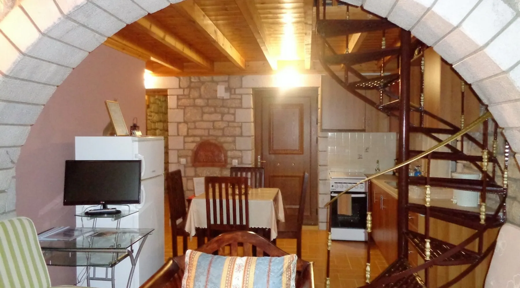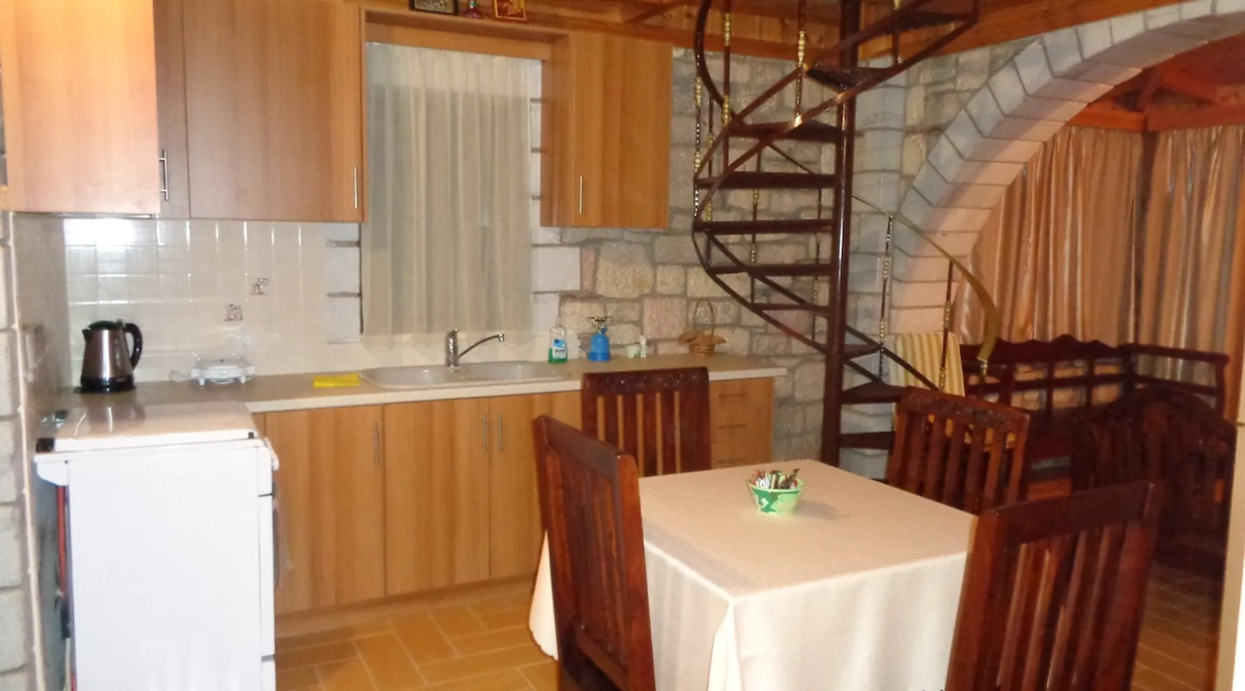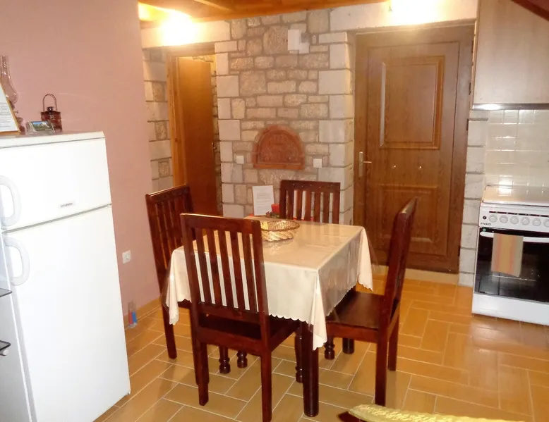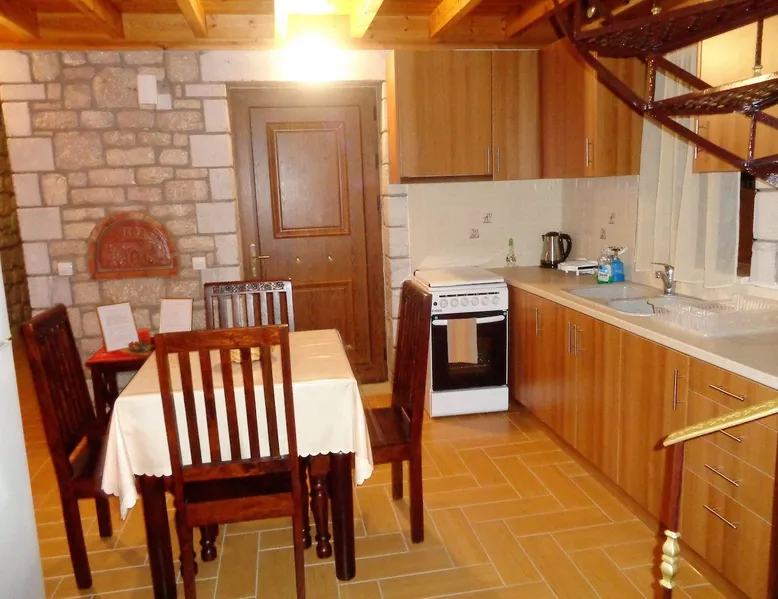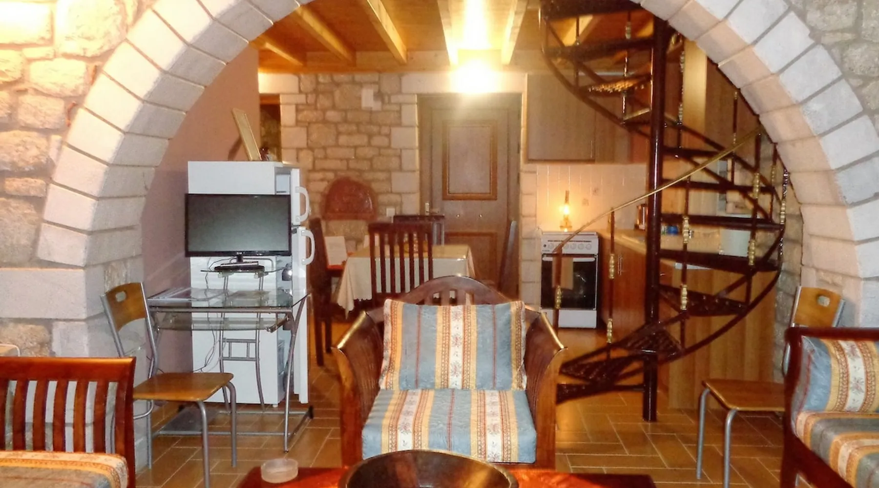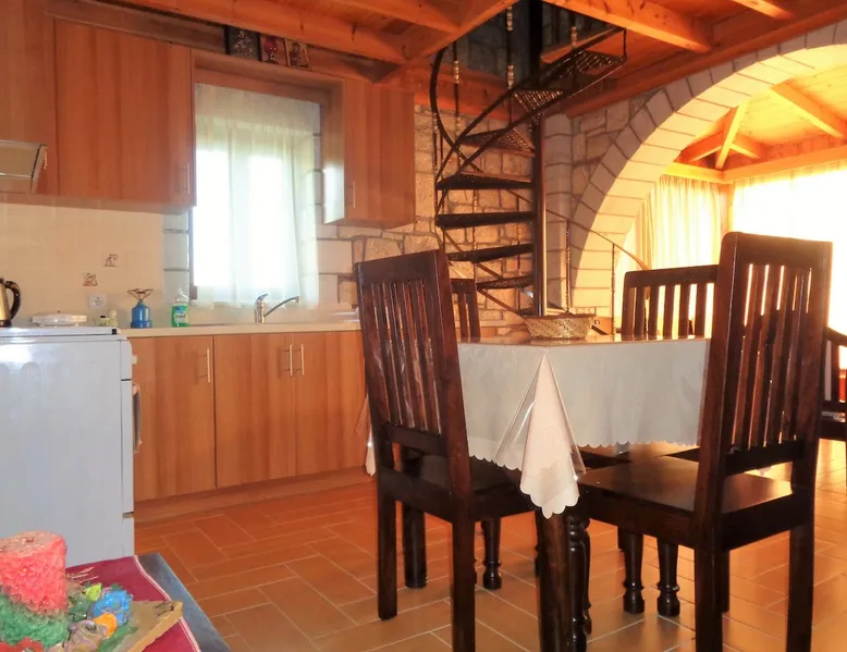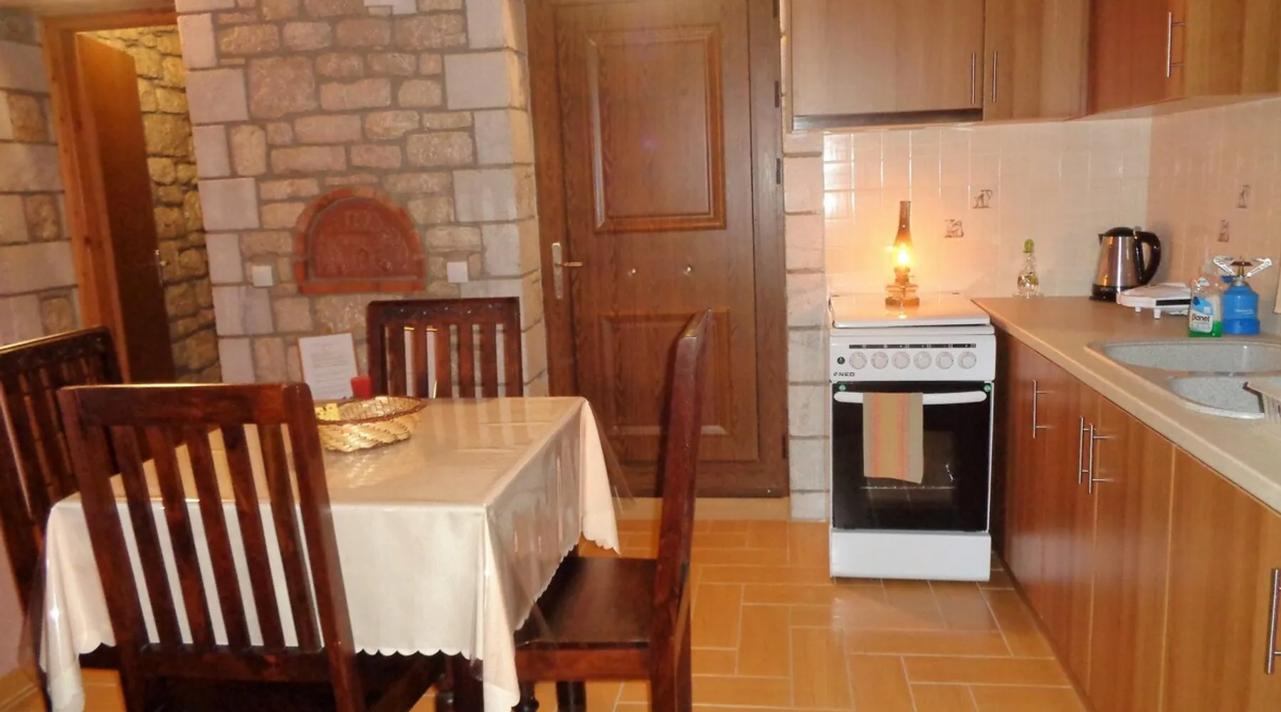 With care, passion and respect for the environment, at the foothills of Taygetos, just a few kilometers from the beautiful capital of Messinia, Kalamata and overlooking the magnificent Messinian Gulf, a modernly equipped, yet built and decorated with absolutely traditional way, the Menina Farm accommodation. The Farm consists of three traditional stone and spacious houses fully equipped. From the first moment of your arrival you’ll feel like home away from your home! The space Spaciousthree-room apartment of 75 square meters, capacity up to 5 adults, built on the first floor of the accommodation and consists of a comfortable living room with traditional furniture and TV, kitchenFully equipped with kitchenware and utensils, a bedroom with a traditional semi-double wooden bed and a wardrobe and a bathroom with a bathtub on the 1st level. On the 2nd level there is a large attic of 25 square meters furnished with a traditional wooden double and a semi-double bed. It is entirely a combination of modern and traditional style. It has 2 terraces overlooking Taygetos, the sea and the city of Kalamata respectively. Other Policies Pets: Pets are allowed. Includes extra charge 10€/night . Parking: Private parking is possible on site (reservation is not needed). Children and extra beds All children are welcome. There is no capacity for extra beds in a room. There is a possibility for a baby cot Facilities Facilities included in the room rate: Air conditioning Fan Fireplace Room - one available for connection Iron Living room Sofa bed Tiled / marble floor Washing machine Bathtub toilet LCD / Plasma / flat screen TV Radio Dinning room Kitchen Kitchens Refrigerator Balcony view of the sea GARDEN view View of a point of interest Boiler bath towels Toaster Cleaning products linen Closet Barbecue The whole unit on the ground floor Autonomic Outdoor furniture Clothes rack Dishwasher Ironing board Private entrance Sound insulation Registration Details 00002187811