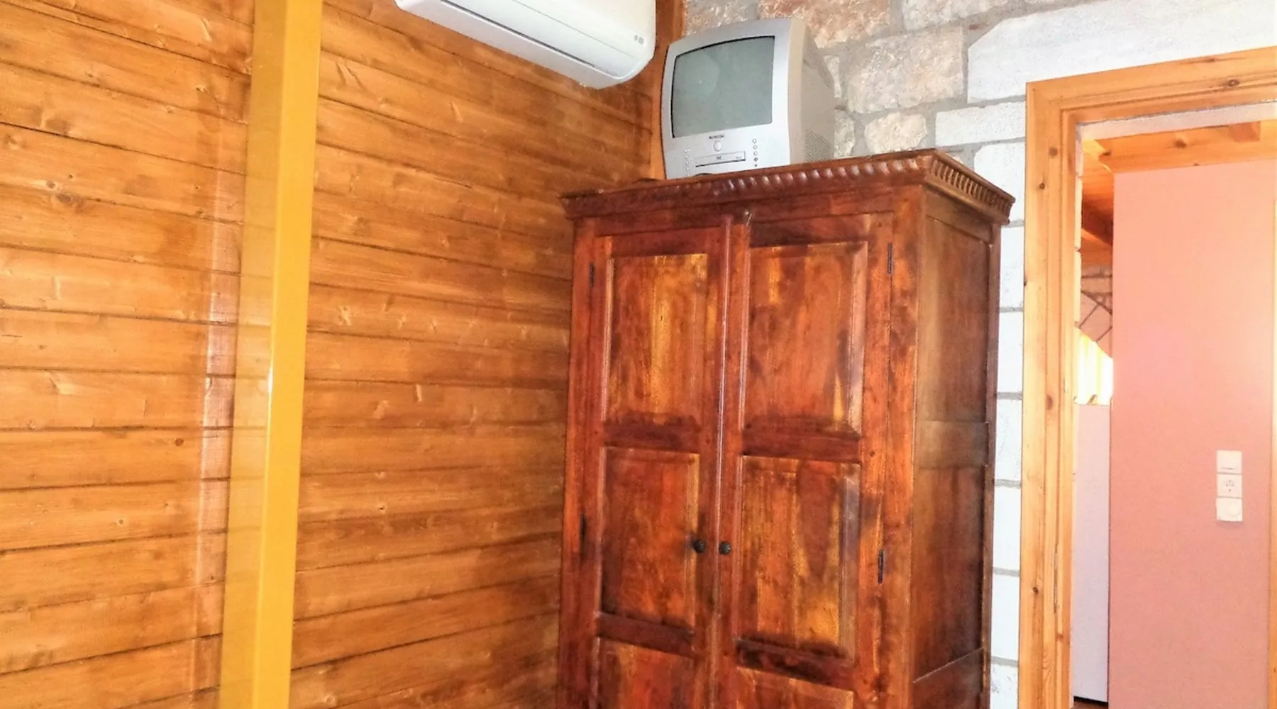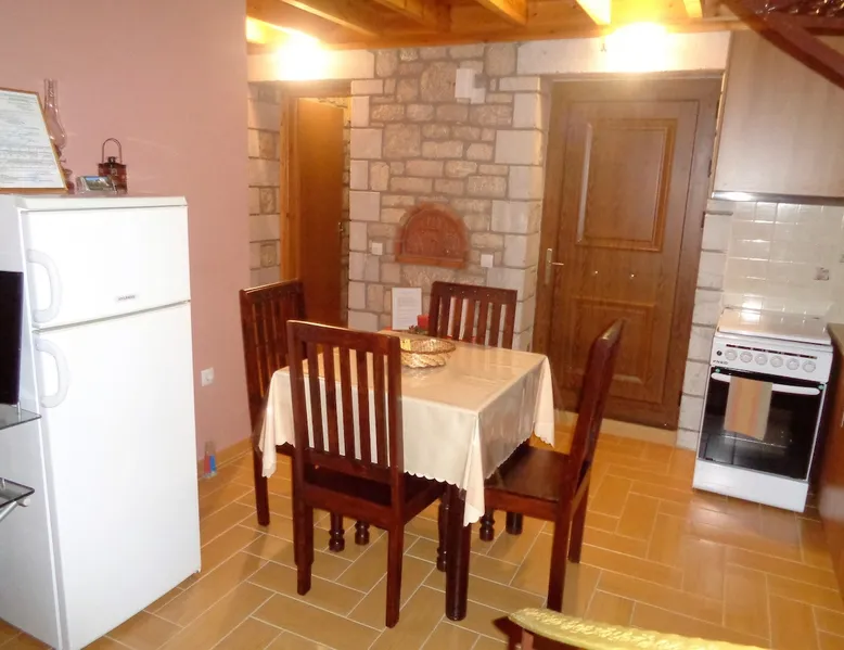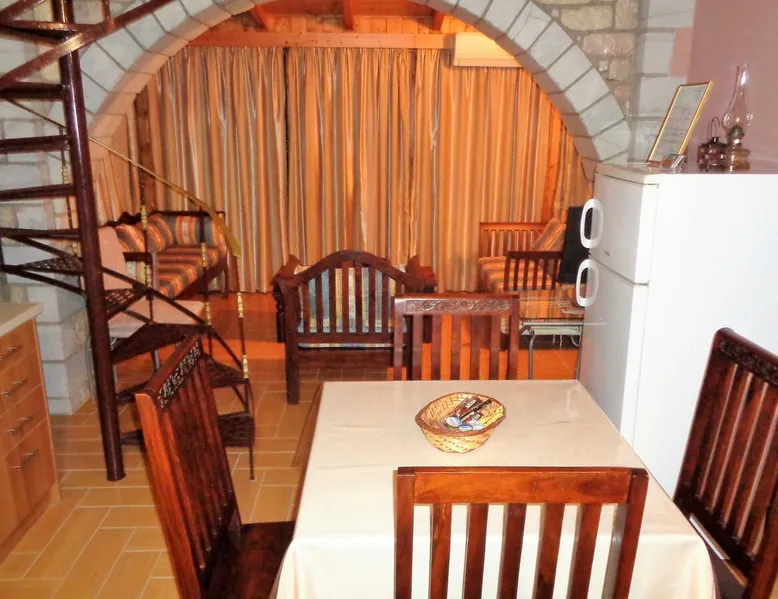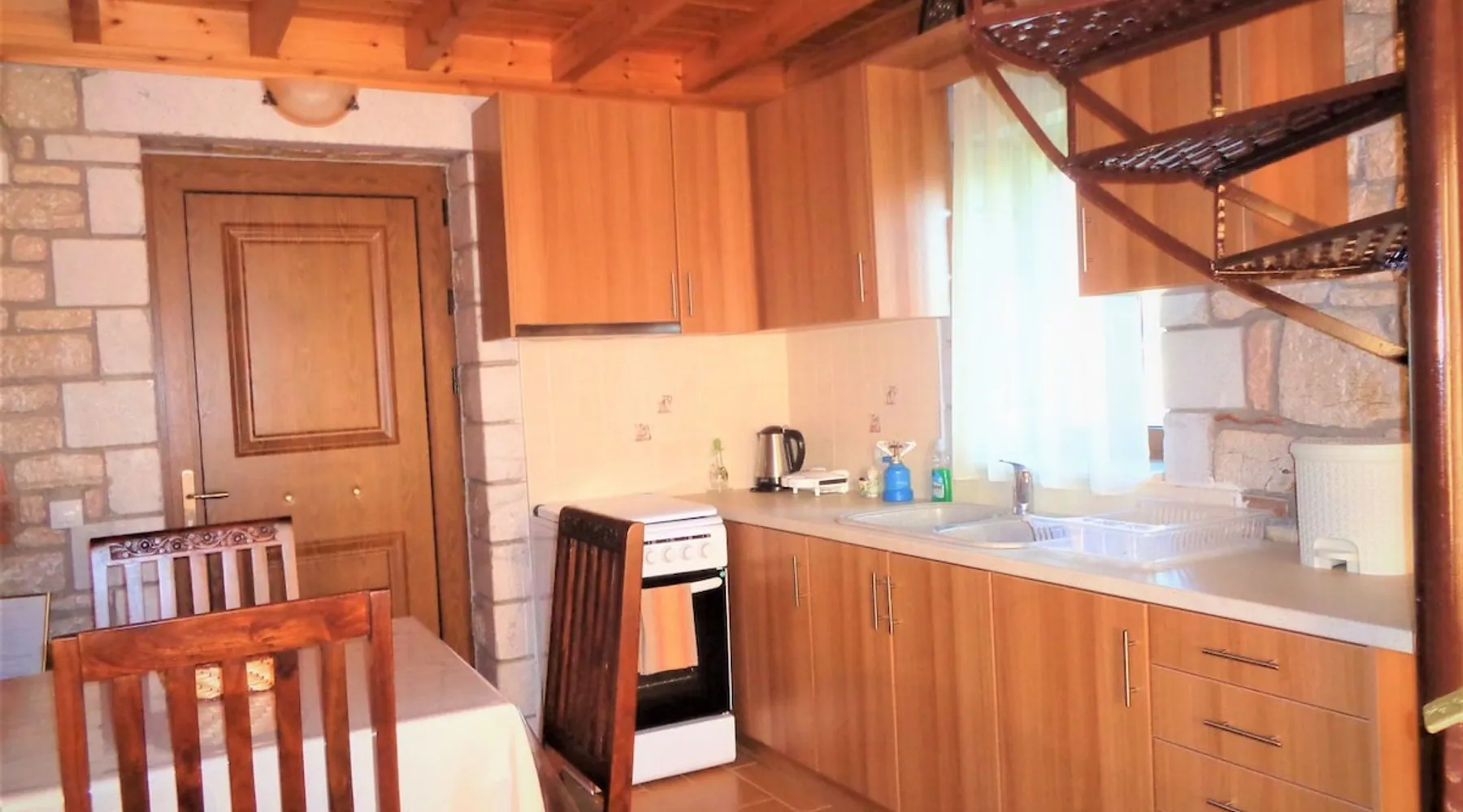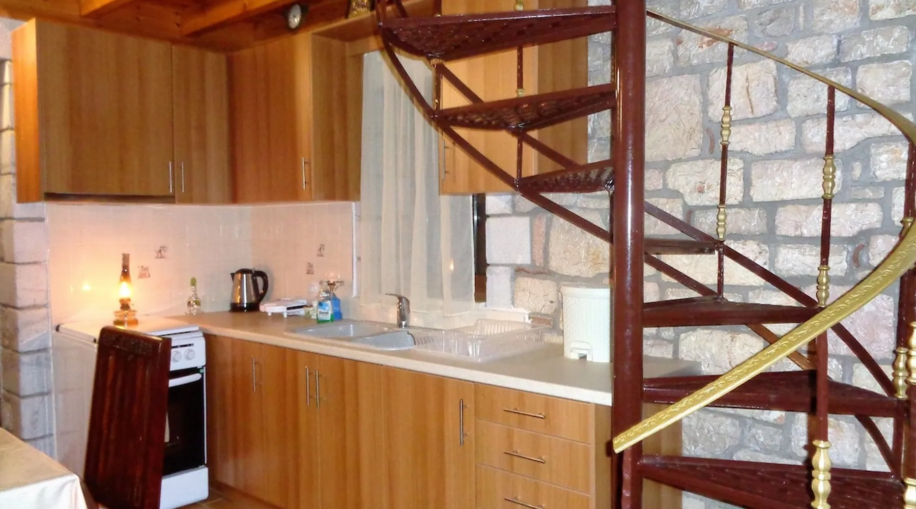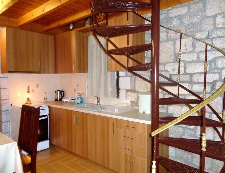 With care, passion and respect for the environment, at the foothills of Taygetos, just a few kilometers from the beautiful capital of Messinia, Kalamata and overlooking the magnificent Messinian Gulf, a modernly equipped, yet built and decorated with absolutely traditional way, the Menina Farm accommodation. The Farm consists of three traditional stone and spacious houses fully equipped. From the first moment of your arrival you’ll feel like home away from your home! The space Spaciousthree-room apartment of 75 square meters, capacity up to 5 adults, built on the first floor of the accommodation and consists of a comfortable living room with traditional furniture and TV, kitchenFully equipped with kitchenware and utensils, a bedroom with a traditional semi-double wooden bed and a wardrobe and a bathroom with a bathtub on the 1st level. On the 2nd level there is a large attic of 25 square meters furnished with a traditional wooden double and a semi-double bed. It is entirely a combination of modern and traditional style. It has 2 terraces overlooking Taygetos, the sea and the city of Kalamata respectively. Other Policies Pets: Pets are allowed. Includes extra charge 10€/night . Parking: Private parking is possible on site (reservation is not needed). Children and extra beds All children are welcome. There is no capacity for extra beds in a room. There is a possibility for a baby cot Facilities Facilities included in the room rate: Air conditioning Fan Fireplace Room - one available for connection Iron Living room Sofa bed Tiled / marble floor Washing machine Bathtub toilet LCD / Plasma / flat screen TV Radio Dinning room Kitchen Kitchens Refrigerator Balcony view of the sea GARDEN view View of a point of interest Boiler bath towels Toaster Cleaning products linen Closet Barbecue The whole unit on the ground floor Autonomic Outdoor furniture Clothes rack Dishwasher Ironing board Private entrance Sound insulation Registration Details 00002187811