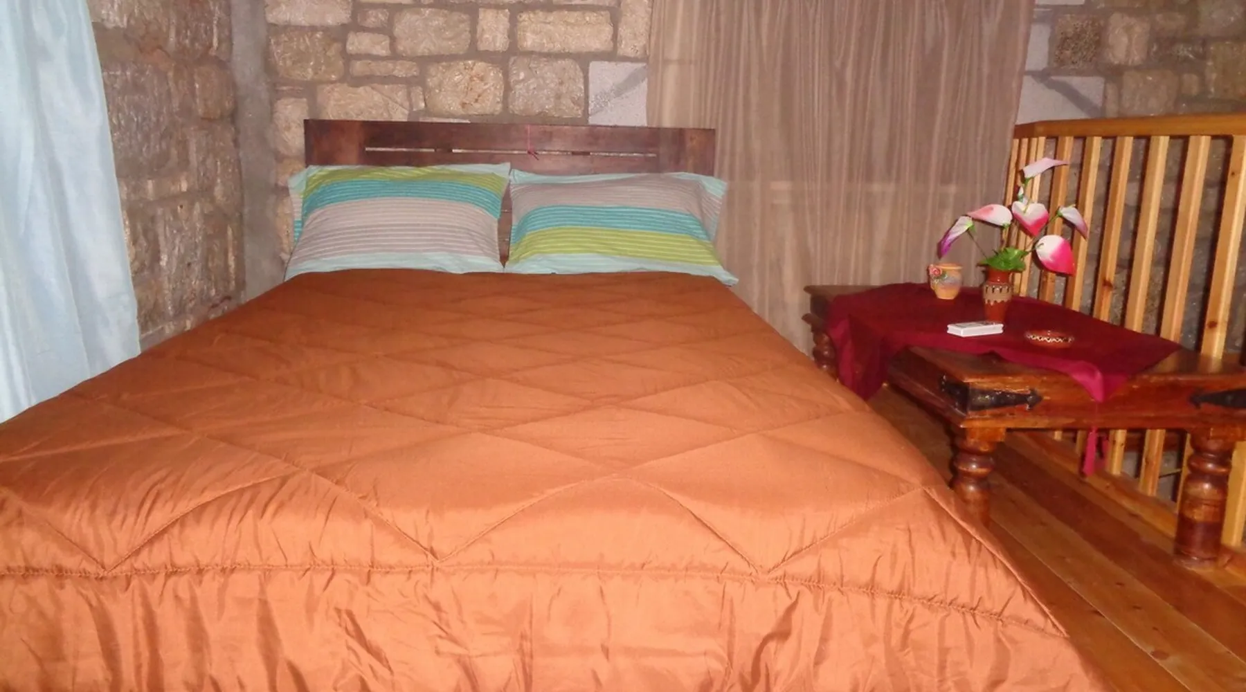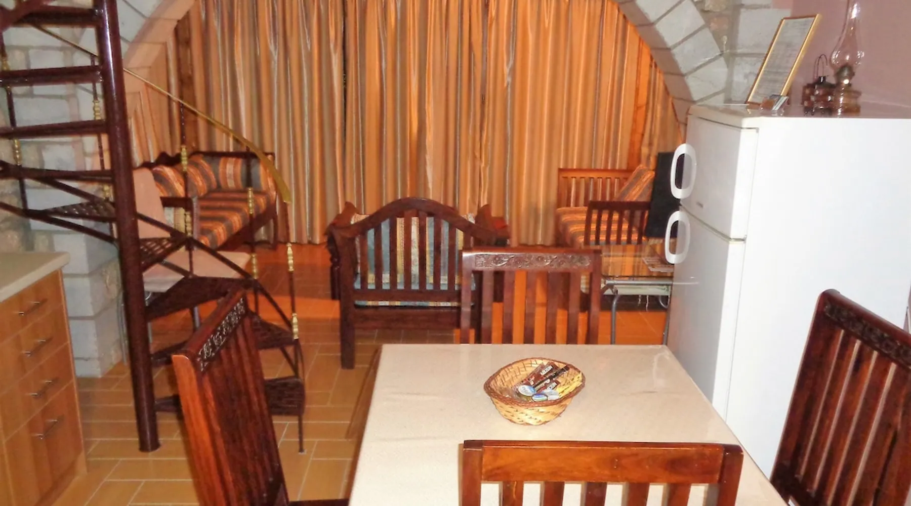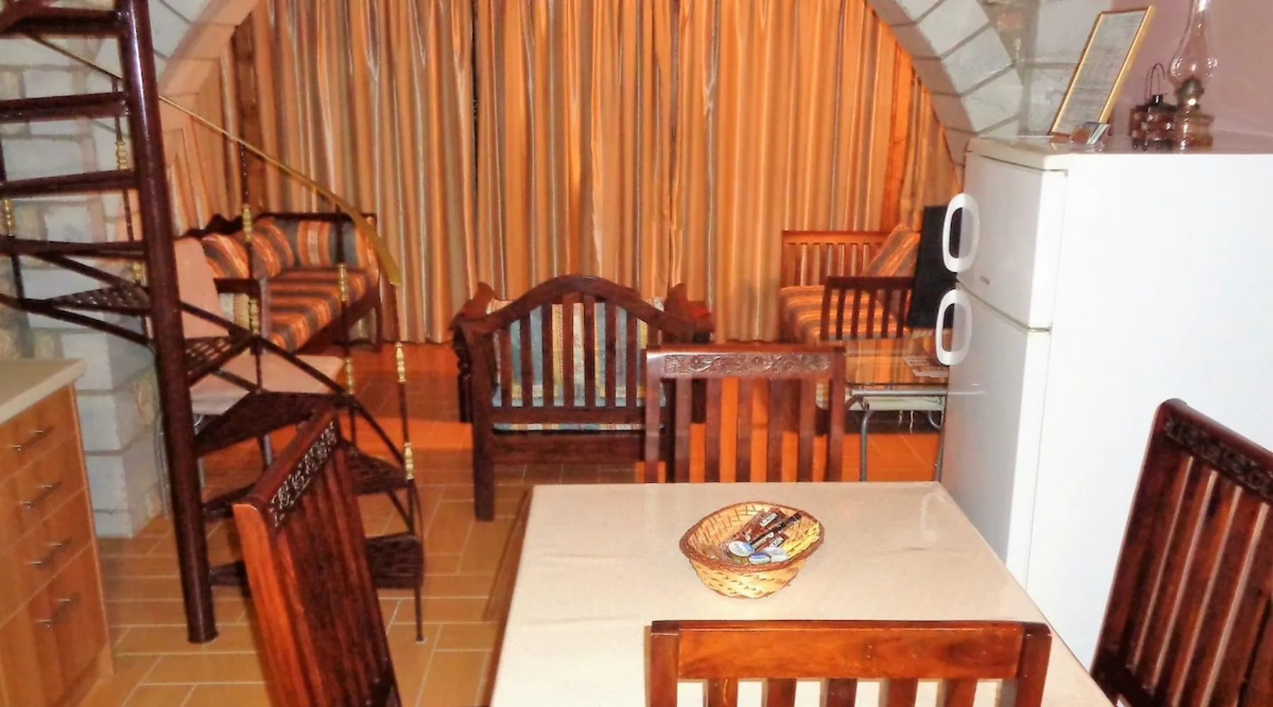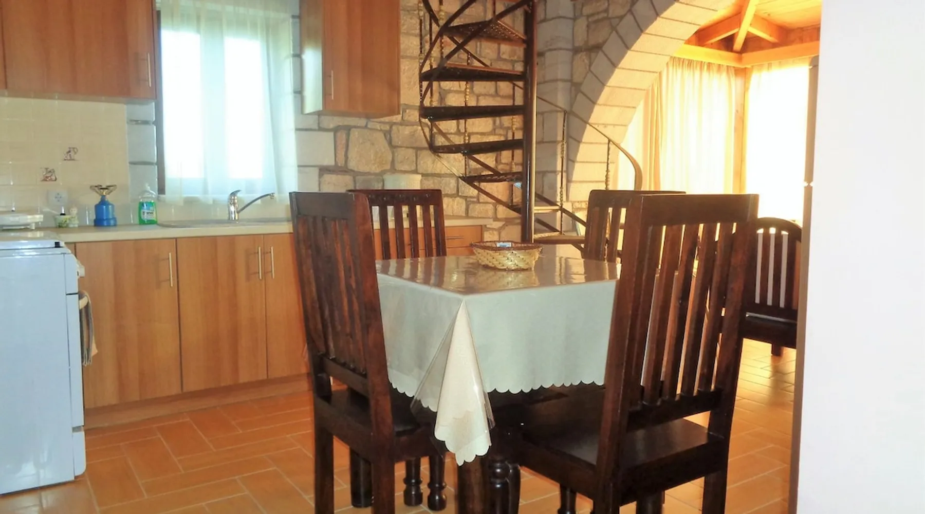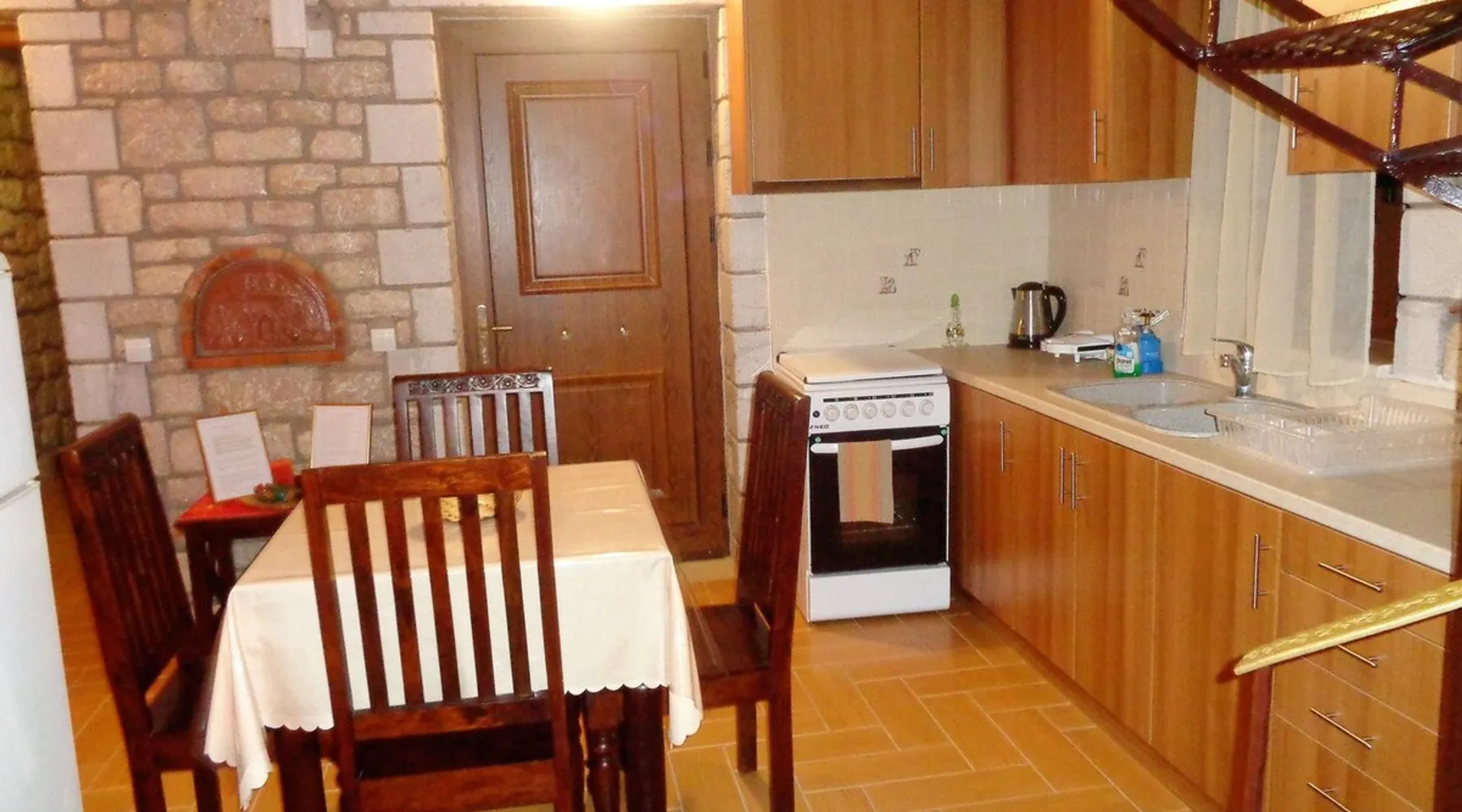 With care, passion and respect for the environment, at the foothills of Taygetos, just a few kilometers from the beautiful capital of Messinia, Kalamata and overlooking the magnificent Messinian Gulf, a modernly equipped, yet built and decorated with absolutely traditional way, the Menina Farm accommodation. The Farm consists of three traditional stone and spacious houses fully equipped. From the first moment of your arrival you’ll feel like home away from your home! The space Spaciousthree-room apartment of 75 square meters, capacity up to 5 adults, built on the first floor of the accommodation and consists of a comfortable living room with traditional furniture and TV, kitchenFully equipped with kitchenware and utensils, a bedroom with a traditional semi-double wooden bed and a wardrobe and a bathroom with a bathtub on the 1st level. On the 2nd level there is a large attic of 25 square meters furnished with a traditional wooden double and a semi-double bed. It is entirely a combination of modern and traditional style. It has 2 terraces overlooking Taygetos, the sea and the city of Kalamata respectively. Other Policies Pets: Pets are allowed. Includes extra charge 10€/night . Parking: Private parking is possible on site (reservation is not needed). Children and extra beds All children are welcome. There is no capacity for extra beds in a room. There is a possibility for a baby cot Facilities Facilities included in the room rate: Air conditioning Fan Fireplace Room - one available for connection Iron Living room Sofa bed Tiled / marble floor Washing machine Bathtub toilet LCD / Plasma / flat screen TV Radio Dinning room Kitchen Kitchens Refrigerator Balcony view of the sea GARDEN view View of a point of interest Boiler bath towels Toaster Cleaning products linen Closet Barbecue The whole unit on the ground floor Autonomic Outdoor furniture Clothes rack Dishwasher Ironing board Private entrance Sound insulation Registration Details 00002187811