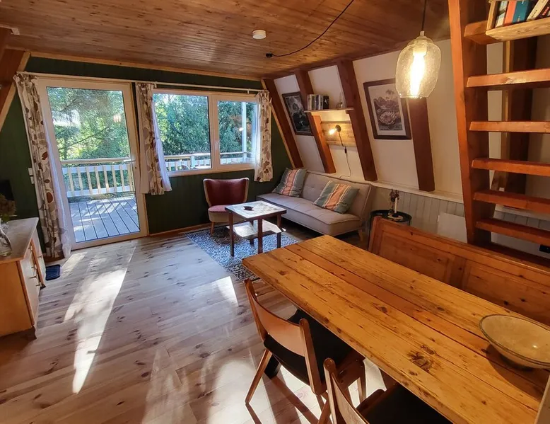 Enjoy morning coffee with birdsong in the hanging chair, go swimming later in nearby Wukensee and barbecue on the terrace in the evening in the glow of the fairy lights: This is possible here! We are located right on the edge of the forest and have direct access to the "Biesenthaler Becken" nature reserve. Nearby swimming lakes include the Hellsee, the Große and Kleine Wukensee, or the Liepnitzsee. Other things to note Biesenthal is easily accessible by bus and train. The fastest connection from Berlin is the RE or the S-Bahn to Bernau and then bus 896 to "Biesenthal Ambulatorium."