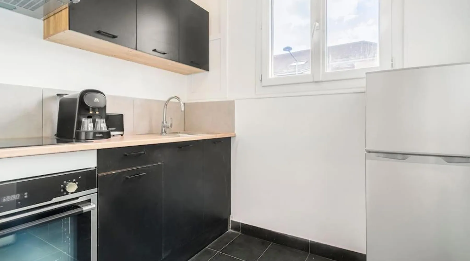 Comfortable Living Space: Studio paisible en banlieue parisienne - Montreuil offers a comfortable apartment in Montreuil. Guests enjoy free WiFi, a private bathroom, and a fully equipped kitchen with a coffee machine, oven, and refrigerator. Modern Amenities: The apartment includes a dining area with a table, a seating area, and a TV. Additional facilities include a hairdryer and a shower. Reception staff speak English, Spanish, and French. Prime Location: Located 11 mi from Paris Charles de Gaulle Airport, the property is close to attractions such as the Pompidou Center (5 mi), Noter Dame Cathedral (6.8 mi), and an ice-skating rink in the surroundings. The studio's kitchen, which has a refrigerator and an oven, is available for cooking and storing food. The studio offers a coffee machine, a seating area, as well as a private bathroom boasting a shower and a hairdryer. The unit has 1 bed.