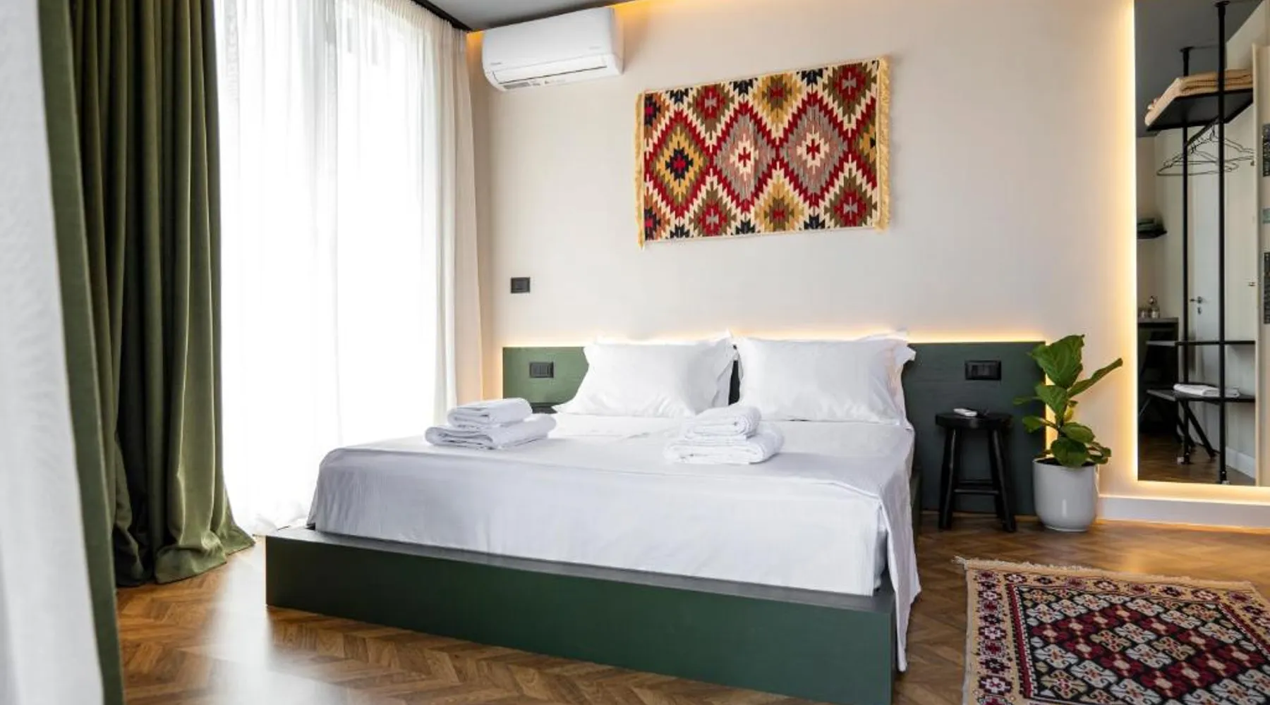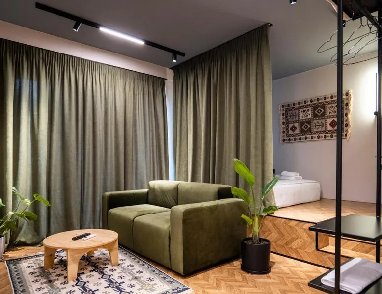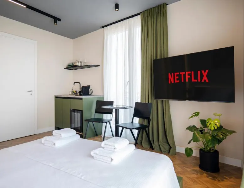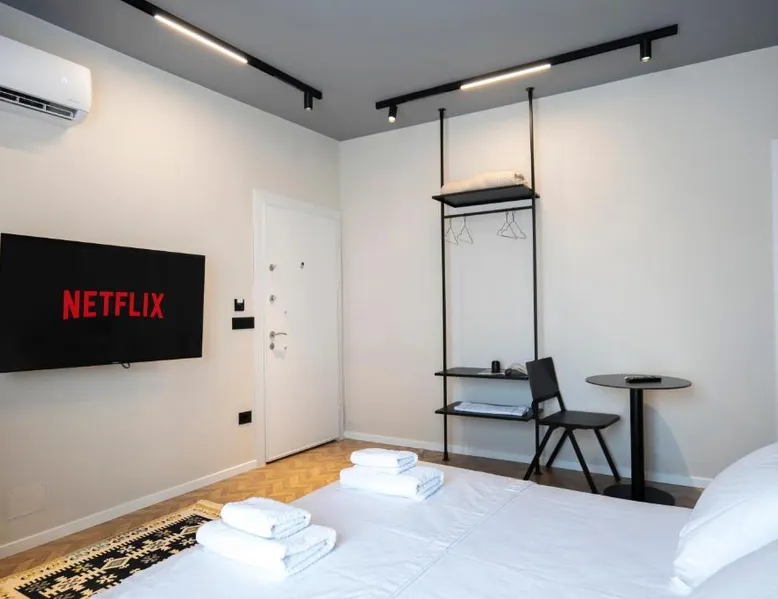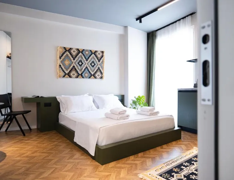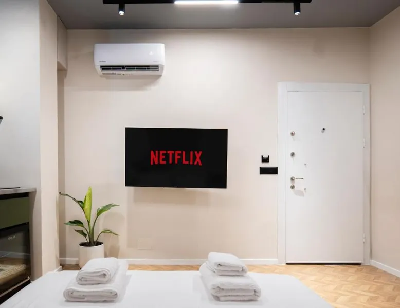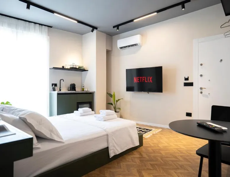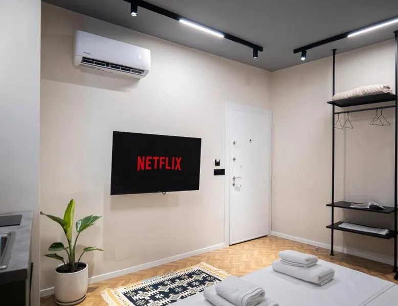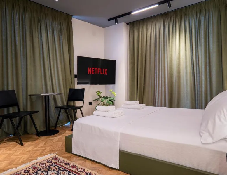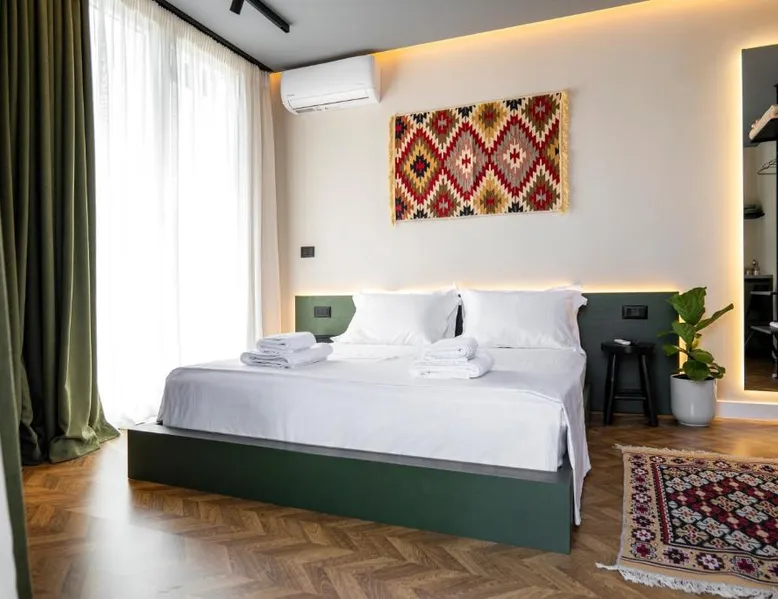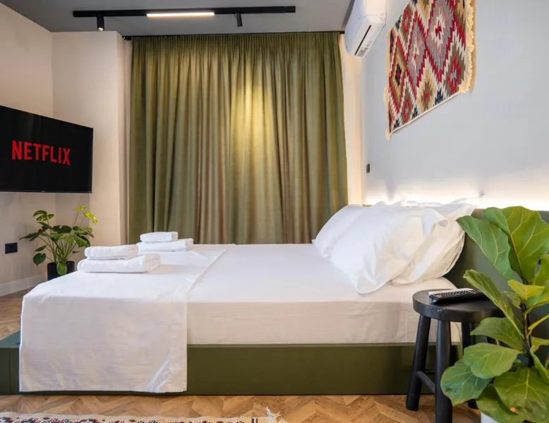 Comfortable Accommodations: MUZ Studios in Tirana offers a terrace and free WiFi. Family rooms provide a relaxing environment for all guests. Modern Amenities: The apartment features air-conditioning, streaming services, a washing machine, and a private bathroom. Additional amenities include a balcony, kitchenette, and parquet floors. Convenient Location: Located 8.7 mi from Tirana International Mother Teresa Airport, the property is a short walk from Skanderbeg Square and the National Theater of Opera and Ballet. Nearby attractions include the National Museum of History and Et'hem Bey Mosque. Guest Satisfaction: Highly rated for its convenient location, room cleanliness, and attentive host. Featuring a private entrance, this air-conditioned apartment is consisted of of 1 living room, 1 separate bedroom and 1 bathroom with a shower and a bidet. In the well-equipped kitchen, guests will find a stovetop, a refrigerator, an oven and an electric kettle. The spacious apartment offers a flat-screen TV with streaming services, a washing machine, a seating area, a wardrobe as well as garden views. The unit offers 2 beds.