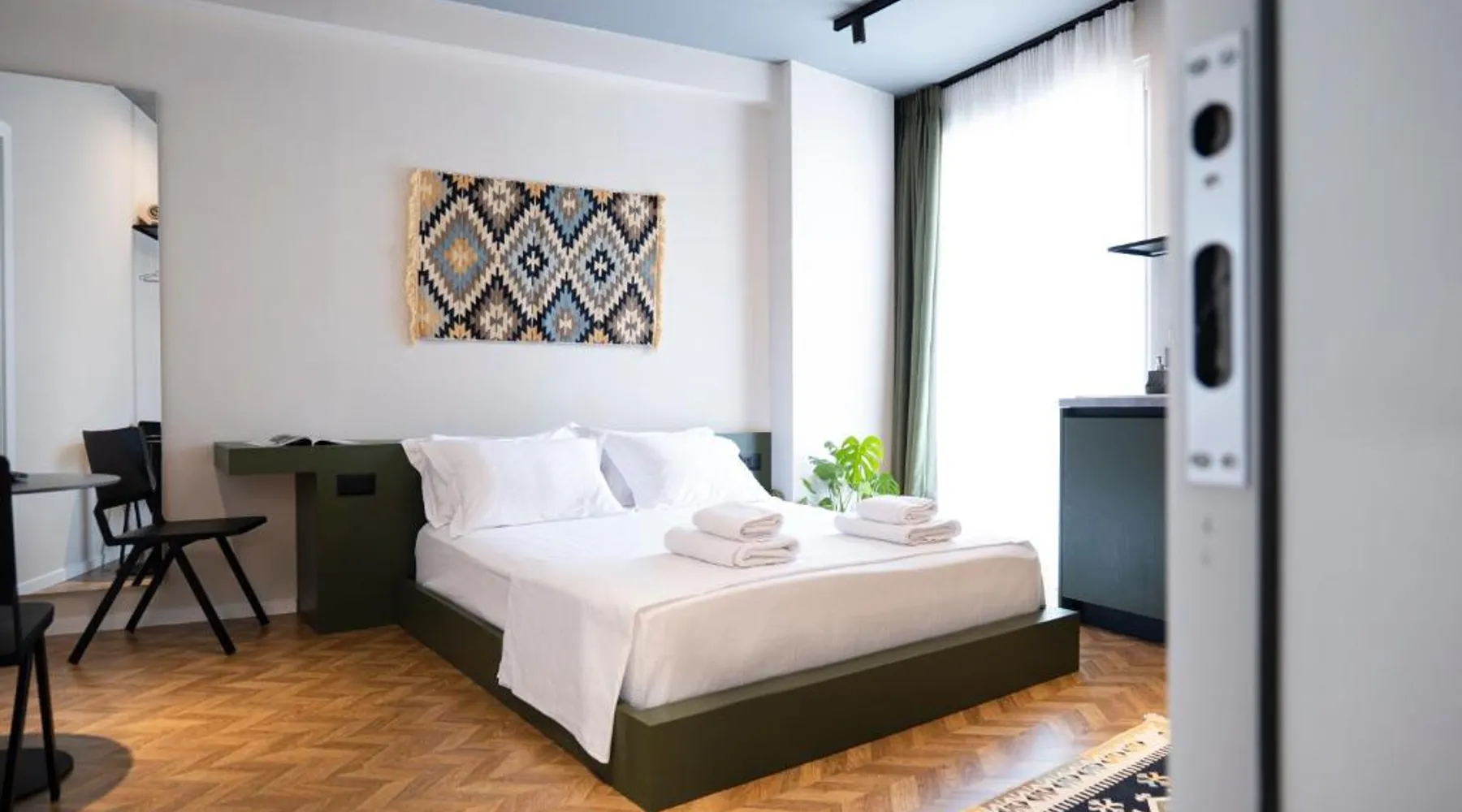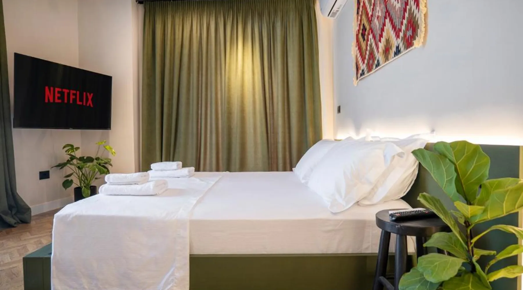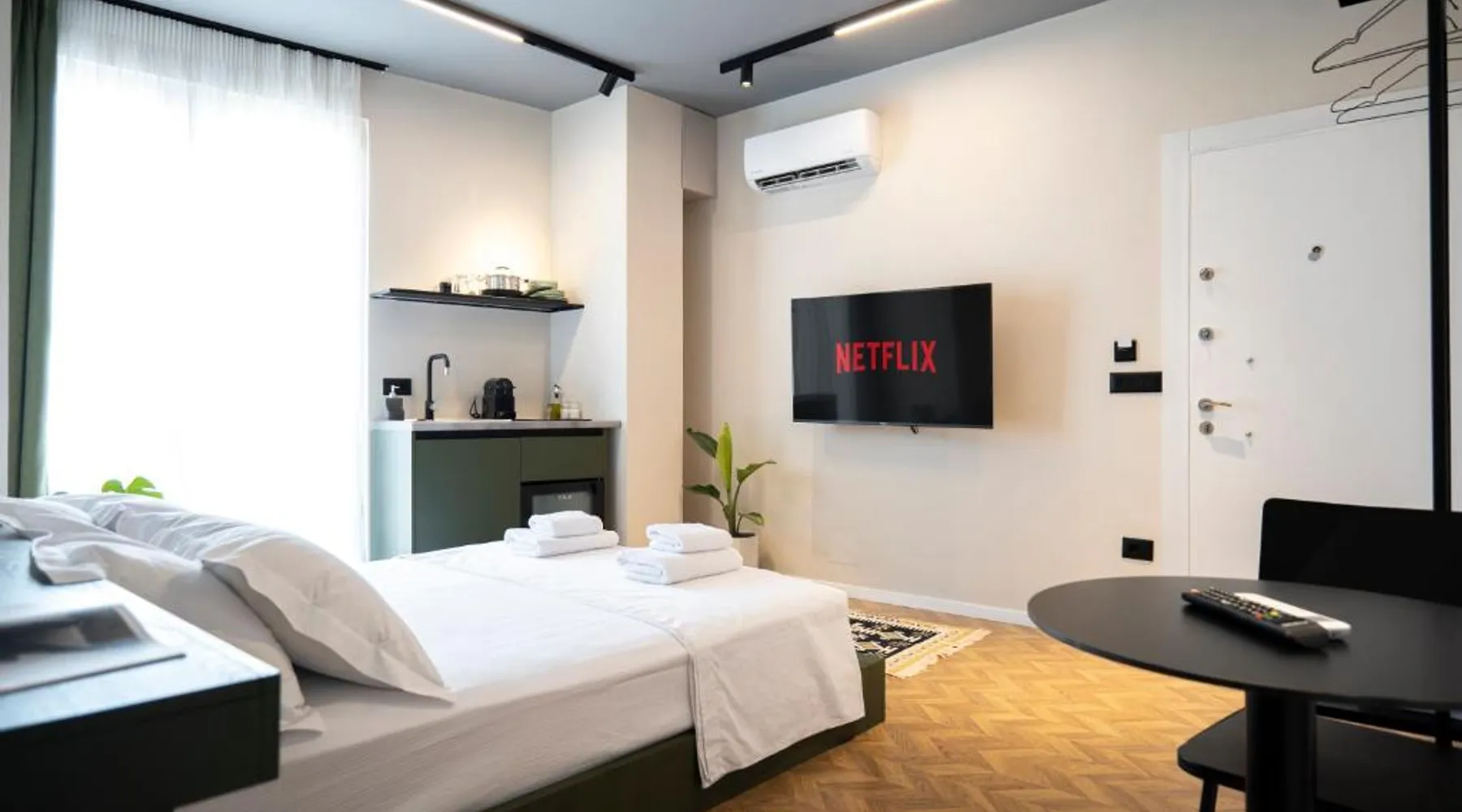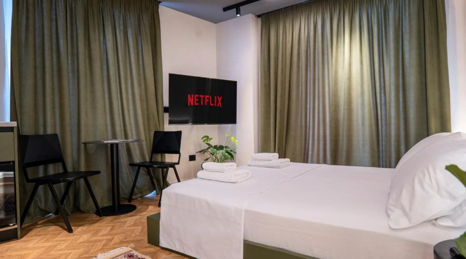 Comfortable Accommodations: MUZ Studios in Tirana offers a terrace and free WiFi. Family rooms provide a relaxing environment for all guests. Modern Amenities: The apartment features air-conditioning, streaming services, a washing machine, and a private bathroom. Additional amenities include a balcony, kitchenette, and parquet floors. Convenient Location: Located 8.7 mi from Tirana International Mother Teresa Airport, the property is a short walk from Skanderbeg Square and the National Theater of Opera and Ballet. Nearby attractions include the National Museum of History and Et'hem Bey Mosque. Guest Satisfaction: Highly rated for its convenient location, room cleanliness, and attentive host. Featuring a private entrance, this air-conditioned apartment is consisted of of 1 living room, 1 separate bedroom and 1 bathroom with a shower and a bidet. In the well-equipped kitchen, guests will find a stovetop, a refrigerator, an oven and an electric kettle. The spacious apartment offers a flat-screen TV with streaming services, a washing machine, a seating area, a wardrobe as well as garden views. The unit offers 2 beds.