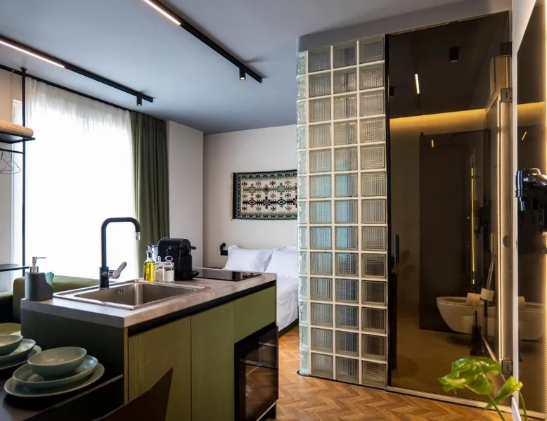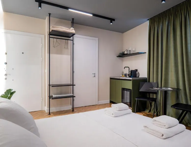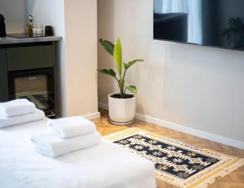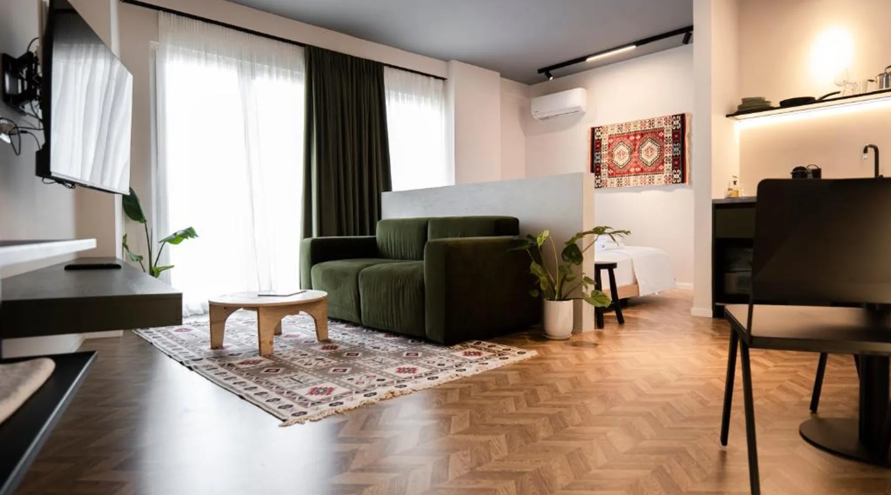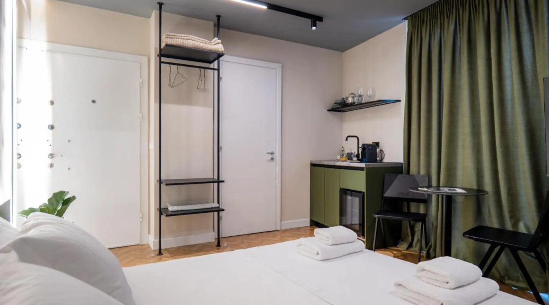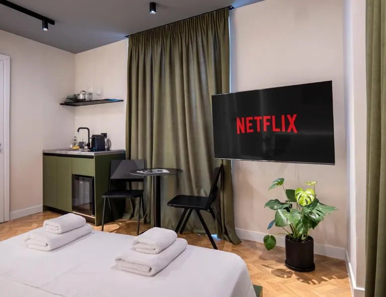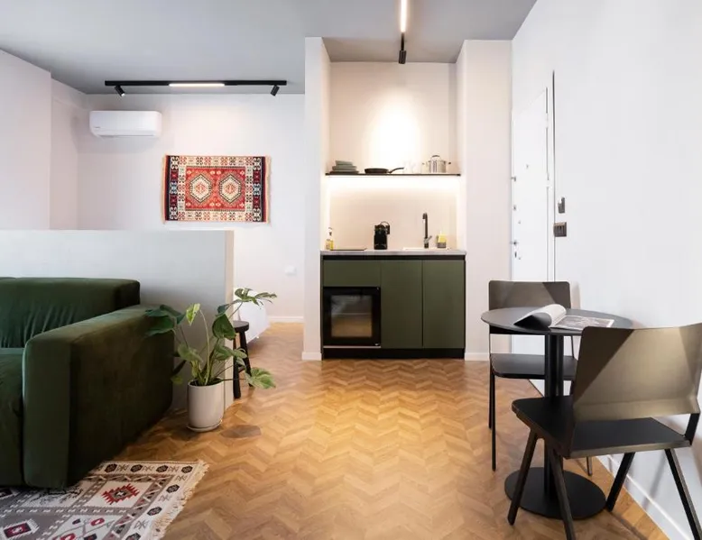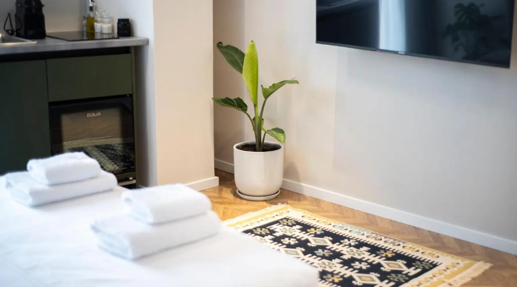 Comfortable Accommodations: MUZ Studios in Tirana offers a terrace and free WiFi. Family rooms provide a relaxing environment for all guests. Modern Amenities: The apartment features air-conditioning, streaming services, a washing machine, and a private bathroom. Additional amenities include a balcony, kitchenette, and parquet floors. Convenient Location: Located 8.7 mi from Tirana International Mother Teresa Airport, the property is a short walk from Skanderbeg Square and the National Theater of Opera and Ballet. Nearby attractions include the National Museum of History and Et'hem Bey Mosque. Guest Satisfaction: Highly rated for its convenient location, room cleanliness, and attentive host. Featuring a private entrance, this air-conditioned apartment is consisted of of 1 living room, 1 separate bedroom and 1 bathroom with a shower and a bidet. In the well-equipped kitchen, guests will find a stovetop, a refrigerator, an oven and an electric kettle. The spacious apartment offers a flat-screen TV with streaming services, a washing machine, a seating area, a wardrobe as well as garden views. The unit offers 2 beds.