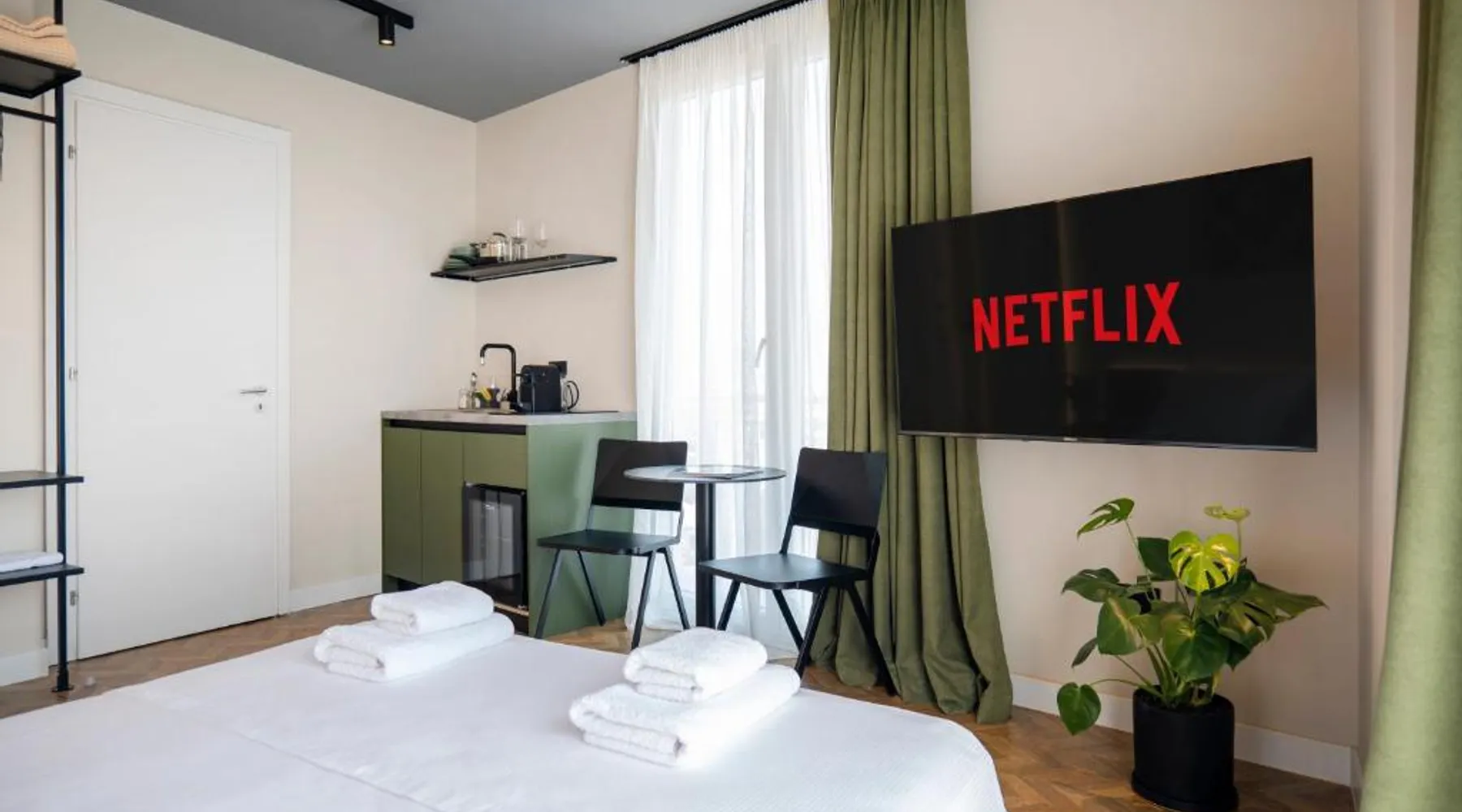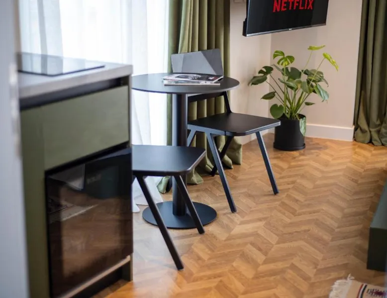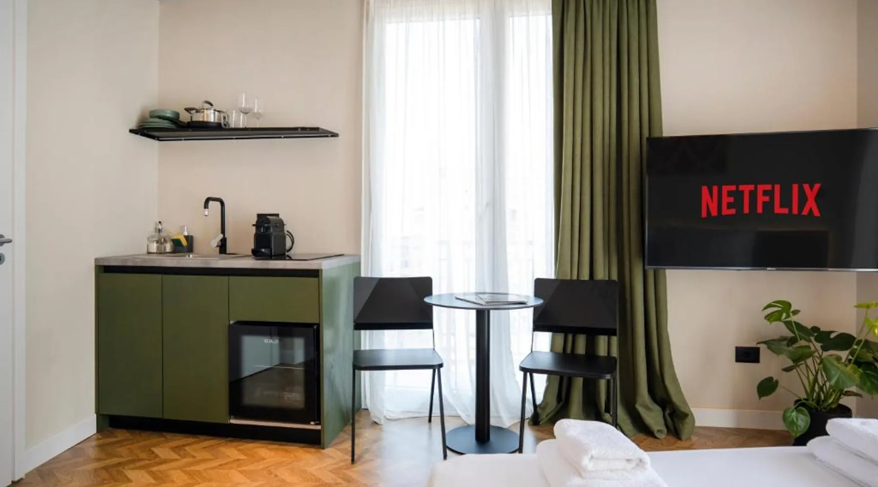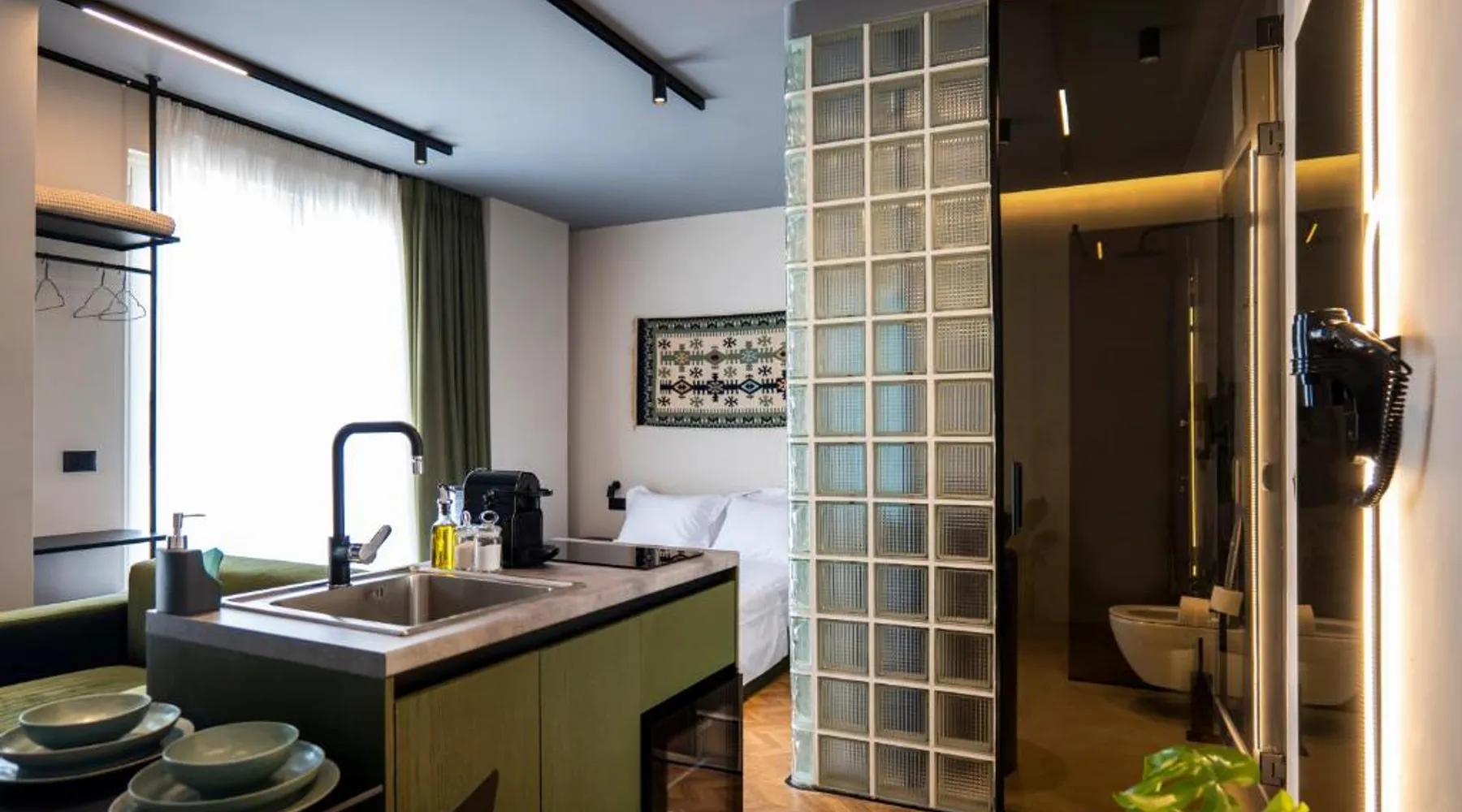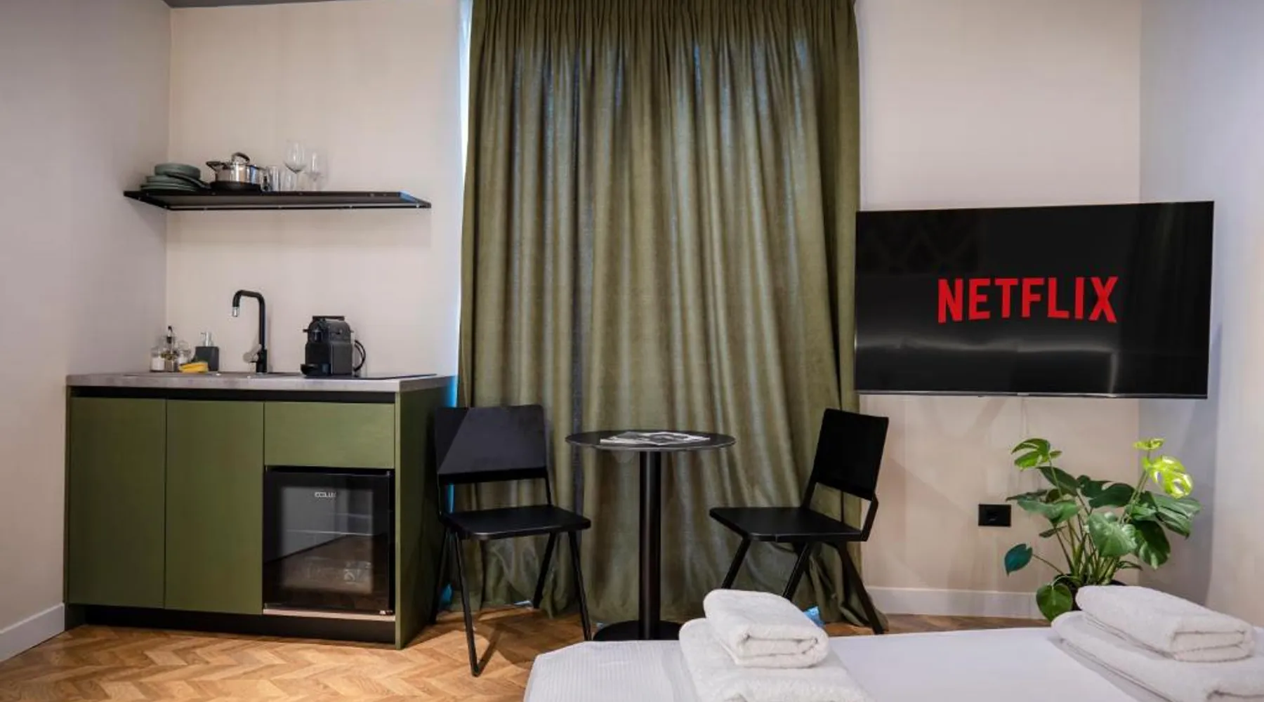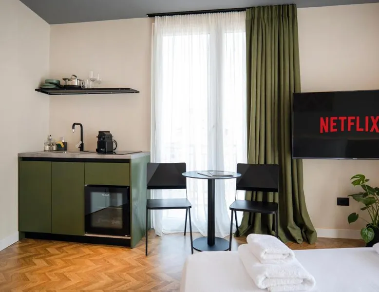 Comfortable Accommodations: MUZ Studios in Tirana offers a terrace and free WiFi. Family rooms provide a relaxing environment for all guests. Modern Amenities: The apartment features air-conditioning, streaming services, a washing machine, and a private bathroom. Additional amenities include a balcony, kitchenette, and parquet floors. Convenient Location: Located 8.7 mi from Tirana International Mother Teresa Airport, the property is a short walk from Skanderbeg Square and the National Theater of Opera and Ballet. Nearby attractions include the National Museum of History and Et'hem Bey Mosque. Guest Satisfaction: Highly rated for its convenient location, room cleanliness, and attentive host. Featuring a private entrance, this air-conditioned apartment is consisted of of 1 living room, 1 separate bedroom and 1 bathroom with a shower and a bidet. In the well-equipped kitchen, guests will find a stovetop, a refrigerator, an oven and an electric kettle. The spacious apartment offers a flat-screen TV with streaming services, a washing machine, a seating area, a wardrobe as well as garden views. The unit offers 2 beds.