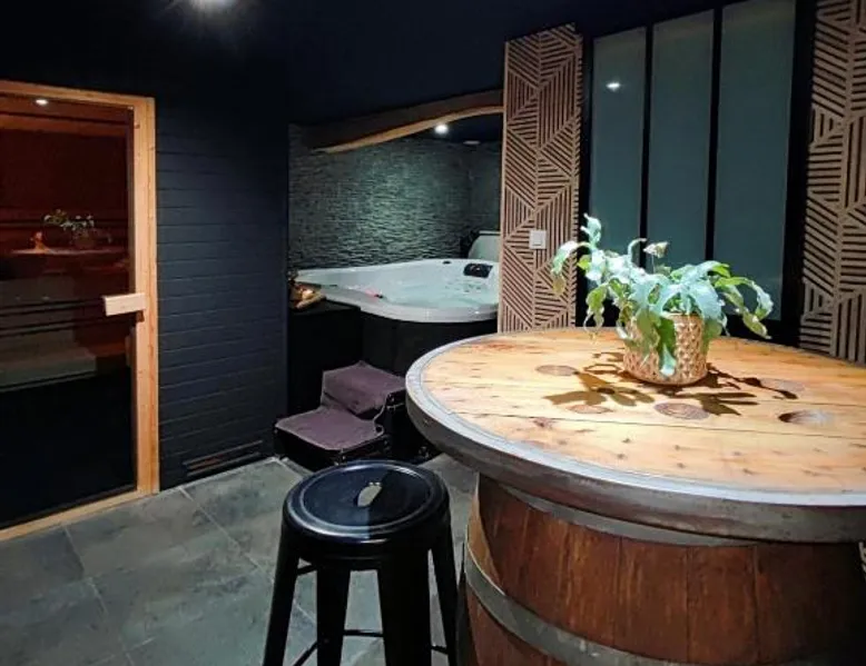 Spa and Wellness Center: Le Clos de la Rose gite bien être in Wirwignes offers a spa and wellness center with a sauna and hot tub. Guests can relax on the sun terrace or in the garden, enjoying free WiFi throughout the property. Comfortable Accommodations: The holiday home features one bedroom and a bathroom with a walk-in shower. Amenities include a lounge, kitchenette, and terrace. Free on-site private parking is available for guests. Local Attractions: Boulogne-sur-Mer Museum is 9.3 mi away, Cap Gris Nez 23 mi, and Cap Blanc Nez 26 mi from the property. Other attractions include Maréis Sea Fishing Discovery Center and The International Center of Lace and Fashion, each approximately 29 mi distant. Guest Favorites: Guests highly rate the hot tub and jacuzzi, making it a preferred choice for relaxation. This luxurious holiday home has a hot tub, a spa bath and a sauna. Guests will find a stovetop, a refrigerator, kitchenware and an oven in the well-fitted kitchen. The holiday home also includes a barbecue. Boasting a terrace with garden views, this holiday home also features a private entrance and a flat-screen TV. The unit has 1 bed.
