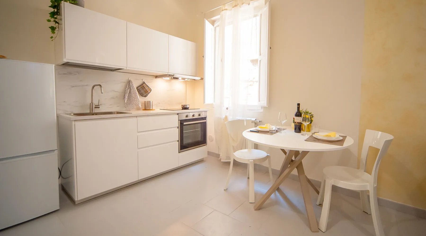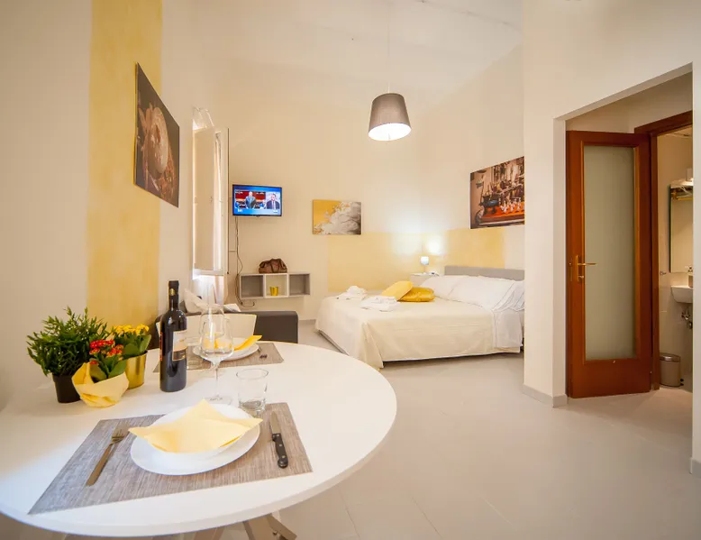 ALABASTRO is a comfortable loft situated on the second floor of an ancient palast in the city center, at only 100 meters walking from Piazza dei Priori. The sleeping area has a double bed with TV, while the dining area has a kitchen corner with a relaxing futon. Wi-Fi is free