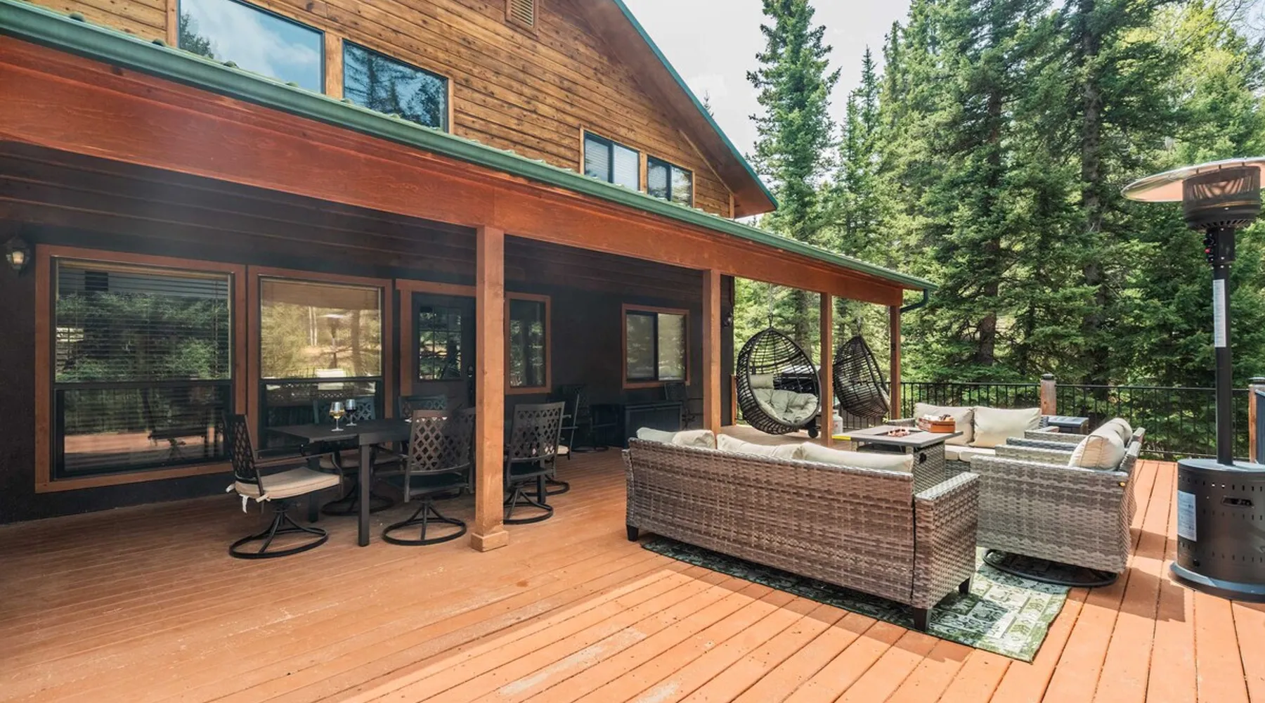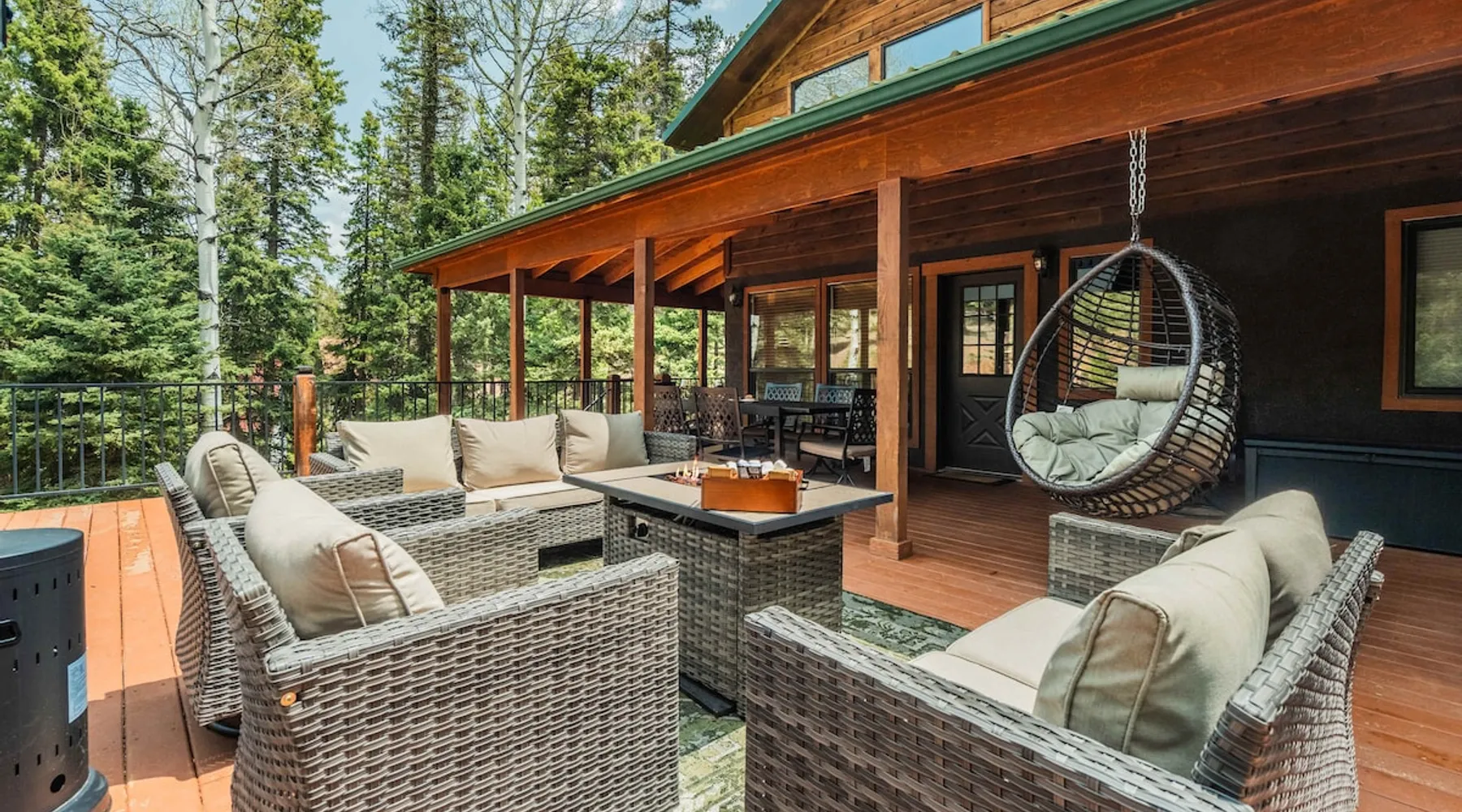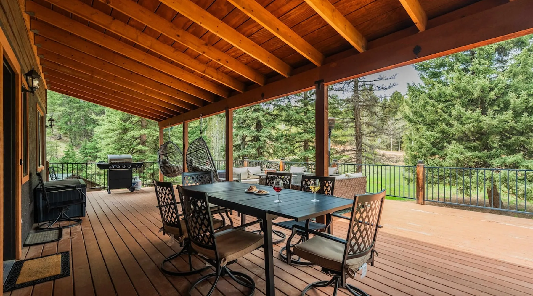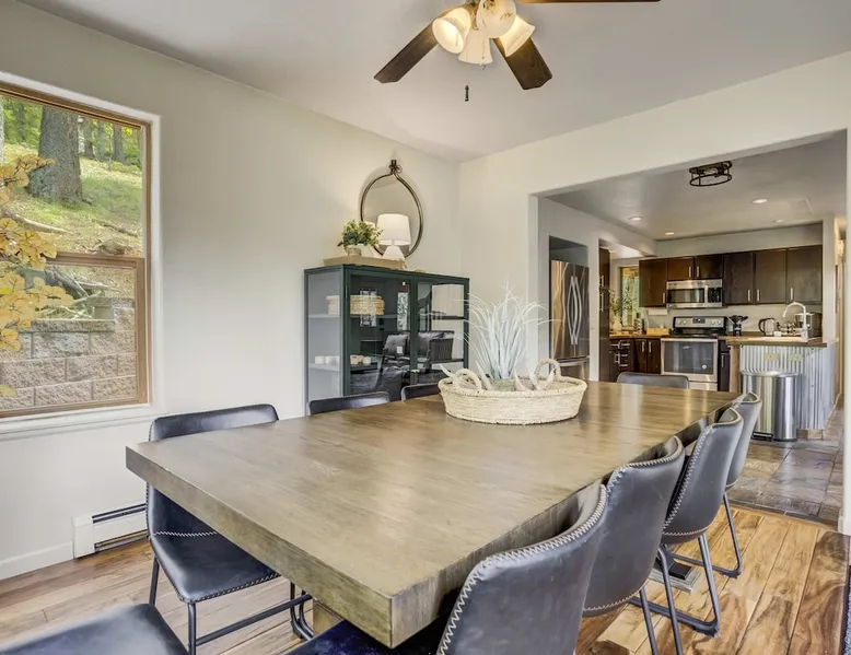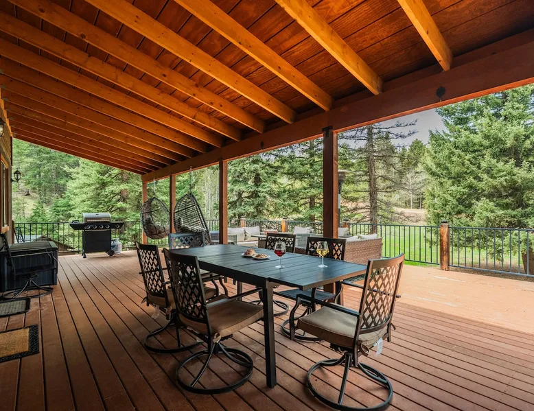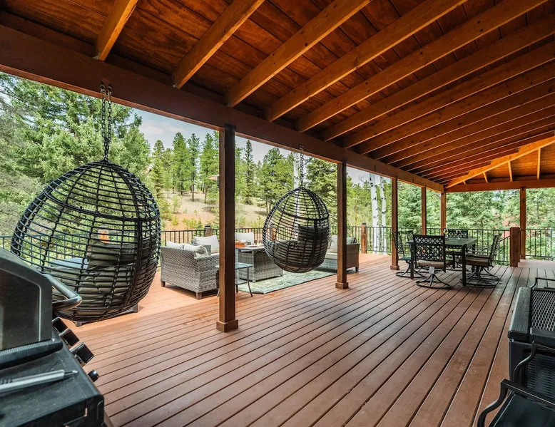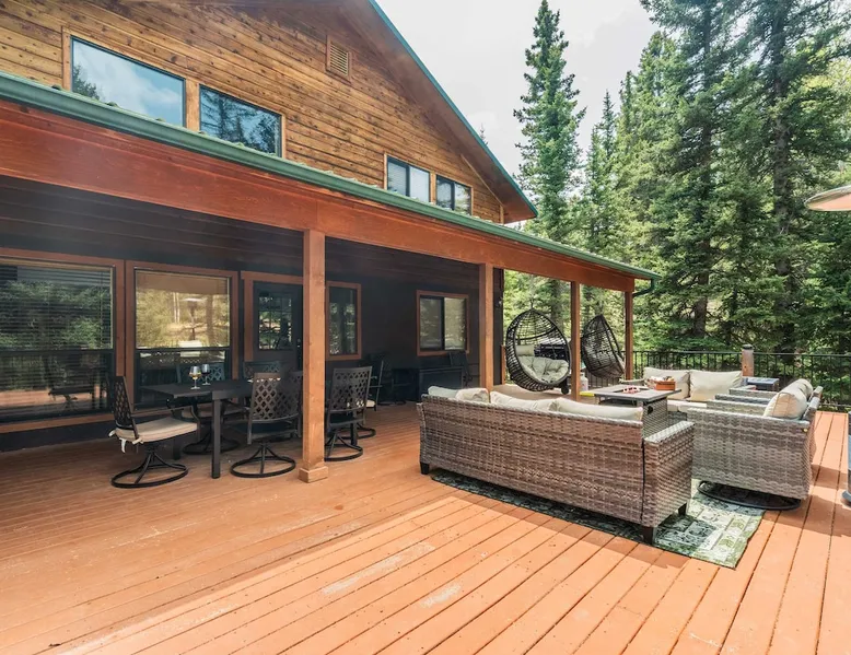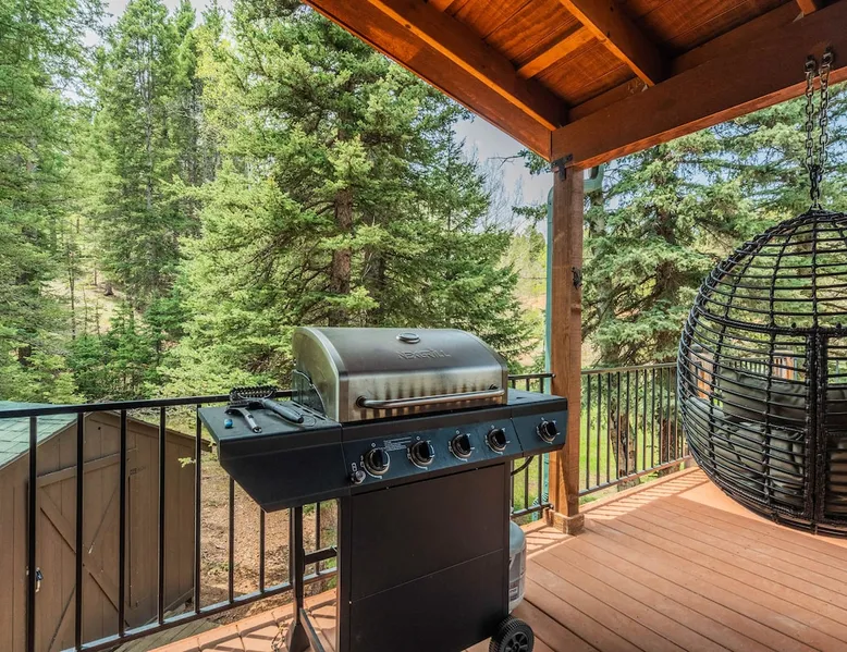 Welcome to Aspen Haven! A stunning mountain retreat designed for relaxation and adventure. 🛁 Hot tub, BBQ grill, Blackstone & 360° mountain views 🚶 Steps from Manchester Creek & Women’s Trailhead 🕹️ Infinity Game Table featuring checkers, chess, & more 🔥 Cozy indoor fireplace for relaxing nights 🚀 Fast WiFi & Smart TVs for entertainment 🍽️ Fully-stocked kitchen with all essentials 🏔️ Near Pikes Peak, Cripple Creek & Garden of the Gods Book your stay today! The space Escape to Aspen Haven, where luxury and practicality unite. The spacious three-level design is perfect for family getaways, multi-couple retreats, or holiday gatherings. Our meticulous attention to detail ensures your utmost comfort. With a beautifully decorated interior and thoughtful amenities, we have everything you need for a truly enjoyable stay. Just minutes away from numerous activities, Aspen Haven offers an authentic Rocky Mountain vacation experience. 🛋️ Living Room Step into the heart of our home, where an open-plan living room welcomes you with warmth and charm. Sink into the sofa, bask in soft lighting, and gather around the wood-burning fireplace. It's more than just a room; it's a space designed for shared moments and cozy relaxation. Whether you're enjoying the smart TV or simply unwinding, our living room offers a comfortable retreat for making lasting memories with loved ones. 🍽️ Dining Room Gather family and friends around the dining table which seats up to 10. Large windows allow natural light to stream through the dining room, the perfect setting for food, fun, and fellowship. 👩🍳 Kitchen Enjoy a well-stocked kitchen including an array of spices, a coffee station, an electric kettle, and a blender. Prepare snacks or a family meal in this great space that opens to the living and dining rooms. For extra food space, there is a second fridge in the basement. 🛏️ Bedroom Setup King Bed - Upstairs Queen Bed - Main Floor Queen Bed - Main Floor Sofa Bed - Upstairs Living Room Sofa Bed - Basement Living Room 📚 Loft Grab a book or take a nap, this is the place! Light and bright with an intimate sitting area, the Loft provides a bit of quiet space. The small deck outside provides another peaceful retreat. 🎥 Basement Plan a movie night and watch on the 75” Smart TV. Great seating for a group with a sectional sleeper couch and recliner. Fun for the entire family with the Infinity Game table with hundreds of games to play. Additional features include a washer and dryer, full bath, and refrigerator. 🛁 Bathrooms There are three bathrooms, one on each level. We have you covered with all the essentials: shampoo, conditioner, body wash, and soft towels. Each bathroom has a hair dryer for your convenience. 👶 Kid-Friendly Amenities If you have little ones, we get it! Don’t worry about packing the extra things - we have a pack-n-play and a highchair to make it easier for you. 🌿 Outside Summer is best spent outside—and this deck delivers. Relax in the egg chairs, gather around the propane fire pit, or dine beneath the covered pergola. Fire up the gas grill or Blackstone for a cookout, then slip into the private 7-person hot tub under twinkling string lights. With signature Aspen Haven cornhole boards, a backyard target toss game, and peaceful views all around, the outdoor space is a true highlight. 🔒 Security To keep you safe, there's a camera at the front door. It's there for your peace of mind. Guest Reviews Highlights 🌟 "The place was perfect and beautiful for our family birthday celebration! We had an amazing time!" - Vicki 🌟 "The cabin is beautiful. Our whole family loved the deck and we saw wildlife every day! The kids loved it and were excited to see baby deer running around outside. Beautiful drive to Pikes Peak. Also about an hour drive down to the royal gorge. Would definitely stay again!" - Sarah 🌟 "Exceeded our expectations!! In such a beautiful and quiet location. Such a quick responding host and clean unit. Lots of room and value." - Alyssa 🌟 "Lovely home! Perfect for our family of 9. Had everything we needed." - Yarathzel 🌟 "The house is very nice and the accommodations were very thoughtful. We only needed to buy our food! The forest surroundings are beautiful and the deck was perfect for morning coffee and dinner. The bed was very comfortable and she even had a diffuser for the hair blow dryer! Water pressure was great in the shower and also tastes good out of the faucet. We will definitely go back!" - Andra Guest access 🔑 Throughout your stay, you will enjoy unrestricted access to the entire premises, encompassing all the amenities and facilities it boasts. This encompasses bedrooms, communal living areas, the kitchen, the backyard, and every feature that defines this residence. Feel free to utilize all available resources to enhance your comfort and ensure a delightful experience. If you have any inquiries about the property or specific requests during your stay, please don't hesitate to inform us. Our aim is to guarantee that your time here is nothing short of wonderful. Other things to note 📜 Rental Agreement: For a seamless booking experience, a Rental Agreement is required for all reservations. Once your reservation is confirmed, we’ll provide details for completing the agreement. 🔑 Check-In Process: For a seamless check-in experience, your unique code along with your check-in instructions will be updated into your personalized guidebook on the morning of your arrival. You’ll use this code for entry. ☕ Starter Supply: We’ve prepared a starter supply that includes paper towels, coffee K-cups, toilet paper, shampoo, body wash, and plush, white towels! We hope these amenities add an extra touch of comfort to your stay. ⏰ Unauthorized Late Checkout Fee: $20 Per Half Hour Late 💵 Additional Fees: Optional services, including early check-in, late check-out, and additional guests, can be arranged upon requ