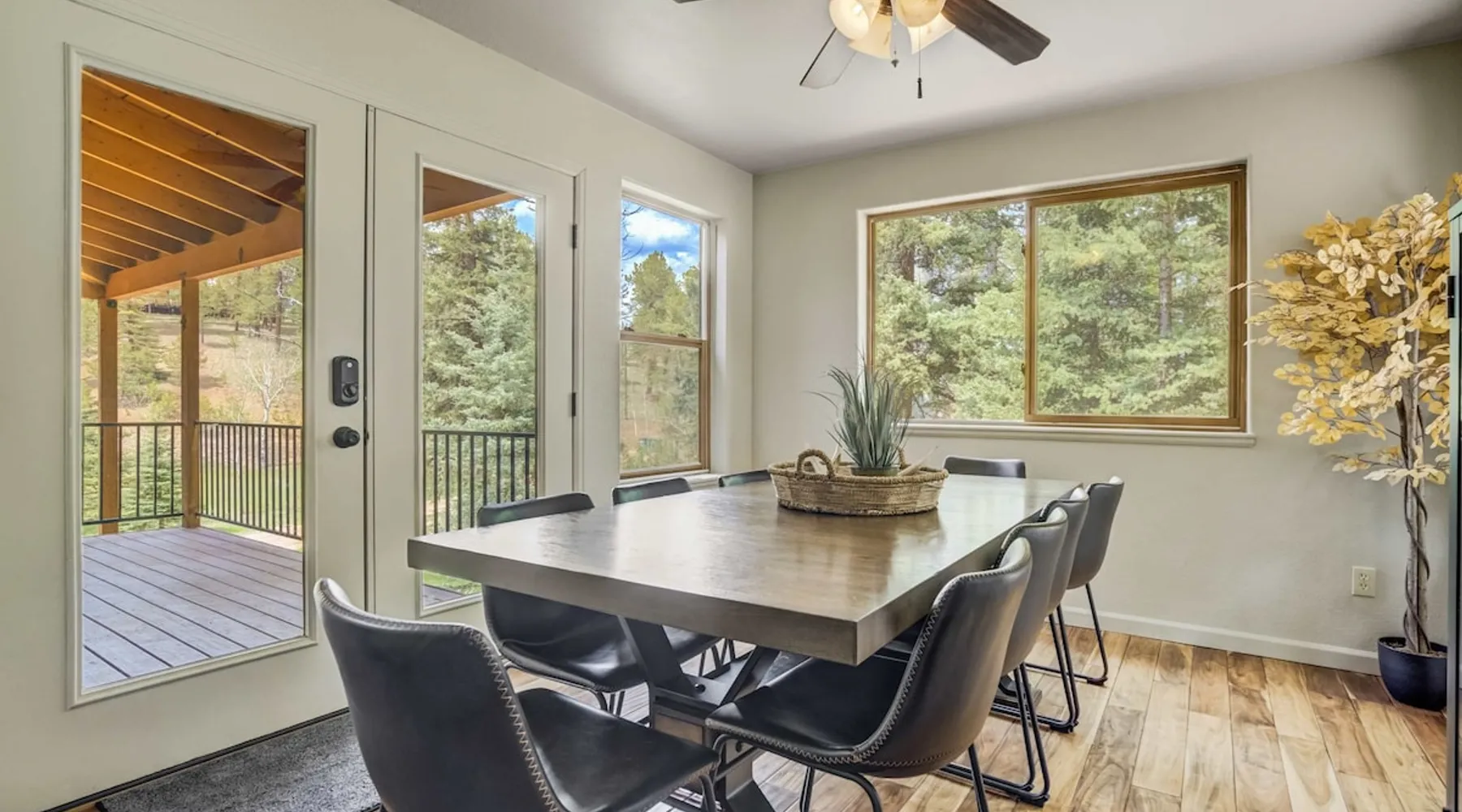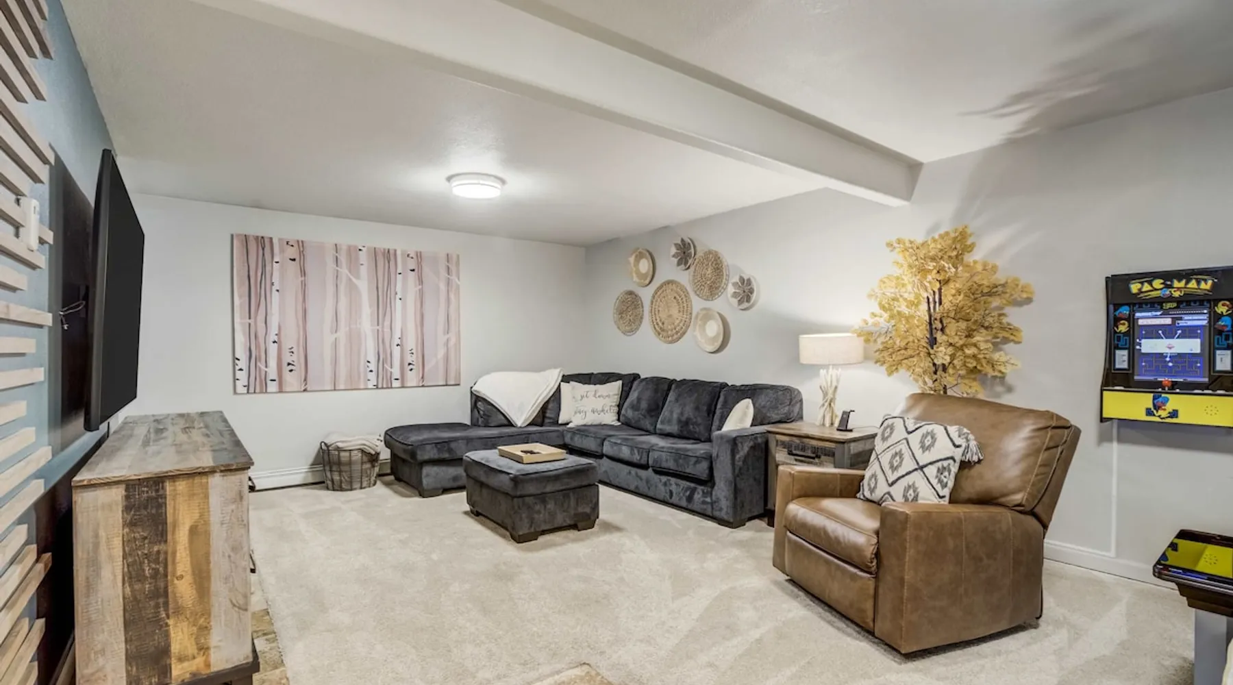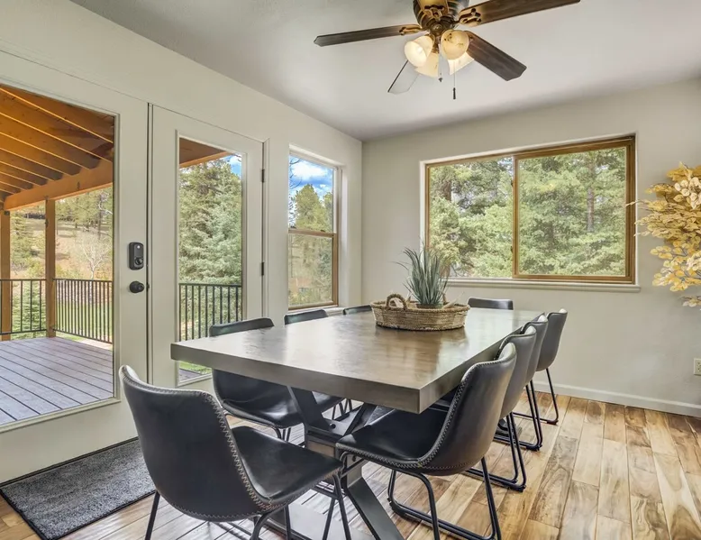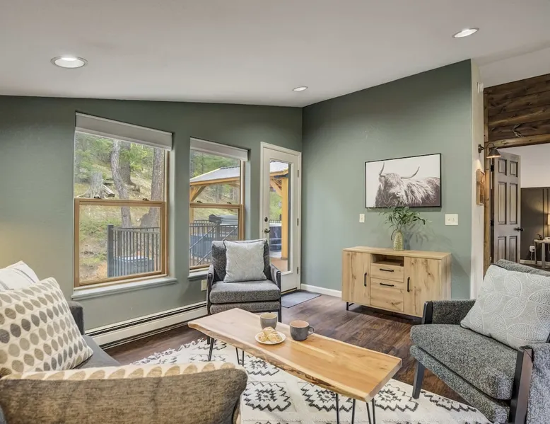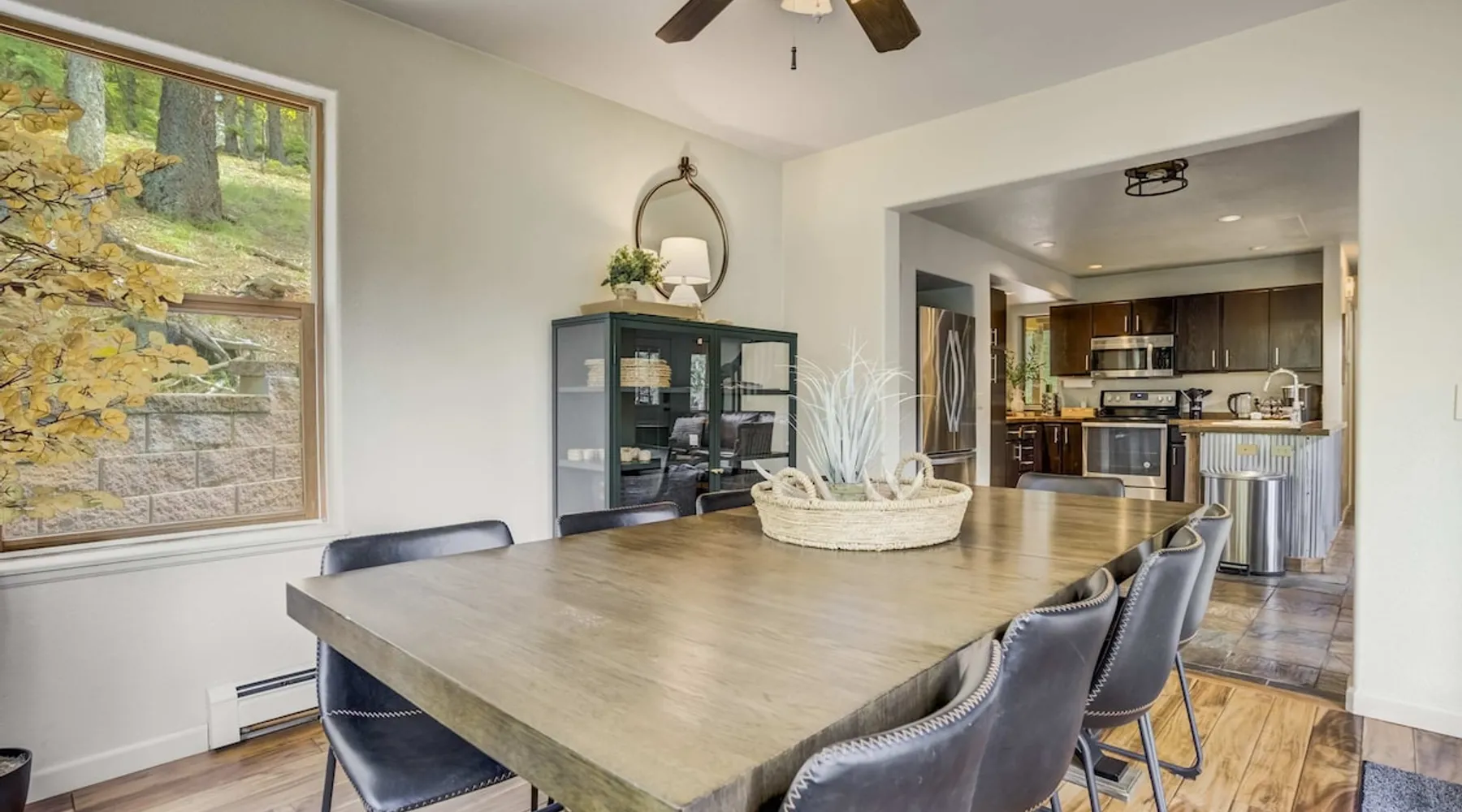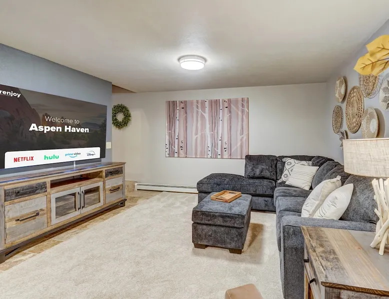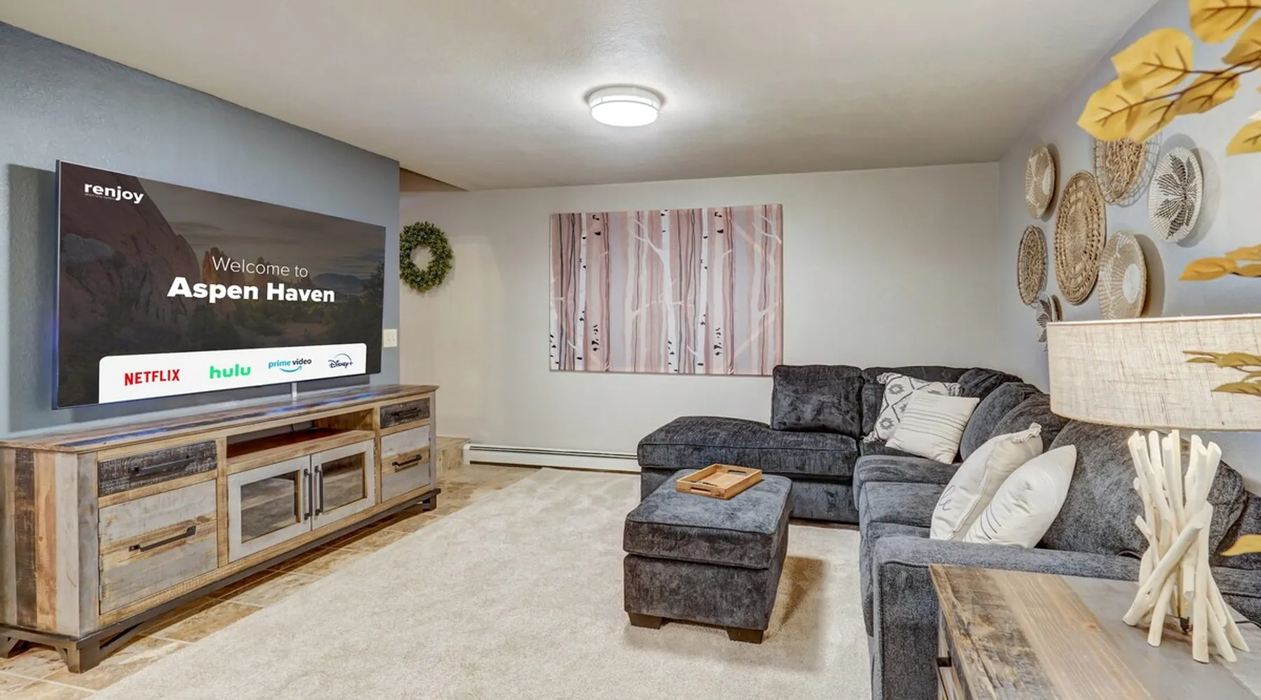 Welcome to Aspen Haven! A stunning mountain retreat designed for relaxation and adventure. 🛁 Hot tub, BBQ grill, Blackstone & 360° mountain views 🚶 Steps from Manchester Creek & Women’s Trailhead 🕹️ Infinity Game Table featuring checkers, chess, & more 🔥 Cozy indoor fireplace for relaxing nights 🚀 Fast WiFi & Smart TVs for entertainment 🍽️ Fully-stocked kitchen with all essentials 🏔️ Near Pikes Peak, Cripple Creek & Garden of the Gods Book your stay today! The space Escape to Aspen Haven, where luxury and practicality unite. The spacious three-level design is perfect for family getaways, multi-couple retreats, or holiday gatherings. Our meticulous attention to detail ensures your utmost comfort. With a beautifully decorated interior and thoughtful amenities, we have everything you need for a truly enjoyable stay. Just minutes away from numerous activities, Aspen Haven offers an authentic Rocky Mountain vacation experience. 🛋️ Living Room Step into the heart of our home, where an open-plan living room welcomes you with warmth and charm. Sink into the sofa, bask in soft lighting, and gather around the wood-burning fireplace. It's more than just a room; it's a space designed for shared moments and cozy relaxation. Whether you're enjoying the smart TV or simply unwinding, our living room offers a comfortable retreat for making lasting memories with loved ones. 🍽️ Dining Room Gather family and friends around the dining table which seats up to 10. Large windows allow natural light to stream through the dining room, the perfect setting for food, fun, and fellowship. 👩🍳 Kitchen Enjoy a well-stocked kitchen including an array of spices, a coffee station, an electric kettle, and a blender. Prepare snacks or a family meal in this great space that opens to the living and dining rooms. For extra food space, there is a second fridge in the basement. 🛏️ Bedroom Setup King Bed - Upstairs Queen Bed - Main Floor Queen Bed - Main Floor Sofa Bed - Upstairs Living Room Sofa Bed - Basement Living Room 📚 Loft Grab a book or take a nap, this is the place! Light and bright with an intimate sitting area, the Loft provides a bit of quiet space. The small deck outside provides another peaceful retreat. 🎥 Basement Plan a movie night and watch on the 75” Smart TV. Great seating for a group with a sectional sleeper couch and recliner. Fun for the entire family with the Infinity Game table with hundreds of games to play. Additional features include a washer and dryer, full bath, and refrigerator. 🛁 Bathrooms There are three bathrooms, one on each level. We have you covered with all the essentials: shampoo, conditioner, body wash, and soft towels. Each bathroom has a hair dryer for your convenience. 👶 Kid-Friendly Amenities If you have little ones, we get it! Don’t worry about packing the extra things - we have a pack-n-play and a highchair to make it easier for you. 🌿 Outside Summer is best spent outside—and this deck delivers. Relax in the egg chairs, gather around the propane fire pit, or dine beneath the covered pergola. Fire up the gas grill or Blackstone for a cookout, then slip into the private 7-person hot tub under twinkling string lights. With signature Aspen Haven cornhole boards, a backyard target toss game, and peaceful views all around, the outdoor space is a true highlight. 🔒 Security To keep you safe, there's a camera at the front door. It's there for your peace of mind. Guest Reviews Highlights 🌟 "The place was perfect and beautiful for our family birthday celebration! We had an amazing time!" - Vicki 🌟 "The cabin is beautiful. Our whole family loved the deck and we saw wildlife every day! The kids loved it and were excited to see baby deer running around outside. Beautiful drive to Pikes Peak. Also about an hour drive down to the royal gorge. Would definitely stay again!" - Sarah 🌟 "Exceeded our expectations!! In such a beautiful and quiet location. Such a quick responding host and clean unit. Lots of room and value." - Alyssa 🌟 "Lovely home! Perfect for our family of 9. Had everything we needed." - Yarathzel 🌟 "The house is very nice and the accommodations were very thoughtful. We only needed to buy our food! The forest surroundings are beautiful and the deck was perfect for morning coffee and dinner. The bed was very comfortable and she even had a diffuser for the hair blow dryer! Water pressure was great in the shower and also tastes good out of the faucet. We will definitely go back!" - Andra Guest access 🔑 Throughout your stay, you will enjoy unrestricted access to the entire premises, encompassing all the amenities and facilities it boasts. This encompasses bedrooms, communal living areas, the kitchen, the backyard, and every feature that defines this residence. Feel free to utilize all available resources to enhance your comfort and ensure a delightful experience. If you have any inquiries about the property or specific requests during your stay, please don't hesitate to inform us. Our aim is to guarantee that your time here is nothing short of wonderful. Other things to note 📜 Rental Agreement: For a seamless booking experience, a Rental Agreement is required for all reservations. Once your reservation is confirmed, we’ll provide details for completing the agreement. 🔑 Check-In Process: For a seamless check-in experience, your unique code along with your check-in instructions will be updated into your personalized guidebook on the morning of your arrival. You’ll use this code for entry. ☕ Starter Supply: We’ve prepared a starter supply that includes paper towels, coffee K-cups, toilet paper, shampoo, body wash, and plush, white towels! We hope these amenities add an extra touch of comfort to your stay. ⏰ Unauthorized Late Checkout Fee: $20 Per Half Hour Late 💵 Additional Fees: Optional services, including early check-in, late check-out, and additional guests, can be arranged upon requ