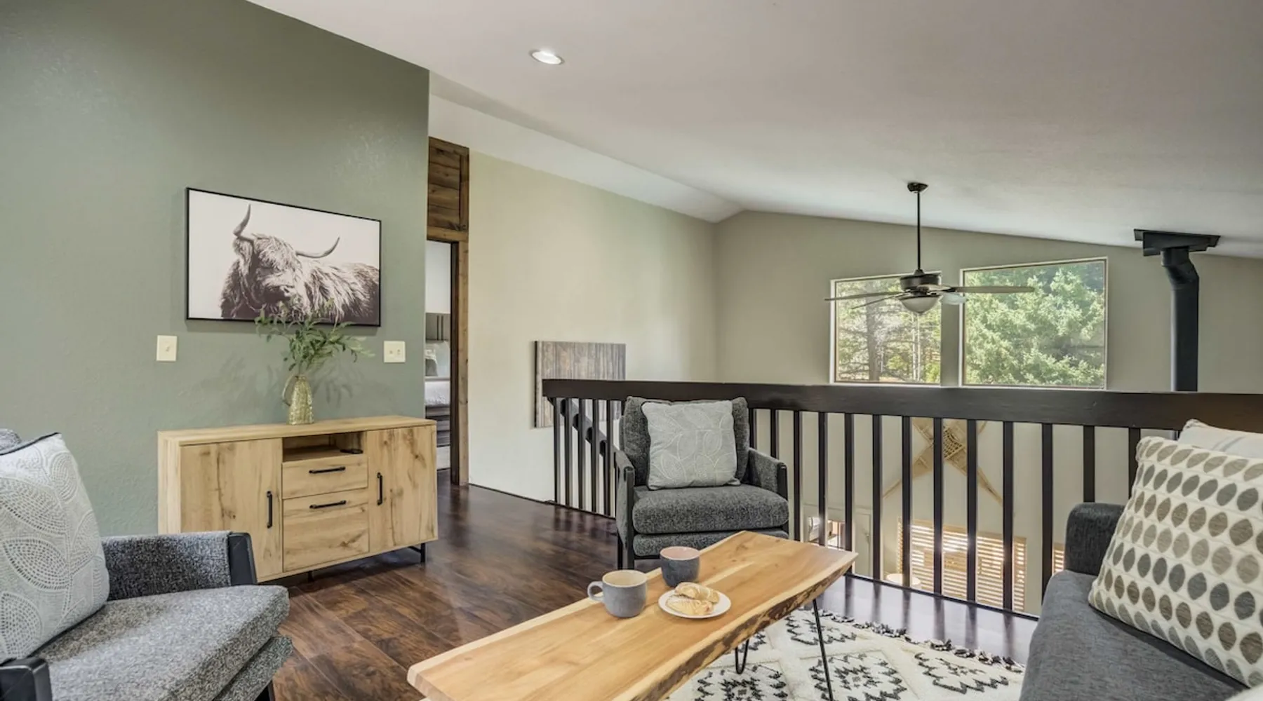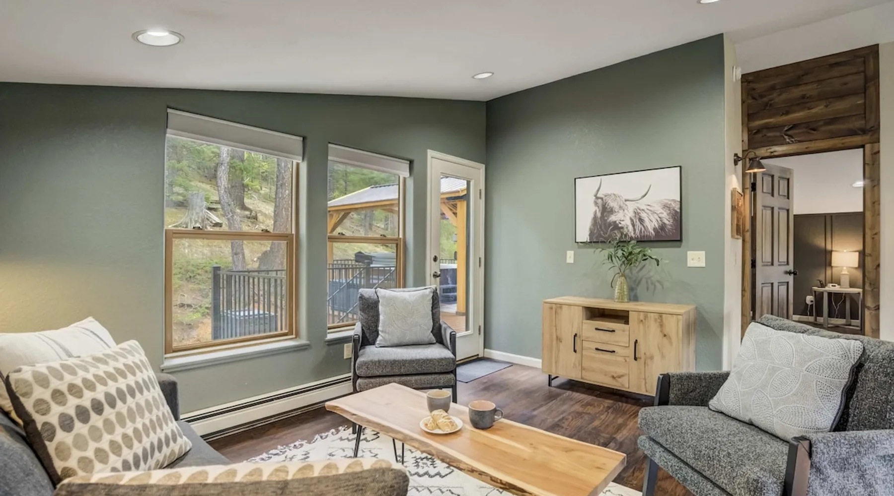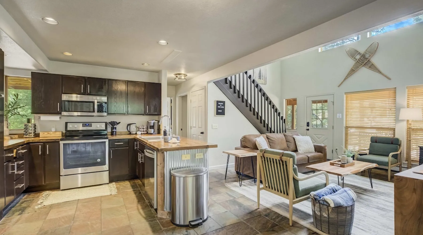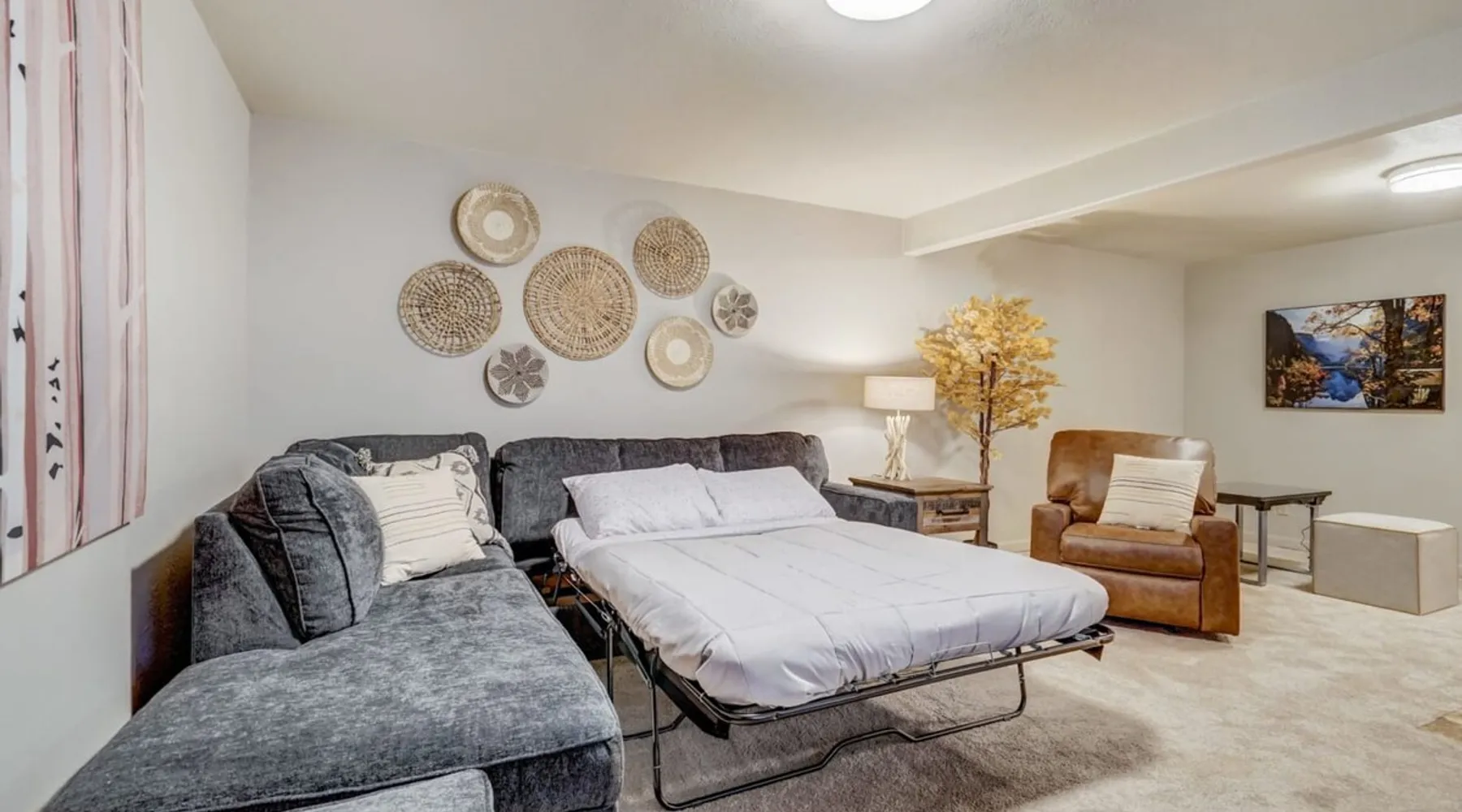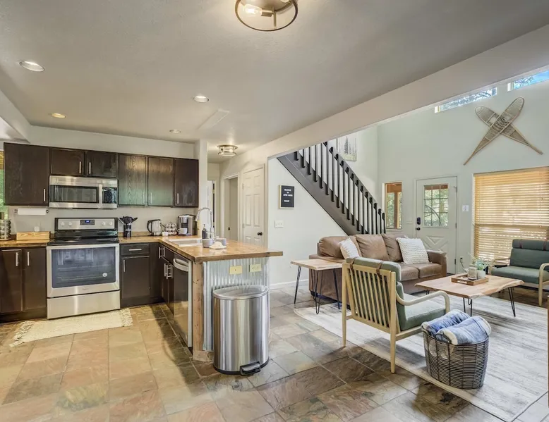 Welcome to Aspen Haven! A stunning mountain retreat designed for relaxation and adventure. 🛁 Hot tub, BBQ grill, Blackstone & 360° mountain views 🚶 Steps from Manchester Creek & Women’s Trailhead 🕹️ Infinity Game Table featuring checkers, chess, & more 🔥 Cozy indoor fireplace for relaxing nights 🚀 Fast WiFi & Smart TVs for entertainment 🍽️ Fully-stocked kitchen with all essentials 🏔️ Near Pikes Peak, Cripple Creek & Garden of the Gods Book your stay today! The space Escape to Aspen Haven, where luxury and practicality unite. The spacious three-level design is perfect for family getaways, multi-couple retreats, or holiday gatherings. Our meticulous attention to detail ensures your utmost comfort. With a beautifully decorated interior and thoughtful amenities, we have everything you need for a truly enjoyable stay. Just minutes away from numerous activities, Aspen Haven offers an authentic Rocky Mountain vacation experience. 🛋️ Living Room Step into the heart of our home, where an open-plan living room welcomes you with warmth and charm. Sink into the sofa, bask in soft lighting, and gather around the wood-burning fireplace. It's more than just a room; it's a space designed for shared moments and cozy relaxation. Whether you're enjoying the smart TV or simply unwinding, our living room offers a comfortable retreat for making lasting memories with loved ones. 🍽️ Dining Room Gather family and friends around the dining table which seats up to 10. Large windows allow natural light to stream through the dining room, the perfect setting for food, fun, and fellowship. 👩🍳 Kitchen Enjoy a well-stocked kitchen including an array of spices, a coffee station, an electric kettle, and a blender. Prepare snacks or a family meal in this great space that opens to the living and dining rooms. For extra food space, there is a second fridge in the basement. 🛏️ Bedroom Setup King Bed - Upstairs Queen Bed - Main Floor Queen Bed - Main Floor Sofa Bed - Upstairs Living Room Sofa Bed - Basement Living Room 📚 Loft Grab a book or take a nap, this is the place! Light and bright with an intimate sitting area, the Loft provides a bit of quiet space. The small deck outside provides another peaceful retreat. 🎥 Basement Plan a movie night and watch on the 75” Smart TV. Great seating for a group with a sectional sleeper couch and recliner. Fun for the entire family with the Infinity Game table with hundreds of games to play. Additional features include a washer and dryer, full bath, and refrigerator. 🛁 Bathrooms There are three bathrooms, one on each level. We have you covered with all the essentials: shampoo, conditioner, body wash, and soft towels. Each bathroom has a hair dryer for your convenience. 👶 Kid-Friendly Amenities If you have little ones, we get it! Don’t worry about packing the extra things - we have a pack-n-play and a highchair to make it easier for you. 🌿 Outside Summer is best spent outside—and this deck delivers. Relax in the egg chairs, gather around the propane fire pit, or dine beneath the covered pergola. Fire up the gas grill or Blackstone for a cookout, then slip into the private 7-person hot tub under twinkling string lights. With signature Aspen Haven cornhole boards, a backyard target toss game, and peaceful views all around, the outdoor space is a true highlight. 🔒 Security To keep you safe, there's a camera at the front door. It's there for your peace of mind. Guest Reviews Highlights 🌟 "The place was perfect and beautiful for our family birthday celebration! We had an amazing time!" - Vicki 🌟 "The cabin is beautiful. Our whole family loved the deck and we saw wildlife every day! The kids loved it and were excited to see baby deer running around outside. Beautiful drive to Pikes Peak. Also about an hour drive down to the royal gorge. Would definitely stay again!" - Sarah 🌟 "Exceeded our expectations!! In such a beautiful and quiet location. Such a quick responding host and clean unit. Lots of room and value." - Alyssa 🌟 "Lovely home! Perfect for our family of 9. Had everything we needed." - Yarathzel 🌟 "The house is very nice and the accommodations were very thoughtful. We only needed to buy our food! The forest surroundings are beautiful and the deck was perfect for morning coffee and dinner. The bed was very comfortable and she even had a diffuser for the hair blow dryer! Water pressure was great in the shower and also tastes good out of the faucet. We will definitely go back!" - Andra Guest access 🔑 Throughout your stay, you will enjoy unrestricted access to the entire premises, encompassing all the amenities and facilities it boasts. This encompasses bedrooms, communal living areas, the kitchen, the backyard, and every feature that defines this residence. Feel free to utilize all available resources to enhance your comfort and ensure a delightful experience. If you have any inquiries about the property or specific requests during your stay, please don't hesitate to inform us. Our aim is to guarantee that your time here is nothing short of wonderful. Other things to note 📜 Rental Agreement: For a seamless booking experience, a Rental Agreement is required for all reservations. Once your reservation is confirmed, we’ll provide details for completing the agreement. 🔑 Check-In Process: For a seamless check-in experience, your unique code along with your check-in instructions will be updated into your personalized guidebook on the morning of your arrival. You’ll use this code for entry. ☕ Starter Supply: We’ve prepared a starter supply that includes paper towels, coffee K-cups, toilet paper, shampoo, body wash, and plush, white towels! We hope these amenities add an extra touch of comfort to your stay. ⏰ Unauthorized Late Checkout Fee: $20 Per Half Hour Late 💵 Additional Fees: Optional services, including early check-in, late check-out, and additional guests, can be arranged upon requ