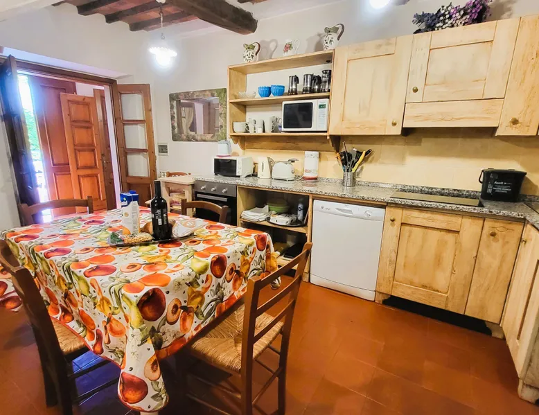 Restored Farmhouse/Barn with private pool and outdoor eating areas set in 3 acres of land, and bordered by a trout stream and with a mountain backdrop. Close to the beautiful mediaeval town of Barga, with its wide away of good restaurants and bars, gelaterias, regular live music, and markets under the stars. Set in the charming Garfagnana valley, by the country road leading to Barga (2.2km), it is exposed to an enchanting view over the terraced vineyards, olive groves and fruit trees, onto the beautiful Apuane marble mountains beyond. The stream La Corsonna borders the garden and one can actually walk into the friendly medieval market town of Barga, 20 minutes cross country, across the fields and over the foot bridge on the stream. This location is ideal for relaxing walks to nearby hamlets and for delightful views of this unspoilt valley. Well suited for day visits to: Lucca, Pisa, Florence, the coast. WI FI connection free. This 3 bedroom 2 bathroom property sleeping 6 plus 1 is a restored farmhouse and retains many traditional features, including traditional flooring, chestnut windows, beamed ceilings. The property is situated in beautiful terraced gardens with gorgeous views. There is a wonderful terrace for dining together alfresco, and other terraces/relaxing areas for reading a book away from the rest of your group. There is so much outdoor space... Set in the charming Garfagnana valley, by the country road leading to Barga (2.2km), it is exposed to an enchanting view over the terraced vineyards, olive groves and fruit trees, onto the beautiful Apuane marble mountains beyond. The stream La Corsonna borders the garden and one can actually walk into the friendly medieval market town of Barga, 20 minutes cross country, across the fields and over the foot bridge on the stream. Here you will find bars, good restaurants, gelaterias, shops, and often live music and markets under the stars.... A shorter walk along the roadway there is an osteria/bar. This location is ideal for relaxing walks to nearby hamlets and for delightful views of this unspoilt valley. Well suited for day visits to: Lucca, Pisa, Florence, the coast. WI FI connection free. Further information on the property itself: Split over 2 floors : Ground floor: Fully equipped kitchen/diner, including dishwasher, oven, induction hob, fridge freezer, washing machine with direct access to south facing outdoor eating area overlooking the beautiful marble Apuan Alps. Sitting room WiFi TV/DVD. 1 double bedroom, 1 bathroom with shower. Further terrace on east side of this floor, ideal for breakfasting in the morning sun. First floor : 1 double bedroom 1 twin bedroom with extra bed, 1 bathroom with shower, mezzanine with access to small terrace This is a wonderful opportunity to stay close to stunning Barga in a spacious property with mountain views at a very reasonable price.