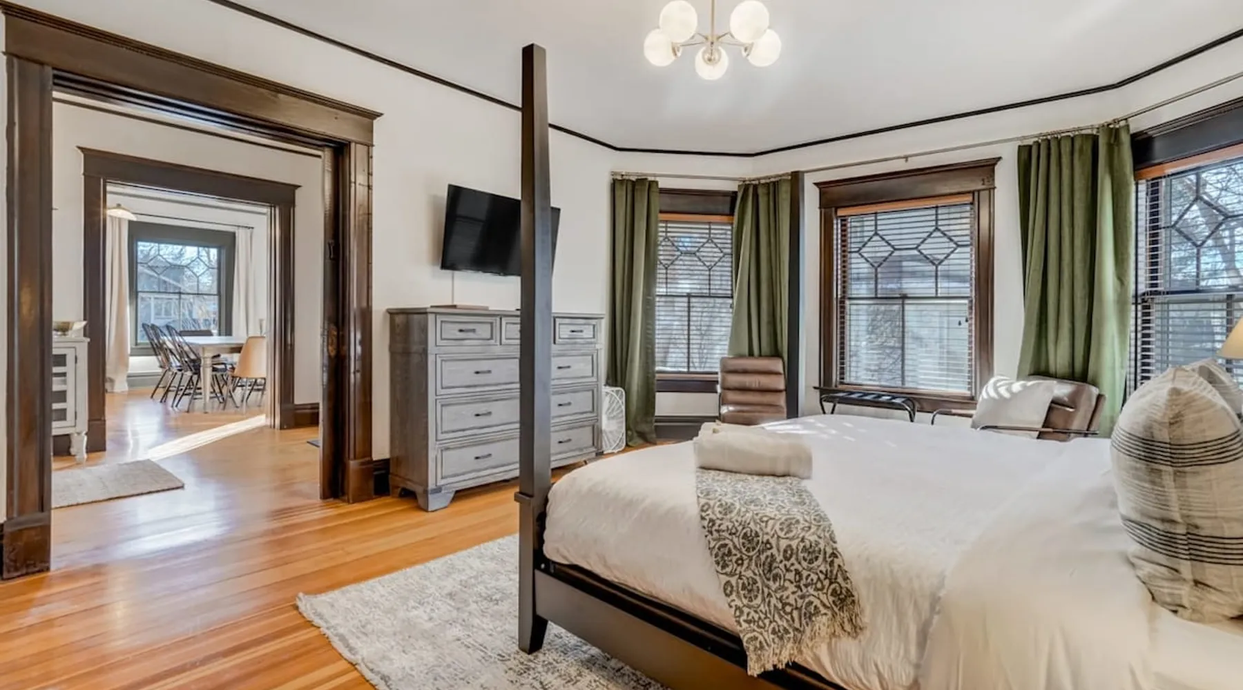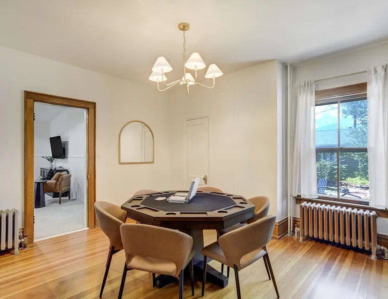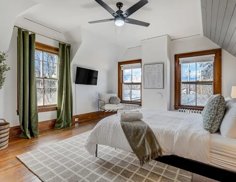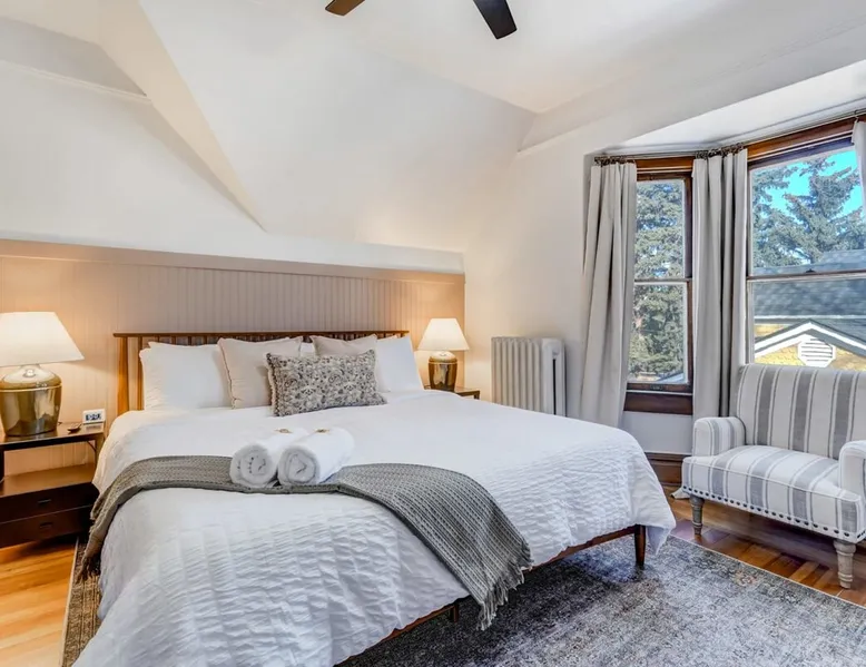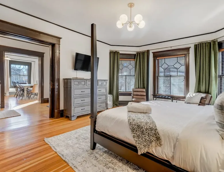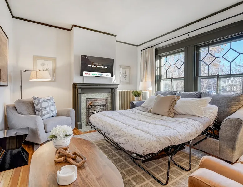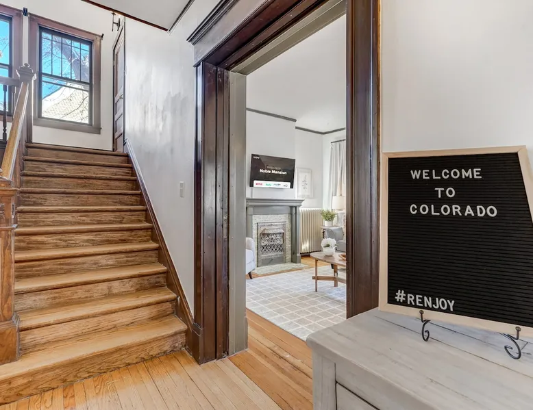 Welcome to Noble Mansion, your elegant retreat in the historic Old North End! Ideal for large families and groups, this property combines Victorian charm with modern comforts. 🏡 Sleeps up to 20 guests in two units of the main house 🔥 Relax in the shared hot tub, fire pit, and BBQ grill 🏰 Mins to Garden of the Gods, downtown, & Colorado College 🌐 Fast WiFi, Smart TVs, and a fully-stocked kitchen 🐾 Pet-friendly (dogs welcome with a fee!) Ready to experience timeless elegance? Book now! The space Welcome to Noble Mansion, a beautifully restored Victorian estate offering spacious accommodations across three unique units—Noble Manor (Unit #1), Noble Summit (Unit #2), and Noble Crest (Unit #3). Booking this listing gives you exclusive access to all three units, ensuring plenty of room for groups while still enjoying the property’s shared amenities. Living Room 🛋️ Envision the living room as the beating heart of your home – a space designed for relaxation, shared moments, and laid-back experiences. It boasts sumptuous sofas, a TV for cinematic nights, an indoor fireplace, and a versatile sofa bed for those additional guests. Kitchen 🍳 Our fully stocked kitchens combine classic charm with modern convenience. Each of the three units includes its own full kitchen, complete with pots, pans, bakeware, dinnerware, and even kids’ dinnerware, ensuring everyone has everything they need for a seamless culinary experience. Dining Room 🍽️ Immerse yourself in shared moments at the dining table, where classic elegance enhances your dining experience, fostering warmth and connection. Bedrooms 🛏️ Containing 8 spacious and beautifully designed bedrooms, each with plenty of storage options so whether you pack your whole closet or travel light, you can find comfort in knowing you have your ideal setup! Bedroom 1: King Bed - Main Level Bedroom 2: Queen Bed - Second Level Bedroom 3: Queen Bed - Second Level Bedroom 4: Two Queen Beds - Second Level Bedroom 5: King Bed - Second Level Bedroom 6: Queen-over-Queen Trundle - Second Level Bedroom 7: Queen Bed - Second Level Bedroom 8: King Bed Unit #3 Living Room: Sofa Bed Backyard/Courtyard 🔥 The outdoor area offers a private hot tub, BBQ grill, and propane fire pit, creating the perfect setting for relaxation and lasting memories. Bathrooms 🛁 Indulge in four well-designed bathrooms, thoughtfully equipped with provided toiletries – shampoo, body wash, luxurious towels, feminine essentials, facial wipes, and a hair dryer for added convenience. For the Little Ones 👶 Understanding the challenges of travel with young children, we provide a pack-n-play and high chair for your convenience. Security 🔒 For your safety and peace of mind, a security camera is strategically installed at the front door, ensuring a secure retreat in this meticulously crafted Victorian gem. Air Conditioning ❄️ Each bedroom upstairs is equipped with one window unit, while the master bedroom on the main floor has a portable air conditioner. Guest access 🔑 Throughout your stay, you’ll have exclusive access to Unit #1 (Main House), Unit #2 (Upstairs Apartment), and Unit #3 (Apartment), including all bedrooms, living areas, and full kitchens. The outdoor amenities—hot tub, BBQ grill, fire pit, and seating areas—are private to your group, creating the perfect setting for relaxation and connection. Please note that Unit #4 is not part of this rental and is not available to guests. If you have any questions about the property or special requests, feel free to reach out—we’re here to make your stay exceptional. Other things to note 📜 Rental Agreement: For a seamless booking experience, a Rental Agreement is required for all reservations. Once your reservation is confirmed, we’ll provide details for completing the agreement. 🔑 Check-In Process: For a seamless check-in experience, your unique code along with your check-in instructions will be updated into your personalized guidebook on the morning of your arrival. You’ll use this code for entry. ☕ Starter Supply: We’ve prepared a starter supply that includes paper towels, coffee K-cups, toilet paper, shampoo, body wash, and plush white towels! We hope these amenities add an extra touch of comfort to your stay. ⏰ Unauthorized Late Checkout Fee: $20 Per Half Hour Late 💵 Additional Fees: For guests bringing dogs, there is a mandatory pet fee of $100 per dog, collected after booking. A maximum of 2 dogs is allowed per reservation unless otherwise approved. No other animals are permitted. Optional services, including early check-in, late check-out, and additional guests, can be arranged upon request and are subject to availability. These additional fees help cover the cost of reworking the schedule or adding an additional cleaner if needed. Please message us ahead of time for pricing and availability. 🏡 Privacy Notice: You will have exclusive access to Units #1, #2, and #3 on the property. Please note that Unit #4 is also located on the property but is not included in this rental and not available to guests. 🔢 License Number: A-STRP-24-0064