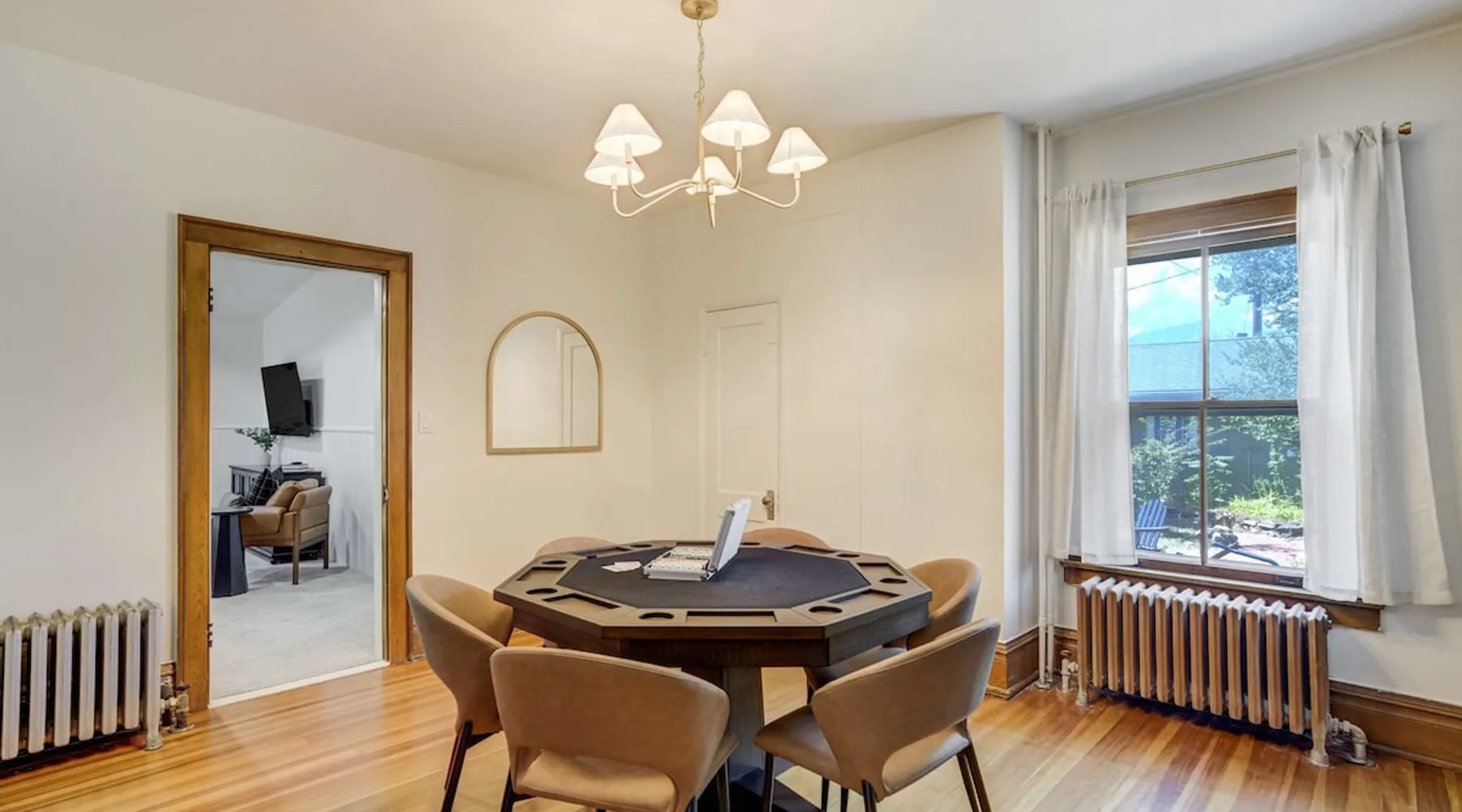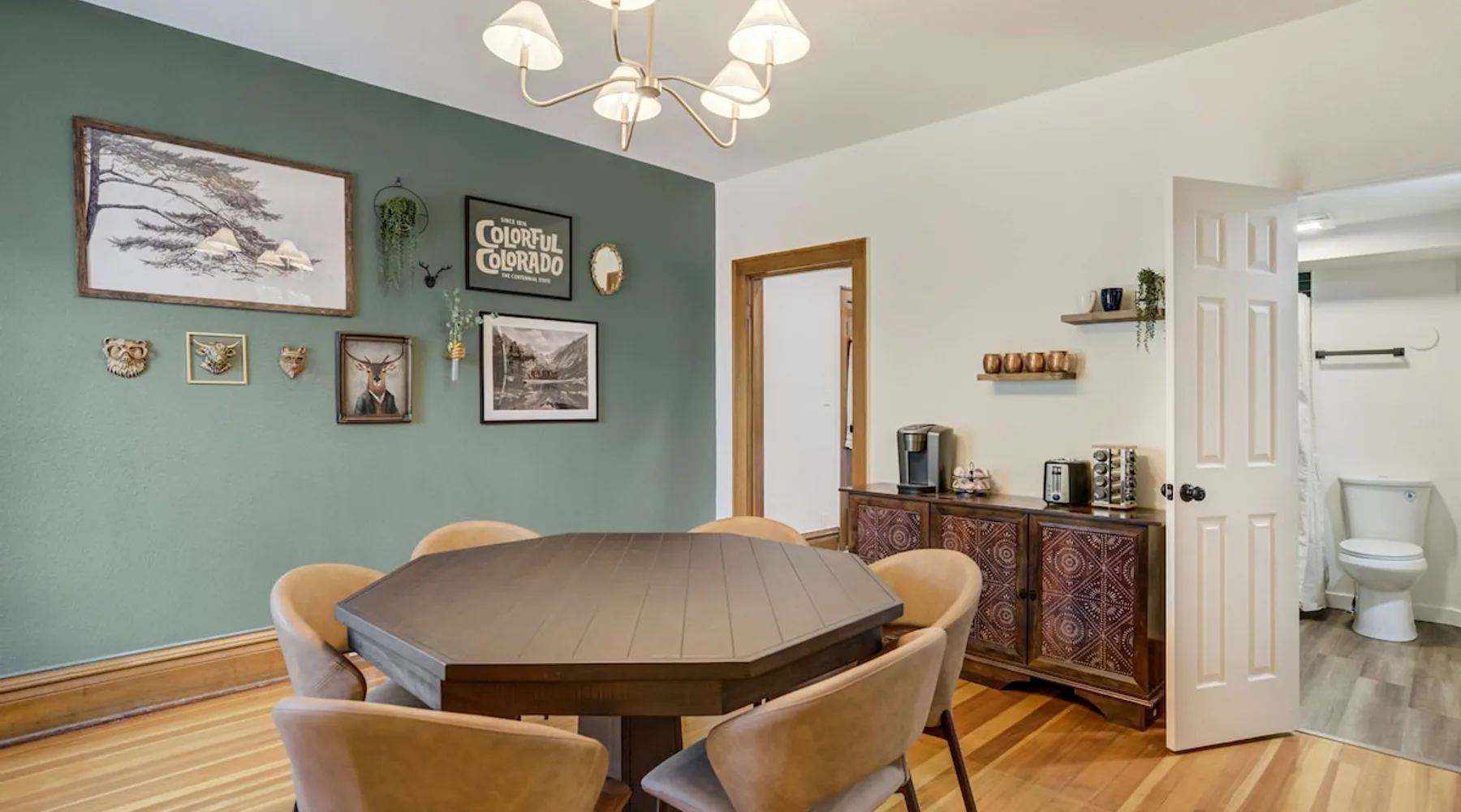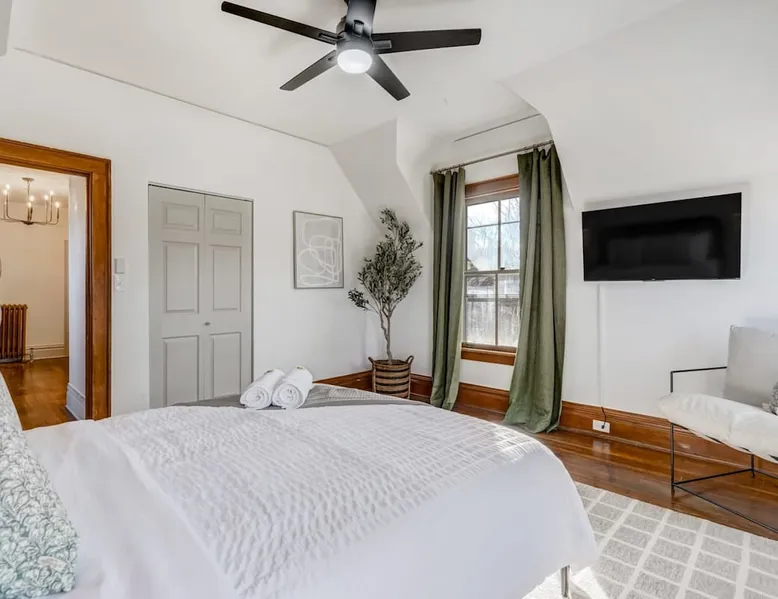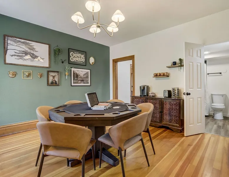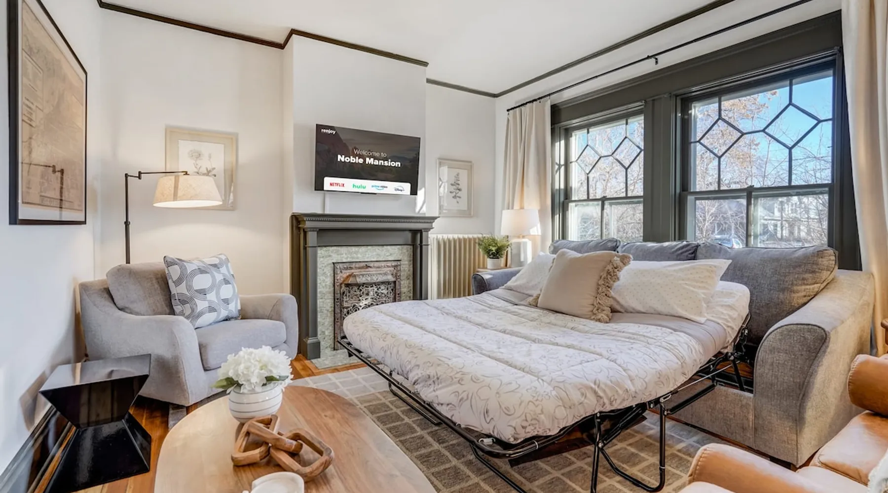 Welcome to Noble Mansion, your elegant retreat in the historic Old North End! Ideal for large families and groups, this property combines Victorian charm with modern comforts. 🏡 Sleeps up to 20 guests in two units of the main house 🔥 Relax in the shared hot tub, fire pit, and BBQ grill 🏰 Mins to Garden of the Gods, downtown, & Colorado College 🌐 Fast WiFi, Smart TVs, and a fully-stocked kitchen 🐾 Pet-friendly (dogs welcome with a fee!) Ready to experience timeless elegance? Book now! The space Welcome to Noble Mansion, a beautifully restored Victorian estate offering spacious accommodations across three unique units—Noble Manor (Unit #1), Noble Summit (Unit #2), and Noble Crest (Unit #3). Booking this listing gives you exclusive access to all three units, ensuring plenty of room for groups while still enjoying the property’s shared amenities. Living Room 🛋️ Envision the living room as the beating heart of your home – a space designed for relaxation, shared moments, and laid-back experiences. It boasts sumptuous sofas, a TV for cinematic nights, an indoor fireplace, and a versatile sofa bed for those additional guests. Kitchen 🍳 Our fully stocked kitchens combine classic charm with modern convenience. Each of the three units includes its own full kitchen, complete with pots, pans, bakeware, dinnerware, and even kids’ dinnerware, ensuring everyone has everything they need for a seamless culinary experience. Dining Room 🍽️ Immerse yourself in shared moments at the dining table, where classic elegance enhances your dining experience, fostering warmth and connection. Bedrooms 🛏️ Containing 8 spacious and beautifully designed bedrooms, each with plenty of storage options so whether you pack your whole closet or travel light, you can find comfort in knowing you have your ideal setup! Bedroom 1: King Bed - Main Level Bedroom 2: Queen Bed - Second Level Bedroom 3: Queen Bed - Second Level Bedroom 4: Two Queen Beds - Second Level Bedroom 5: King Bed - Second Level Bedroom 6: Queen-over-Queen Trundle - Second Level Bedroom 7: Queen Bed - Second Level Bedroom 8: King Bed Unit #3 Living Room: Sofa Bed Backyard/Courtyard 🔥 The outdoor area offers a private hot tub, BBQ grill, and propane fire pit, creating the perfect setting for relaxation and lasting memories. Bathrooms 🛁 Indulge in four well-designed bathrooms, thoughtfully equipped with provided toiletries – shampoo, body wash, luxurious towels, feminine essentials, facial wipes, and a hair dryer for added convenience. For the Little Ones 👶 Understanding the challenges of travel with young children, we provide a pack-n-play and high chair for your convenience. Security 🔒 For your safety and peace of mind, a security camera is strategically installed at the front door, ensuring a secure retreat in this meticulously crafted Victorian gem. Air Conditioning ❄️ Each bedroom upstairs is equipped with one window unit, while the master bedroom on the main floor has a portable air conditioner. Guest access 🔑 Throughout your stay, you’ll have exclusive access to Unit #1 (Main House), Unit #2 (Upstairs Apartment), and Unit #3 (Apartment), including all bedrooms, living areas, and full kitchens. The outdoor amenities—hot tub, BBQ grill, fire pit, and seating areas—are private to your group, creating the perfect setting for relaxation and connection. Please note that Unit #4 is not part of this rental and is not available to guests. If you have any questions about the property or special requests, feel free to reach out—we’re here to make your stay exceptional. Other things to note 📜 Rental Agreement: For a seamless booking experience, a Rental Agreement is required for all reservations. Once your reservation is confirmed, we’ll provide details for completing the agreement. 🔑 Check-In Process: For a seamless check-in experience, your unique code along with your check-in instructions will be updated into your personalized guidebook on the morning of your arrival. You’ll use this code for entry. ☕ Starter Supply: We’ve prepared a starter supply that includes paper towels, coffee K-cups, toilet paper, shampoo, body wash, and plush white towels! We hope these amenities add an extra touch of comfort to your stay. ⏰ Unauthorized Late Checkout Fee: $20 Per Half Hour Late 💵 Additional Fees: For guests bringing dogs, there is a mandatory pet fee of $100 per dog, collected after booking. A maximum of 2 dogs is allowed per reservation unless otherwise approved. No other animals are permitted. Optional services, including early check-in, late check-out, and additional guests, can be arranged upon request and are subject to availability. These additional fees help cover the cost of reworking the schedule or adding an additional cleaner if needed. Please message us ahead of time for pricing and availability. 🏡 Privacy Notice: You will have exclusive access to Units #1, #2, and #3 on the property. Please note that Unit #4 is also located on the property but is not included in this rental and not available to guests. 🔢 License Number: A-STRP-24-0064
