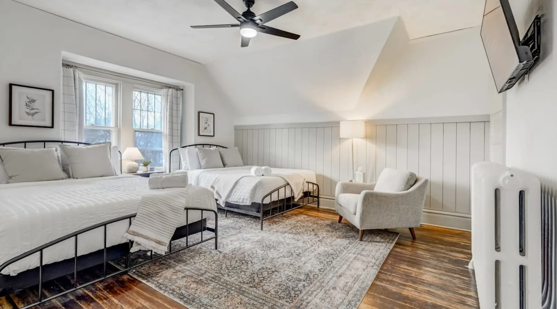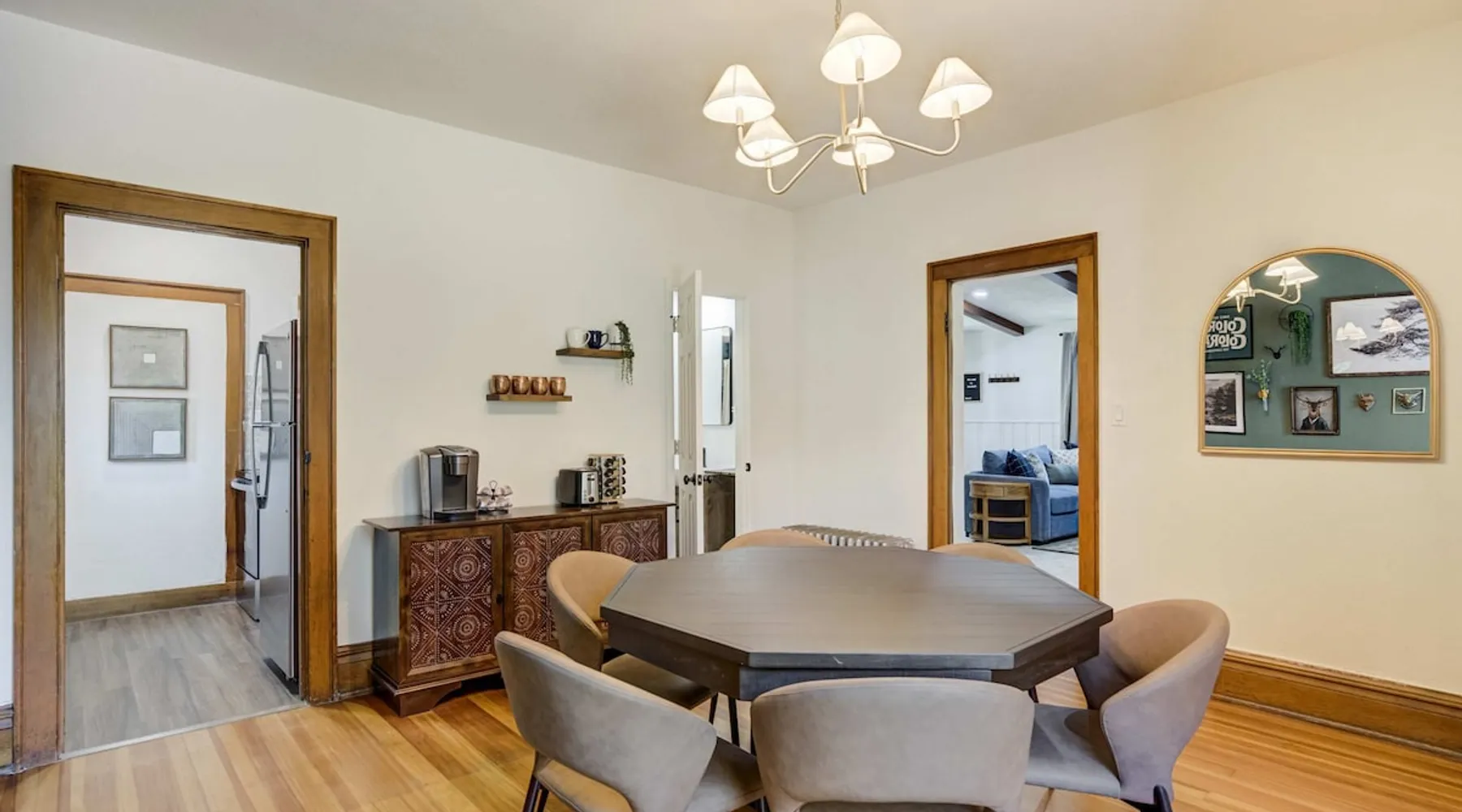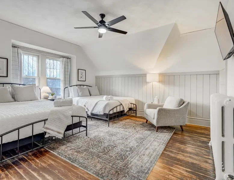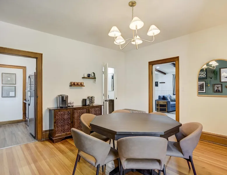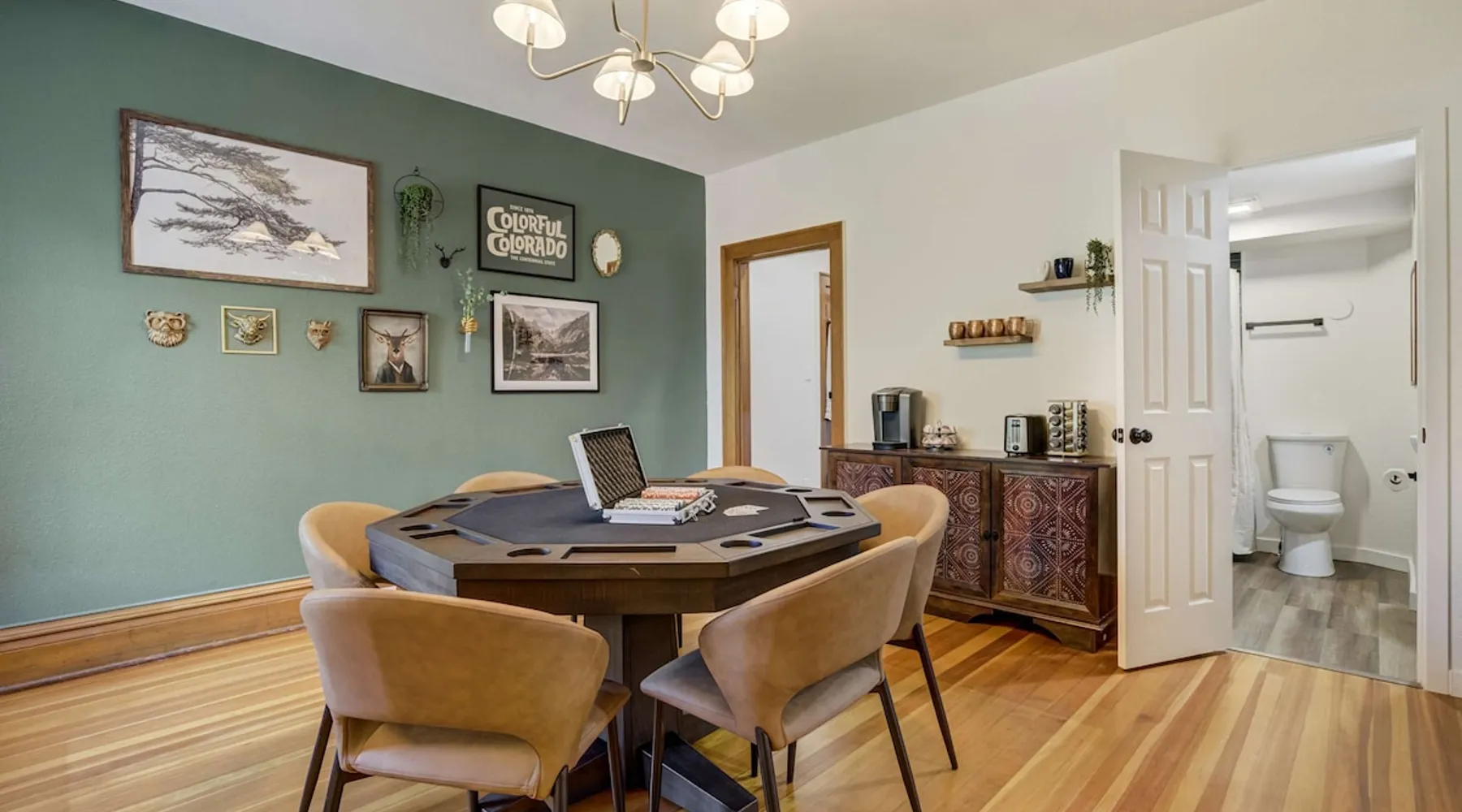 Welcome to Noble Mansion, your elegant retreat in the historic Old North End! Ideal for large families and groups, this property combines Victorian charm with modern comforts. 🏡 Sleeps up to 20 guests in two units of the main house 🔥 Relax in the shared hot tub, fire pit, and BBQ grill 🏰 Mins to Garden of the Gods, downtown, & Colorado College 🌐 Fast WiFi, Smart TVs, and a fully-stocked kitchen 🐾 Pet-friendly (dogs welcome with a fee!) Ready to experience timeless elegance? Book now! The space Welcome to Noble Mansion, a beautifully restored Victorian estate offering spacious accommodations across three unique units—Noble Manor (Unit #1), Noble Summit (Unit #2), and Noble Crest (Unit #3). Booking this listing gives you exclusive access to all three units, ensuring plenty of room for groups while still enjoying the property’s shared amenities. Living Room 🛋️ Envision the living room as the beating heart of your home – a space designed for relaxation, shared moments, and laid-back experiences. It boasts sumptuous sofas, a TV for cinematic nights, an indoor fireplace, and a versatile sofa bed for those additional guests. Kitchen 🍳 Our fully stocked kitchens combine classic charm with modern convenience. Each of the three units includes its own full kitchen, complete with pots, pans, bakeware, dinnerware, and even kids’ dinnerware, ensuring everyone has everything they need for a seamless culinary experience. Dining Room 🍽️ Immerse yourself in shared moments at the dining table, where classic elegance enhances your dining experience, fostering warmth and connection. Bedrooms 🛏️ Containing 8 spacious and beautifully designed bedrooms, each with plenty of storage options so whether you pack your whole closet or travel light, you can find comfort in knowing you have your ideal setup! Bedroom 1: King Bed - Main Level Bedroom 2: Queen Bed - Second Level Bedroom 3: Queen Bed - Second Level Bedroom 4: Two Queen Beds - Second Level Bedroom 5: King Bed - Second Level Bedroom 6: Queen-over-Queen Trundle - Second Level Bedroom 7: Queen Bed - Second Level Bedroom 8: King Bed Unit #3 Living Room: Sofa Bed Backyard/Courtyard 🔥 The outdoor area offers a private hot tub, BBQ grill, and propane fire pit, creating the perfect setting for relaxation and lasting memories. Bathrooms 🛁 Indulge in four well-designed bathrooms, thoughtfully equipped with provided toiletries – shampoo, body wash, luxurious towels, feminine essentials, facial wipes, and a hair dryer for added convenience. For the Little Ones 👶 Understanding the challenges of travel with young children, we provide a pack-n-play and high chair for your convenience. Security 🔒 For your safety and peace of mind, a security camera is strategically installed at the front door, ensuring a secure retreat in this meticulously crafted Victorian gem. Air Conditioning ❄️ Each bedroom upstairs is equipped with one window unit, while the master bedroom on the main floor has a portable air conditioner. Guest access 🔑 Throughout your stay, you’ll have exclusive access to Unit #1 (Main House), Unit #2 (Upstairs Apartment), and Unit #3 (Apartment), including all bedrooms, living areas, and full kitchens. The outdoor amenities—hot tub, BBQ grill, fire pit, and seating areas—are private to your group, creating the perfect setting for relaxation and connection. Please note that Unit #4 is not part of this rental and is not available to guests. If you have any questions about the property or special requests, feel free to reach out—we’re here to make your stay exceptional. Other things to note 📜 Rental Agreement: For a seamless booking experience, a Rental Agreement is required for all reservations. Once your reservation is confirmed, we’ll provide details for completing the agreement. 🔑 Check-In Process: For a seamless check-in experience, your unique code along with your check-in instructions will be updated into your personalized guidebook on the morning of your arrival. You’ll use this code for entry. ☕ Starter Supply: We’ve prepared a starter supply that includes paper towels, coffee K-cups, toilet paper, shampoo, body wash, and plush white towels! We hope these amenities add an extra touch of comfort to your stay. ⏰ Unauthorized Late Checkout Fee: $20 Per Half Hour Late 💵 Additional Fees: For guests bringing dogs, there is a mandatory pet fee of $100 per dog, collected after booking. A maximum of 2 dogs is allowed per reservation unless otherwise approved. No other animals are permitted. Optional services, including early check-in, late check-out, and additional guests, can be arranged upon request and are subject to availability. These additional fees help cover the cost of reworking the schedule or adding an additional cleaner if needed. Please message us ahead of time for pricing and availability. 🏡 Privacy Notice: You will have exclusive access to Units #1, #2, and #3 on the property. Please note that Unit #4 is also located on the property but is not included in this rental and not available to guests. 🔢 License Number: A-STRP-24-0064